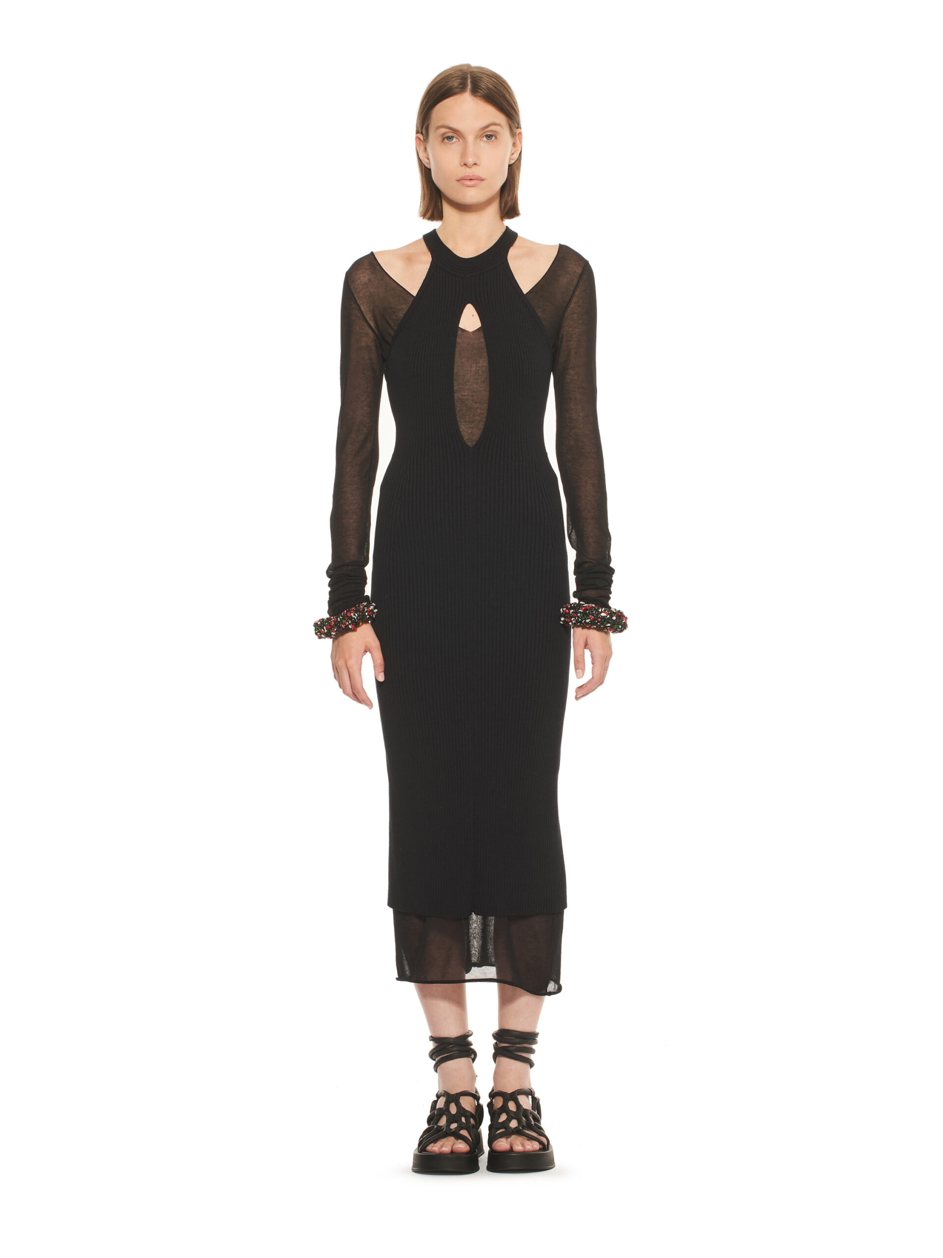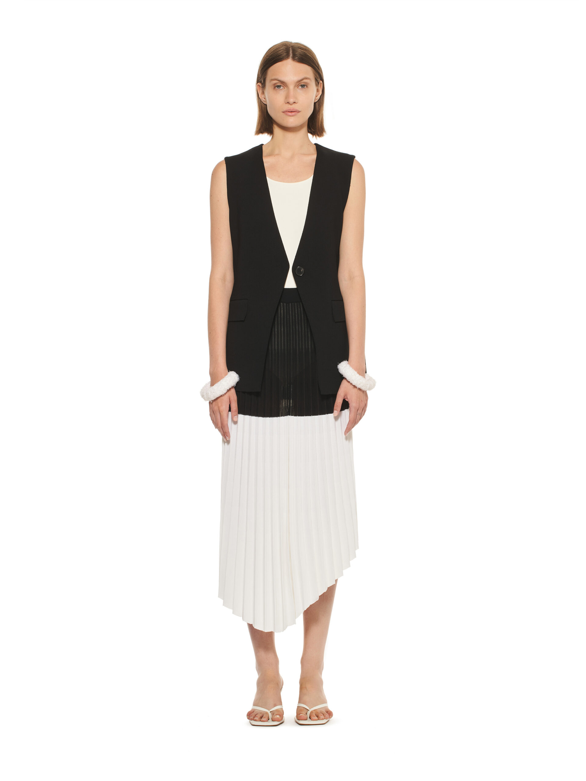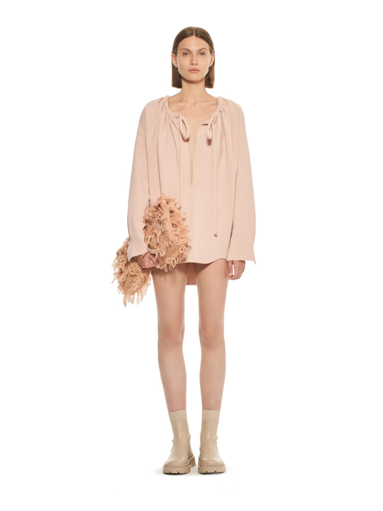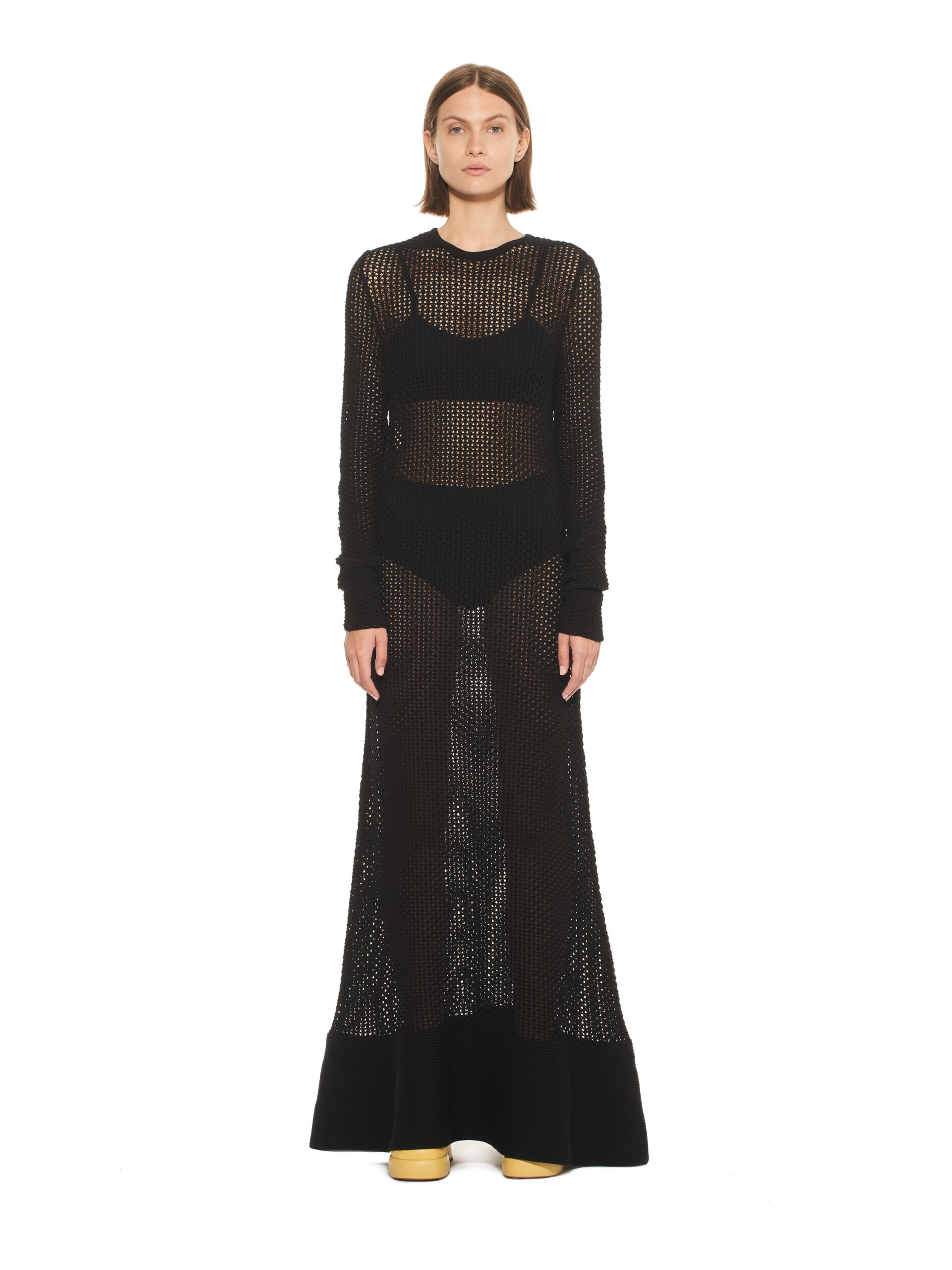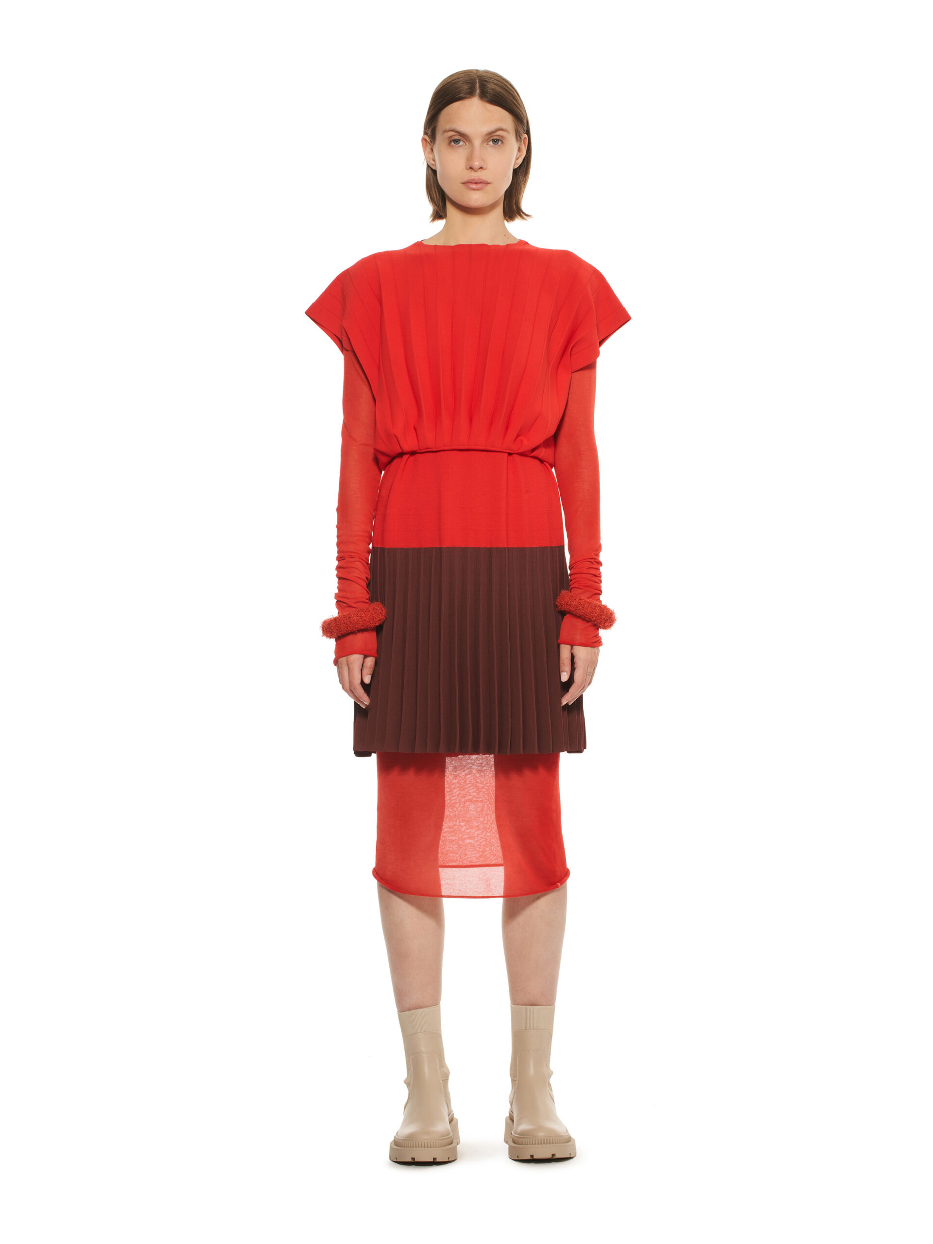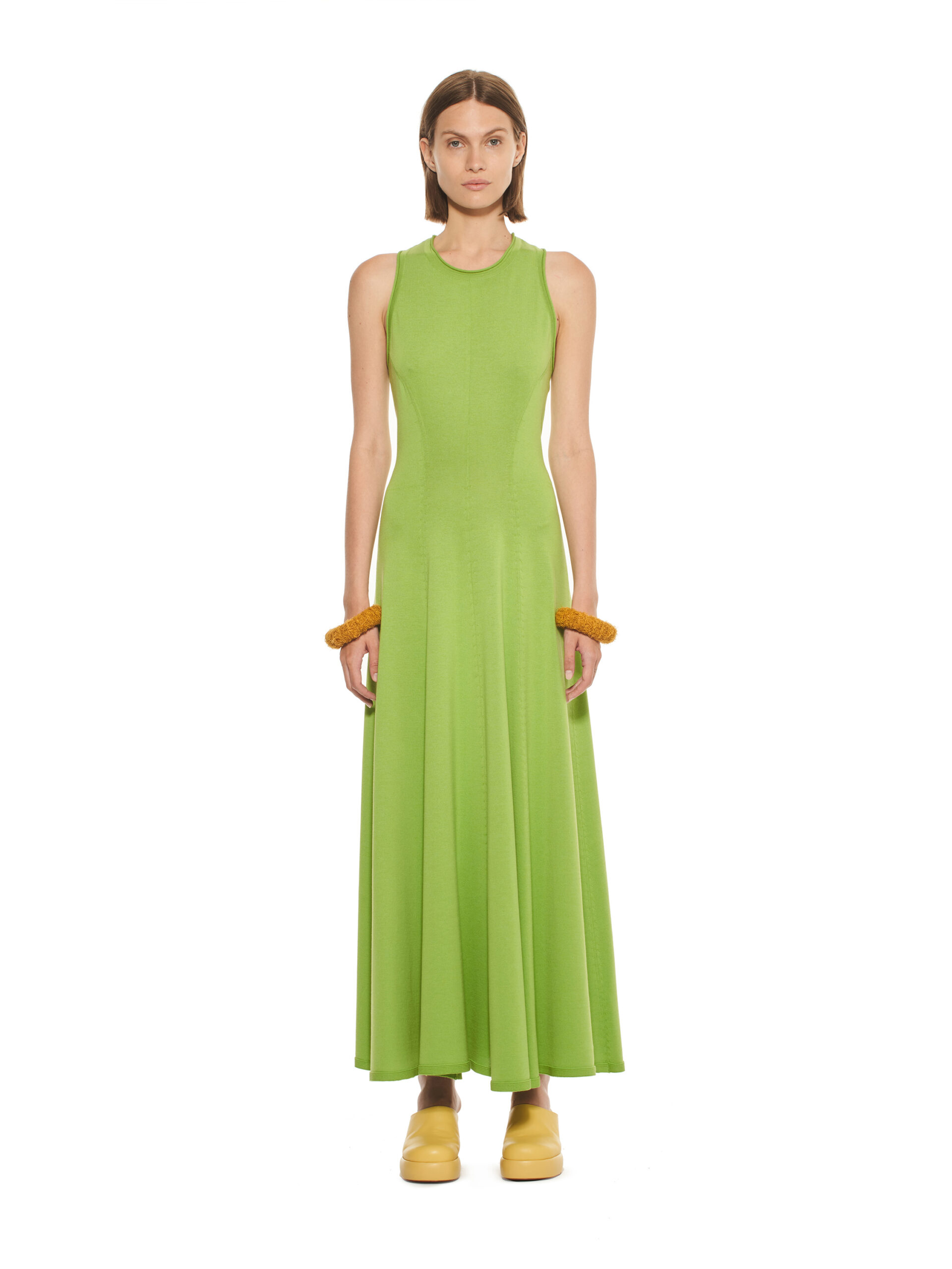 Les robes de la collection glissent sur les corps, offrant légèreté et élégance contemporaine. L’emblématique tailleur en tricot, décliné dans les couleurs de la collection, représente le binôme masculin/féminin de la marque et incarne le style de la femme MRZ. À l’opposé des tailleurs sartoriaux rigides, la collection propose une maille aux aspects matériellement expressifs, interrompant la continuité des surfaces pour créer une tridimensionnalité unique.