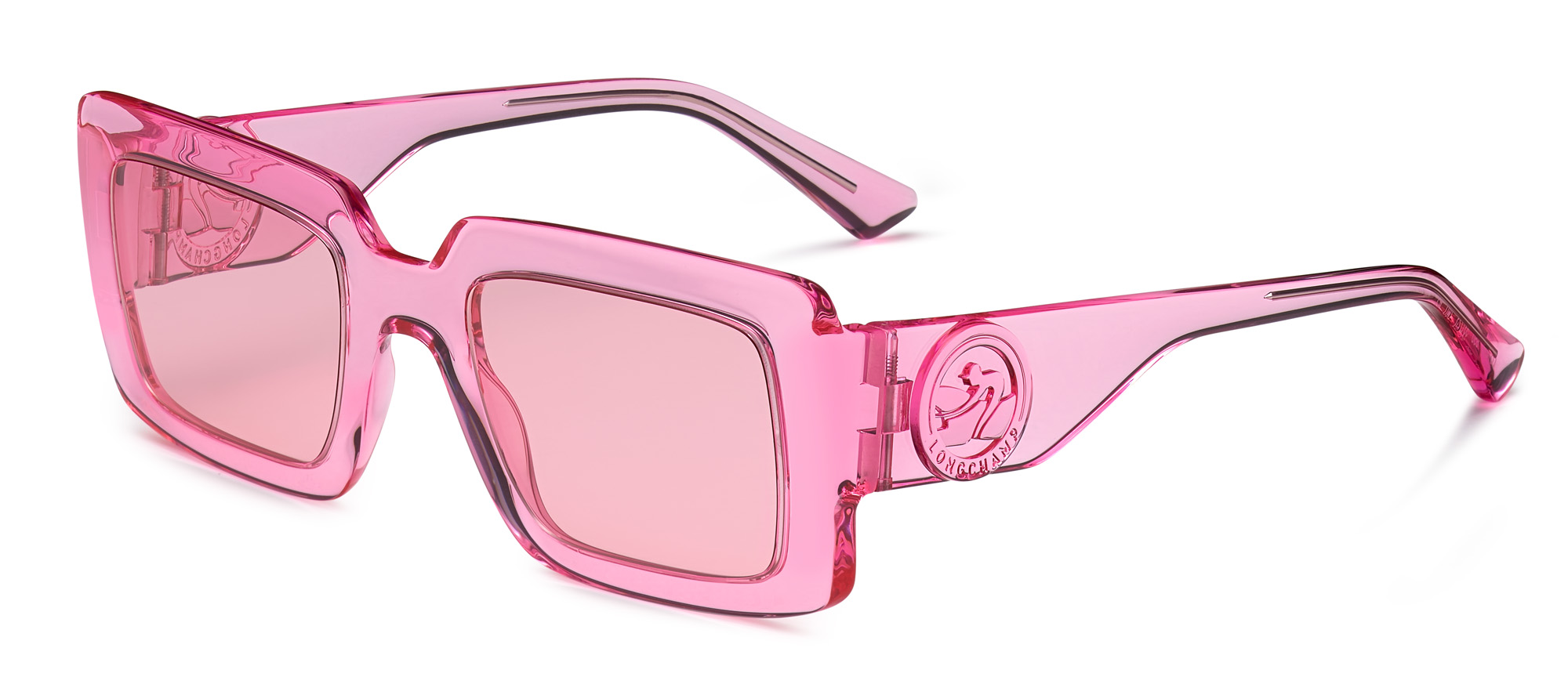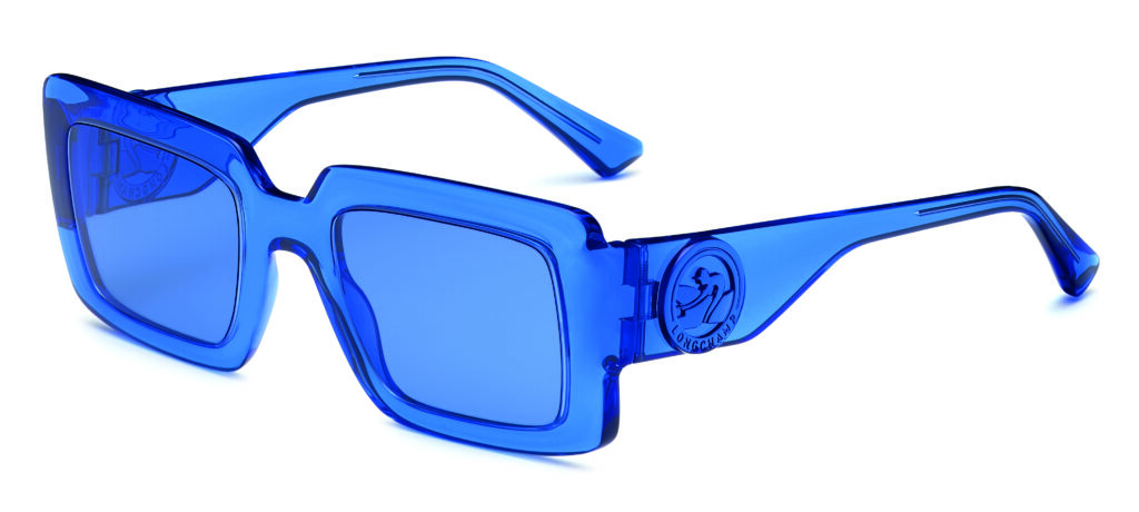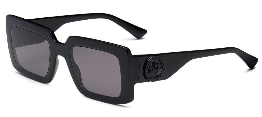 Parmi les pièces phares, le modèle LO743S se distingue. Fabriquées avec soin à partir de résine végétale éco-responsable, ces lunettes de soleil pour femme arborent une face rectangulaire audacieuse. L’emblématique médaille cheval Longchamp, apposée sur les branches dans la même coloration que la monture, apporte une touche contemporaine et chic.