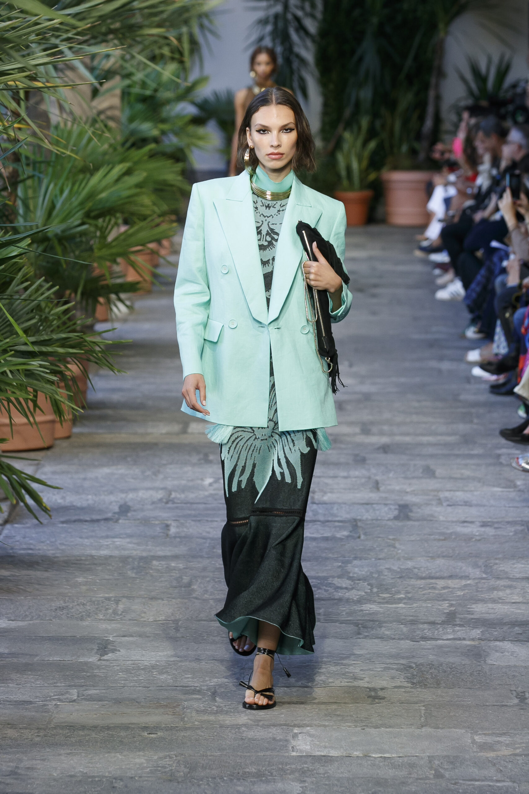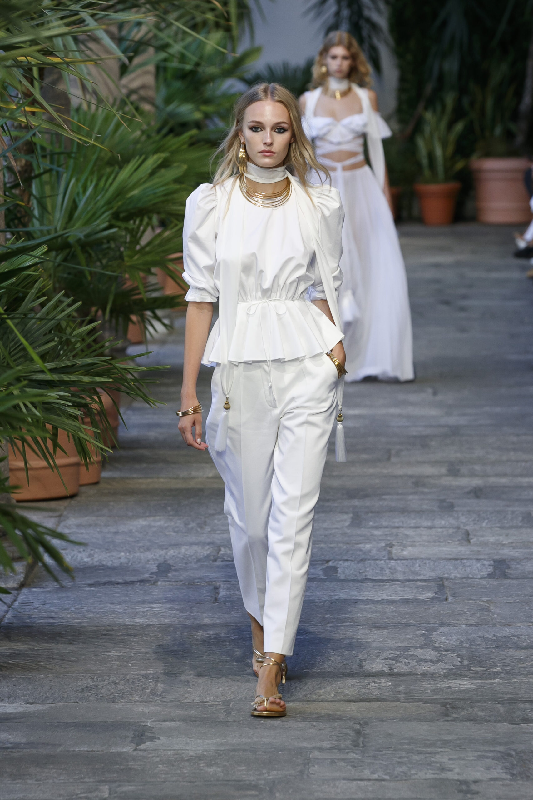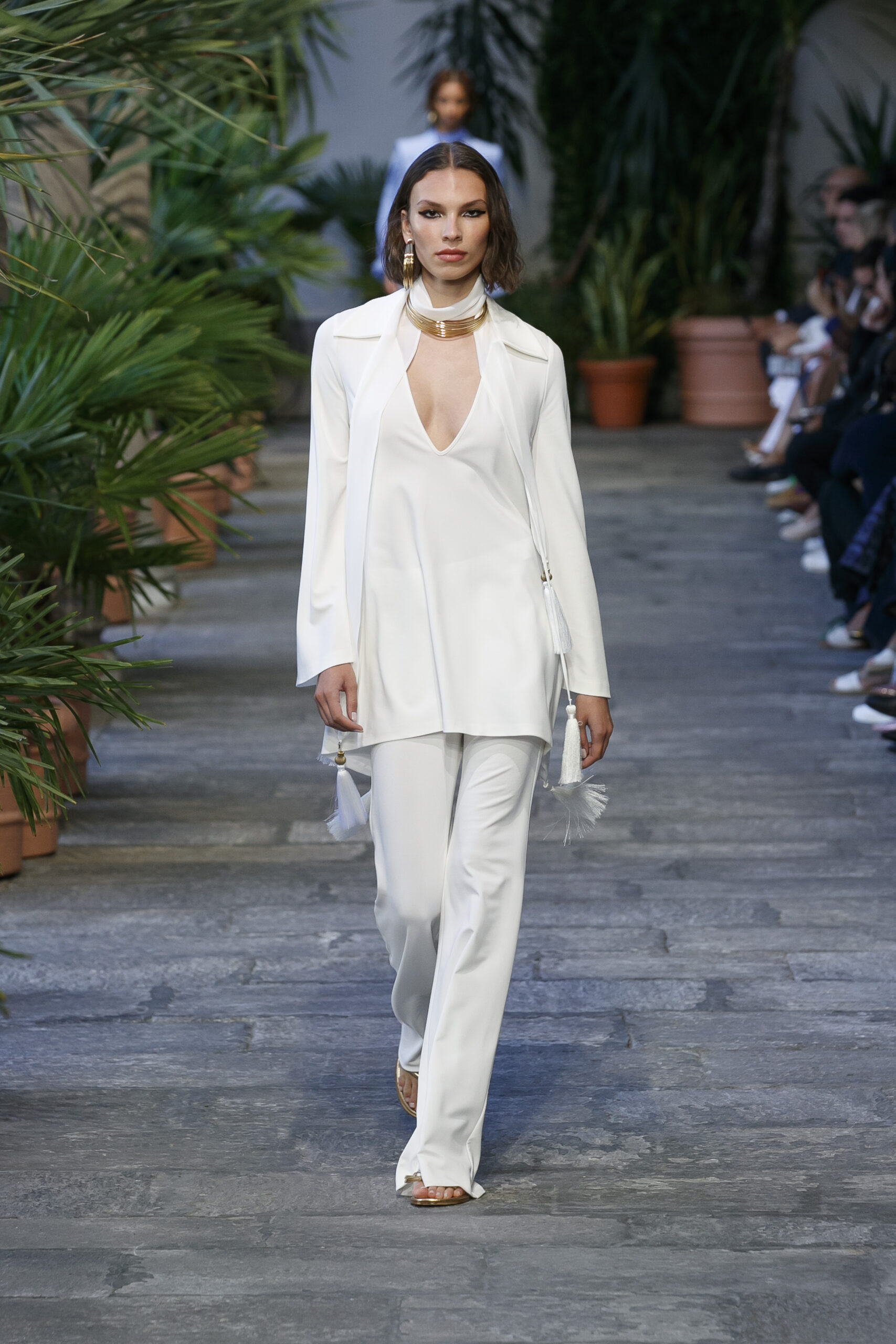 La collection propose une garde-robe polyvalente parfaite pour l’été, mettant en lumière des tricots d’été flatteurs, des tuniques courtes, des tenues de soirée translucides et des uniformes d’affaires girly. Les designs sont parfois ornés de motifs floraux héraldiques, de broderies folkloriques et d’un nouveau logo double LS, démontrant l’expertise de Luisa Spagnoli en matière de tricot et d’artisanat.