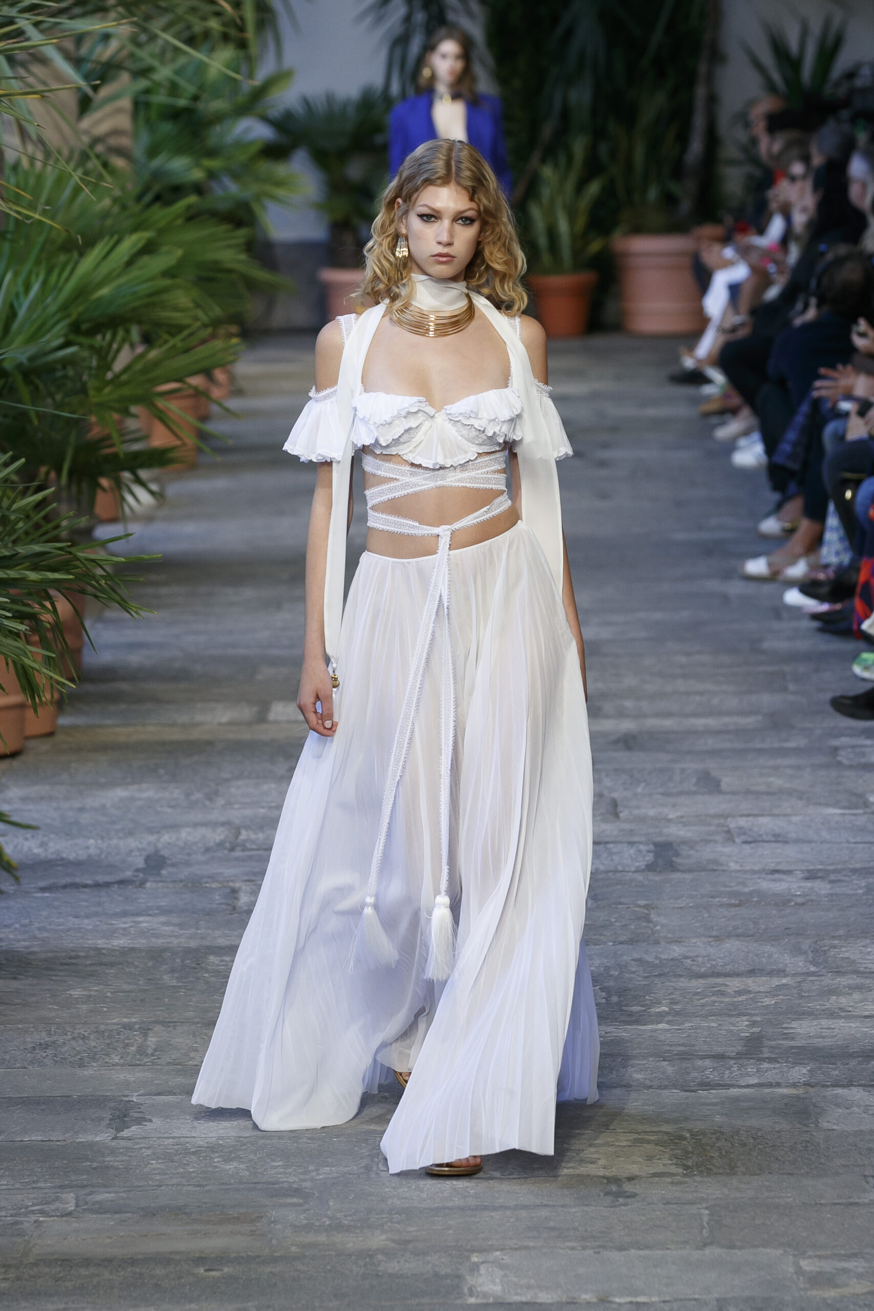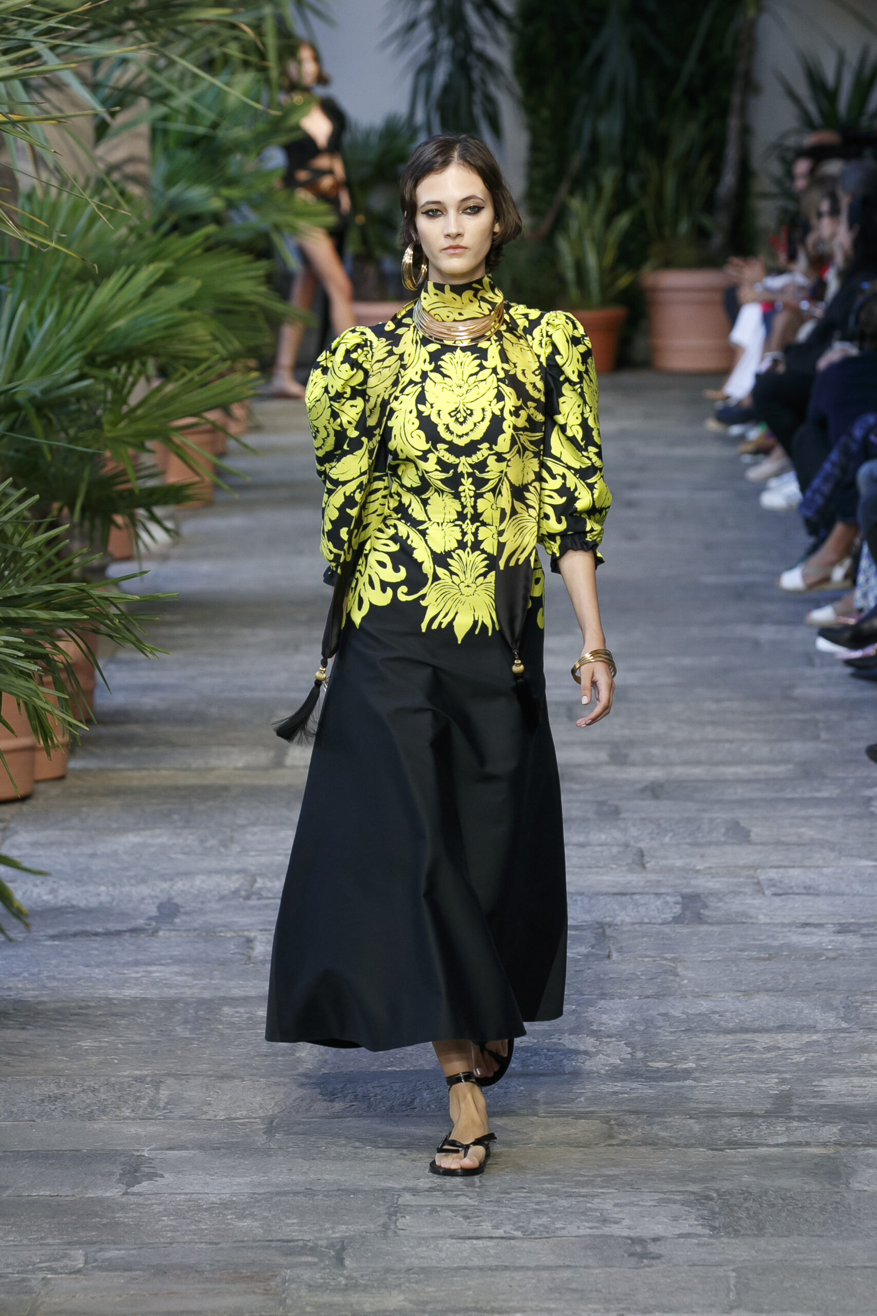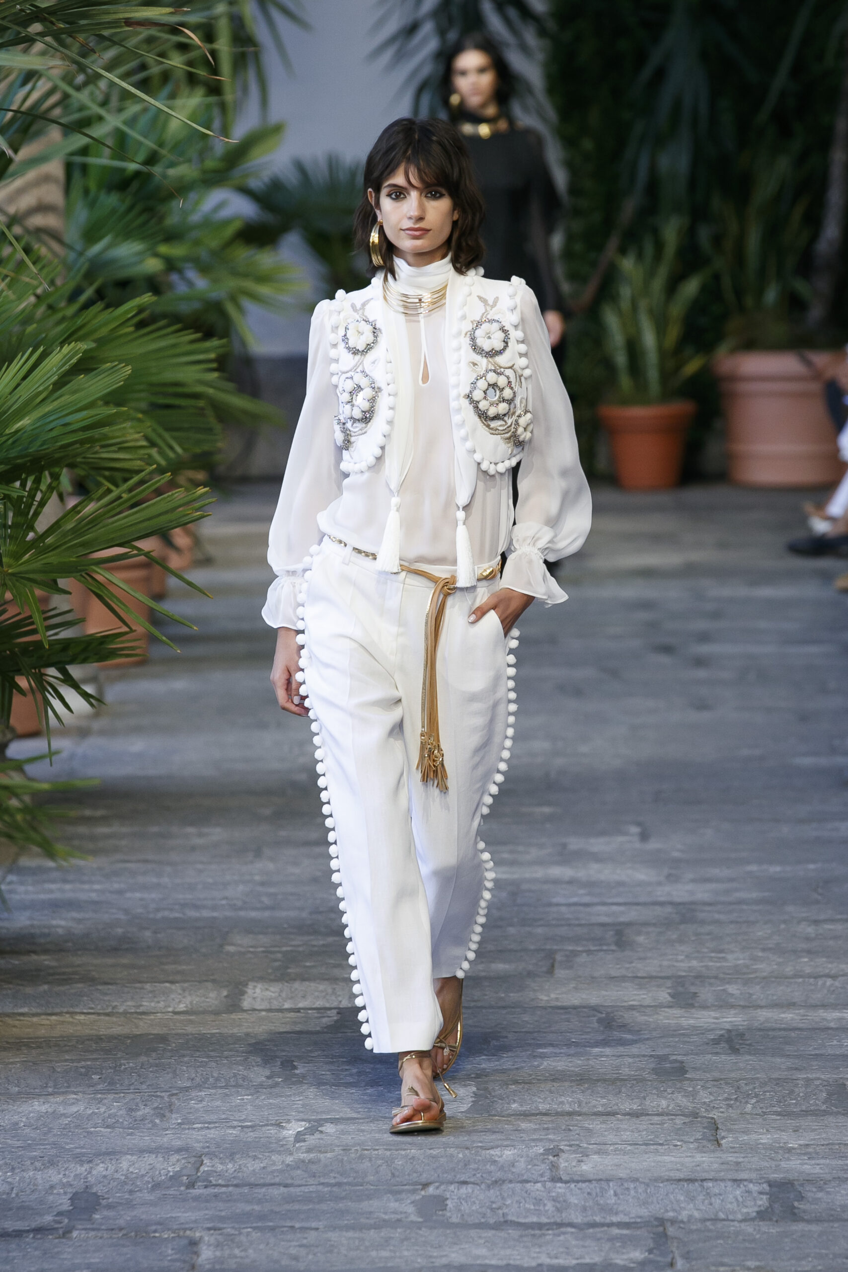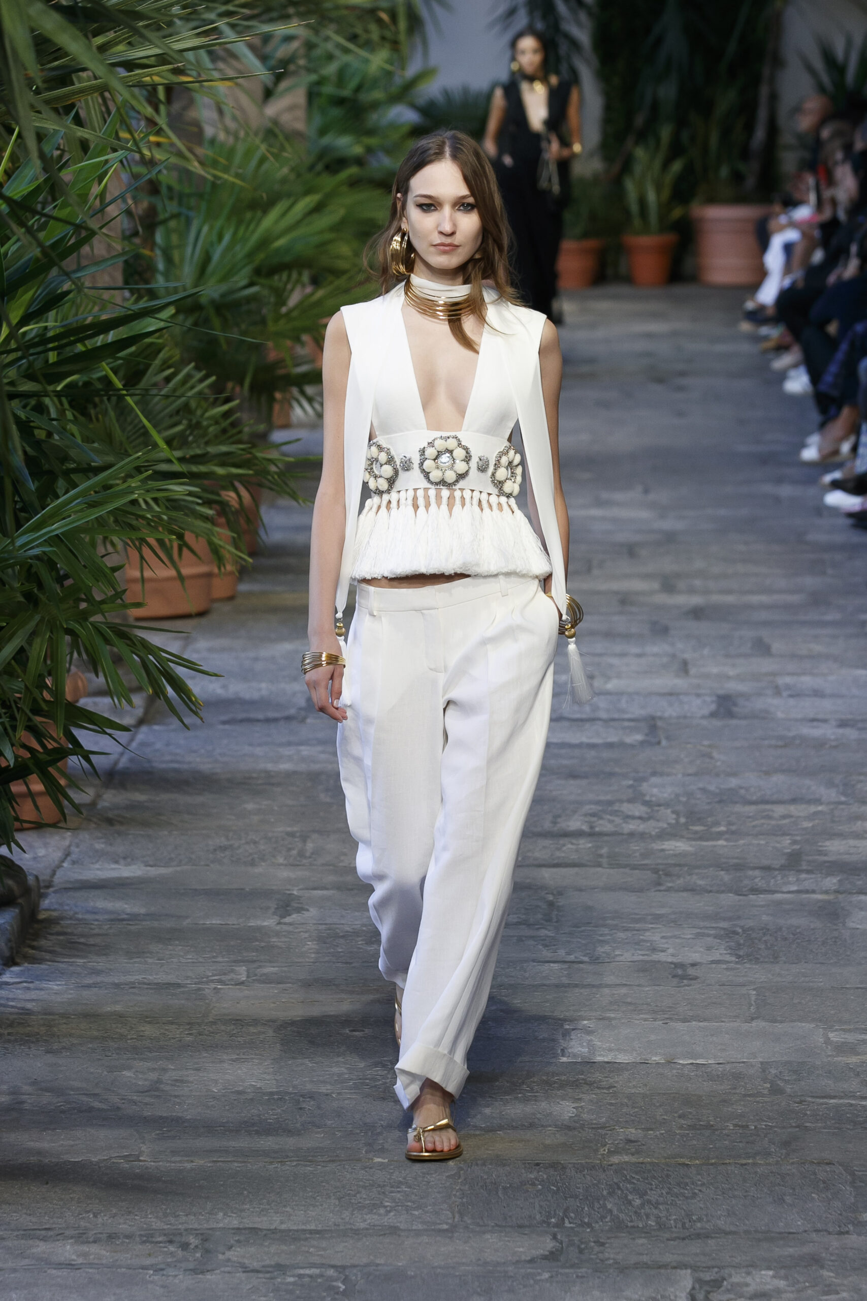 La collection propose une garde-robe polyvalente parfaite pour l’été, mettant en lumière des tricots d’été flatteurs, des tuniques courtes, des tenues de soirée translucides et des uniformes d’affaires girly. Les designs sont parfois ornés de motifs floraux héraldiques, de broderies folkloriques et d’un nouveau logo double LS, démontrant l’expertise de Luisa Spagnoli en matière de tricot et d’artisanat.