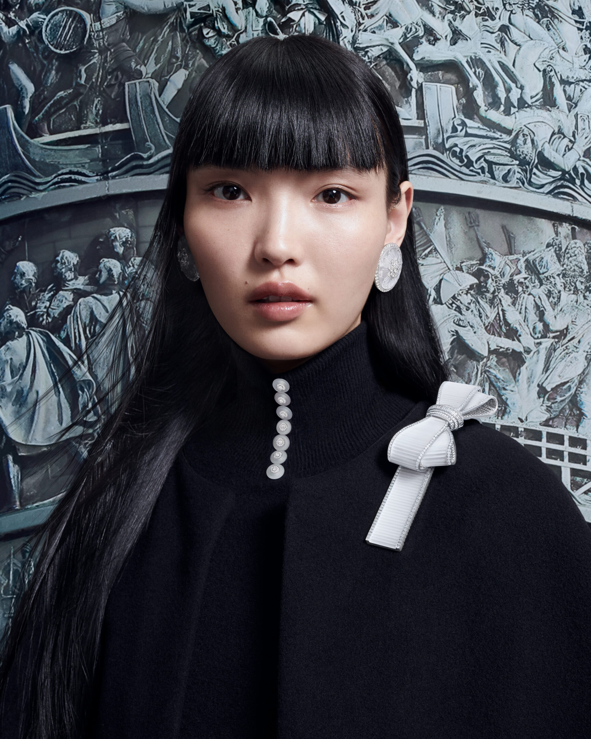 Parmi les pièces phares de la collection, on trouve des colliers, des épaulettes, des nœuds et des cols, chacun offrant une interprétation unique de l’élégance et de la créativité. Les épaulettes, par exemple, s’inspirent d’un diadème de 1902 et peuvent se transformer en bracelets, tandis que les nœuds offrent une réinterprétation graphique du gros-grain.
