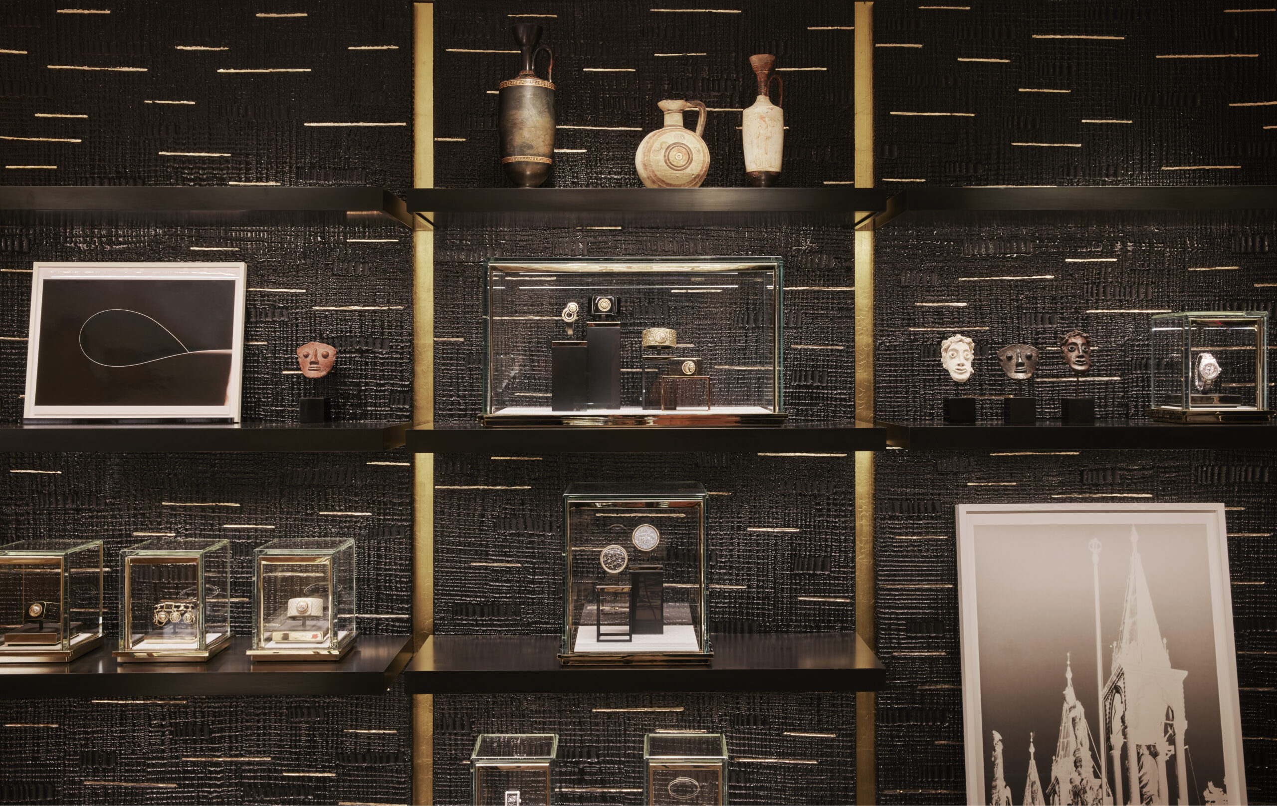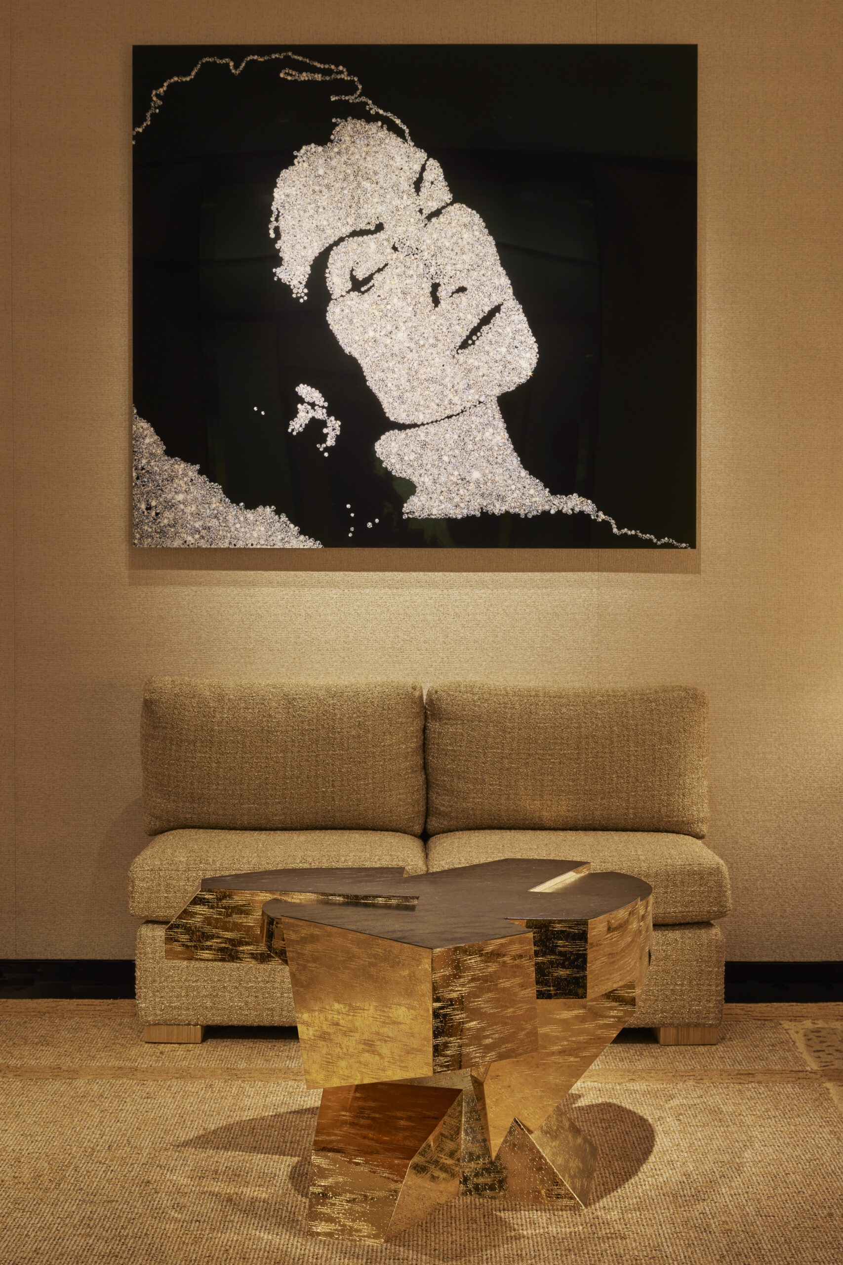 La connexion profonde de CHANEL avec le monde de l’art se manifeste à travers une collection impressionnante d’œuvres d’art, y compris une sculpture unique d’André Dubreuil et un collage mural polyptyque de Y.Z. Kami dans le Salon des Montres. Le niveau mezzanine accueille des œuvres d’artistes féminines influentes du XXe siècle, ainsi qu’une œuvre commissionnée de Vik Muniz représentant Gabrielle Chanel.