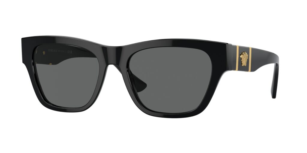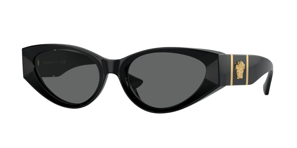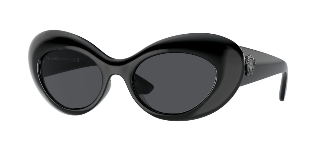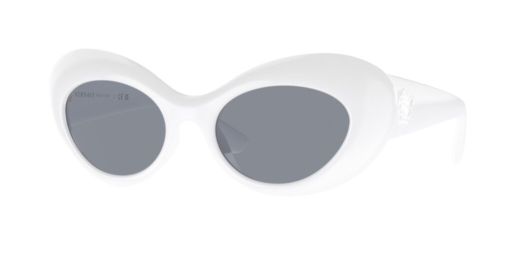 - VE4456U : Lunettes ovales avec une face bombée et la Méduse en relief sur les branches, disponibles en blanc avec des verres gris ou en noir avec des verres gris foncé.