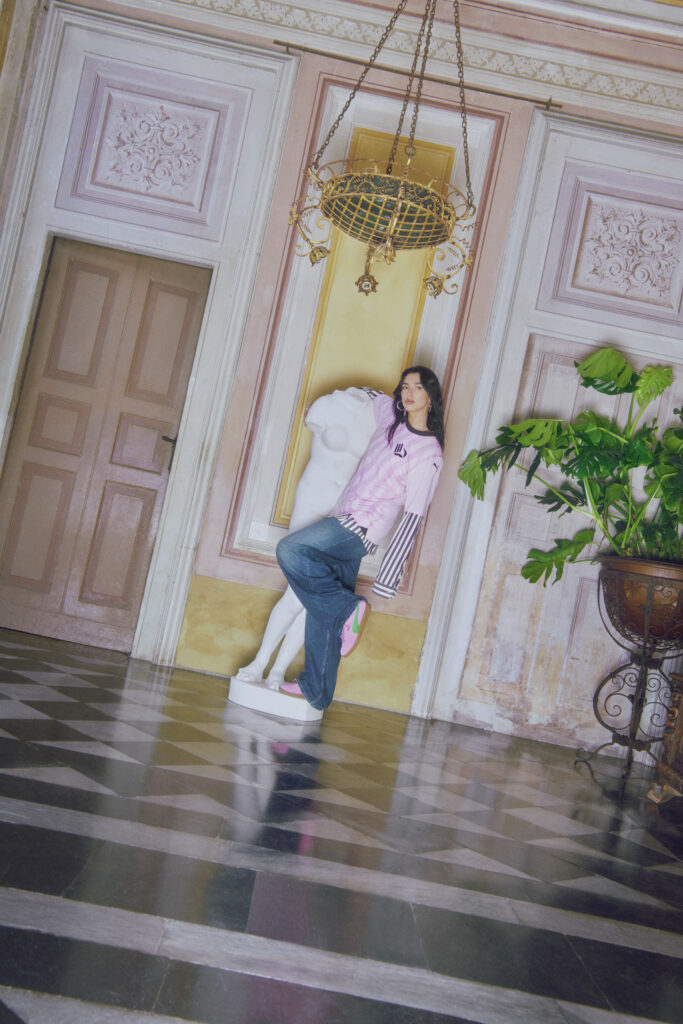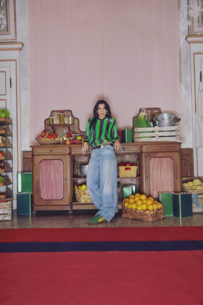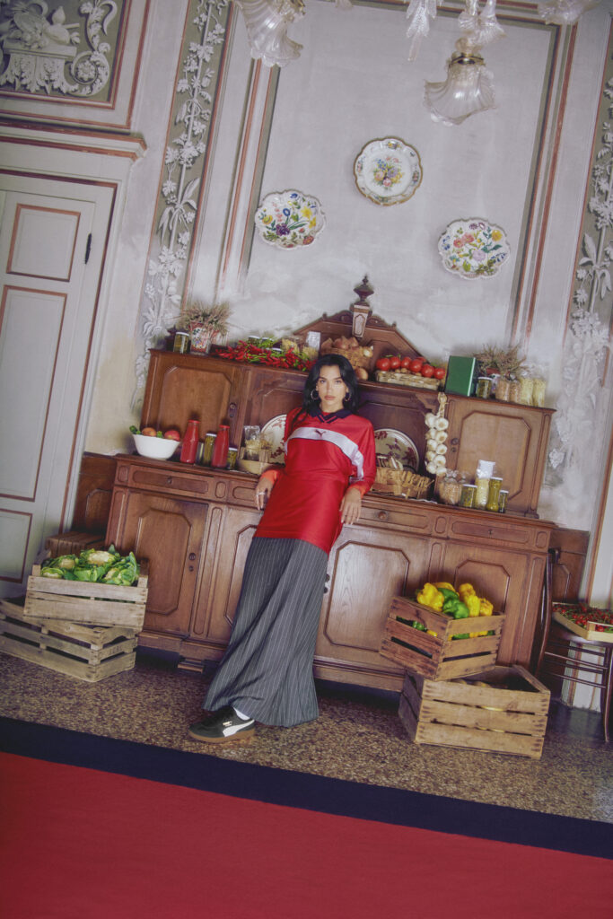 Photographiée par Francesco Nazardo, la campagne mêle des visuels ludiques et spontanés, mettant en scène la Palermo dans une variété de coloris vibrants. Dua Lipa, habillée de sportswear surdimensionné, de jeans et de tricots aux couleurs de l’équipe, incarne parfaitement l’esthétique moderne de la terrasse, tout en mettant en valeur la sneaker iconique.
