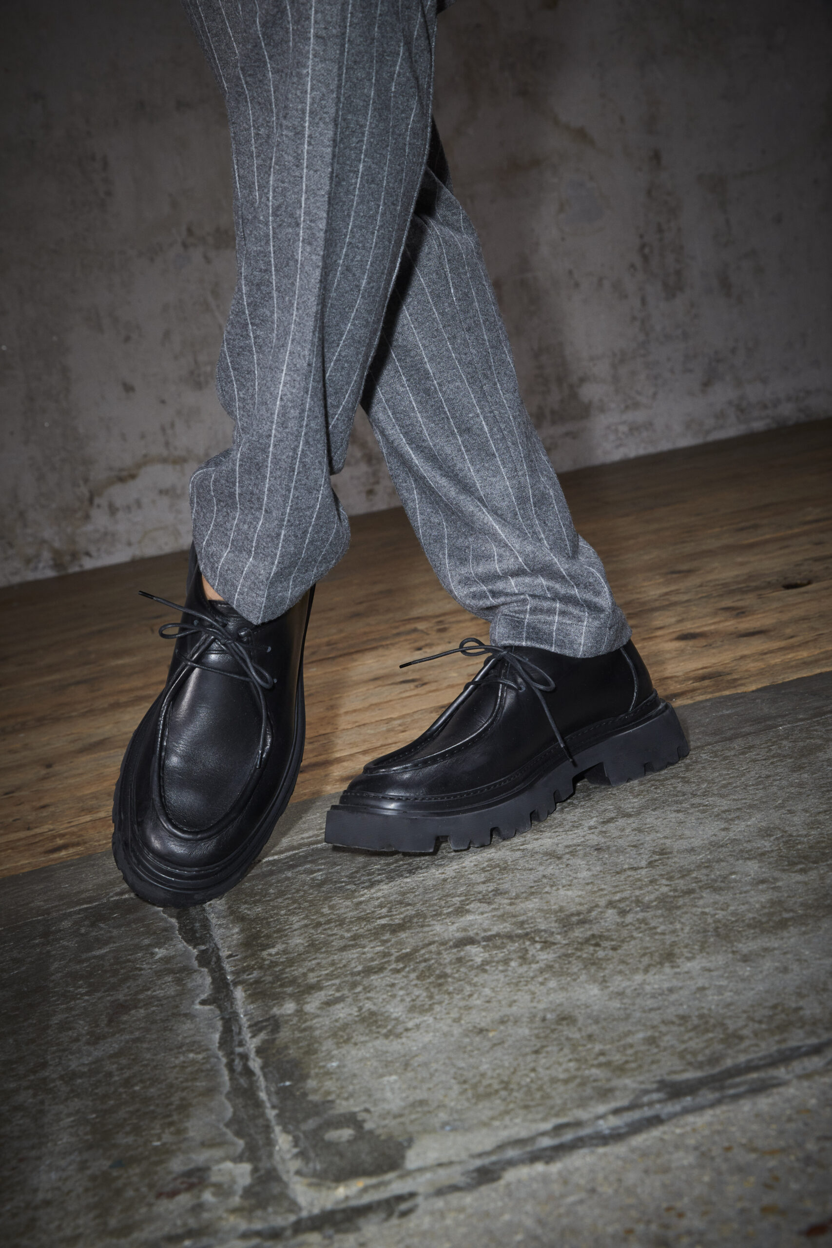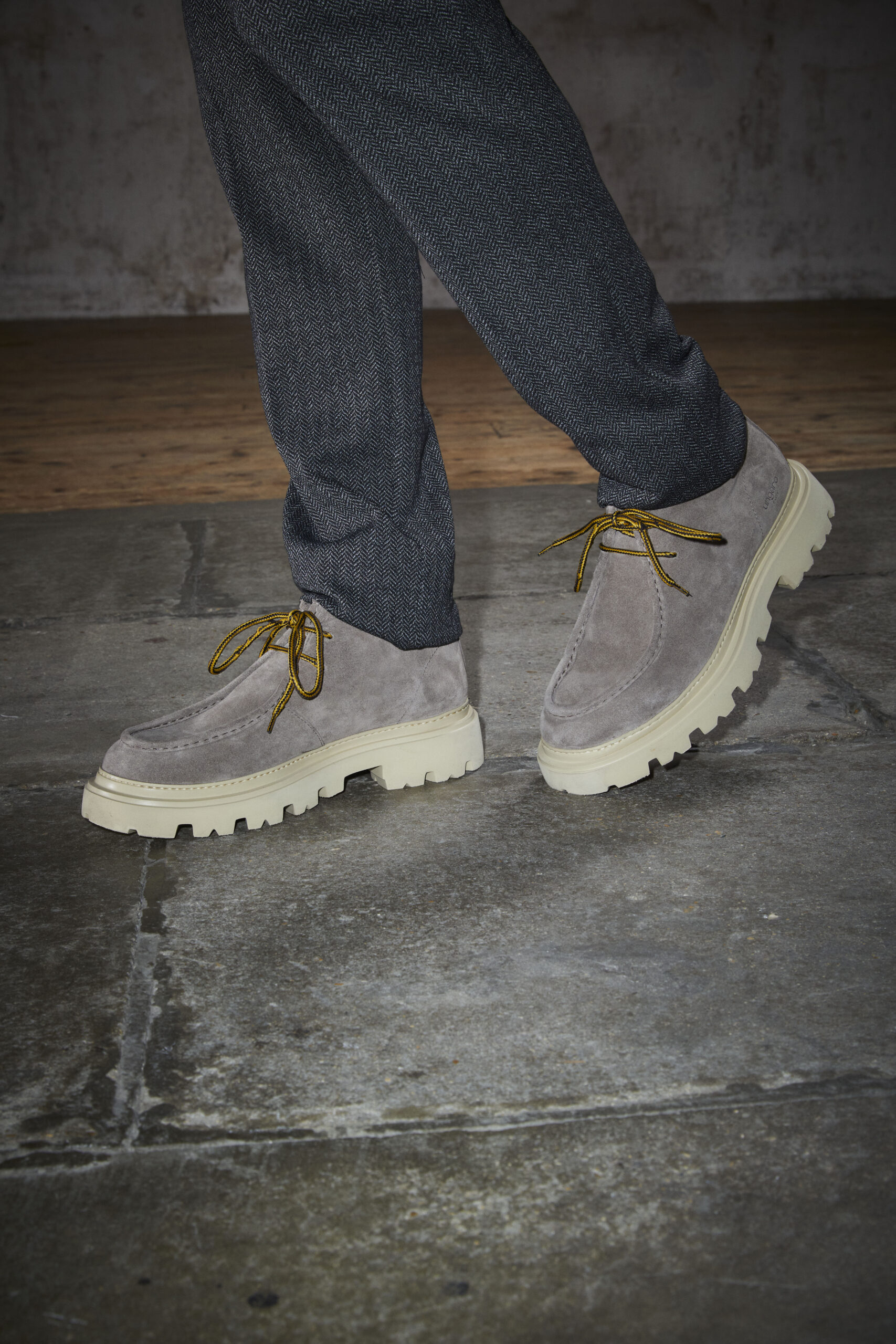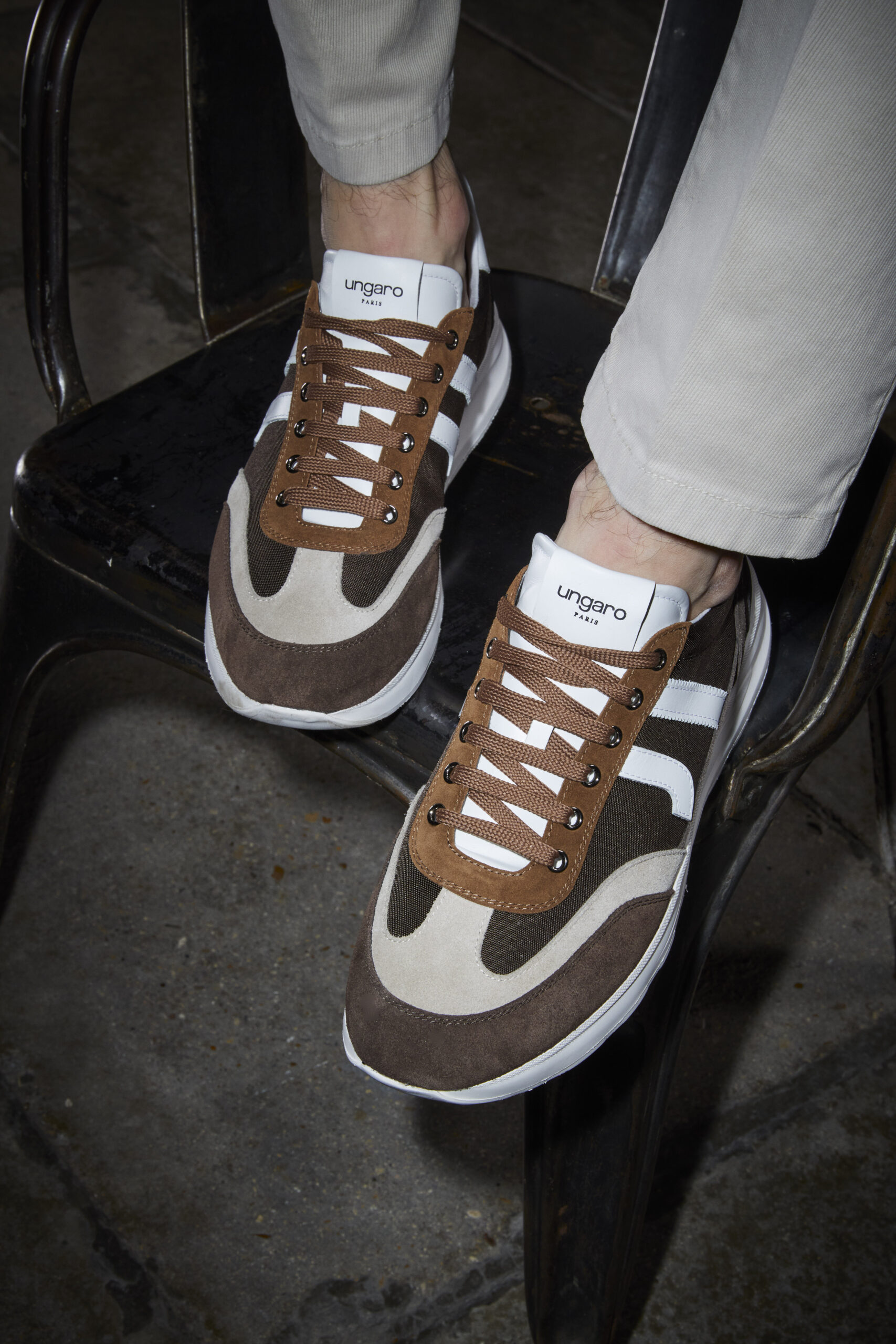 Des chaussures raffinées en cuir et en nubuck, ainsi que des baskets colorées pour un look décontracté, complètent la collection et offrent une multitude d’options pour l’homme Ungaro.