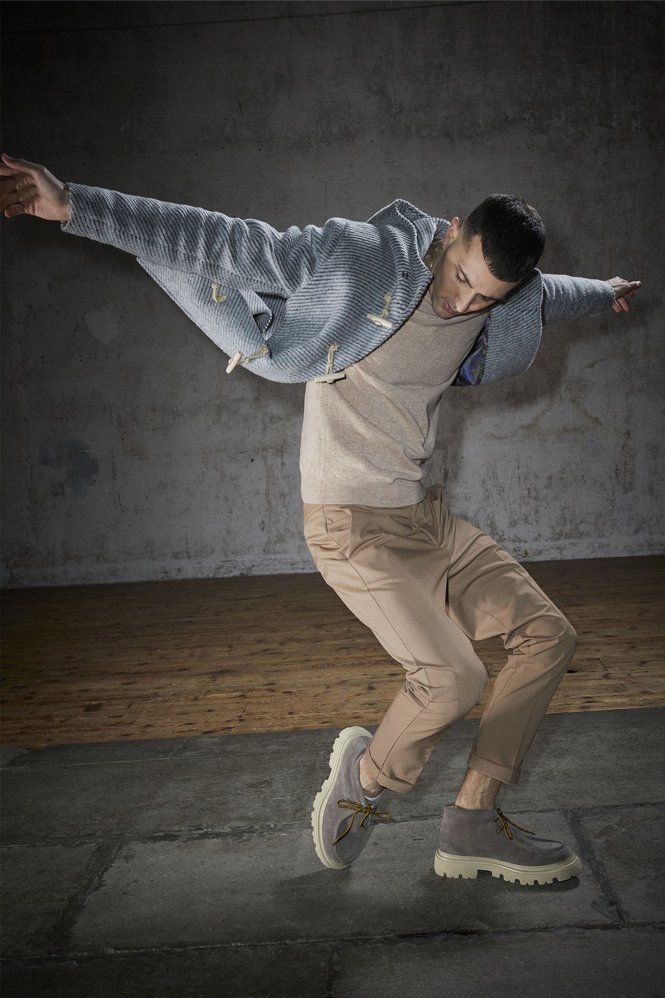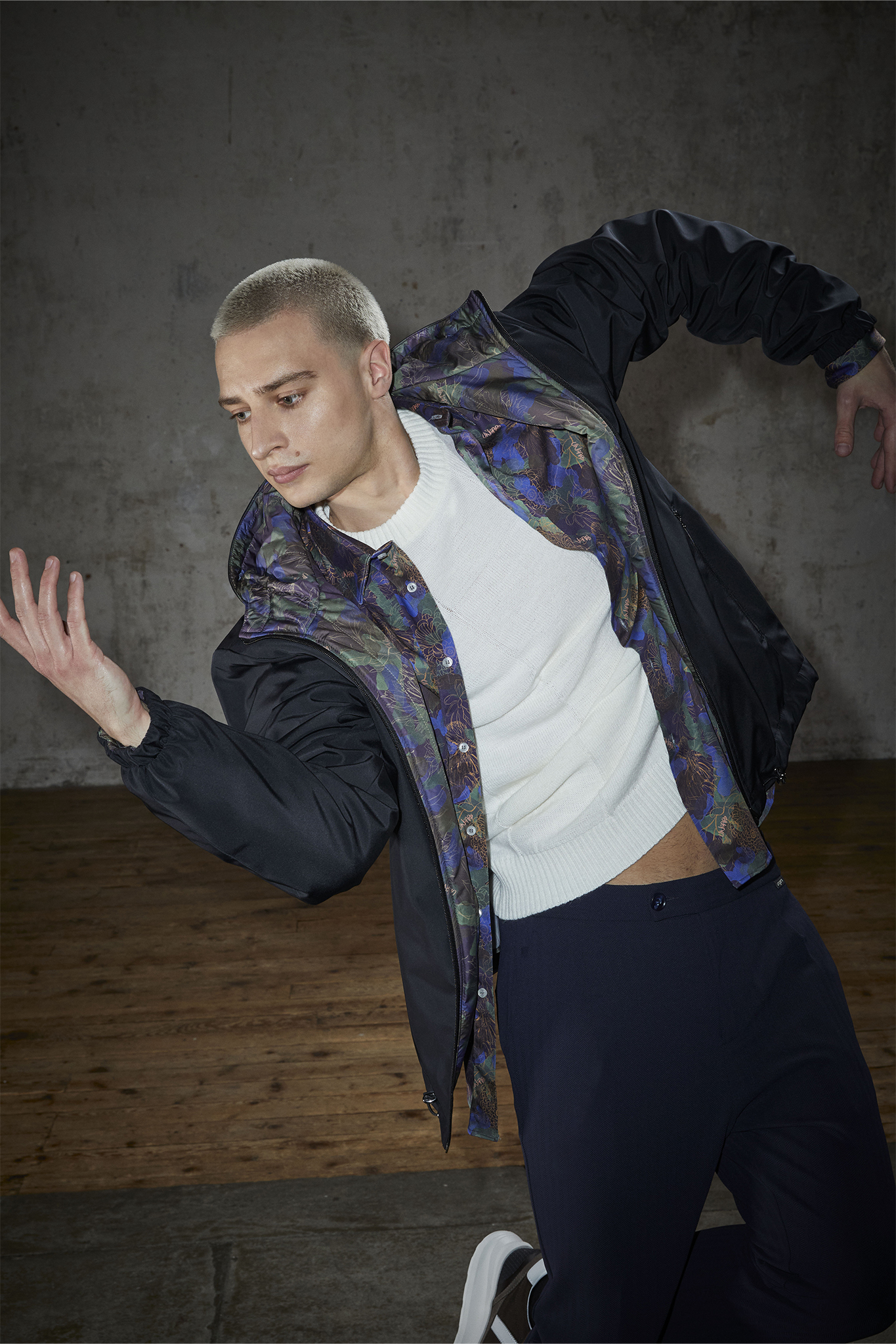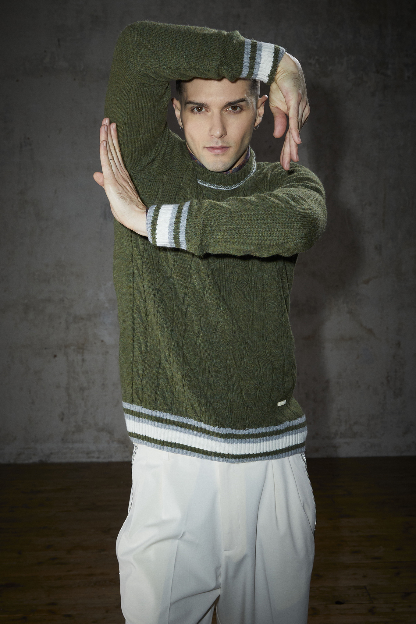 L’harmonie des contrastes est un élément essentiel de la collection. Des superpositions audacieuses de textures et de motifs créent une dimension artistique unique. Des pois mystérieux côtoient des impressions de feuillage aquarellées, tandis que des jacquards flous se marient à des mailles câbles robustes.