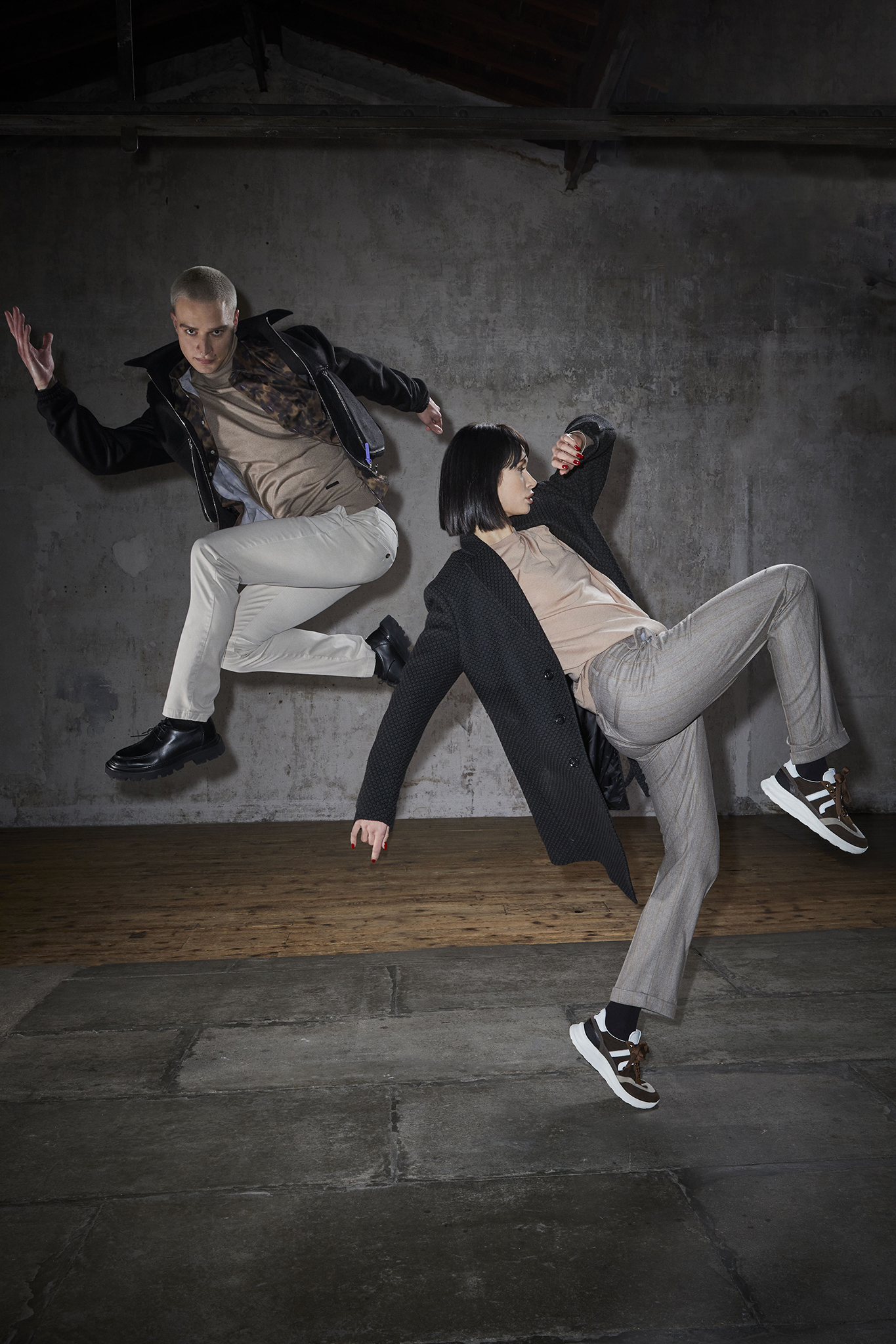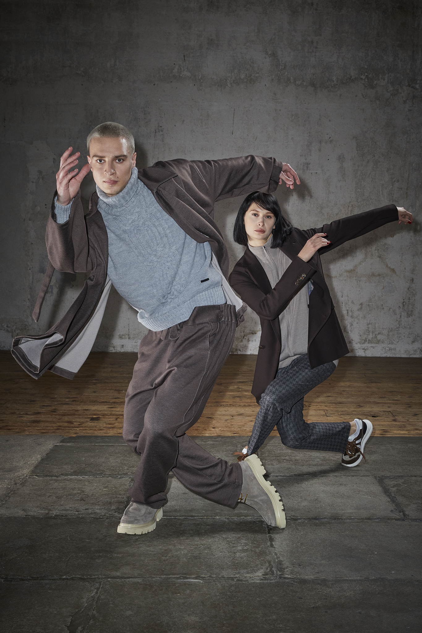 Le mouvement est au cœur de la collection. Des tissus fluides et des silhouettes élancées soulignent la grâce naturelle du corps en mouvement. Des tricots souples et des drapés élégants accompagnent chaque geste avec une aisance raffinée.