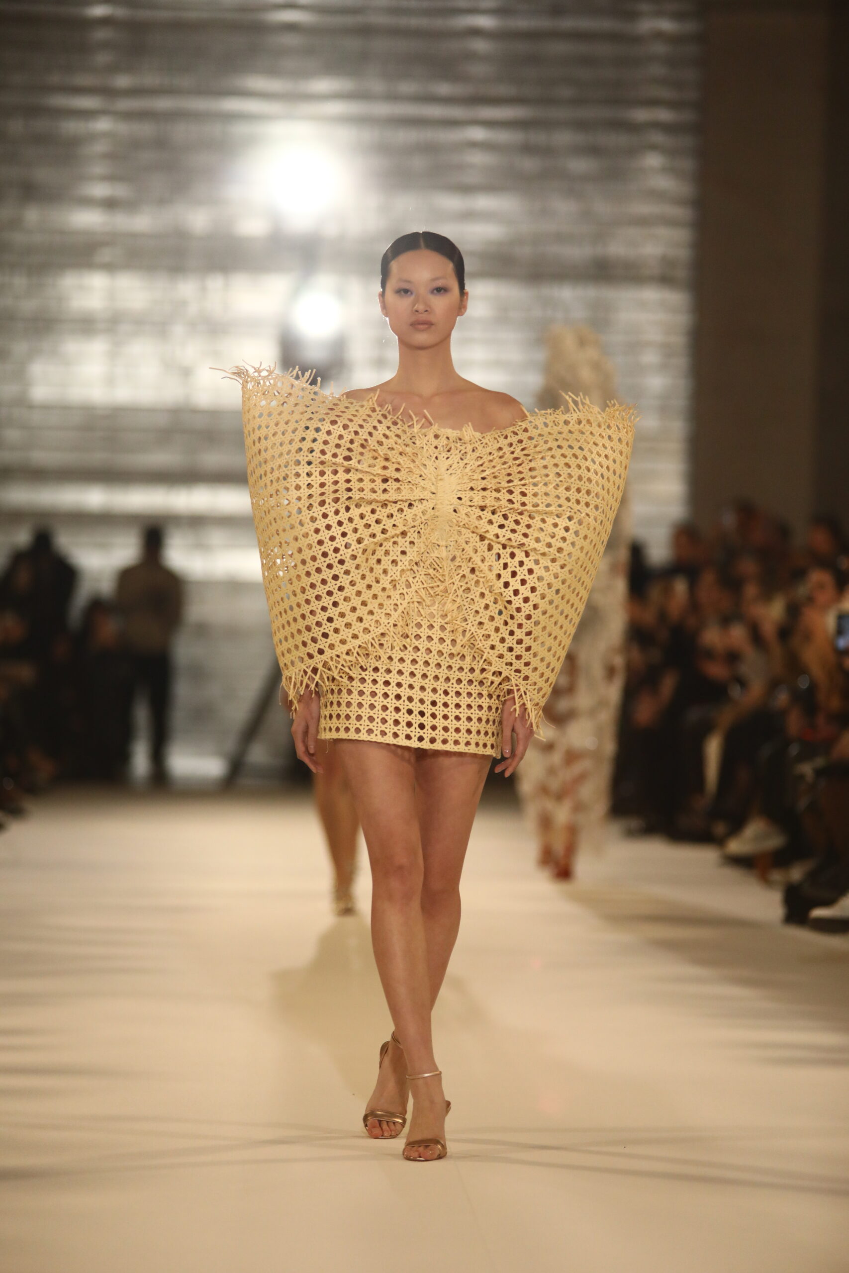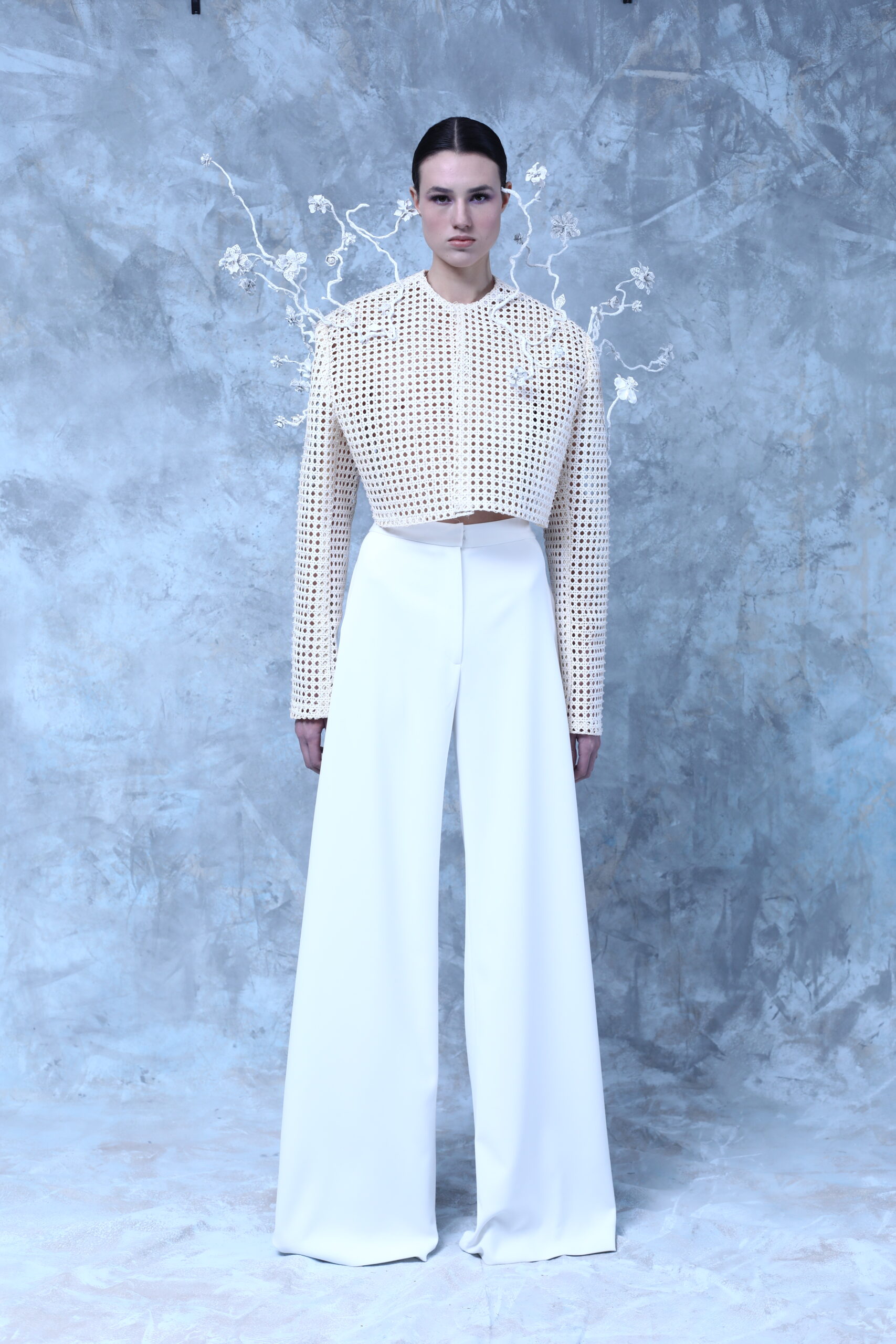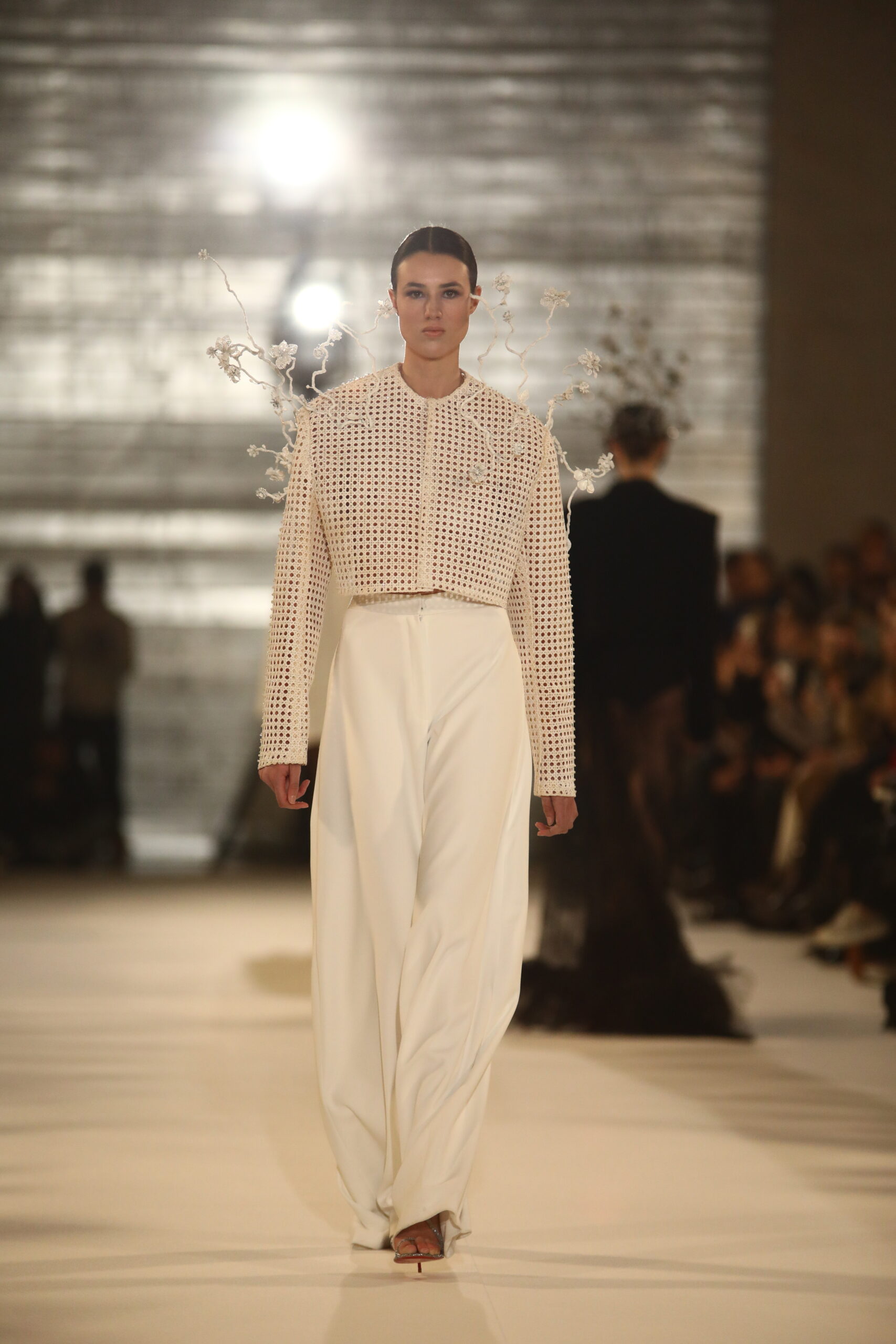 La collection rend hommage à l’artisanat de l’osier, profondément enraciné dans certaines villes Andalouses. Brocarts aux motifs sacrés, bijoux travaillés en orfèvrerie religieuse, l’osier dans différents contextes, broderie et cristaux évoquant la rosée du matin, tous ces éléments plongent dans les traditions andalouses.