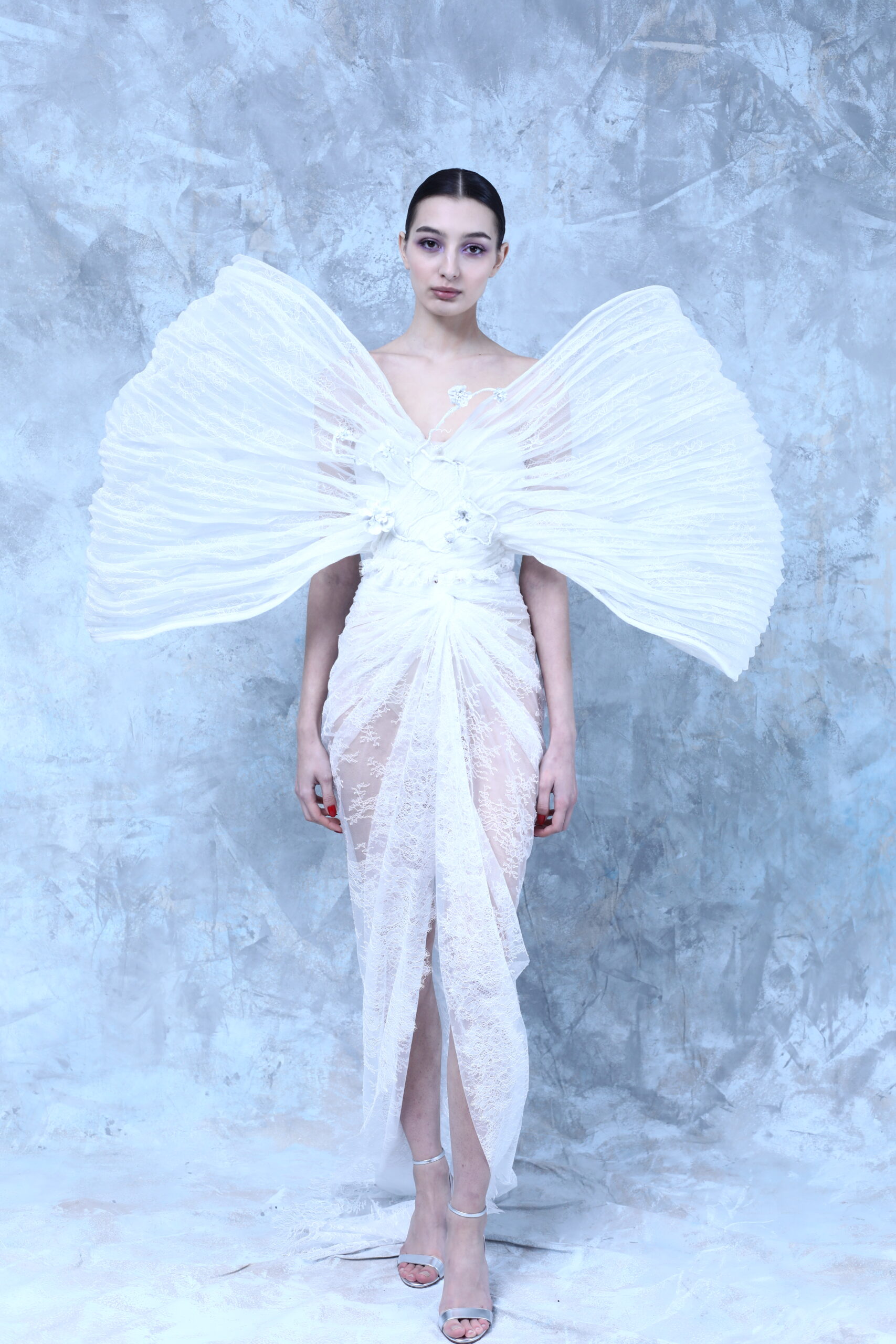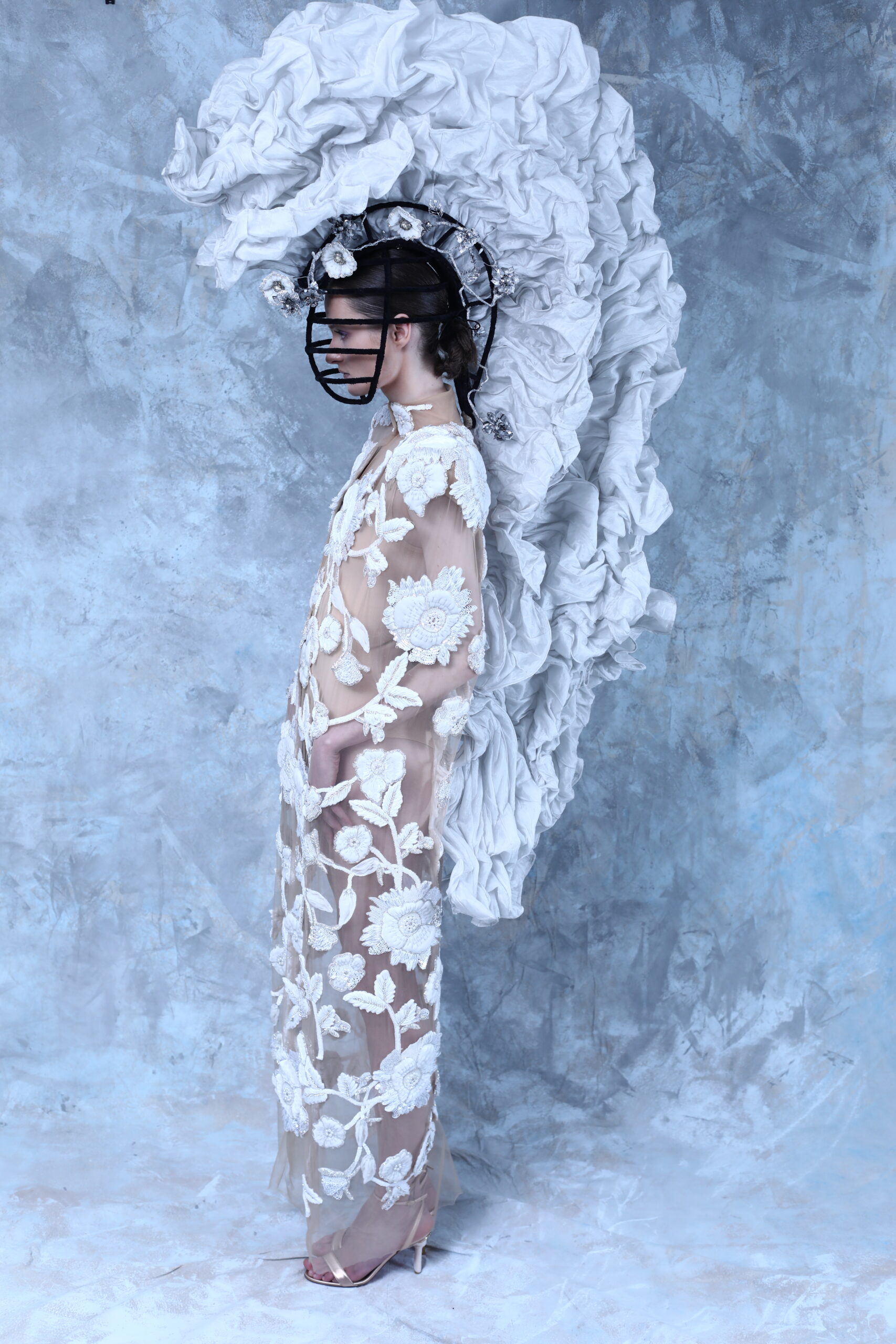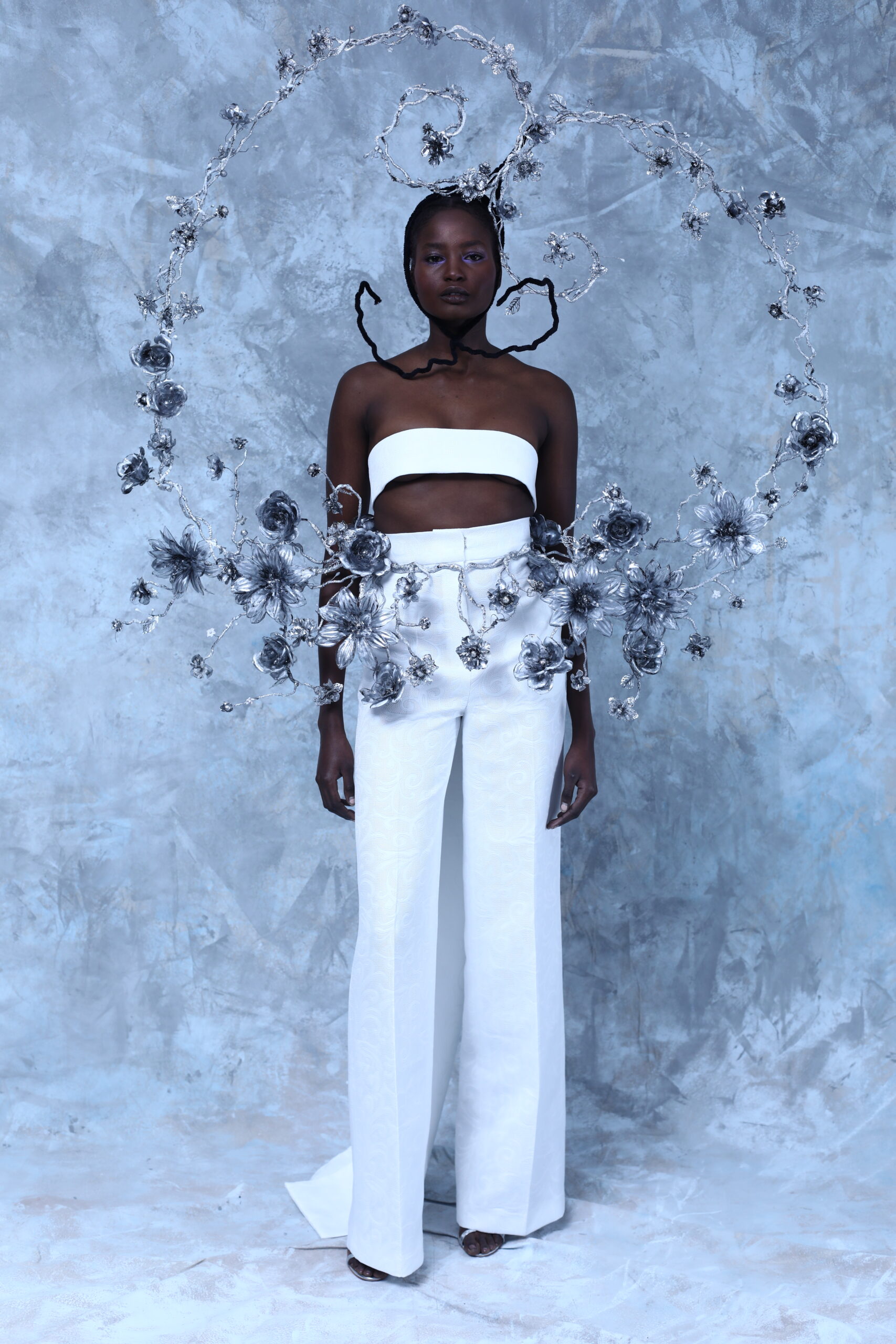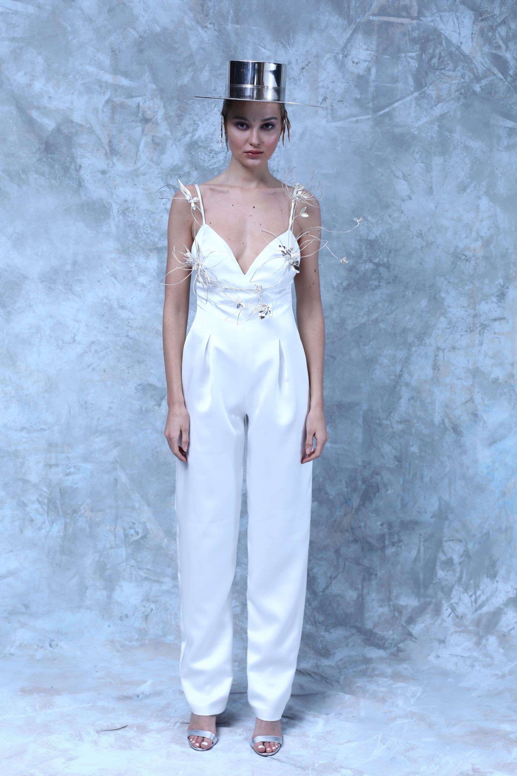 La collection rend hommage à l’artisanat de l’osier, profondément enraciné dans certaines villes Andalouses. Brocarts aux motifs sacrés, bijoux travaillés en orfèvrerie religieuse, l’osier dans différents contextes, broderie et cristaux évoquant la rosée du matin, tous ces éléments plongent dans les traditions andalouses.