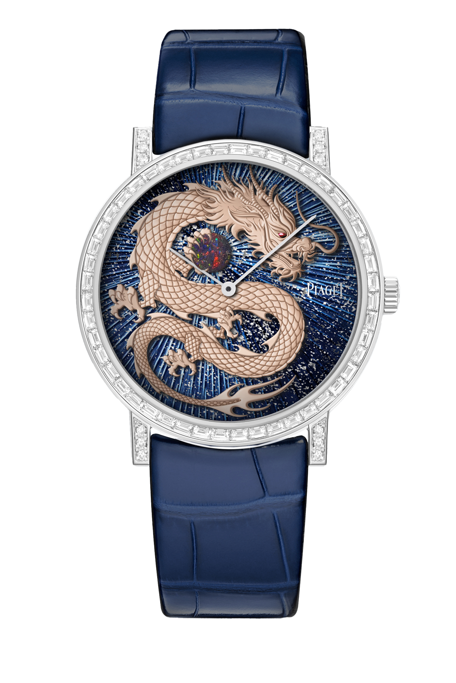 La collection comprend également des montres de Haute Joaillerie Altiplano et Piaget Emperador, où le motif du Dragon est magistralement intégré dans des créations qui allient Haute Horlogerie et Haute Joaillerie. Les montres présentent des détails gravés en or, sertis de pierres précieuses, créant un spectacle visuel époustouflant.