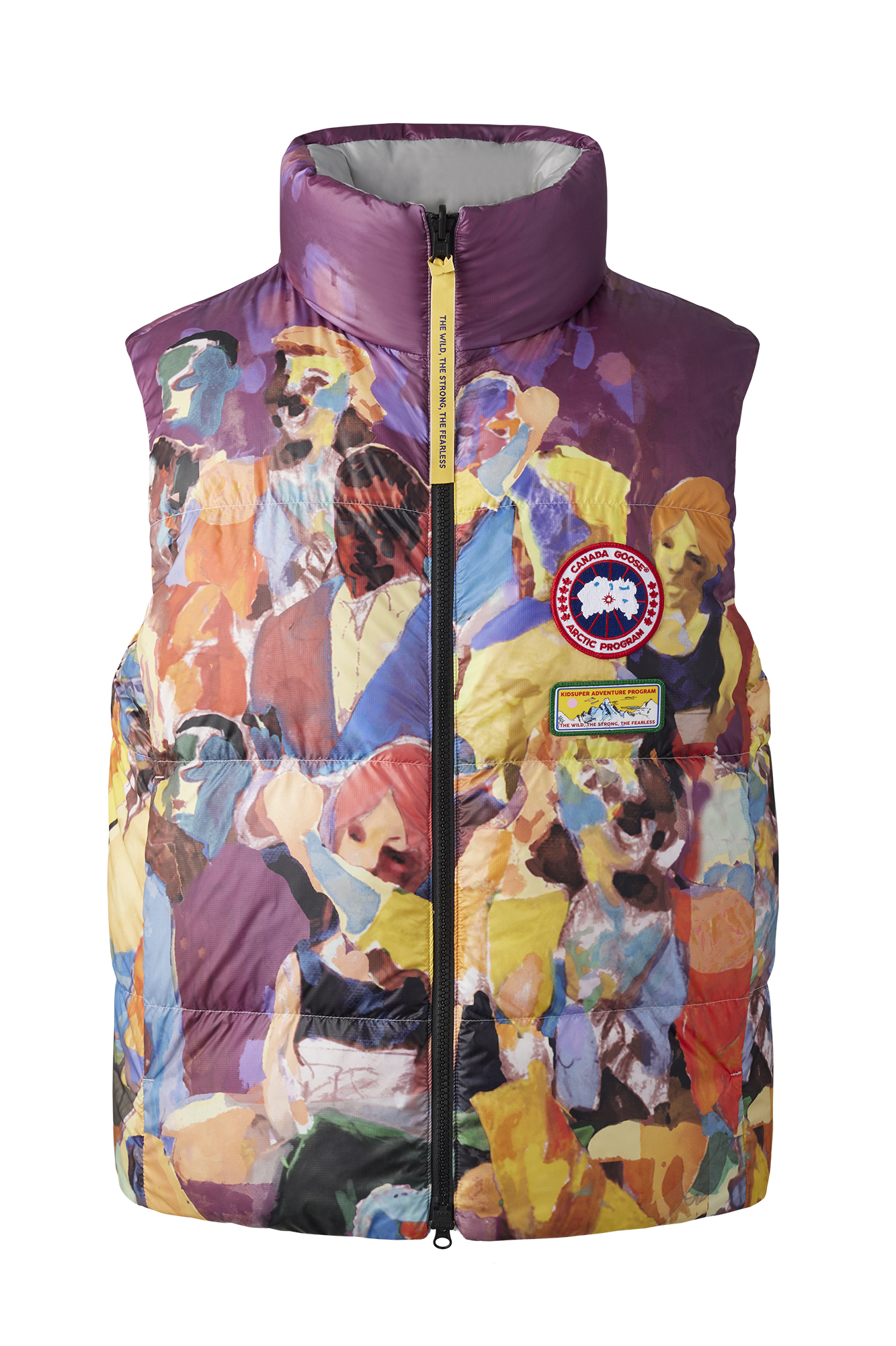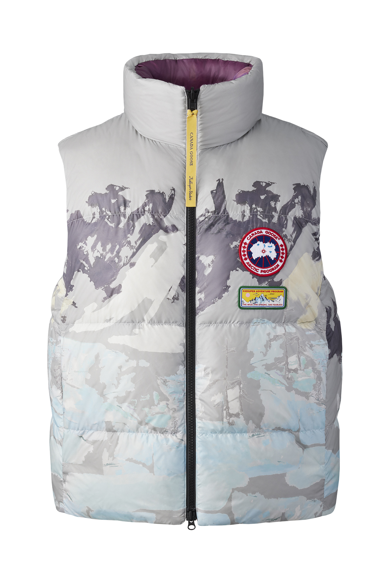 Le cœur de cette collection réside dans les œuvres d’art originales de Colm Dillane, qui a conçu deux représentations visuelles uniques pour Canada Goose. « Purple Crowd » capte l’esprit du NBA All-Star 2024 avec un vibrant hommage à la fraternité et à l’enthousiasme des fans de basketball. De son côté, « Landscape » évoque des paysages montagneux et des eaux gelées, une métaphore visuelle de la philosophie de Canada Goose, « Live in the Open », tout en intégrant le branding distinctif des deux marques.