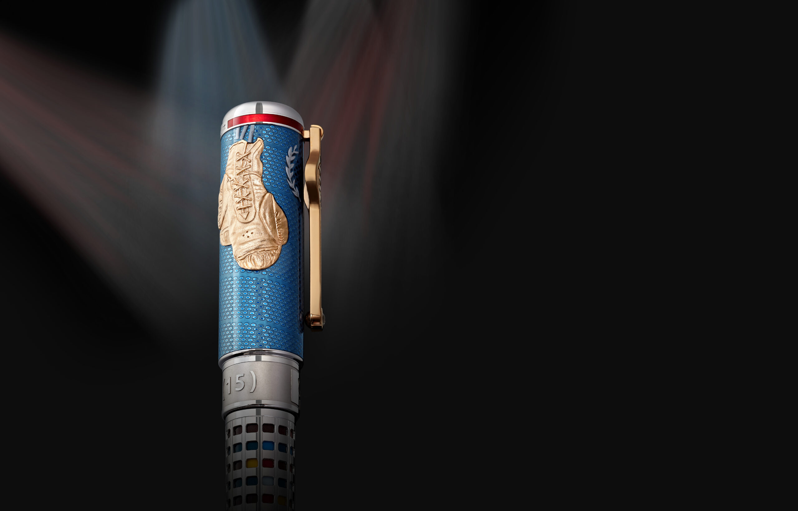 Chaque instrument d’écriture de la collection Montblanc Great Characters Mohamed Ali™ est conçu avec soin et attention aux détails, en utilisant des matériaux de haute qualité tels que le cuir, l’or et la résine précieuse. Le design est inspiré par les éléments liés à la boxe, tels que les bandages portés par les boxeurs, les cordes du ring et les ceintures de champion du monde. Chaque détail a été élaboré pour rappeler l’incroyable parcours de Mohamed Ali, de sa carrière de boxeur à son militantisme pour les droits civiques.