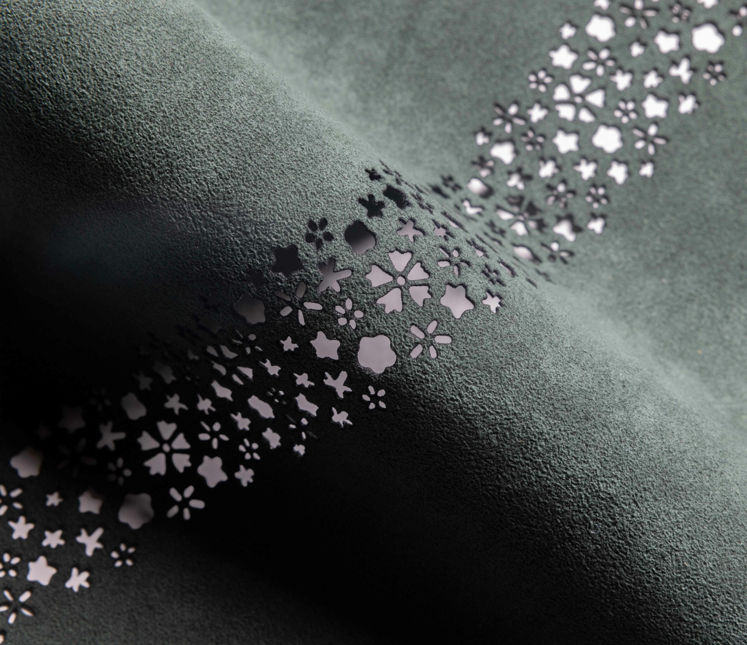Alcantara continue de repousser les limites de l’innovation en intégrant des techniques avancées telles que la sérigraphie complexe, le relief tridimensionnel et la broderie raffinée, tout en restant fidèle à l’artisanat traditionnel. Ces méthodes permettent de créer des motifs sophistiqués et des effets visuels surprenants, offrant ainsi une expérience sensorielle et esthétique unique.