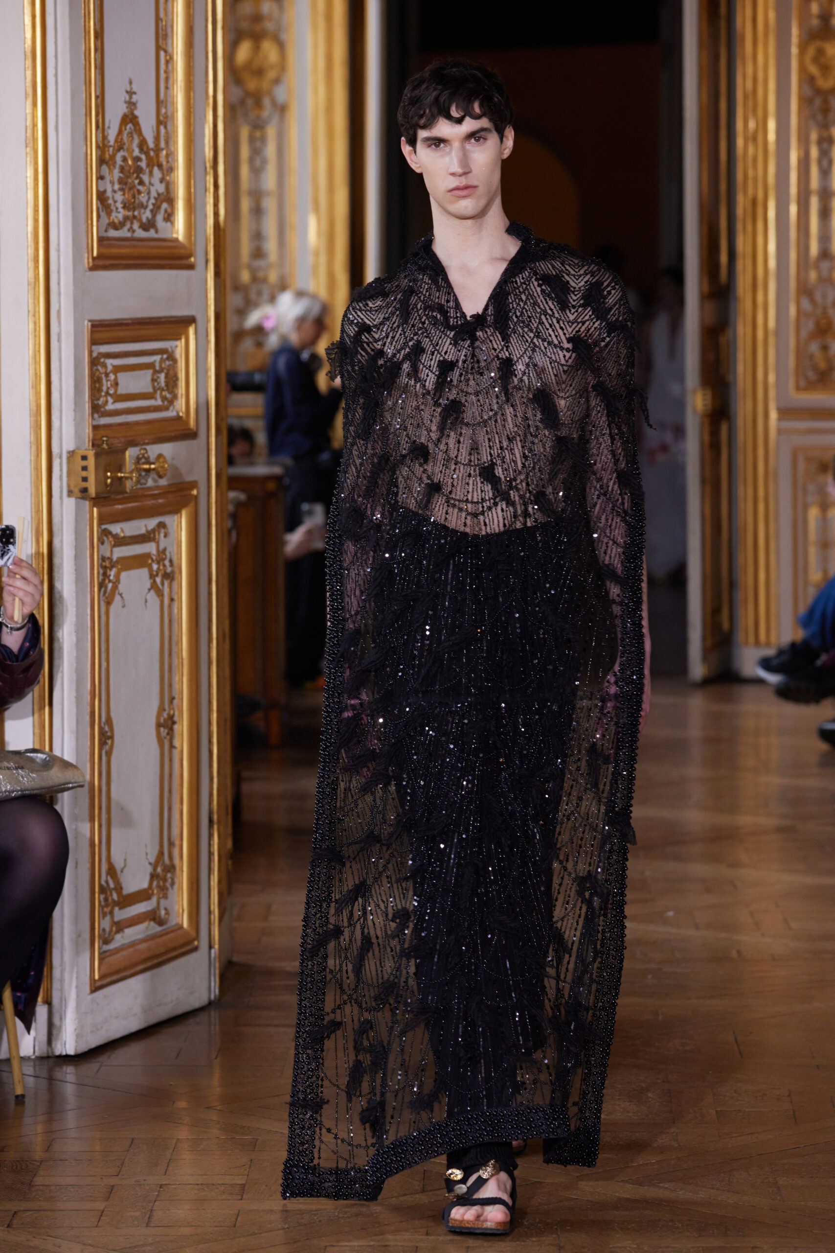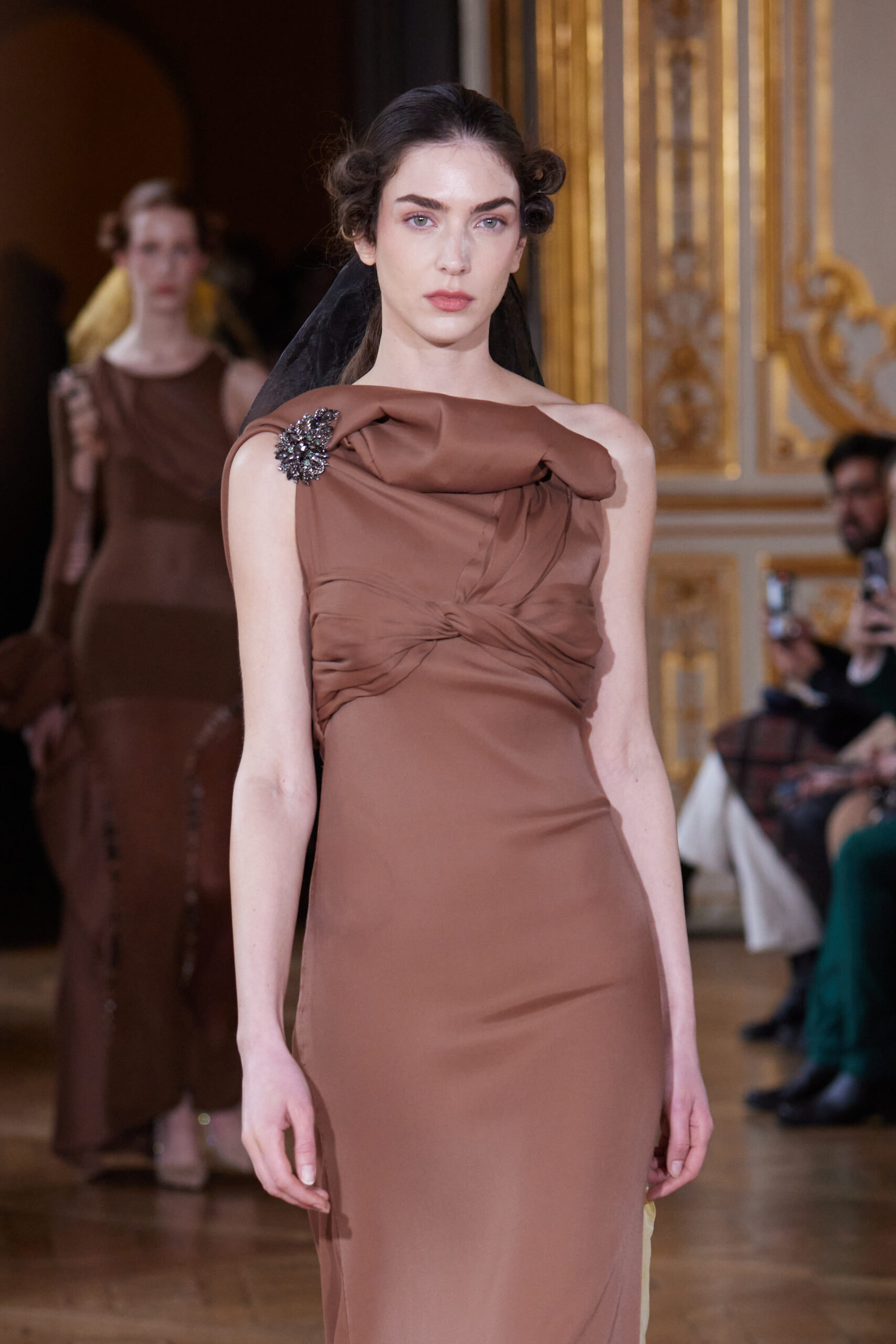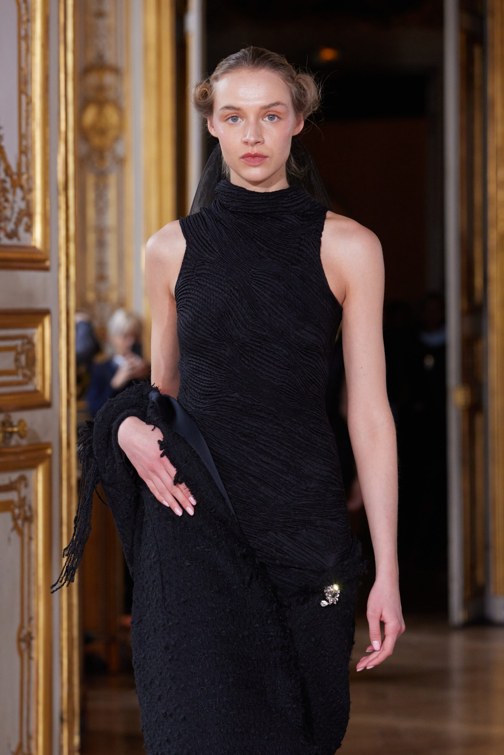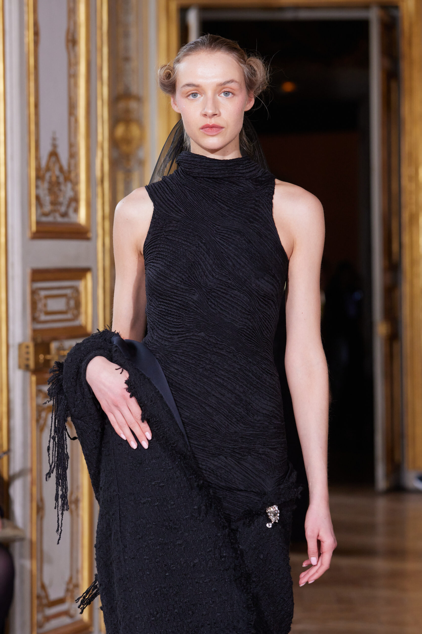 La collection évoque une émotion de légèreté et de fluidité, symbolisée par des créations qui semblent flotter autour du corps, offrant un hommage à la résilience humaine et au mouvement. Les silhouettes émergent telles des visions à travers la brume, portant en elles la marque d’un artisanat qui respecte et honore la nature.