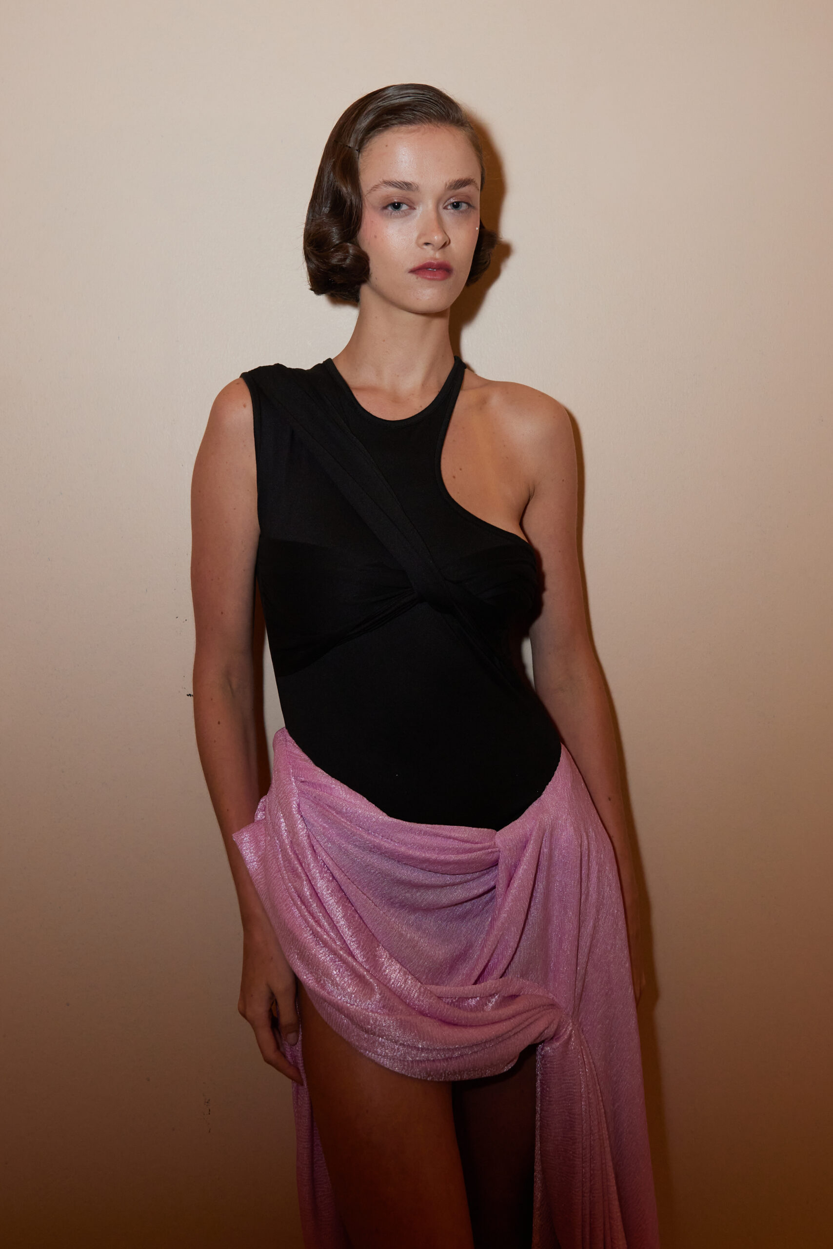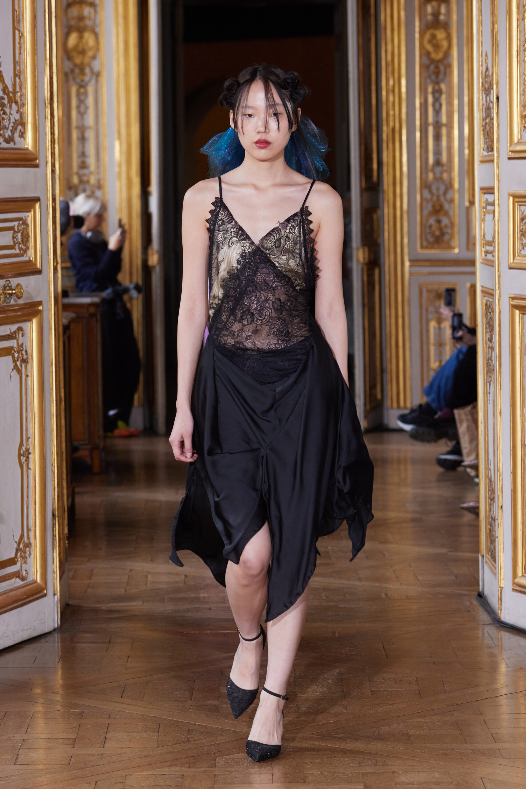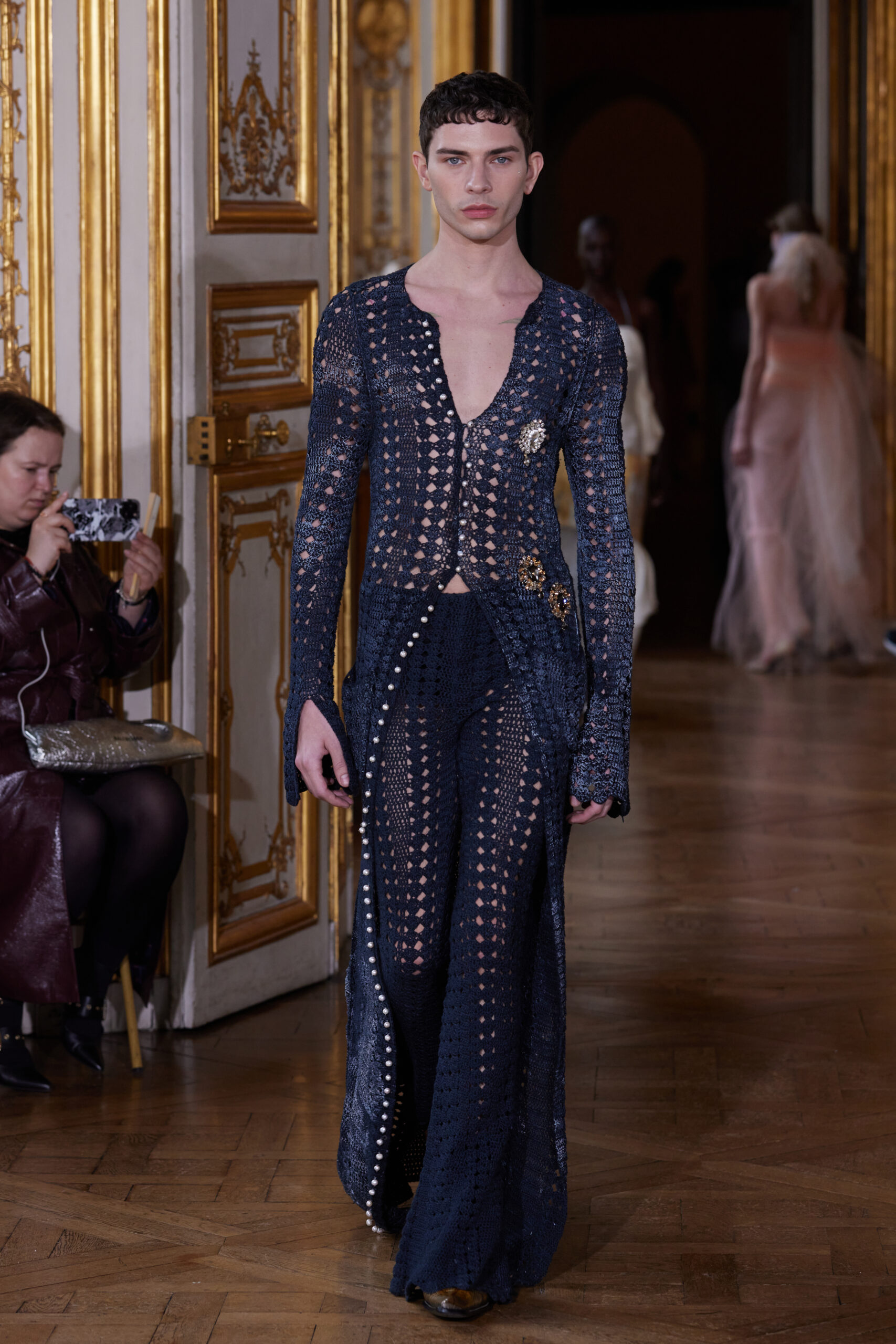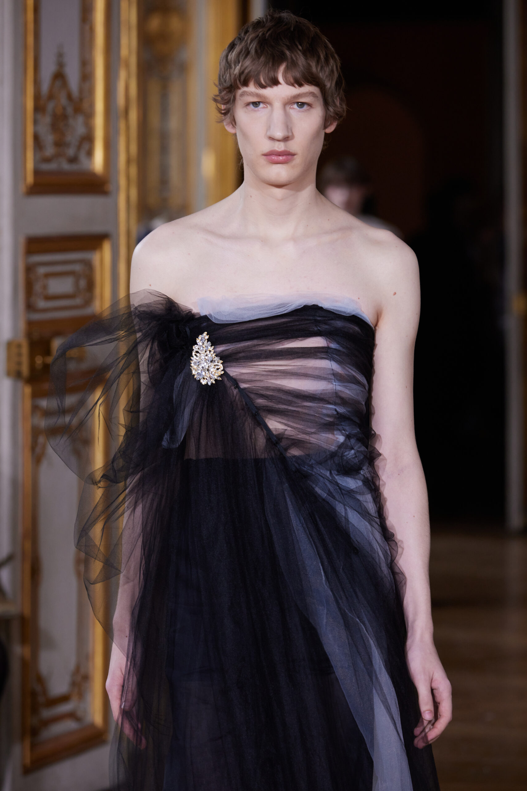 La collection évoque une émotion de légèreté et de fluidité, symbolisée par des créations qui semblent flotter autour du corps, offrant un hommage à la résilience humaine et au mouvement. Les silhouettes émergent telles des visions à travers la brume, portant en elles la marque d’un artisanat qui respecte et honore la nature.