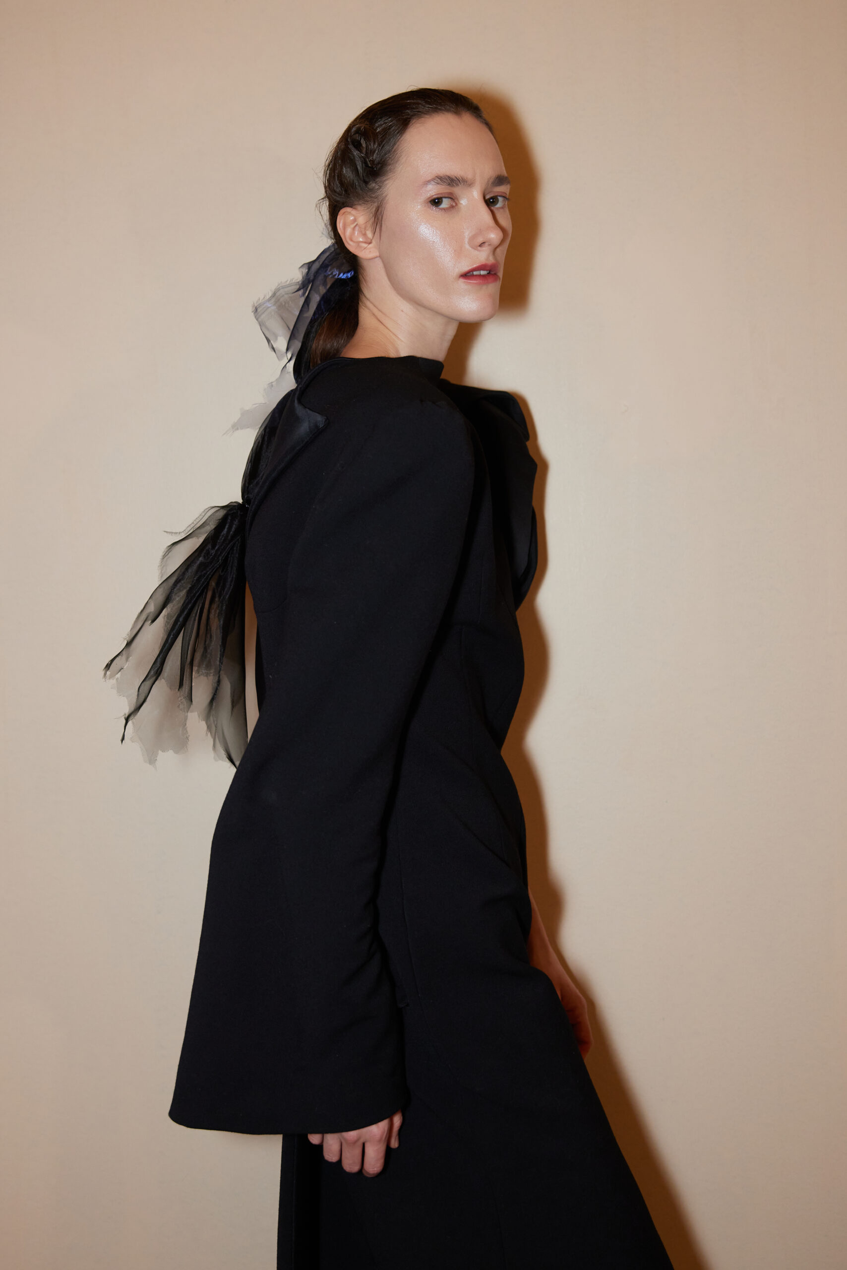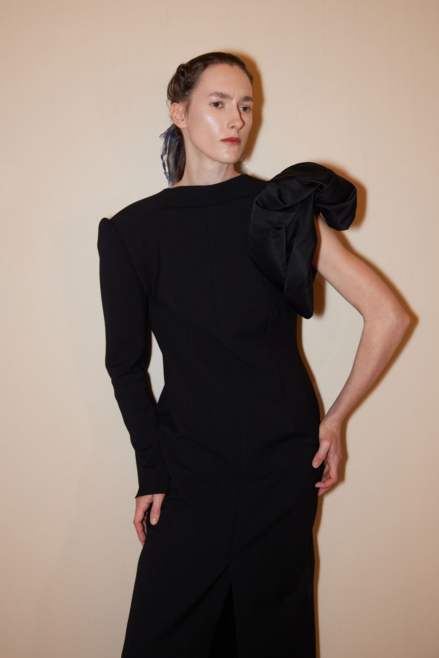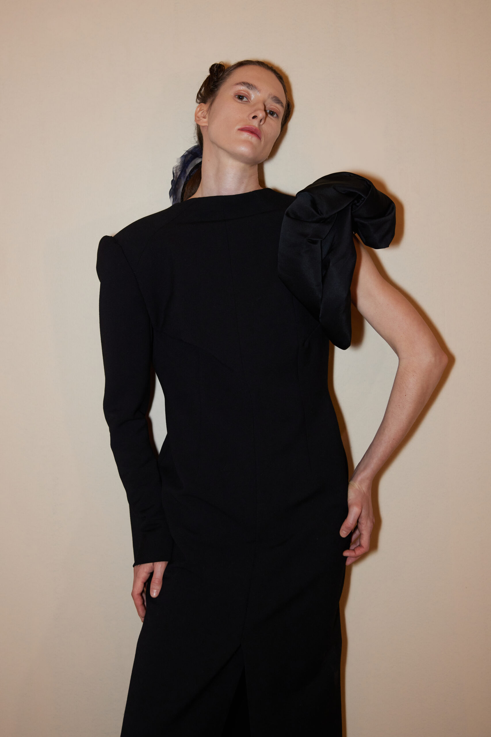 L’essence de cette collection repose sur une réflexion profonde sur la beauté et la fonction de la mode dans une ère digitale. Peet Dullaert souhaite remettre en question les normes établies de la couture en exposant le processus créatif derrière chaque pièce. Le résultat est une célébration de la diversité des silhouettes humaines, entièrement façonnées à la main, sans l’intervention de machines. Cette approche met en lumière le savoir-faire artisanal exceptionnel de l’Atelier Dullaert, où chaque couture devient un acte de création.