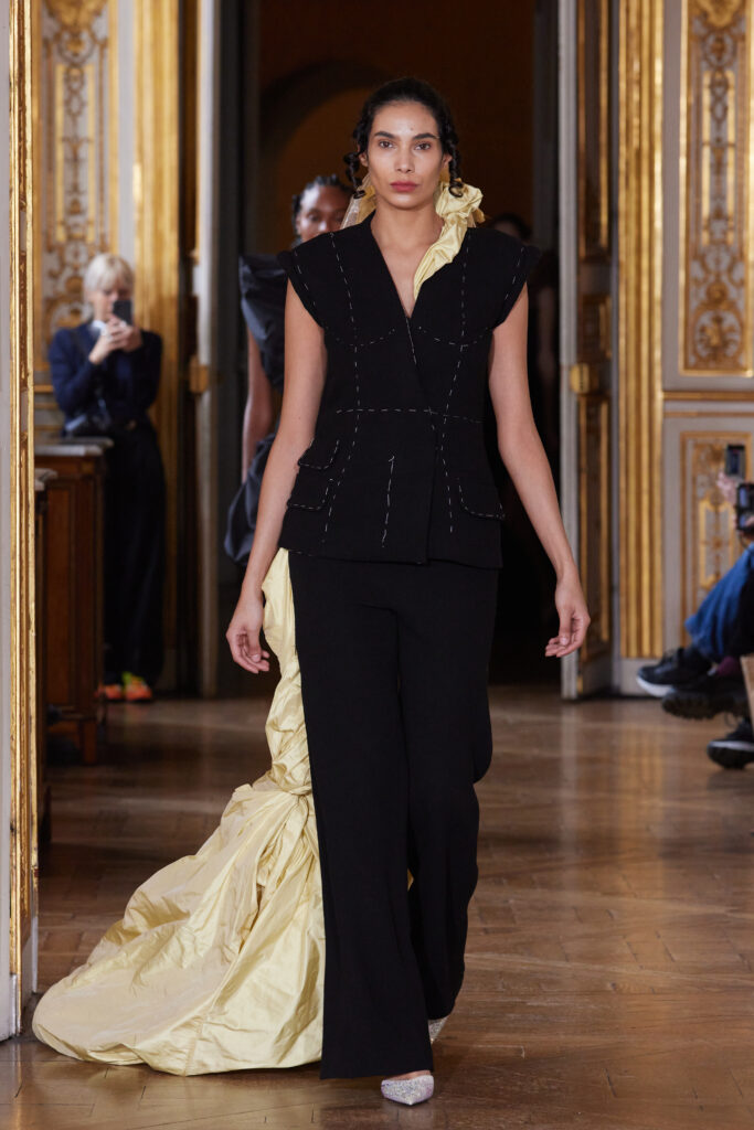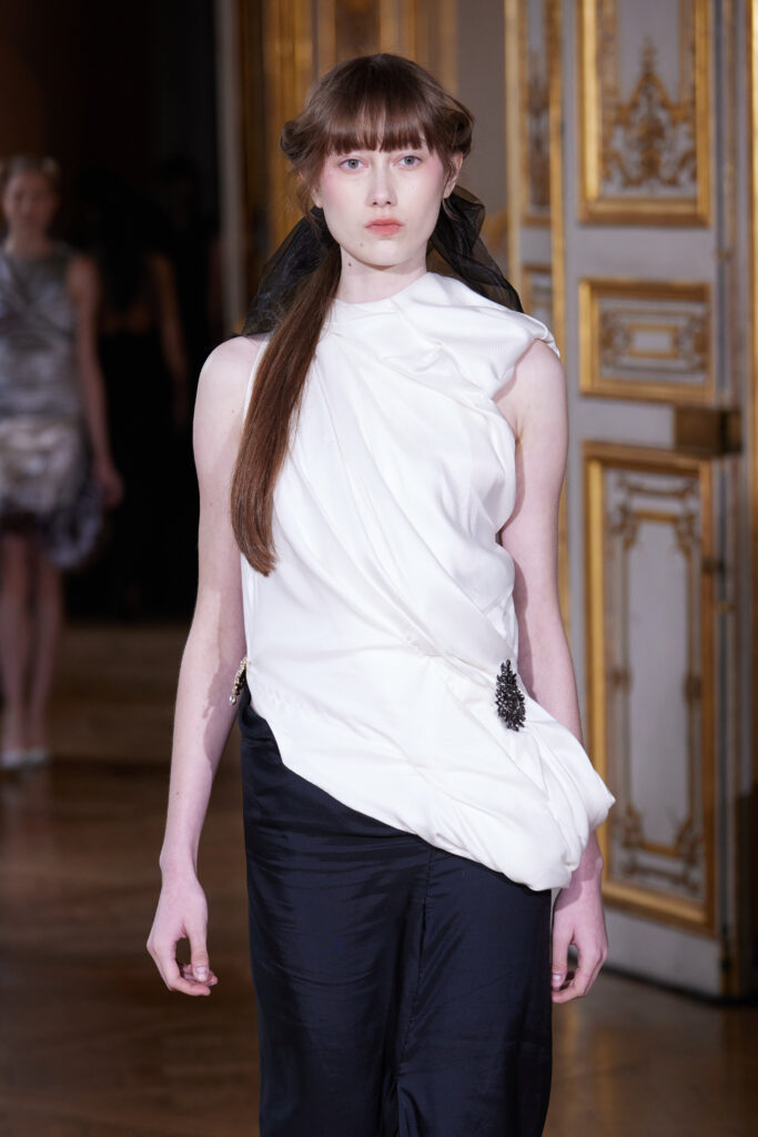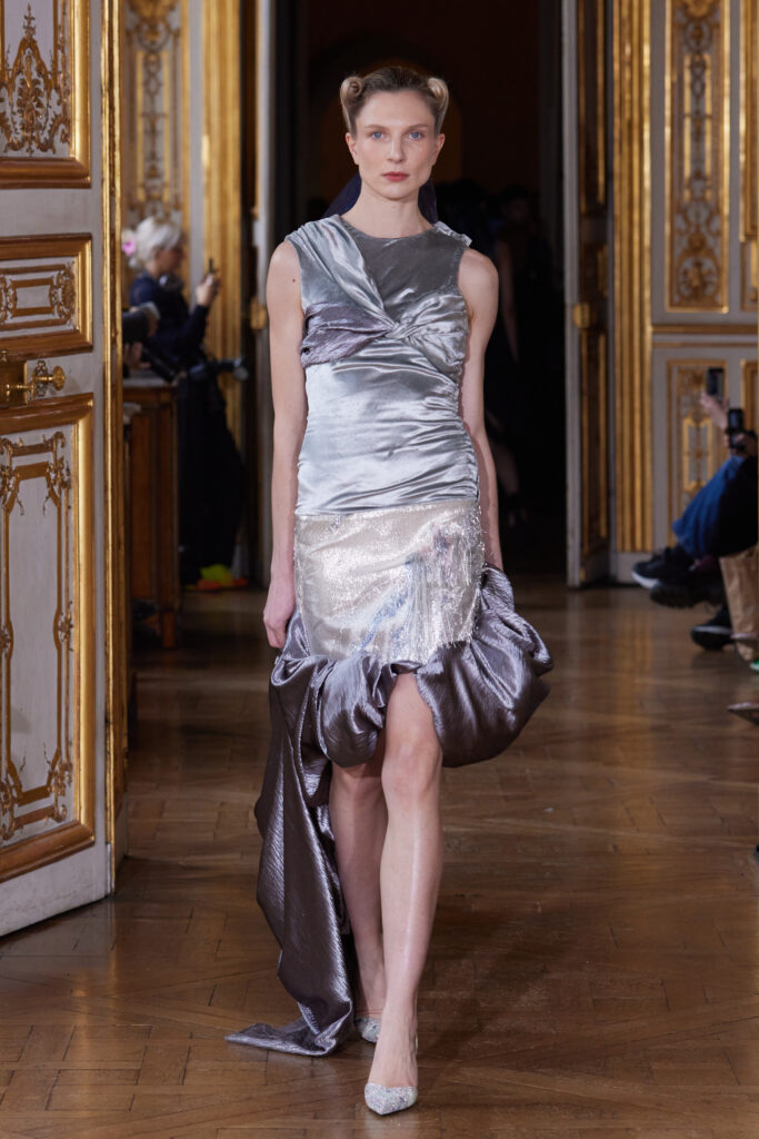 La collection Printemps-Été 2024 de Peet Dullaert, présentée à l’Hôtel de Soubise, ne se contente pas de dévoiler des vêtements ; elle révèle une philosophie de la mode qui embrasse pleinement l’innovation, le respect de l’environnement et l’humanité. Dans cet esprit, Peet Dullaert redéfinit la haute couture, offrant un aperçu d’un avenir où la mode et la durabilité ne font qu’un.