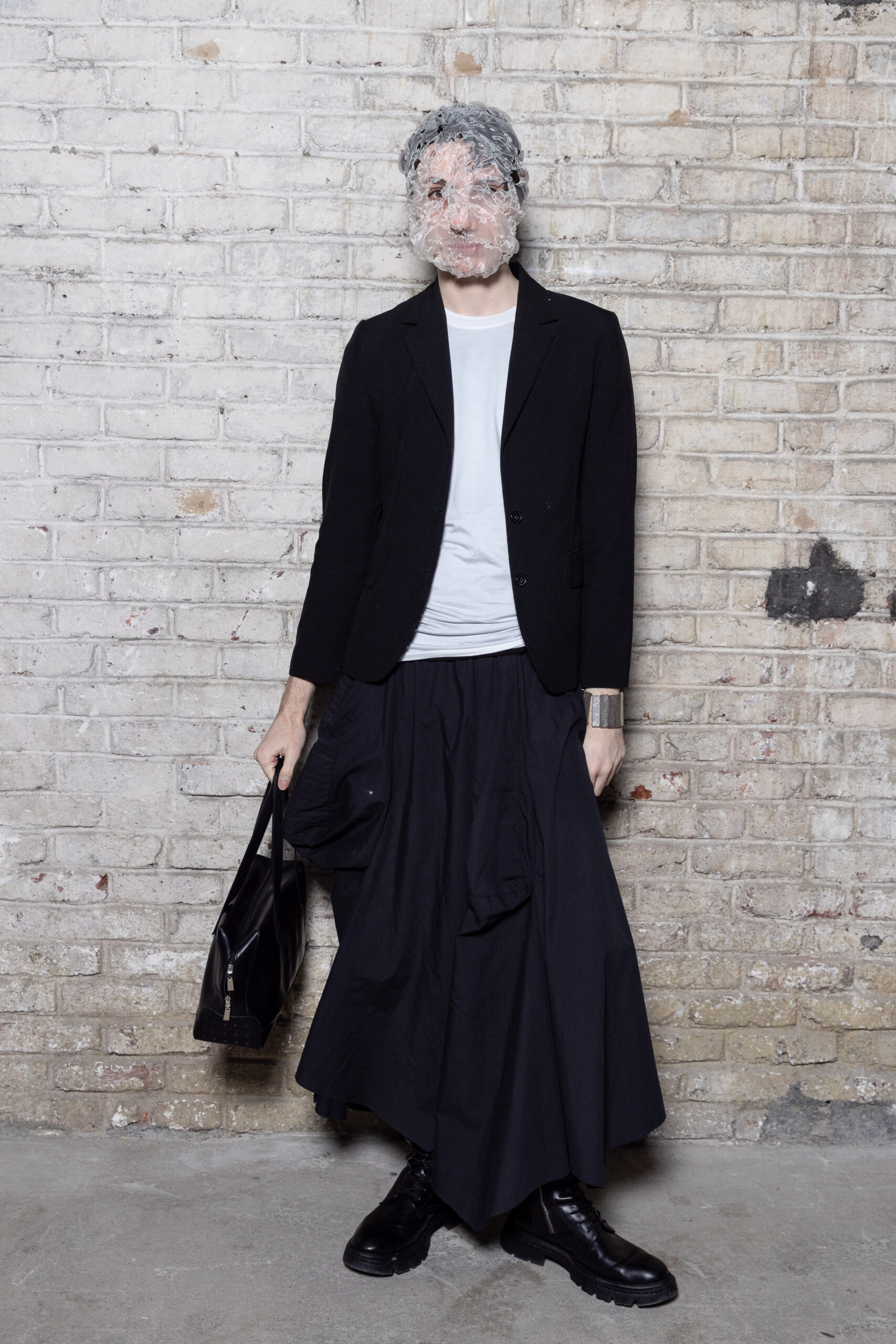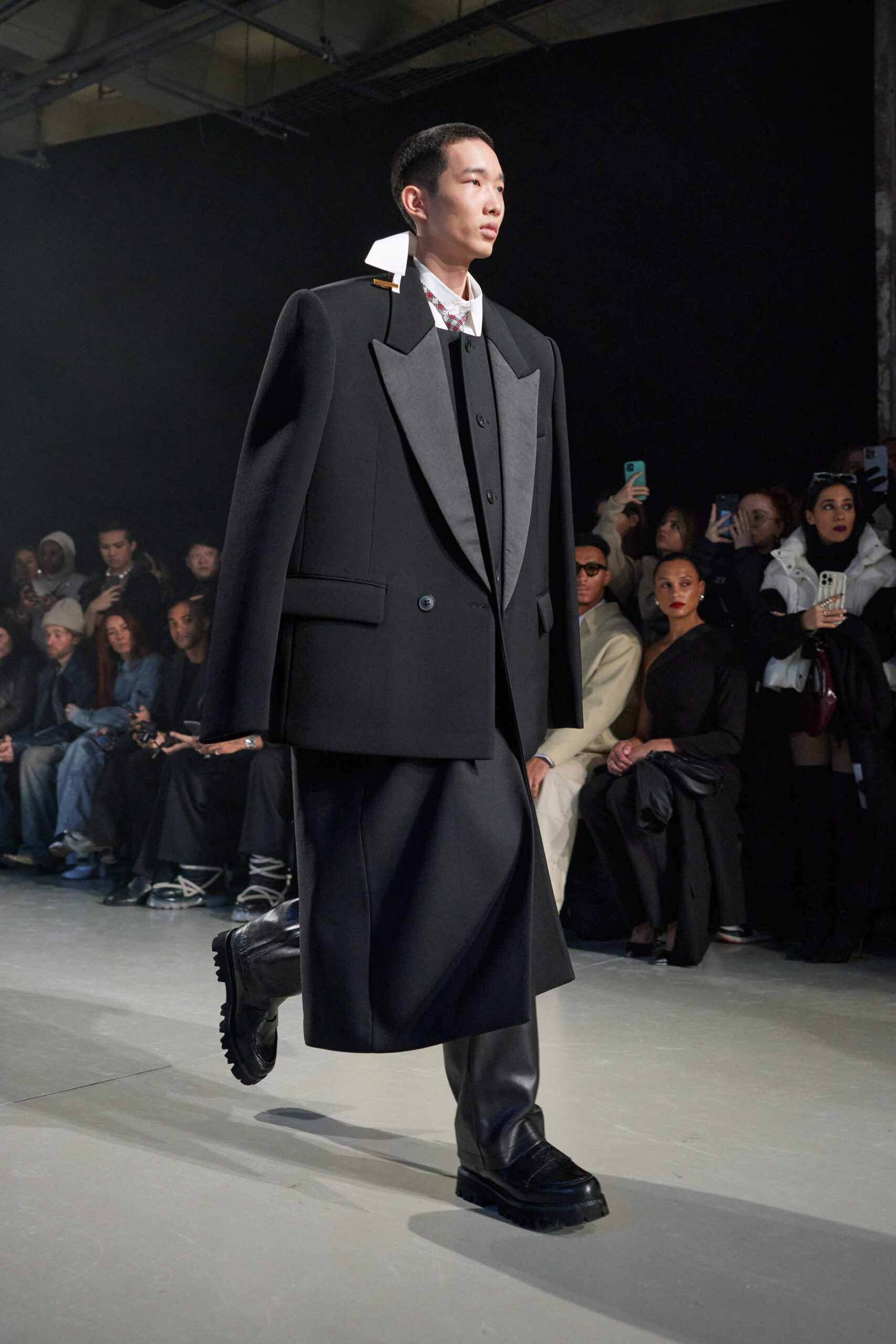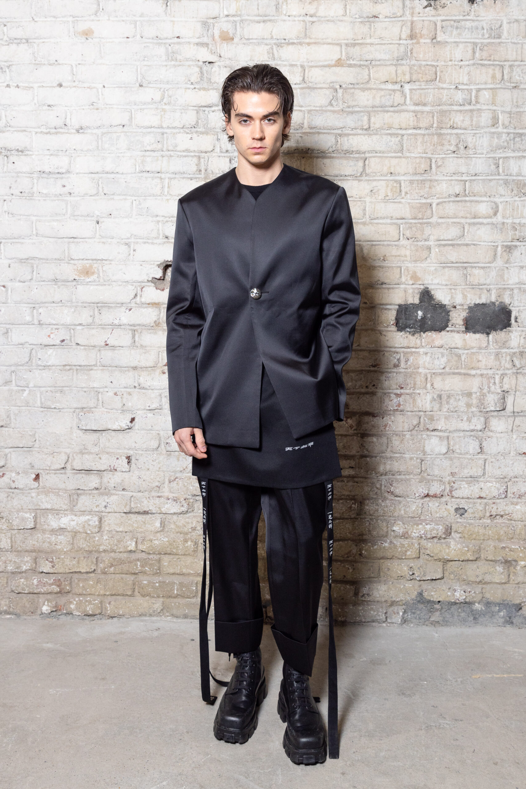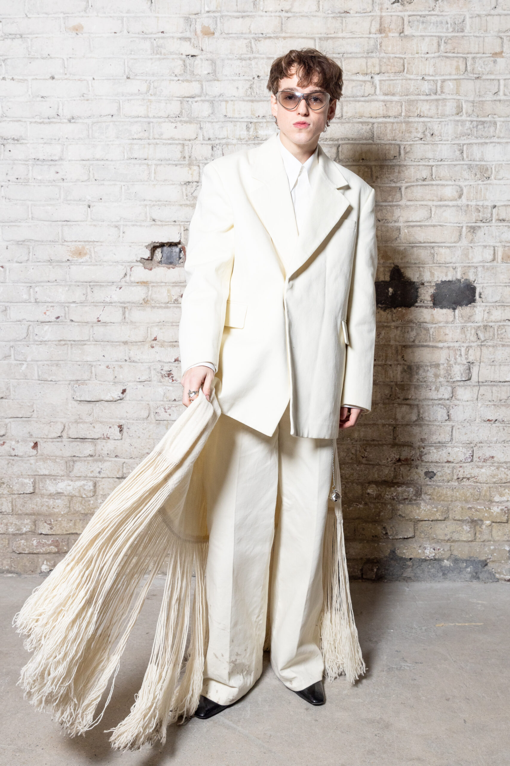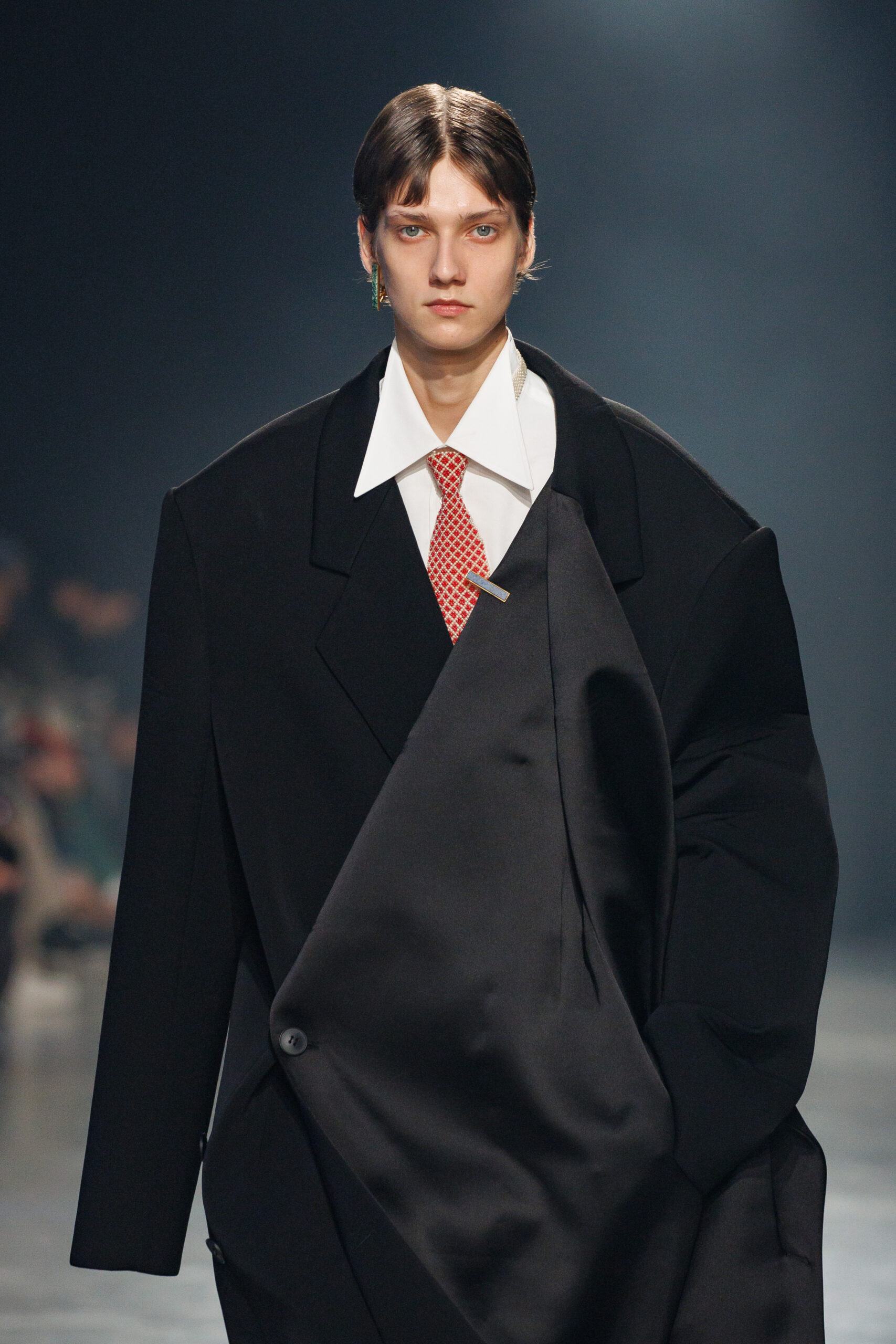 La collection est également marquée par la déconstruction et la juxtaposition des structures de la mode, créant un effet dynamique et provocateur. Ces éléments reflètent l’esprit urgent, rebelle et non-conformiste de cette génération.