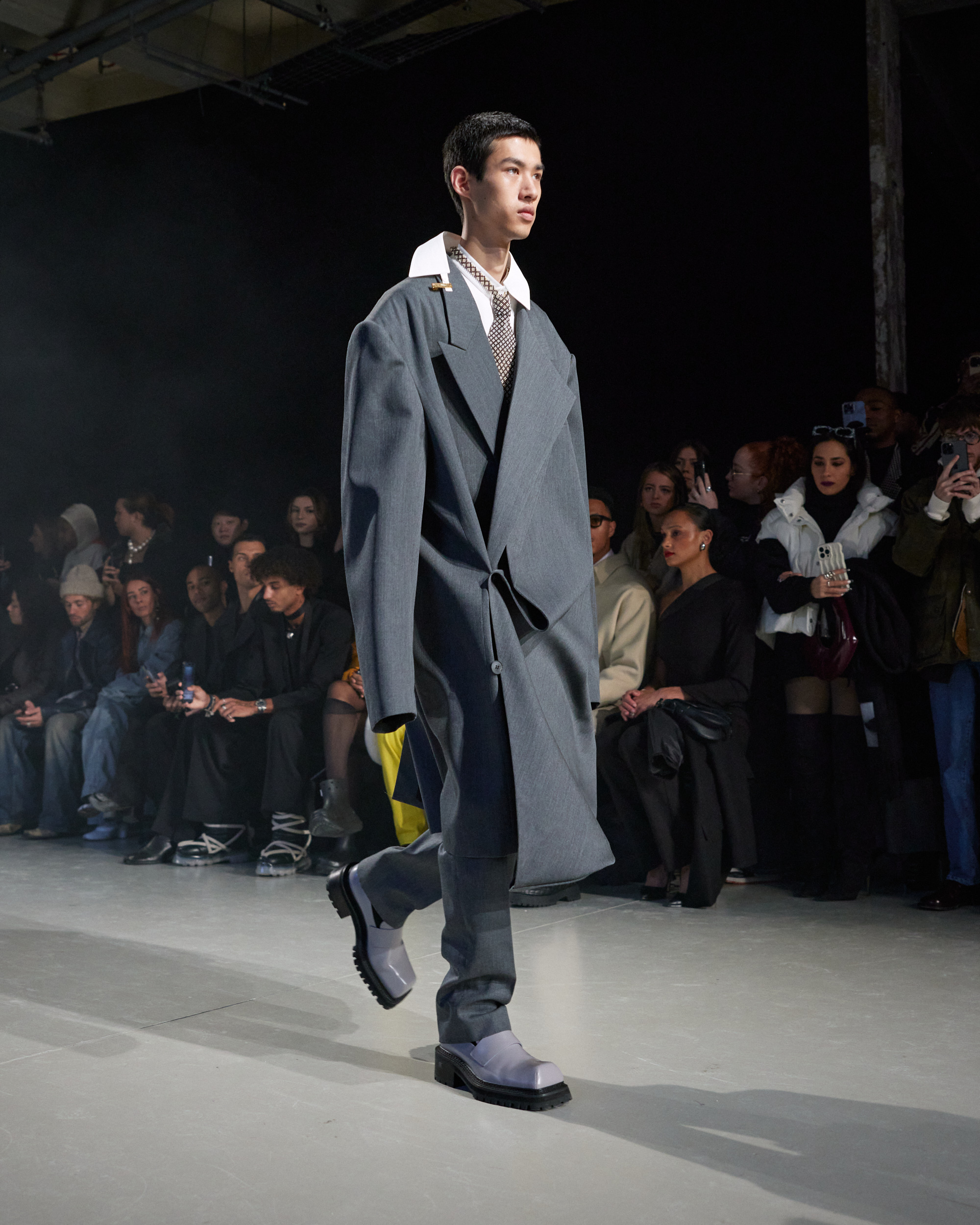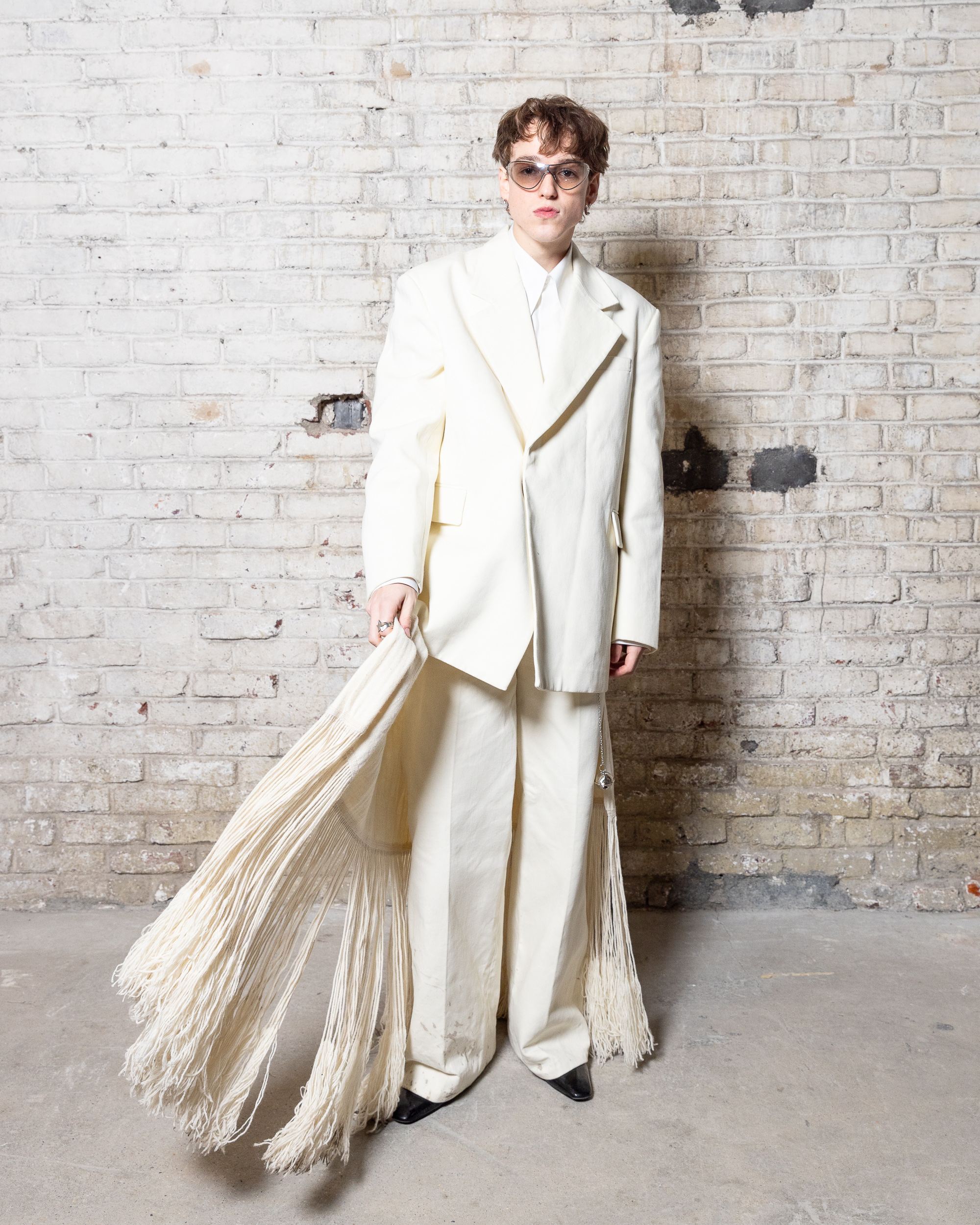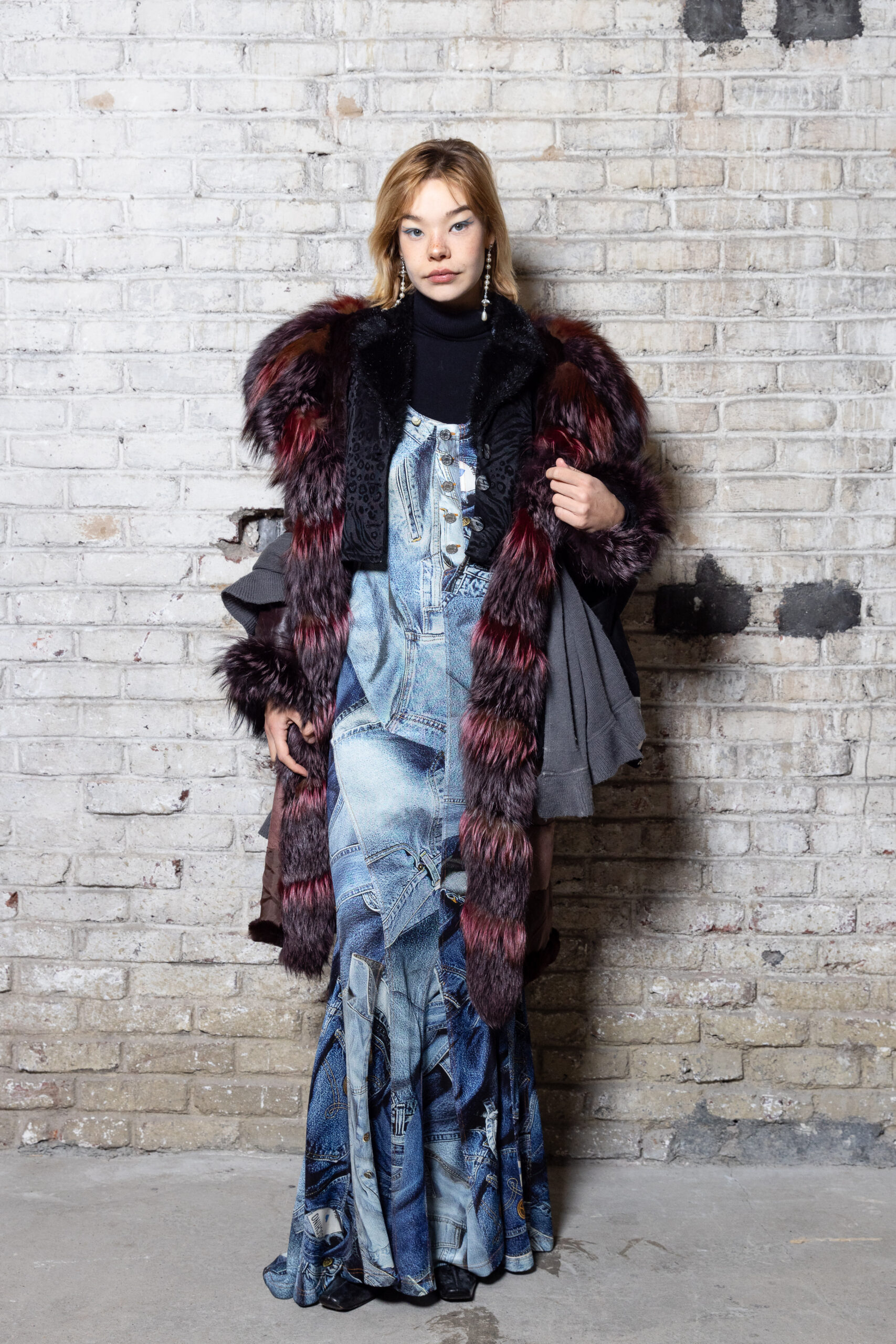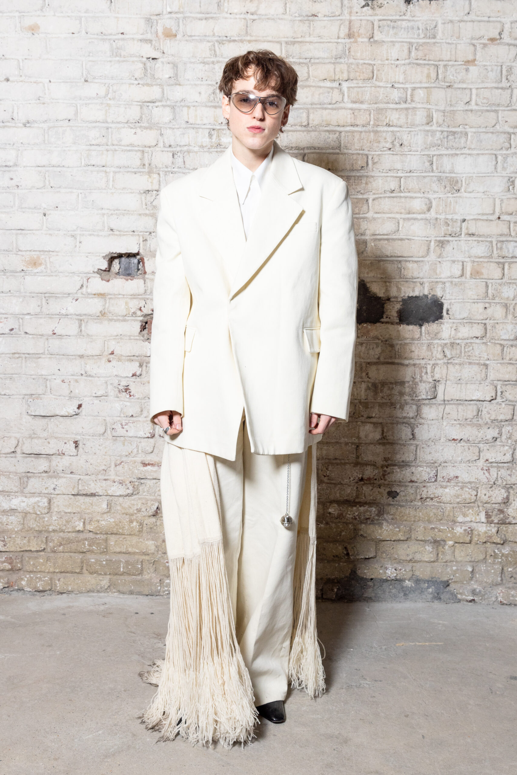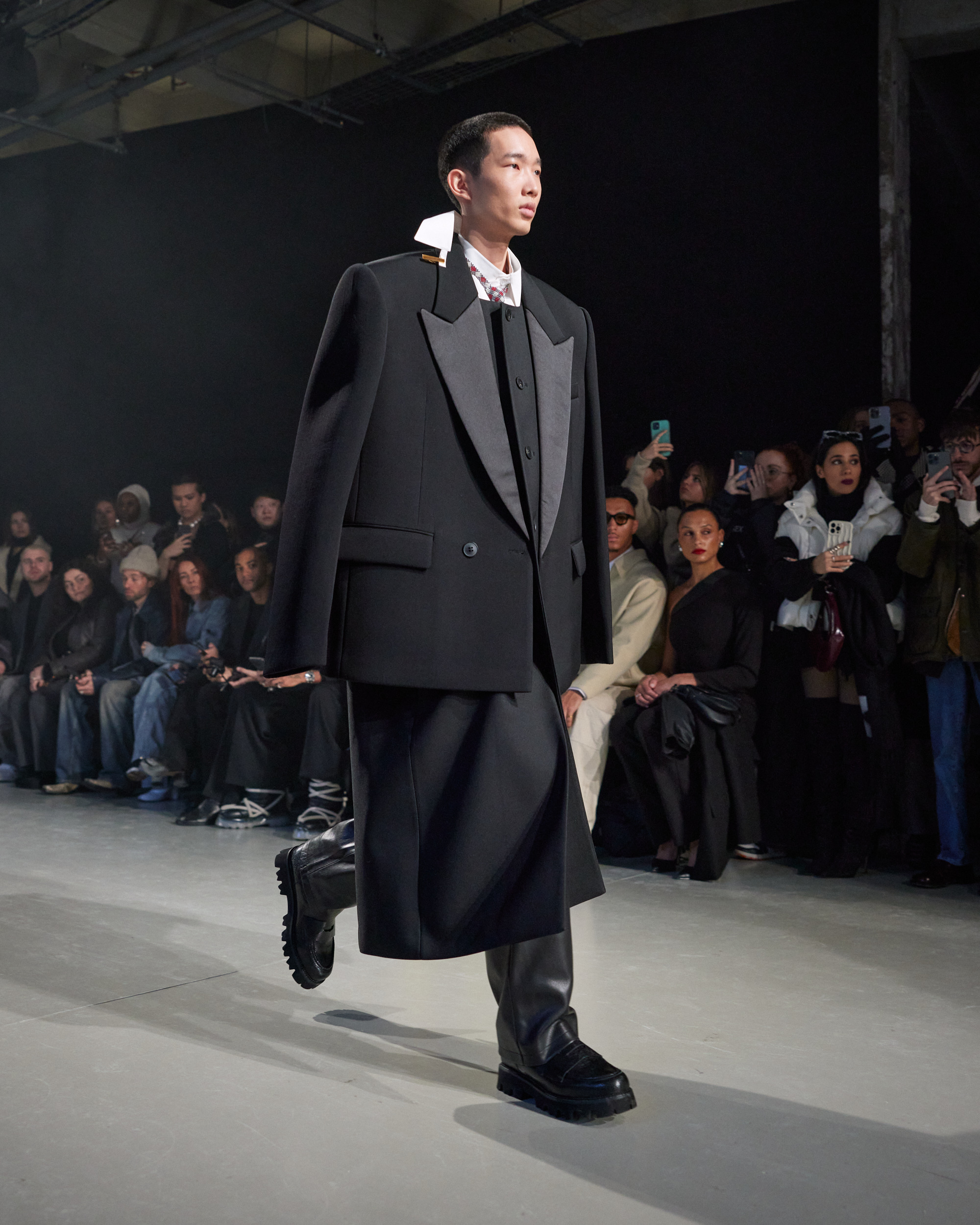 La collection est également marquée par la déconstruction et la juxtaposition des structures de la mode, créant un effet dynamique et provocateur. Ces éléments reflètent l’esprit urgent, rebelle et non-conformiste de cette génération.