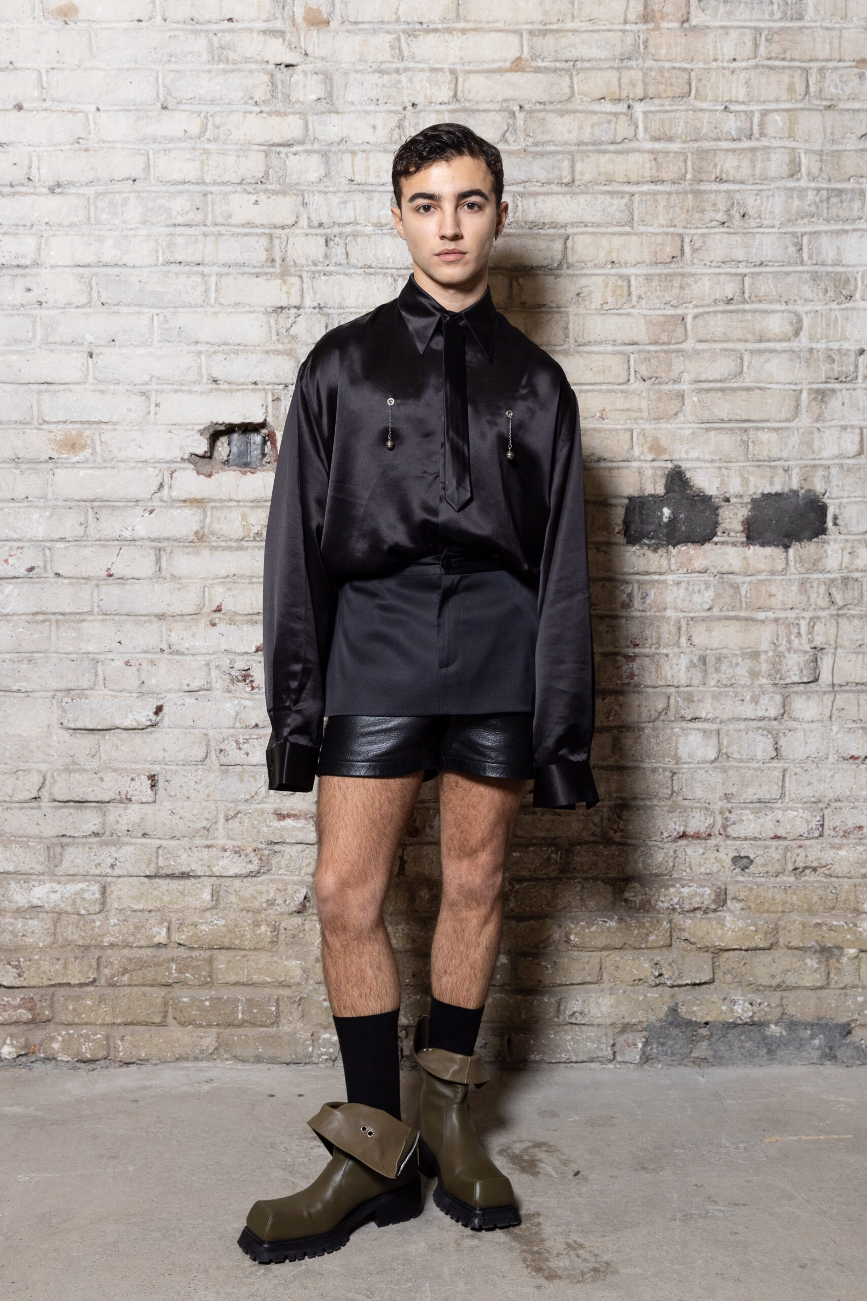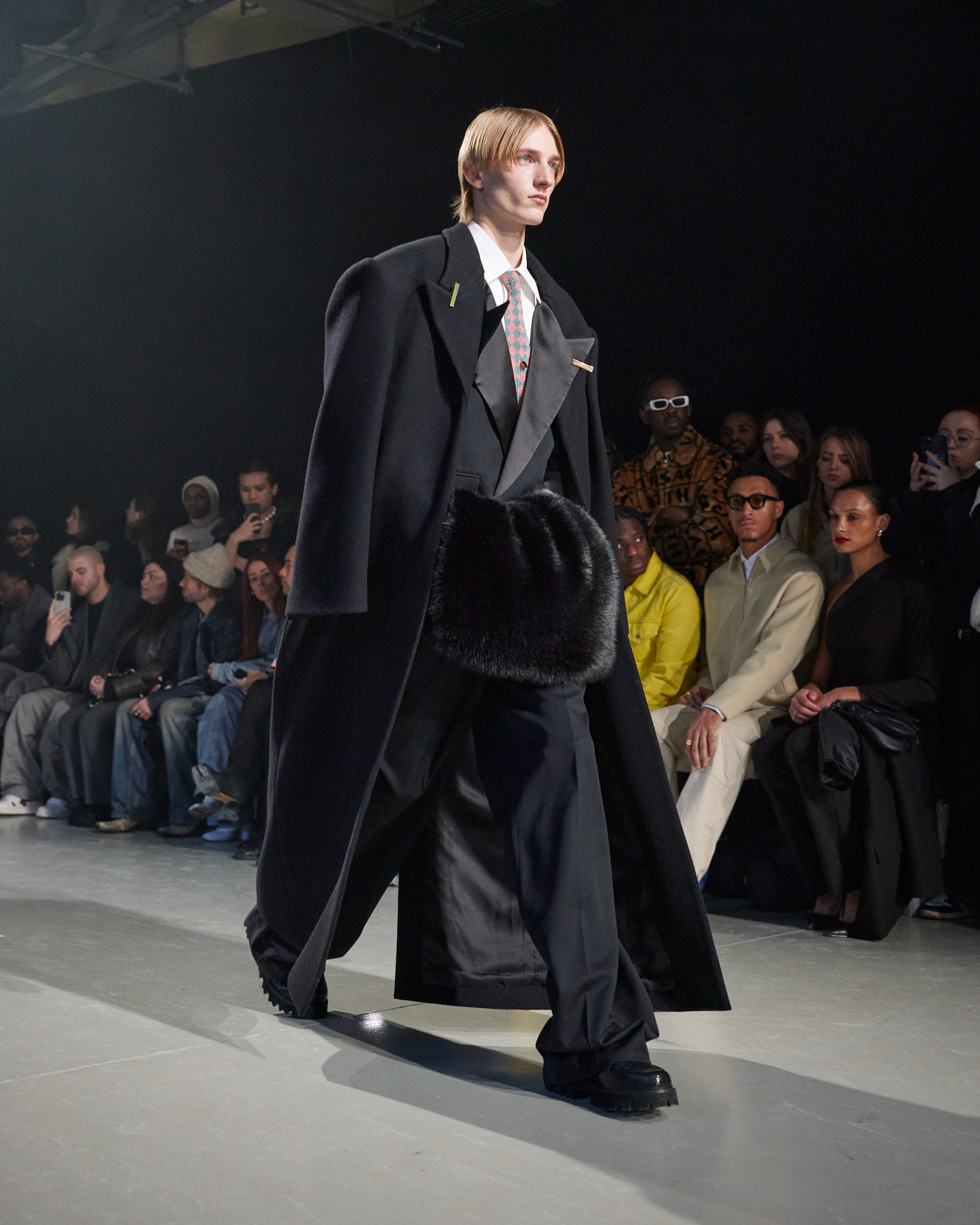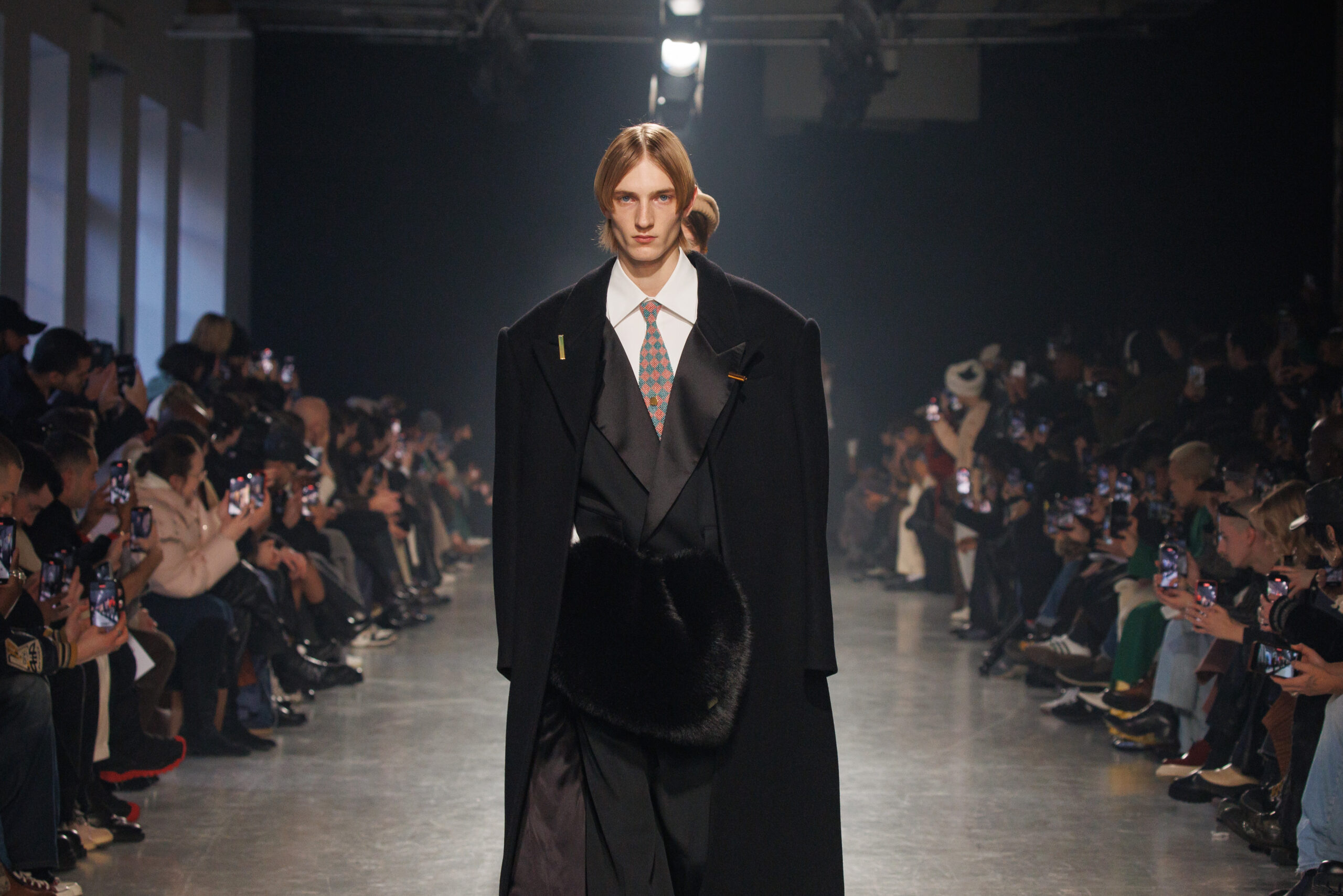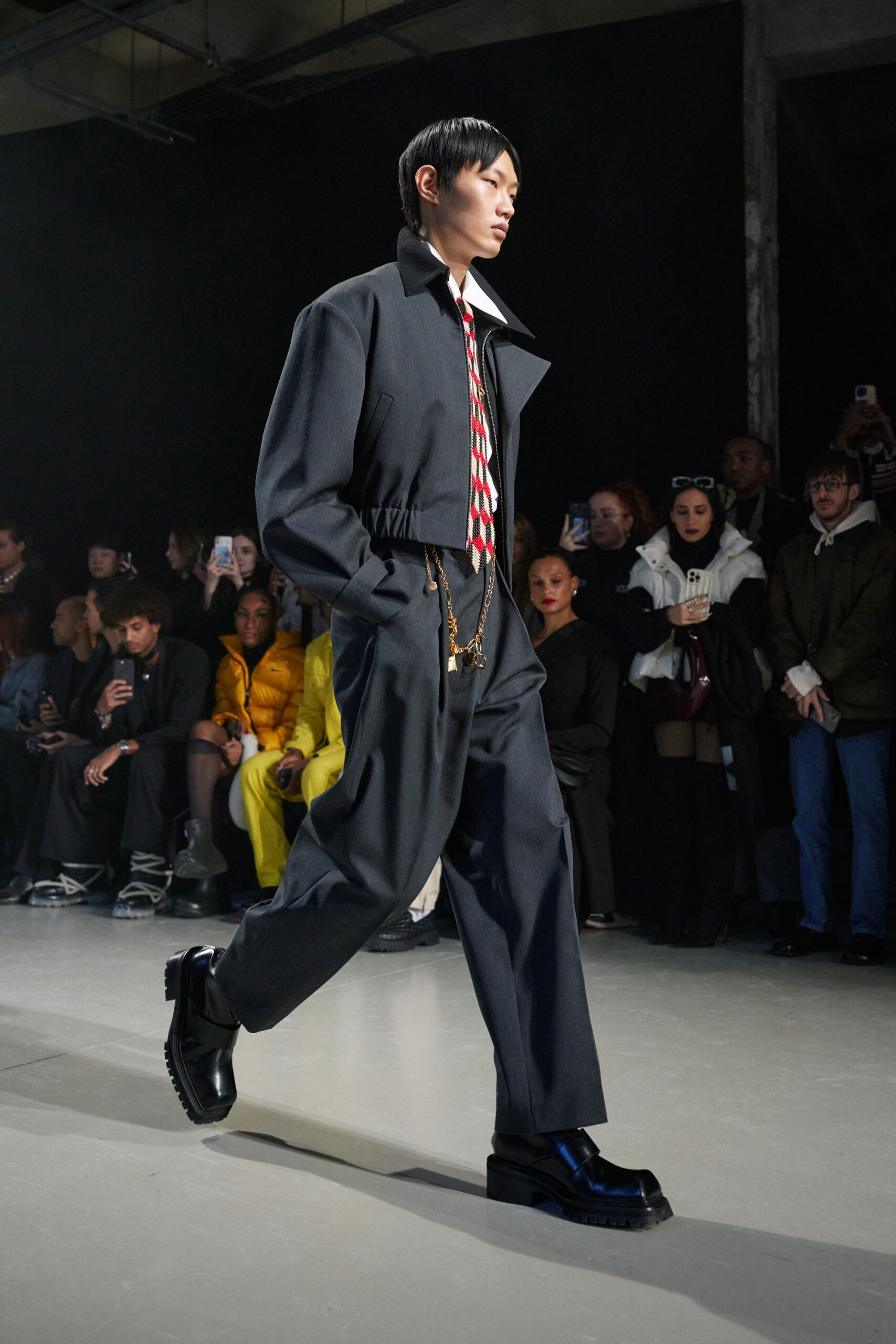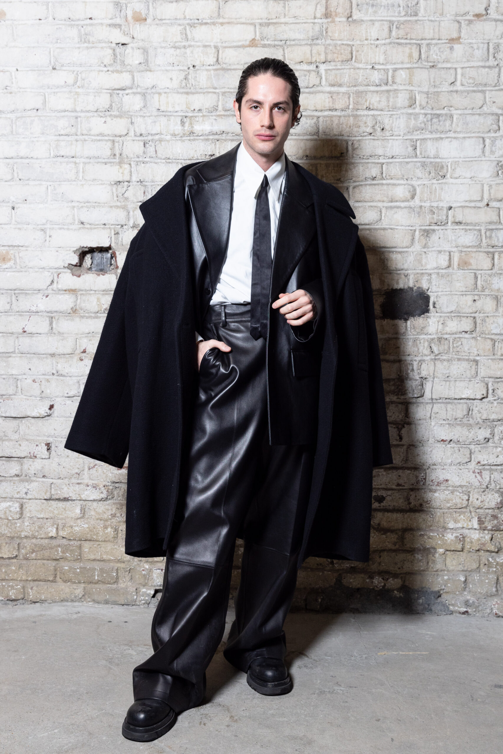 La collection est également marquée par la déconstruction et la juxtaposition des structures de la mode, créant un effet dynamique et provocateur. Ces éléments reflètent l’esprit urgent, rebelle et non-conformiste de cette génération.
