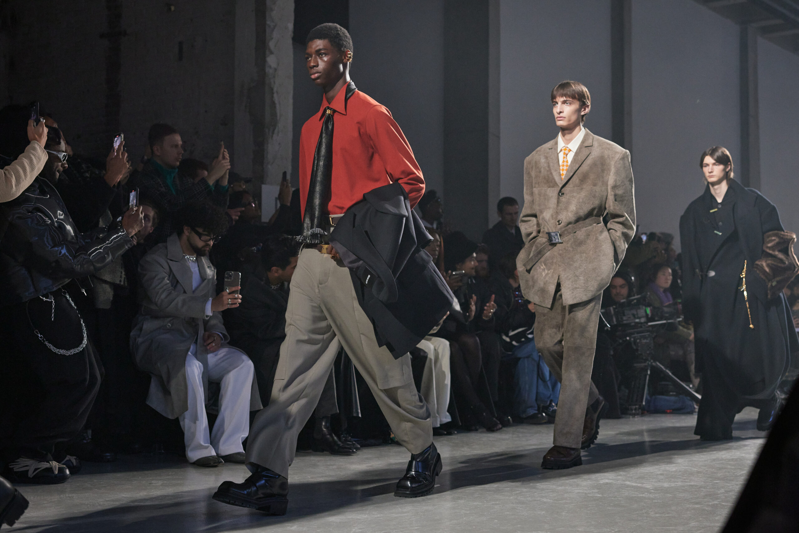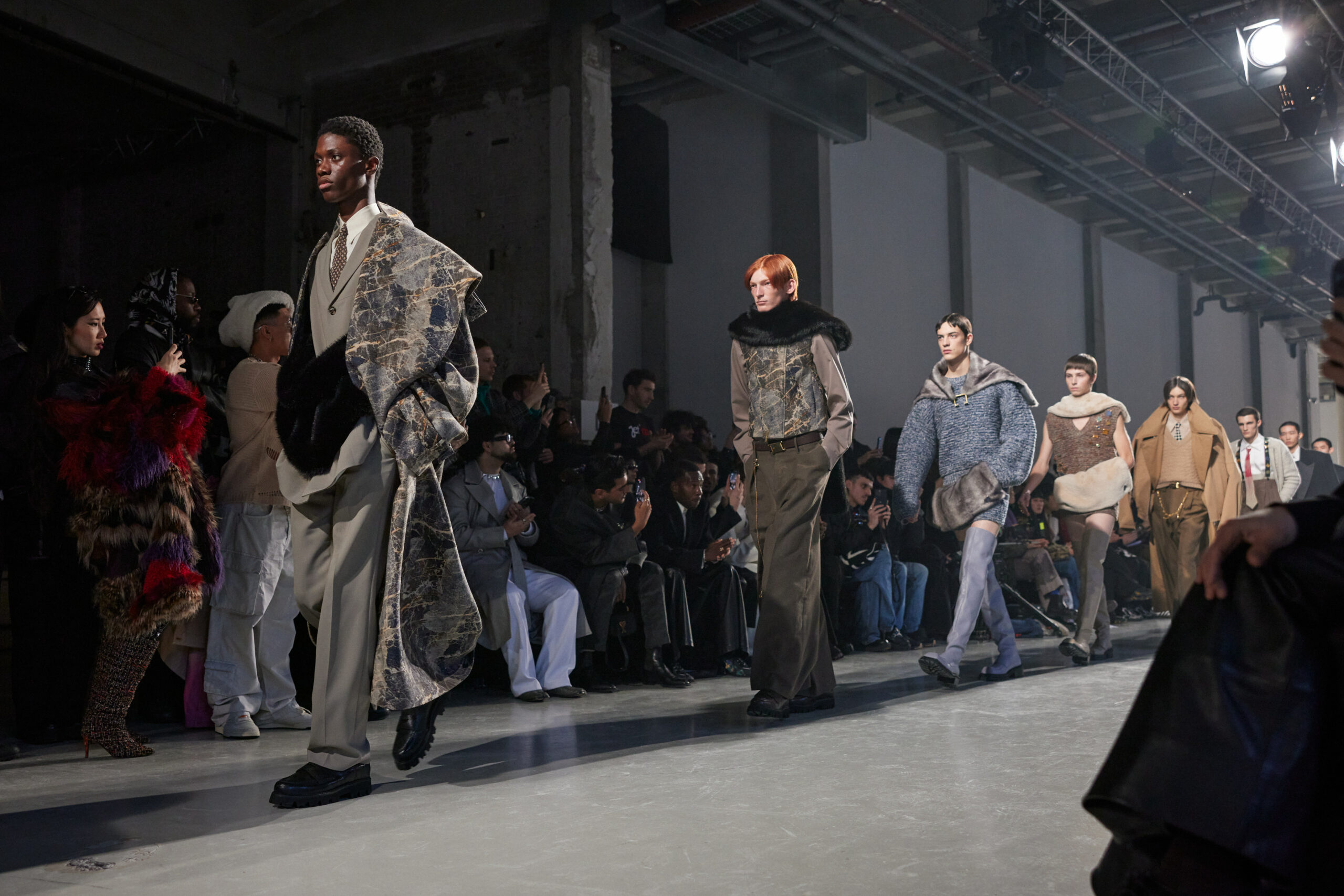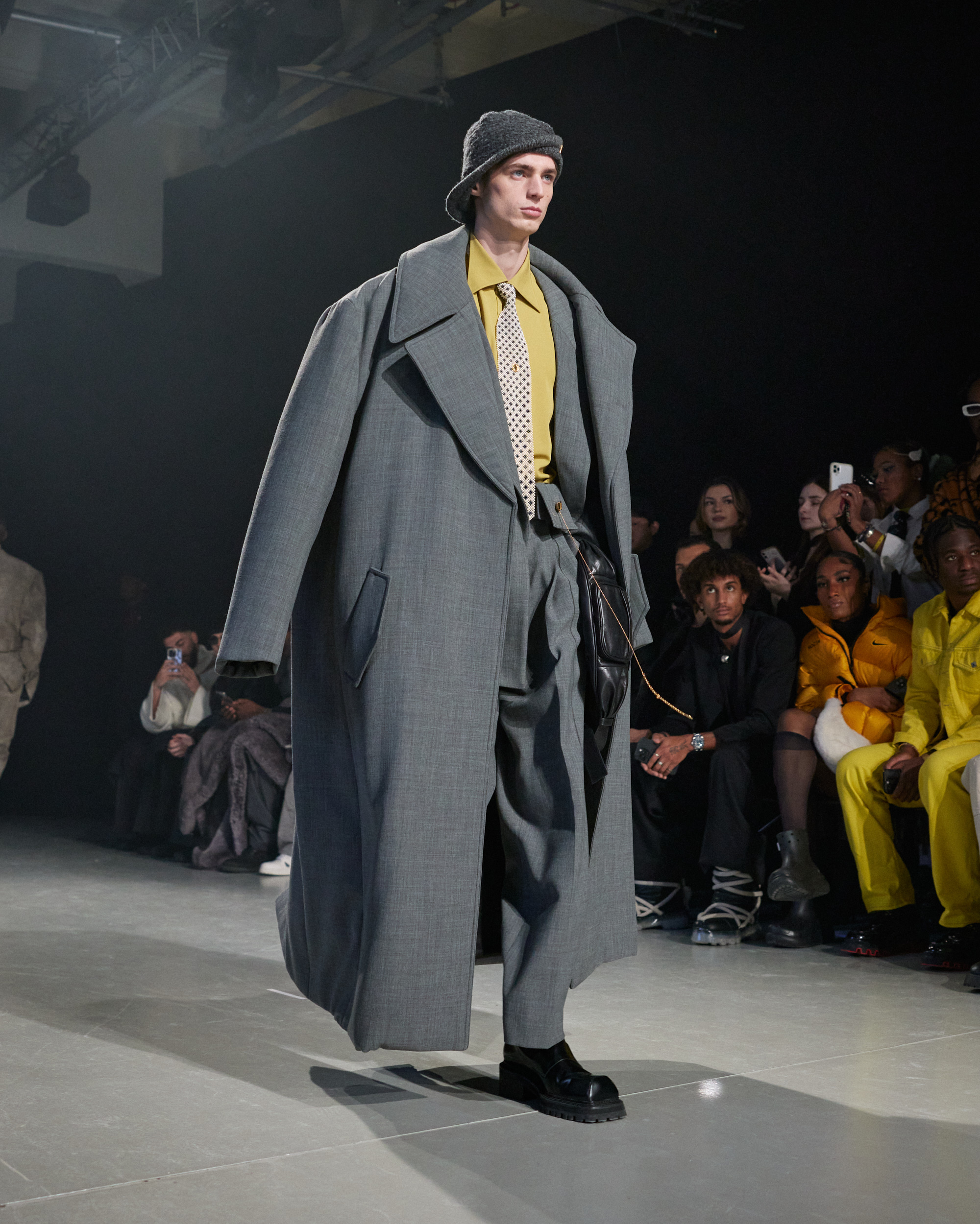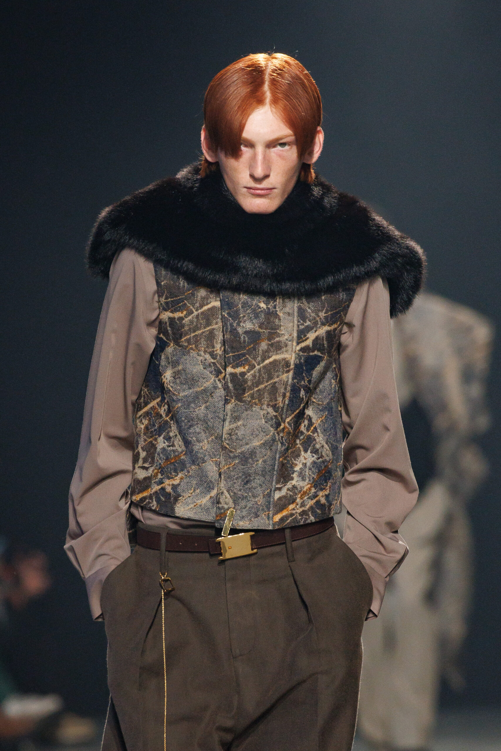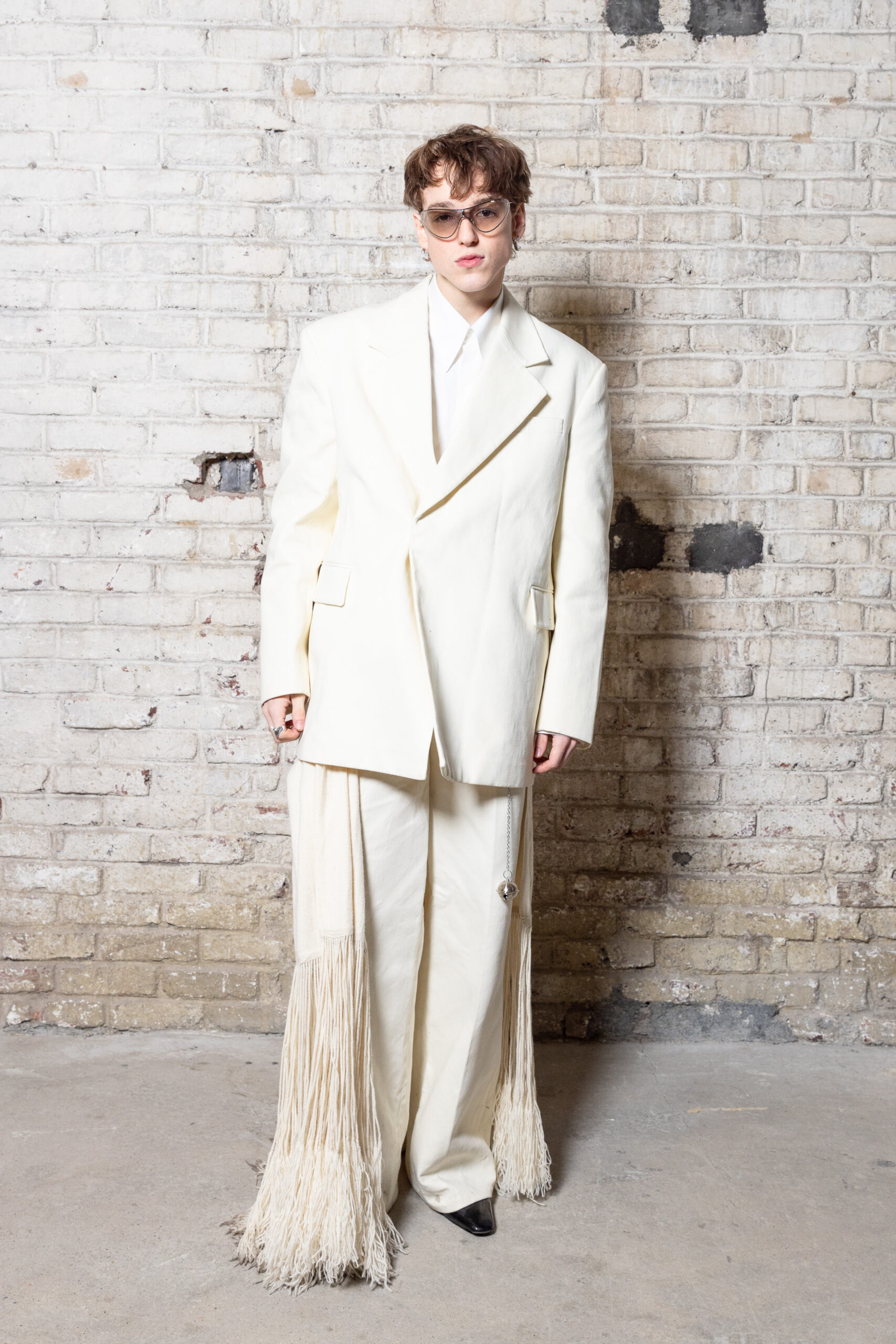 La collection est également marquée par la déconstruction et la juxtaposition des structures de la mode, créant un effet dynamique et provocateur. Ces éléments reflètent l’esprit urgent, rebelle et non-conformiste de cette génération.