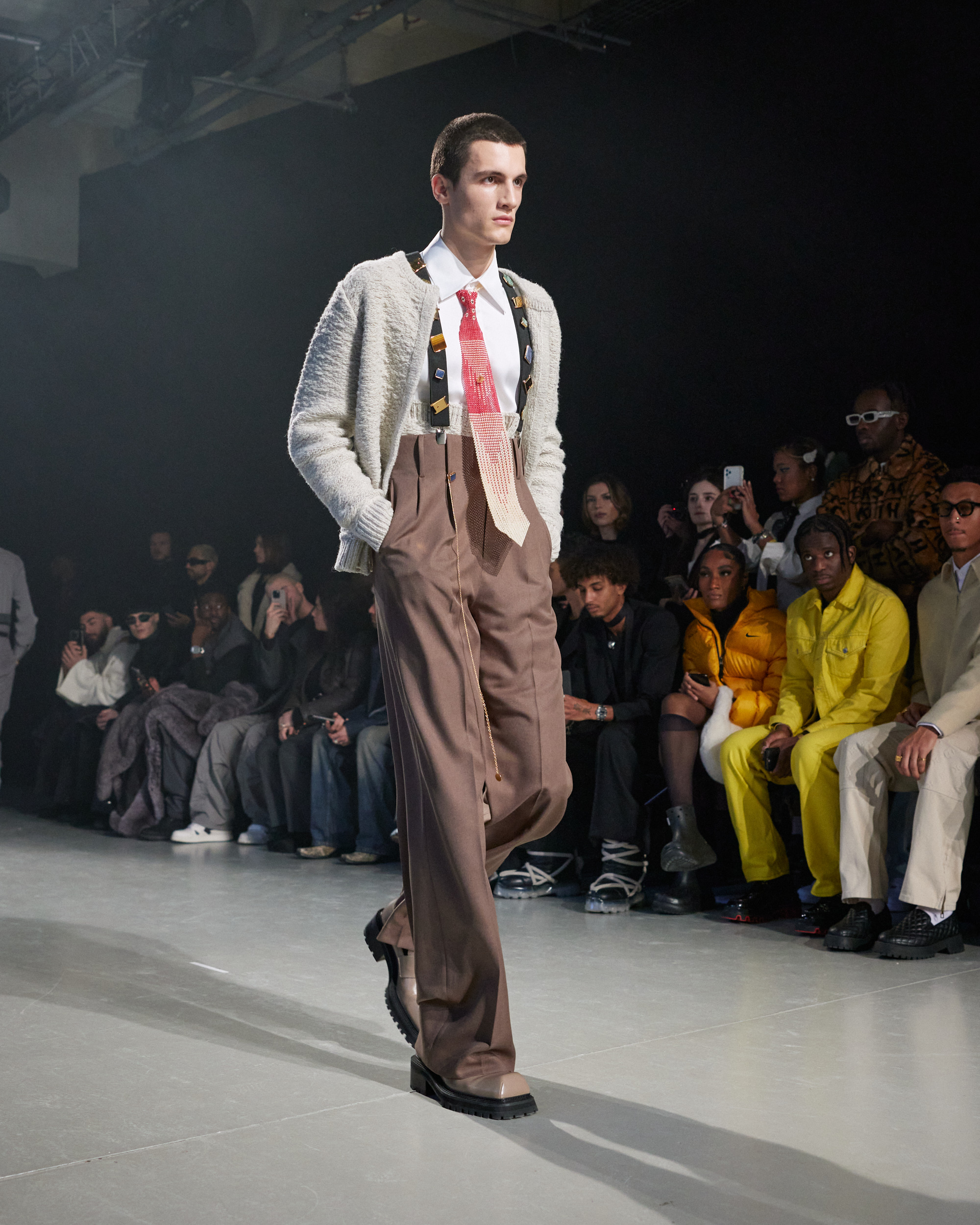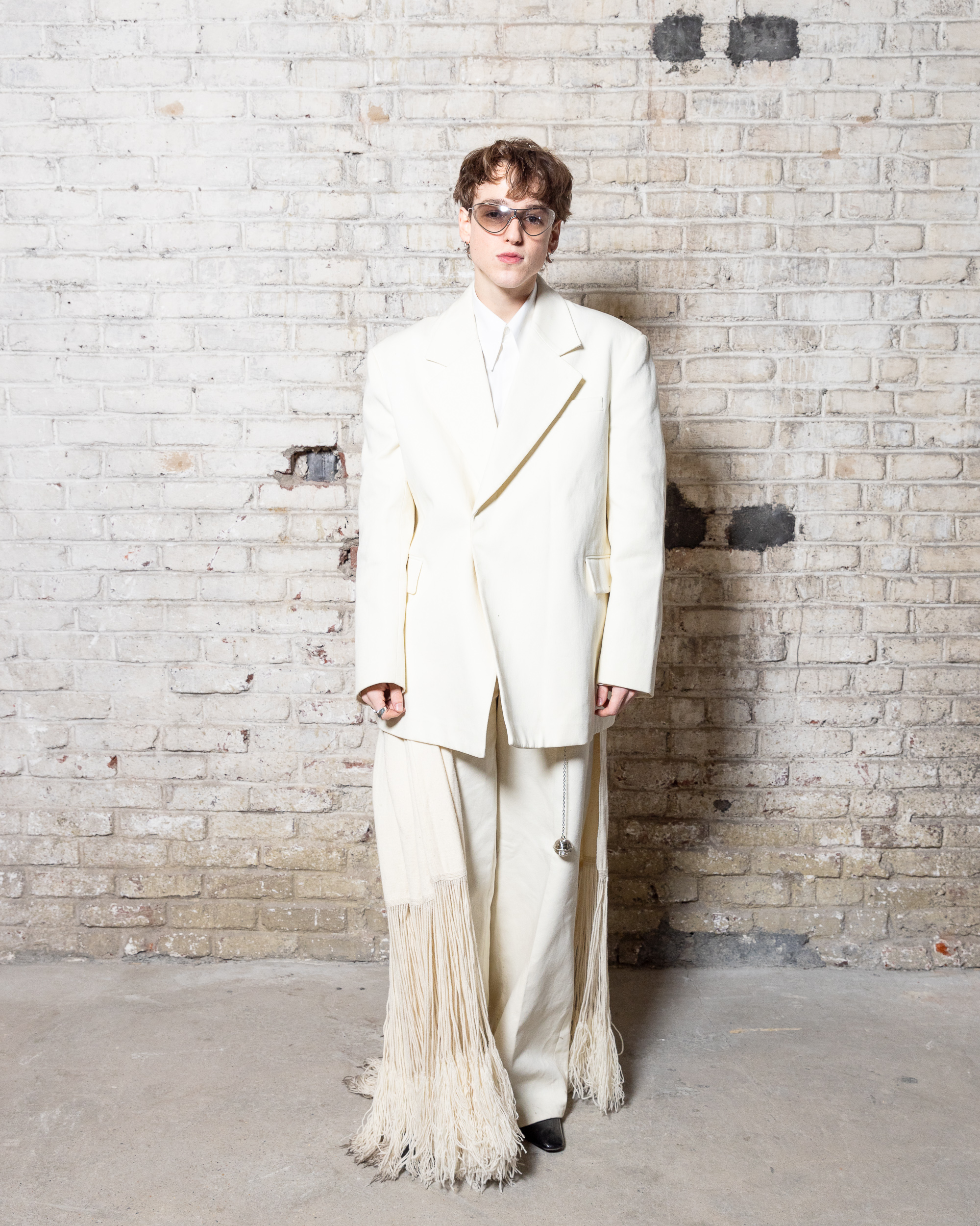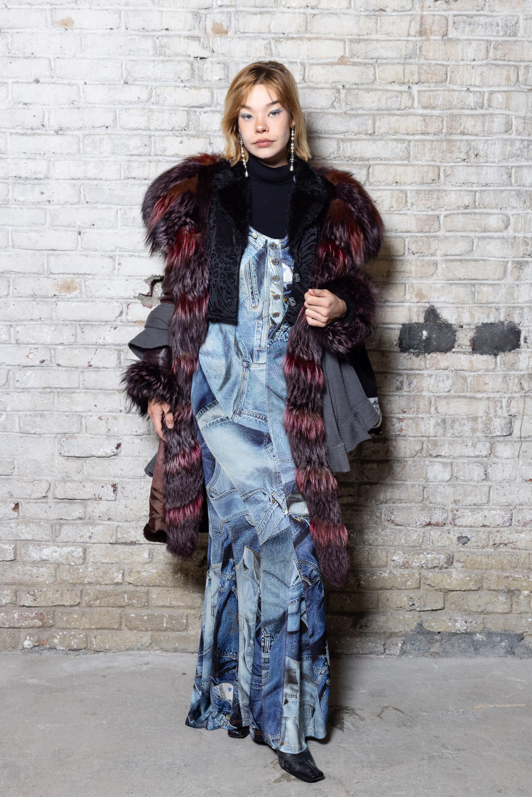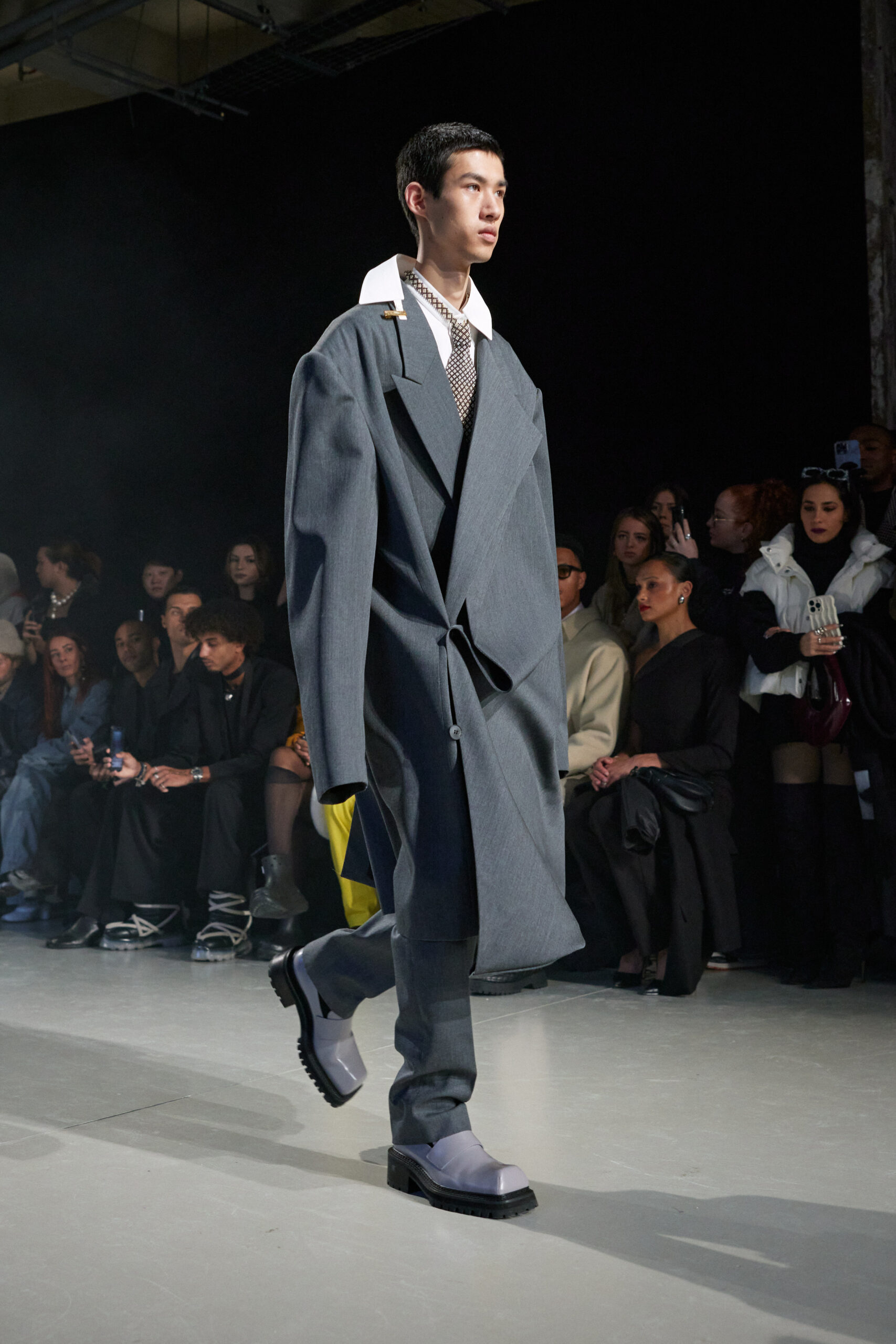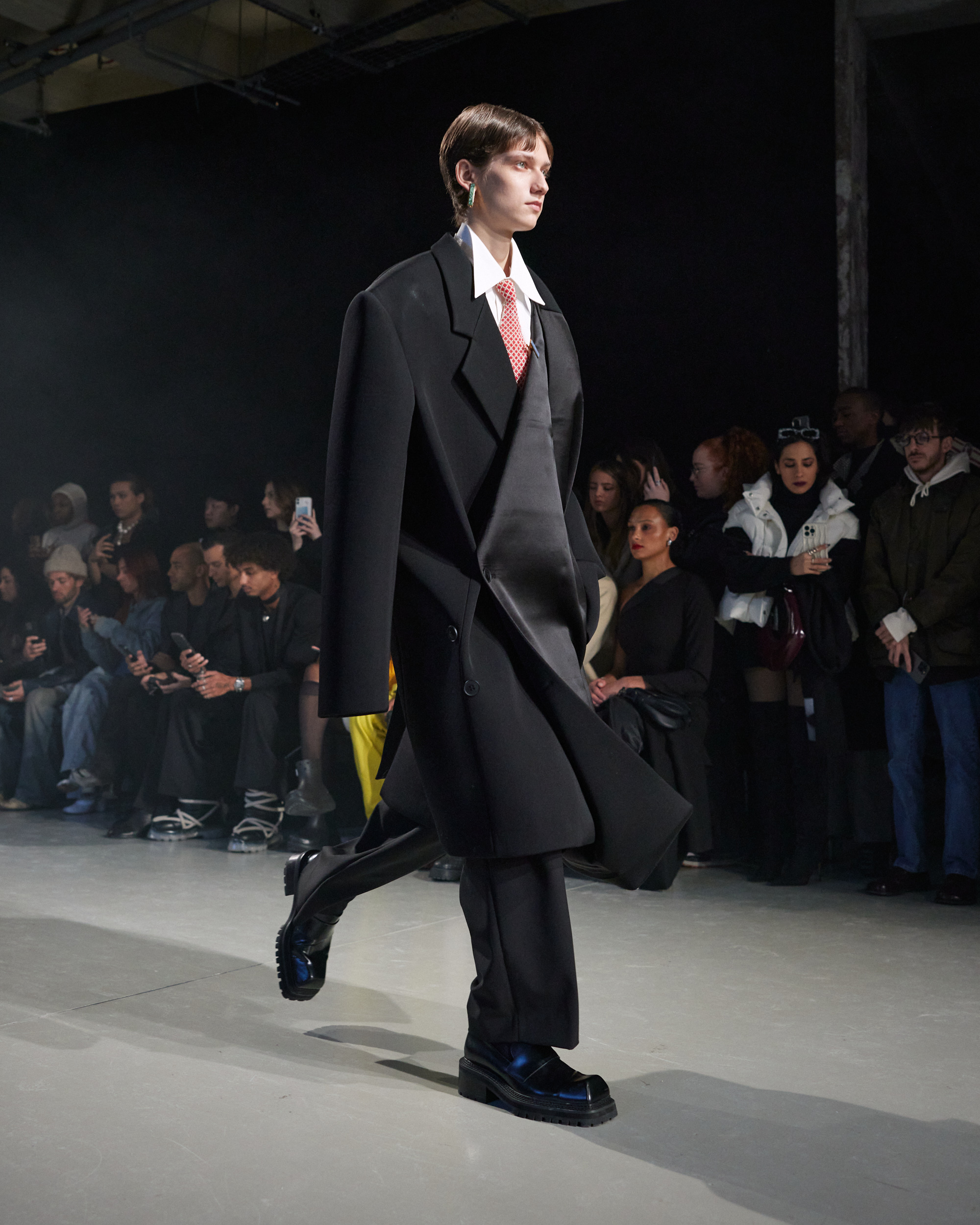 La collection est également marquée par la déconstruction et la juxtaposition des structures de la mode, créant un effet dynamique et provocateur. Ces éléments reflètent l’esprit urgent, rebelle et non-conformiste de cette génération.