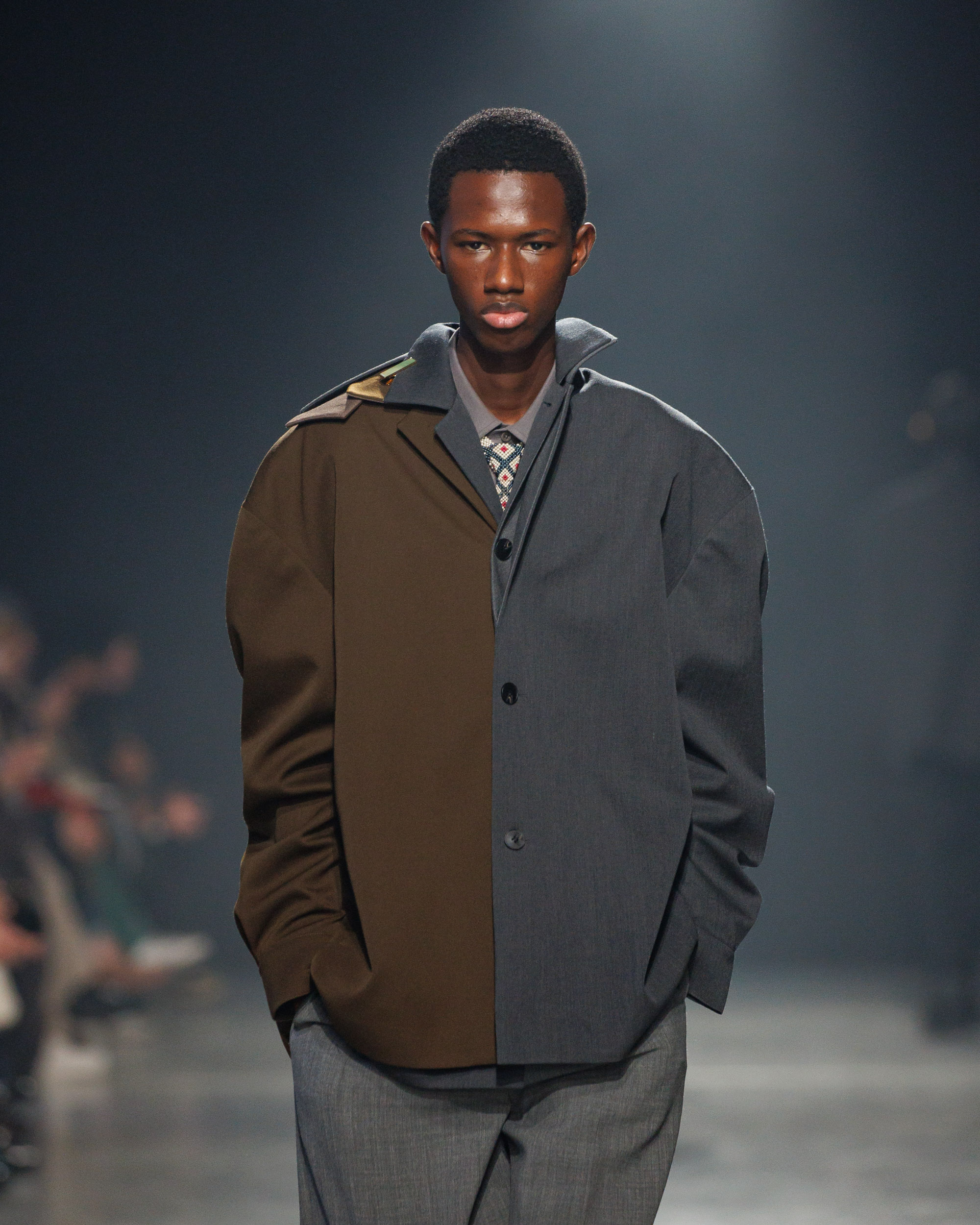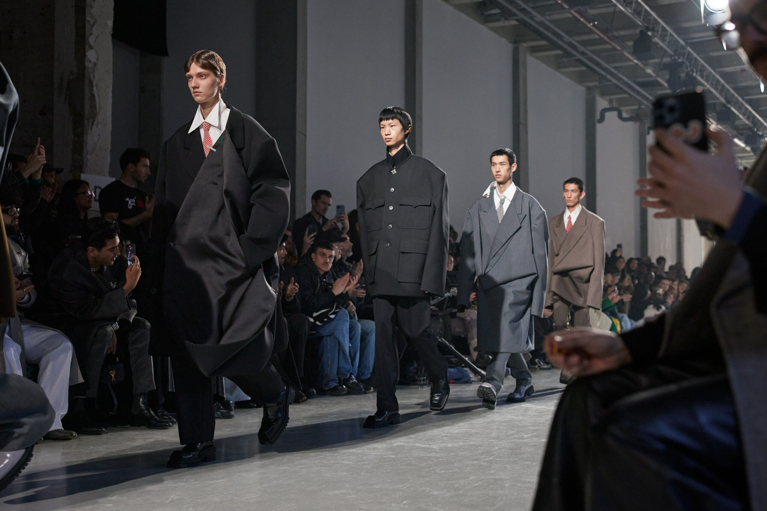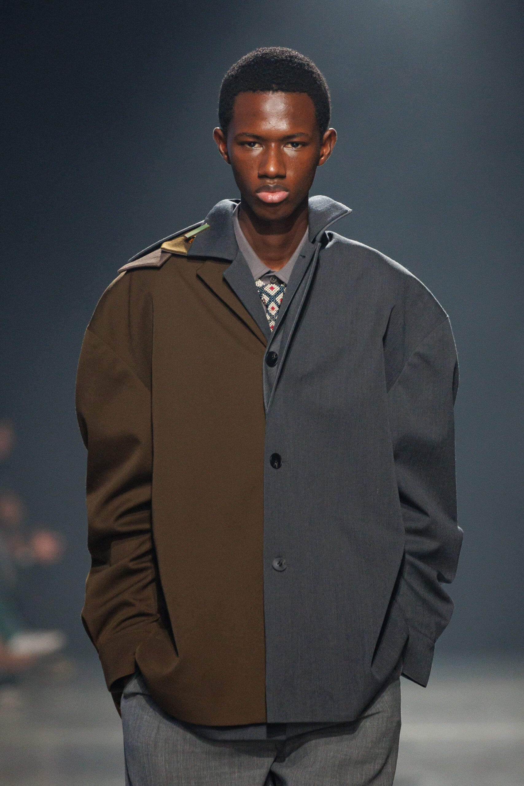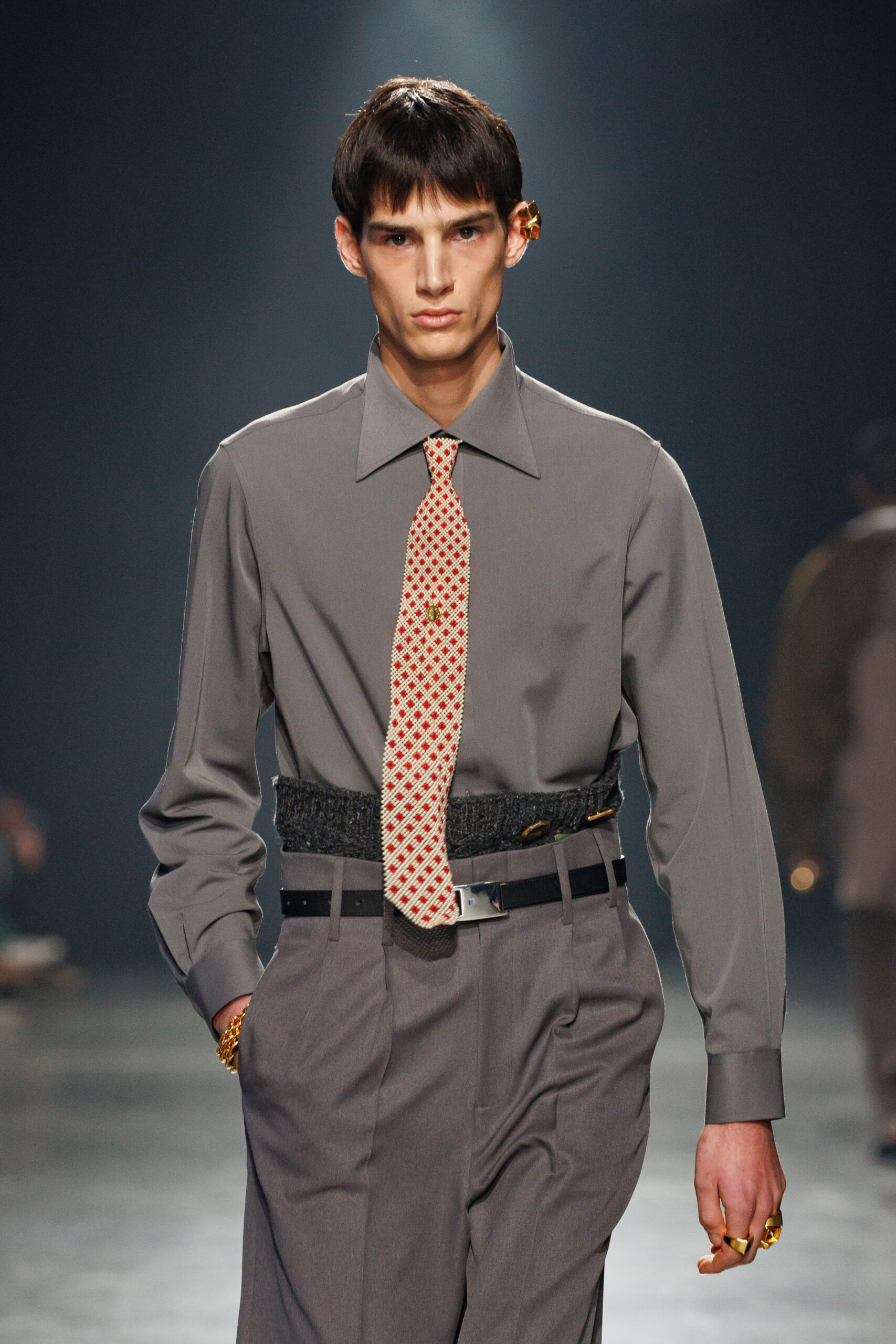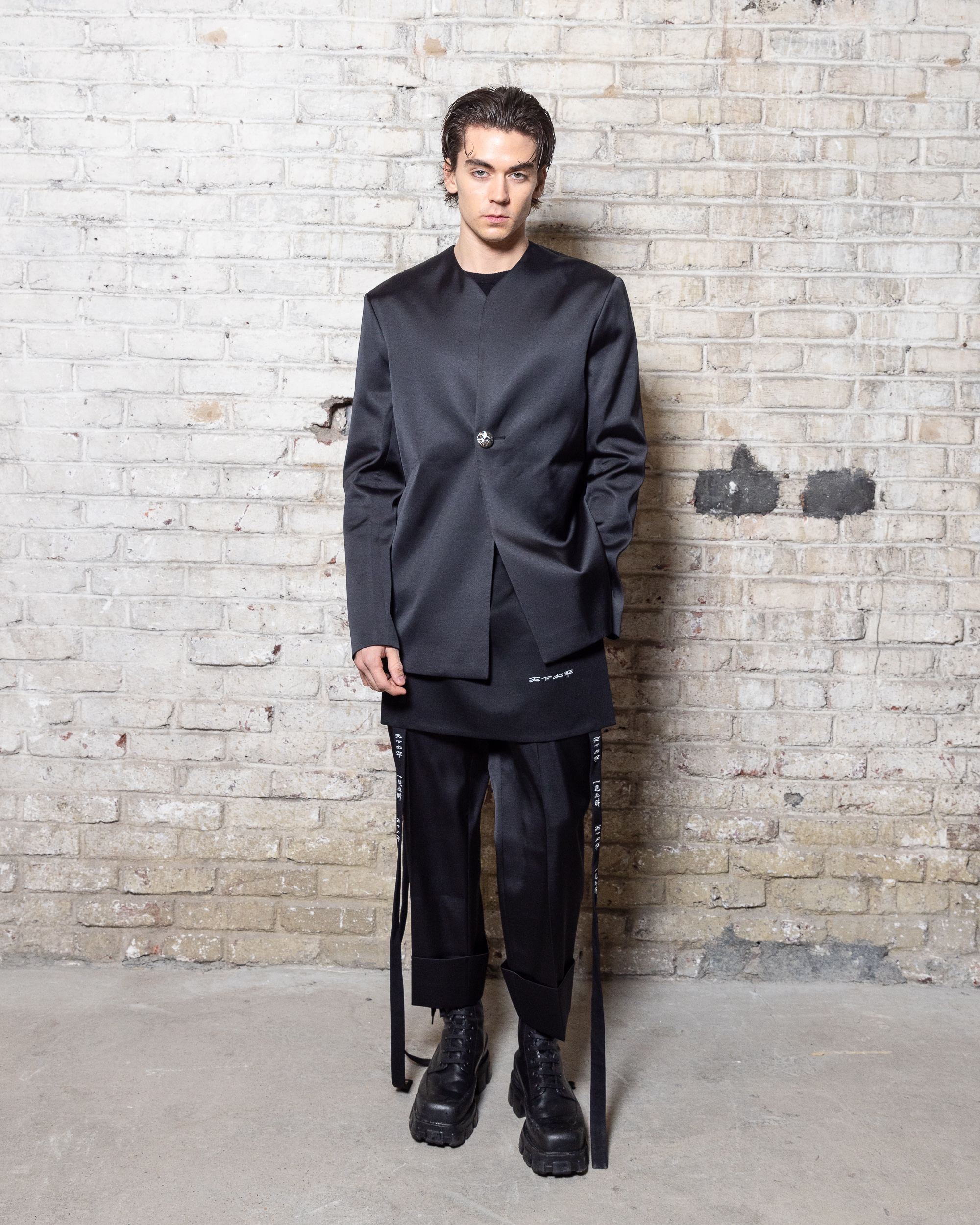 La collection est également marquée par la déconstruction et la juxtaposition des structures de la mode, créant un effet dynamique et provocateur. Ces éléments reflètent l’esprit urgent, rebelle et non-conformiste de cette génération.