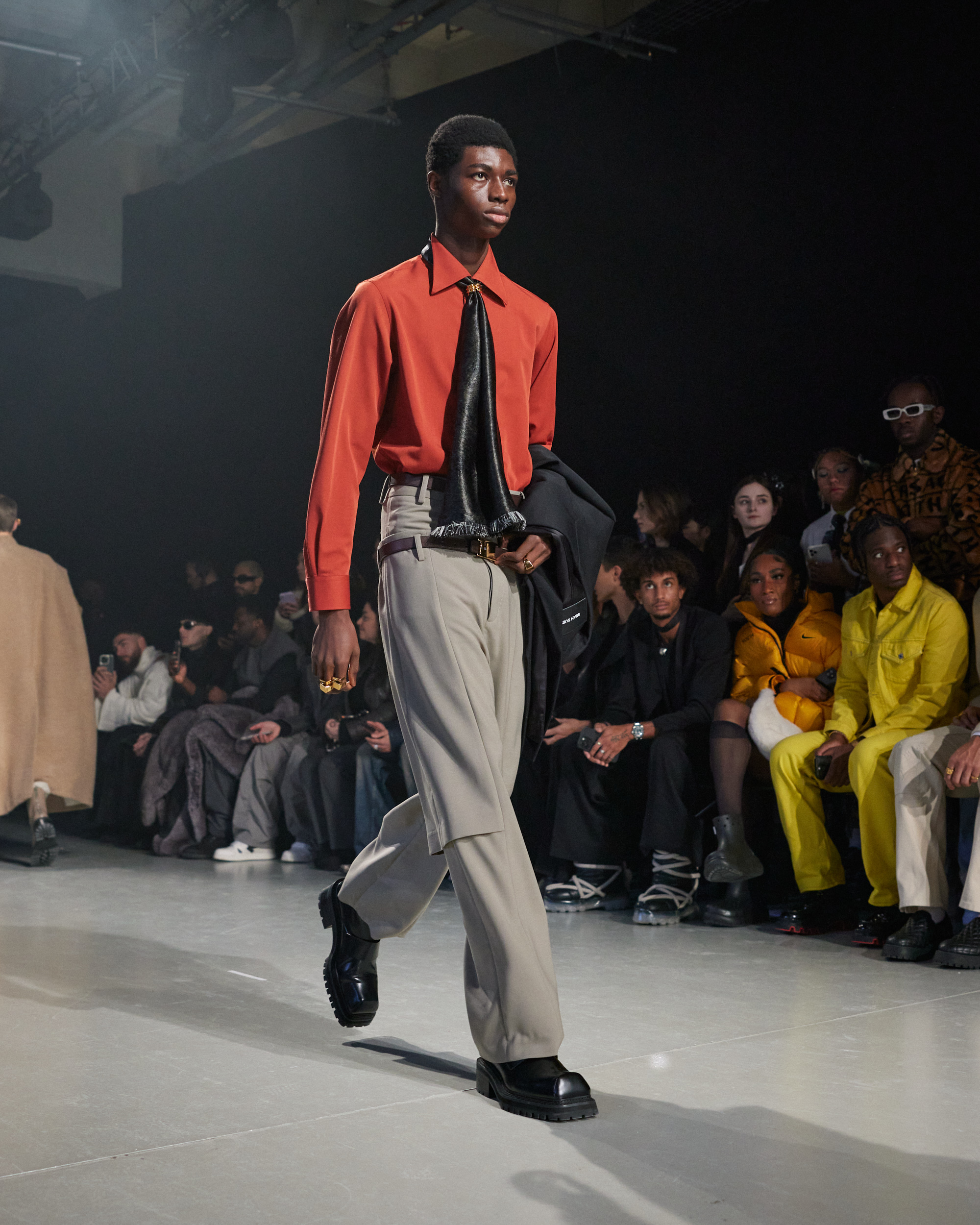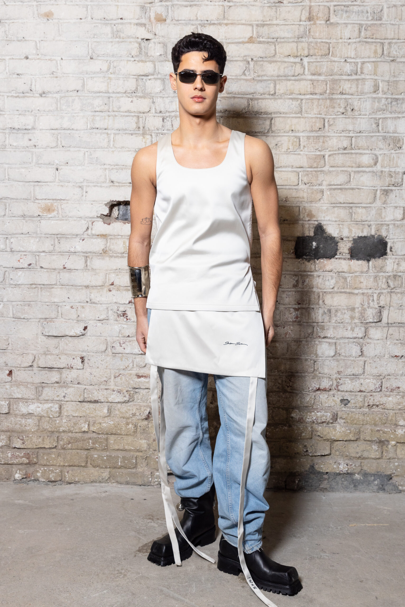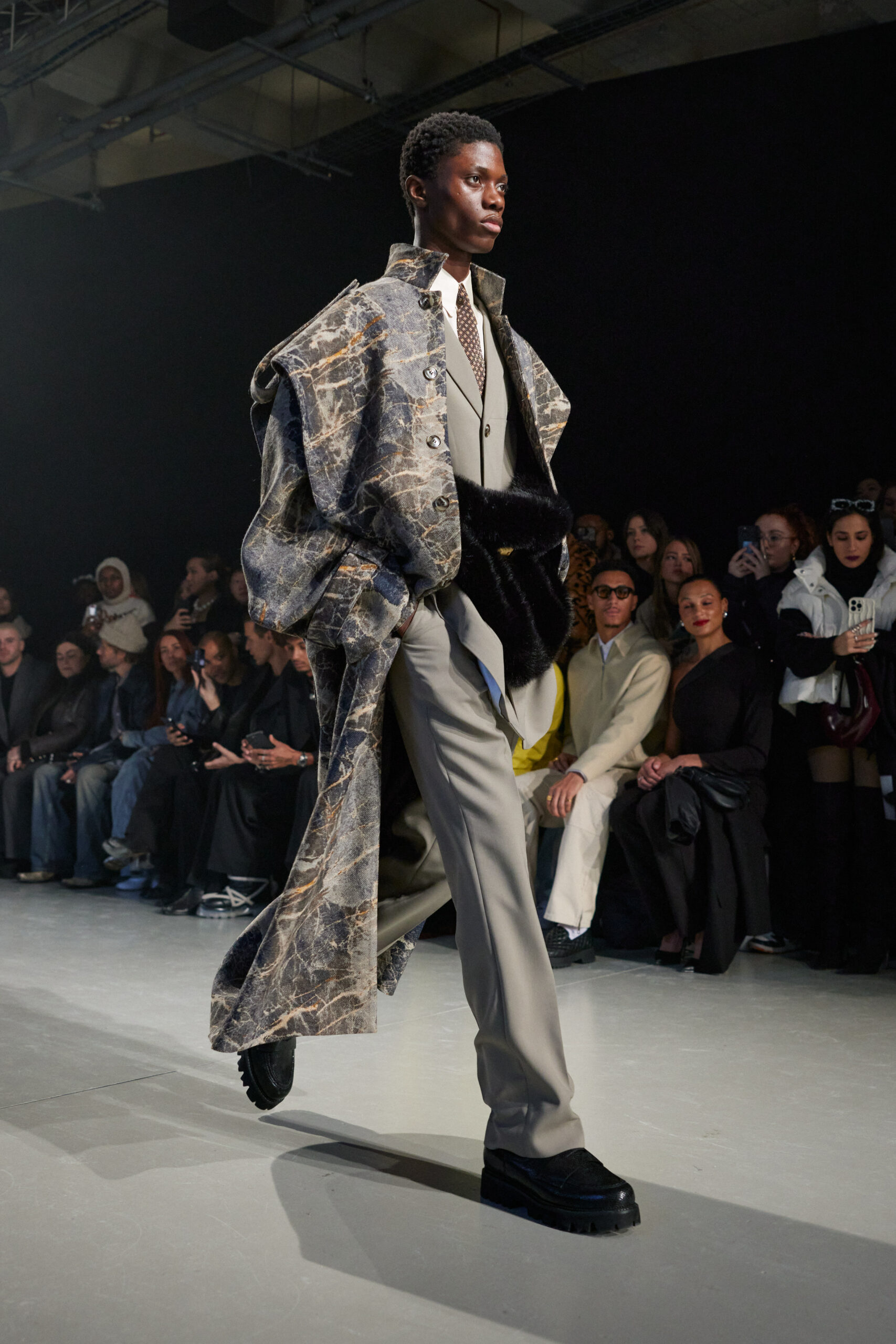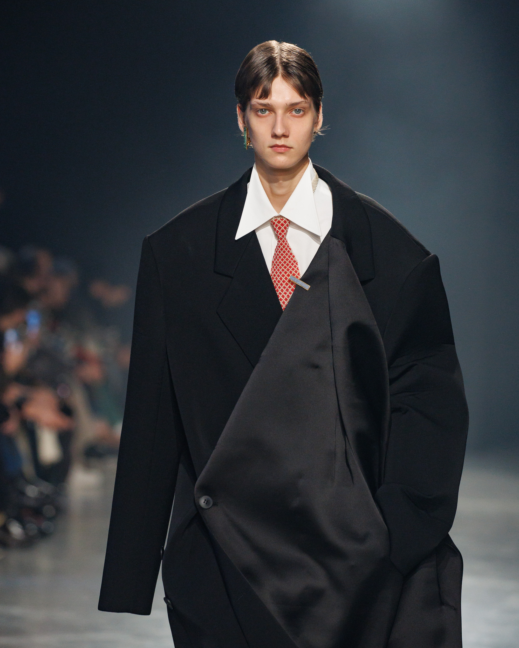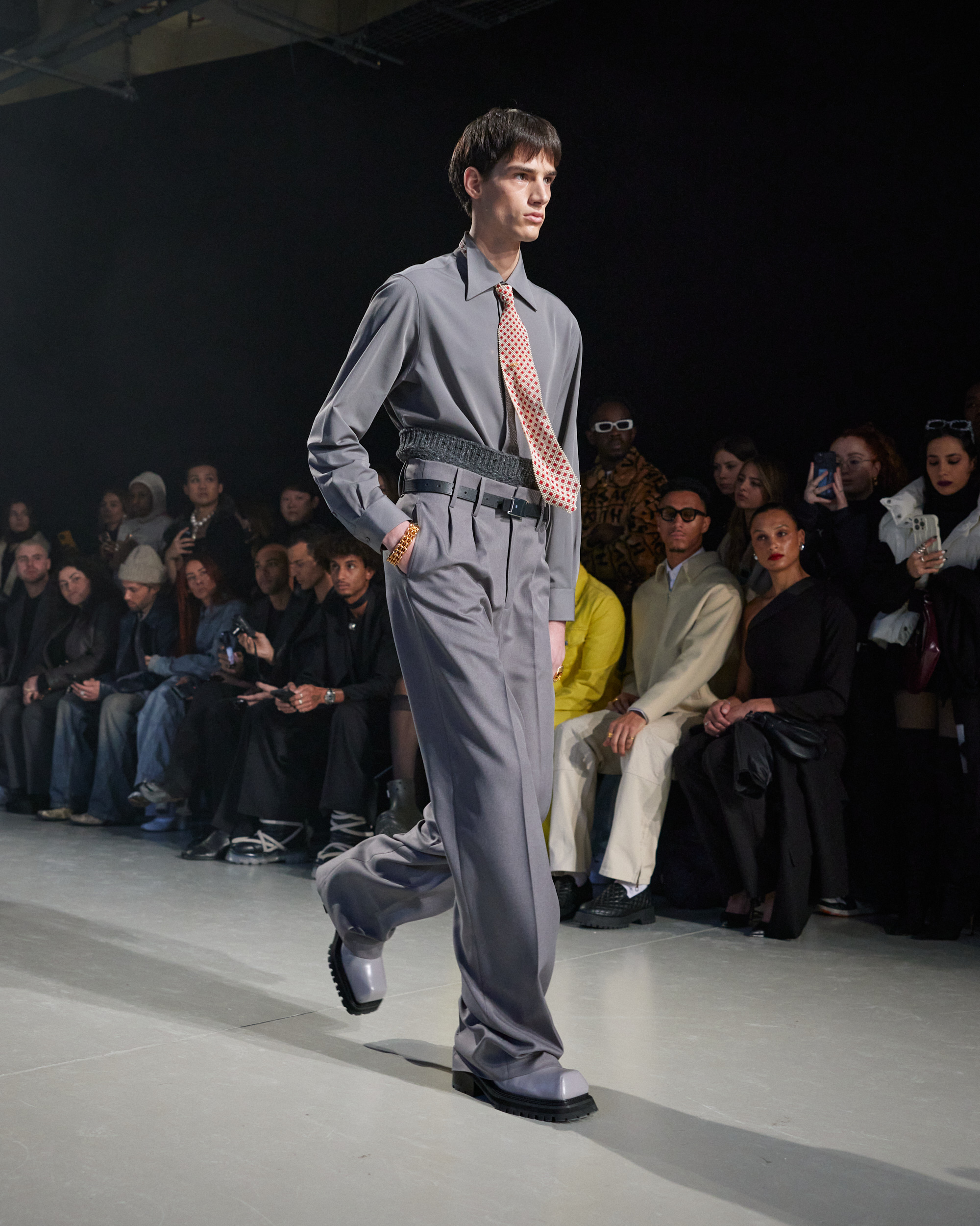 La collection est également marquée par la déconstruction et la juxtaposition des structures de la mode, créant un effet dynamique et provocateur. Ces éléments reflètent l’esprit urgent, rebelle et non-conformiste de cette génération.