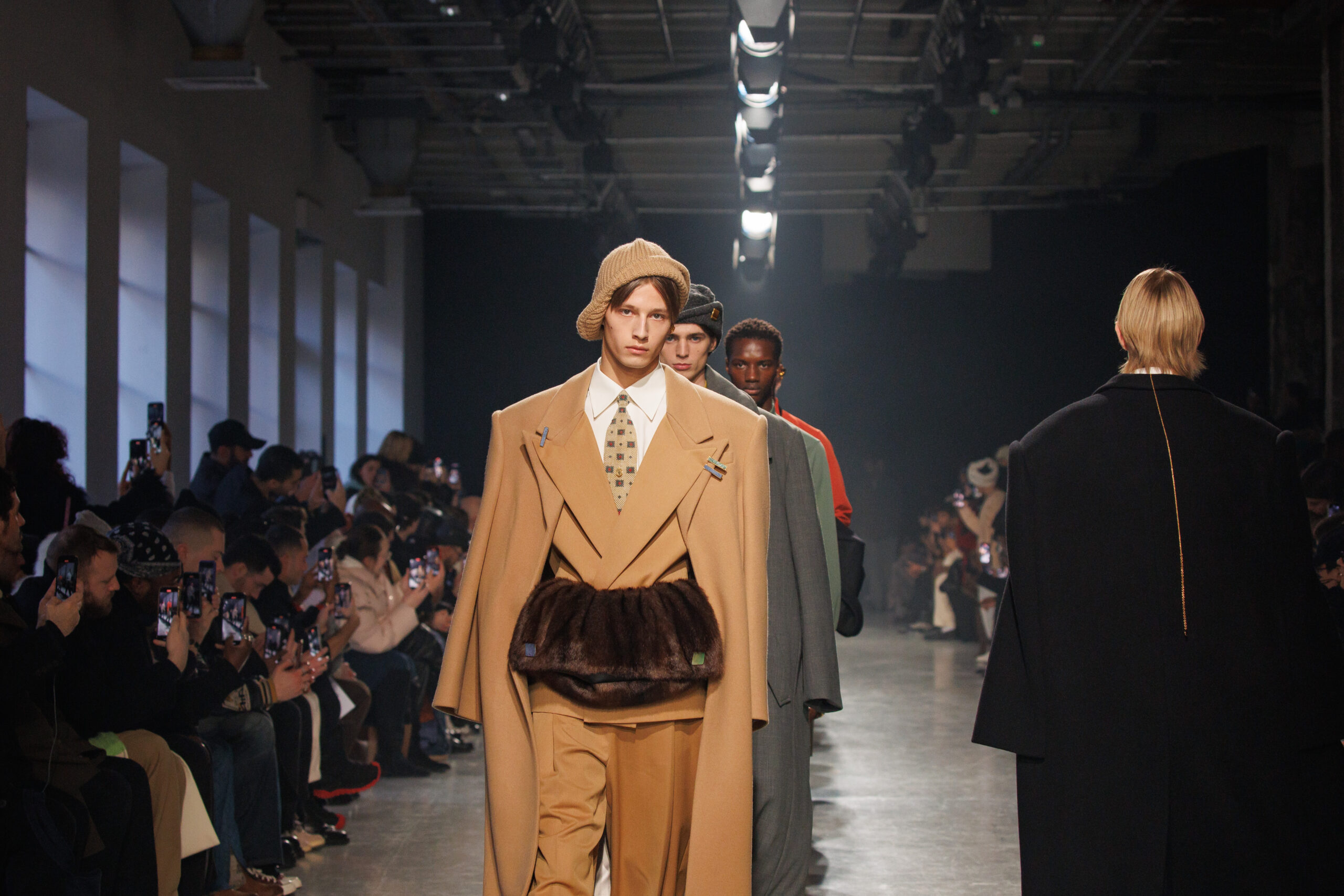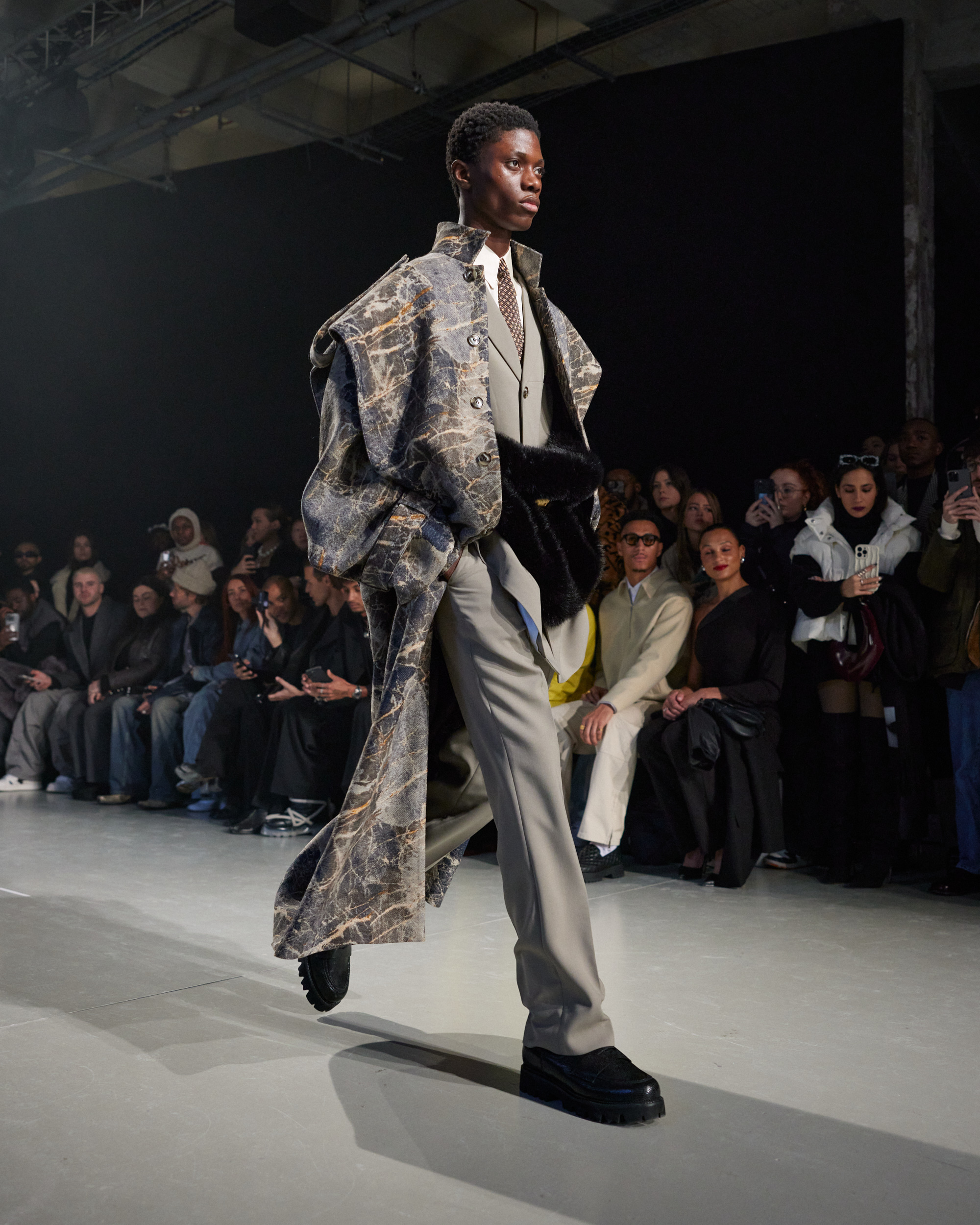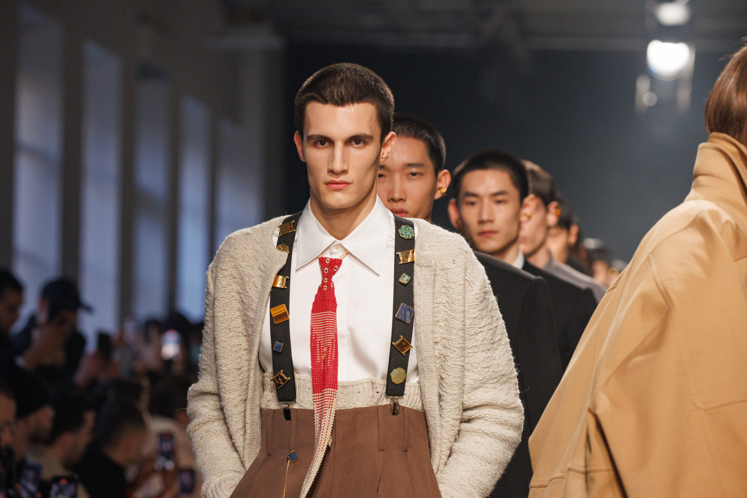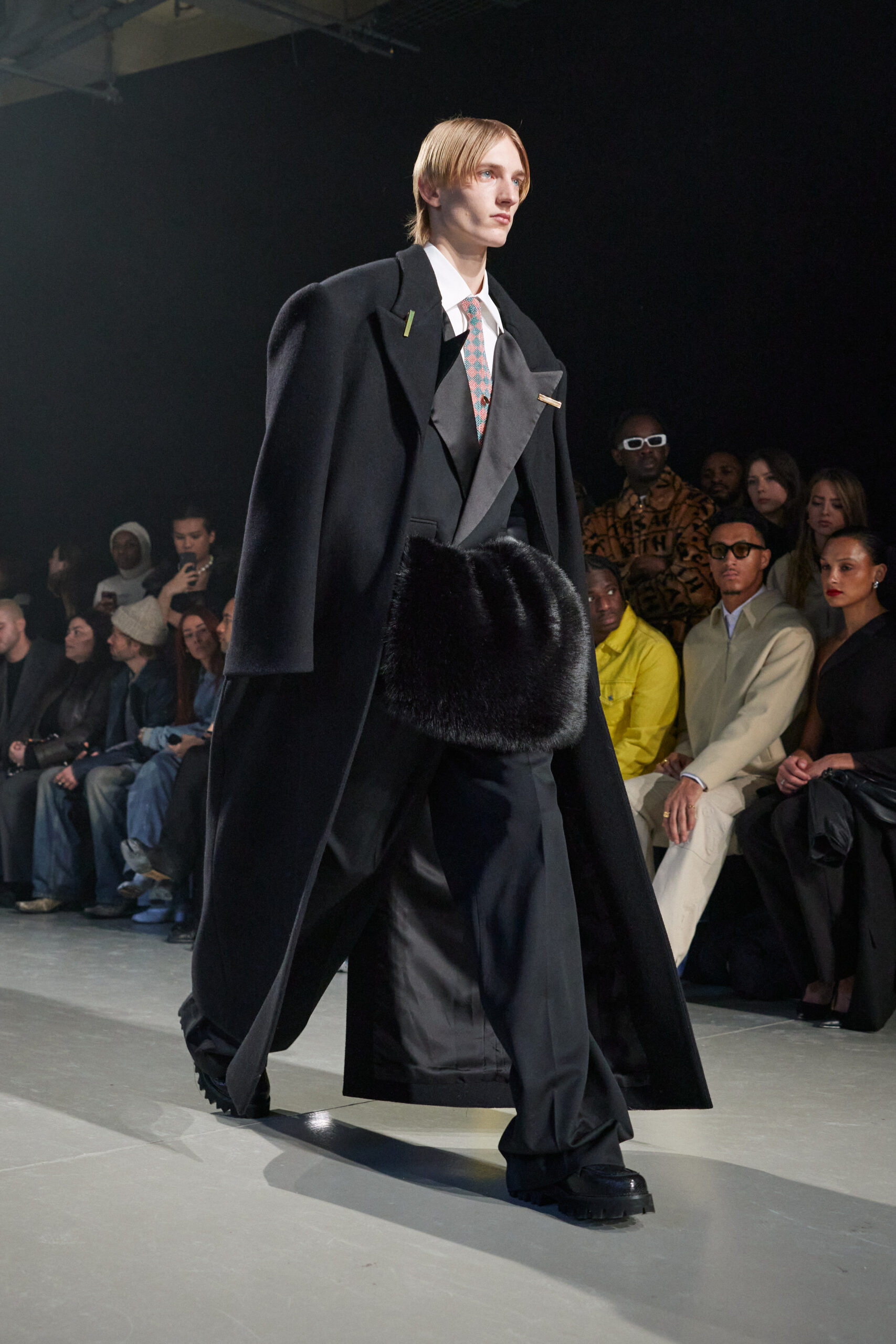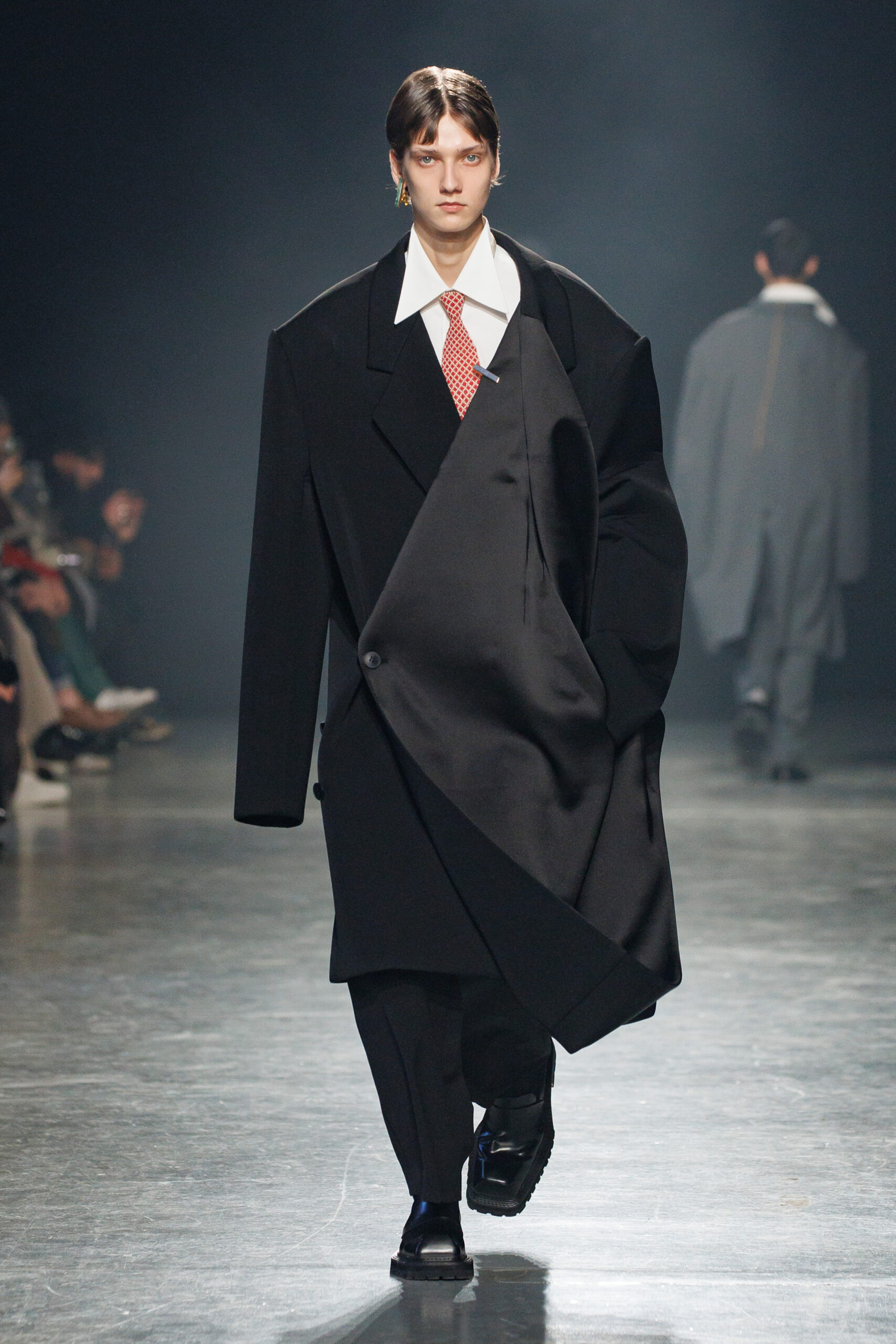 La collection est également marquée par la déconstruction et la juxtaposition des structures de la mode, créant un effet dynamique et provocateur. Ces éléments reflètent l’esprit urgent, rebelle et non-conformiste de cette génération.