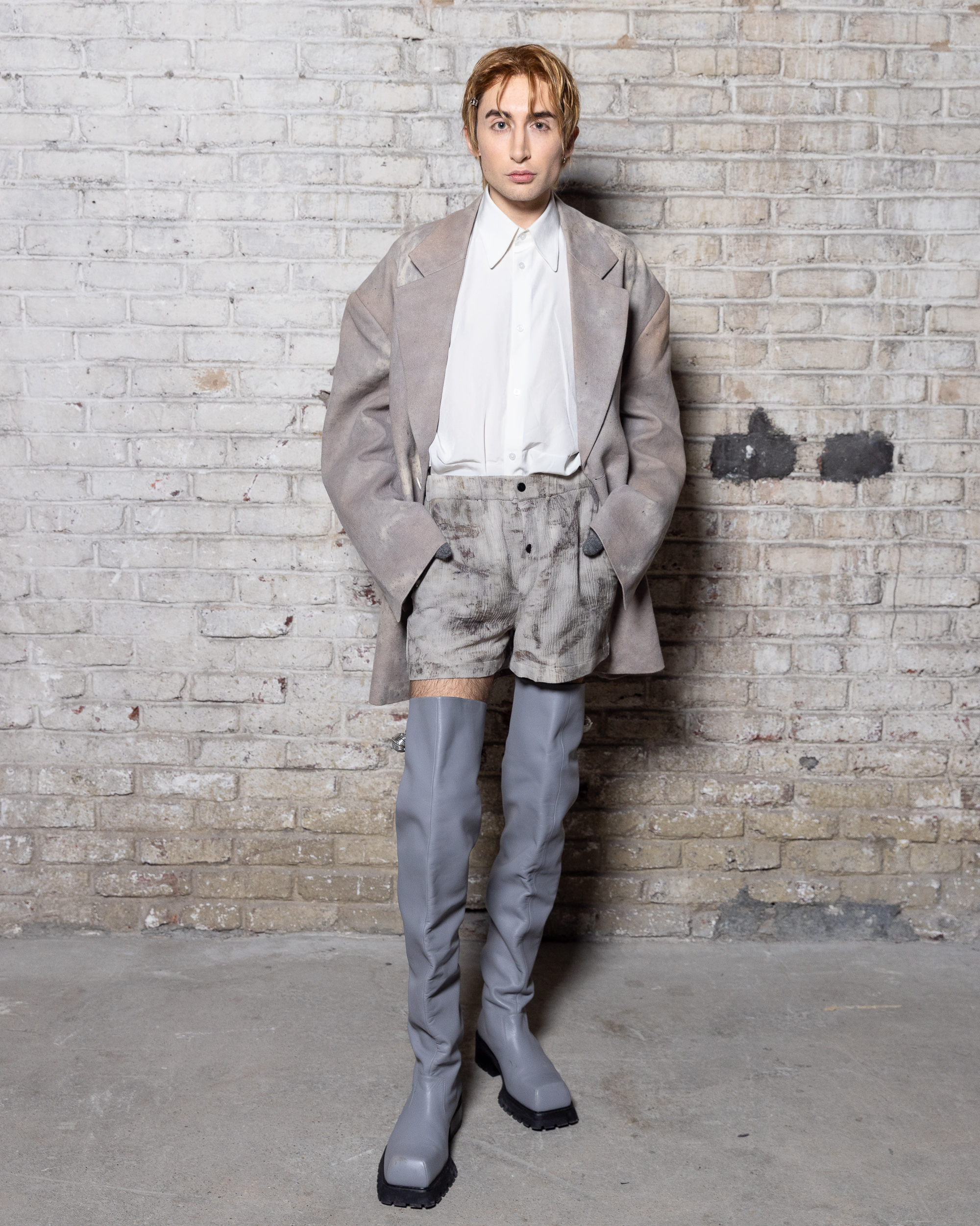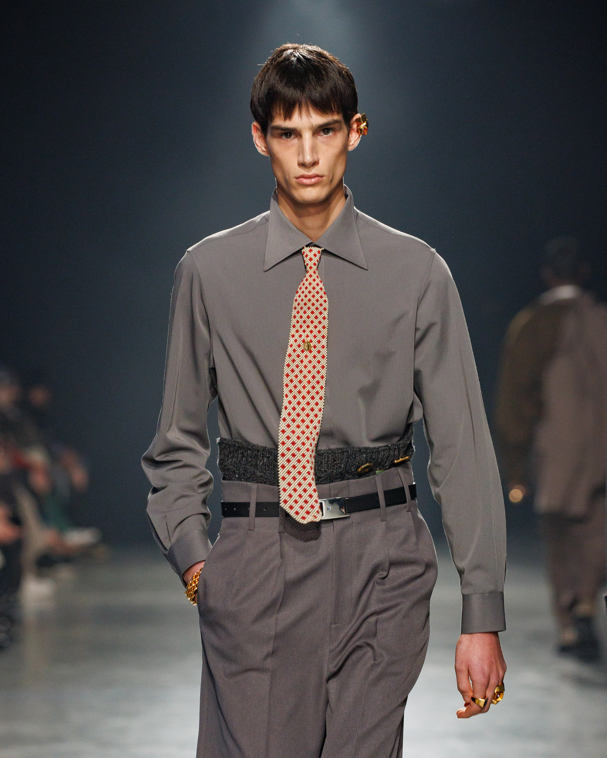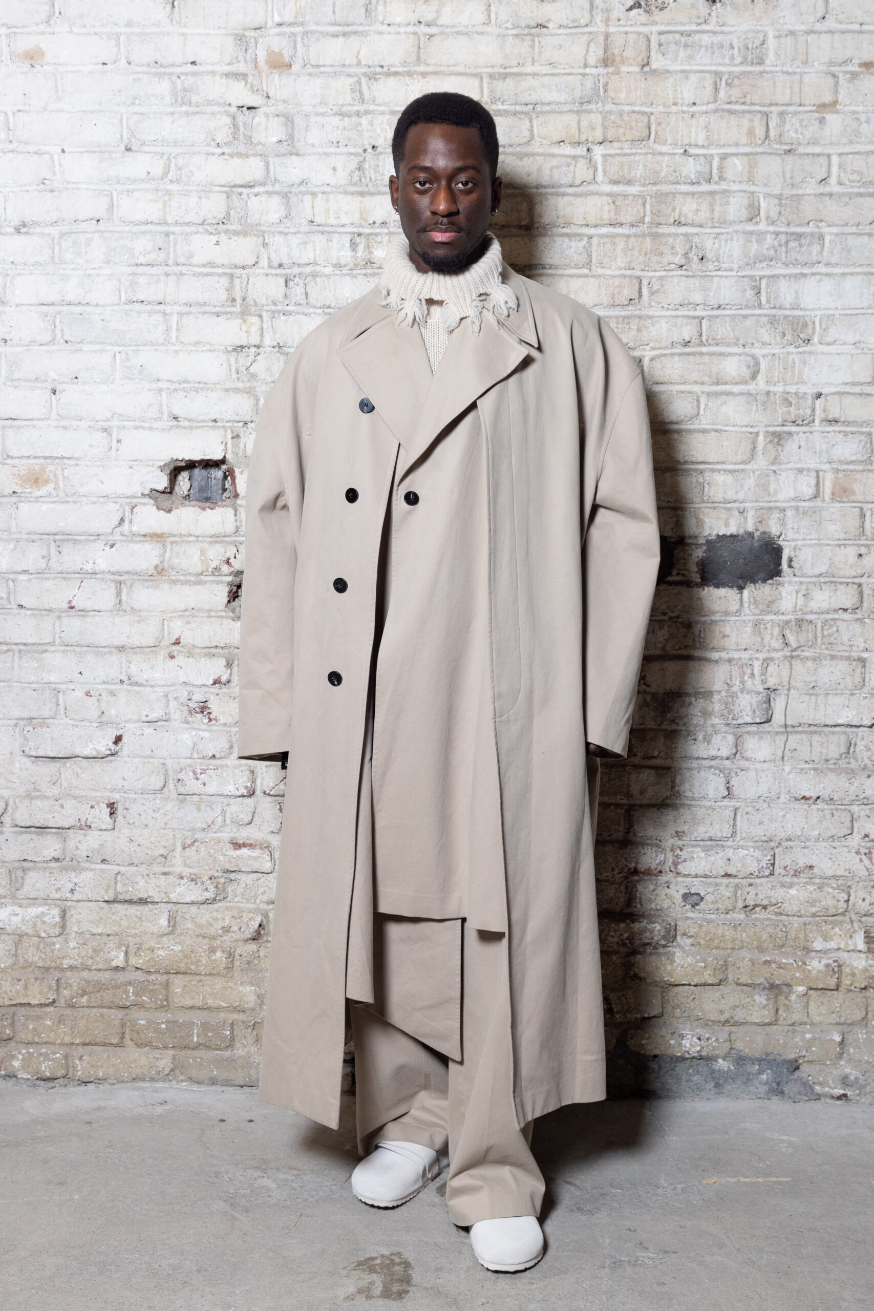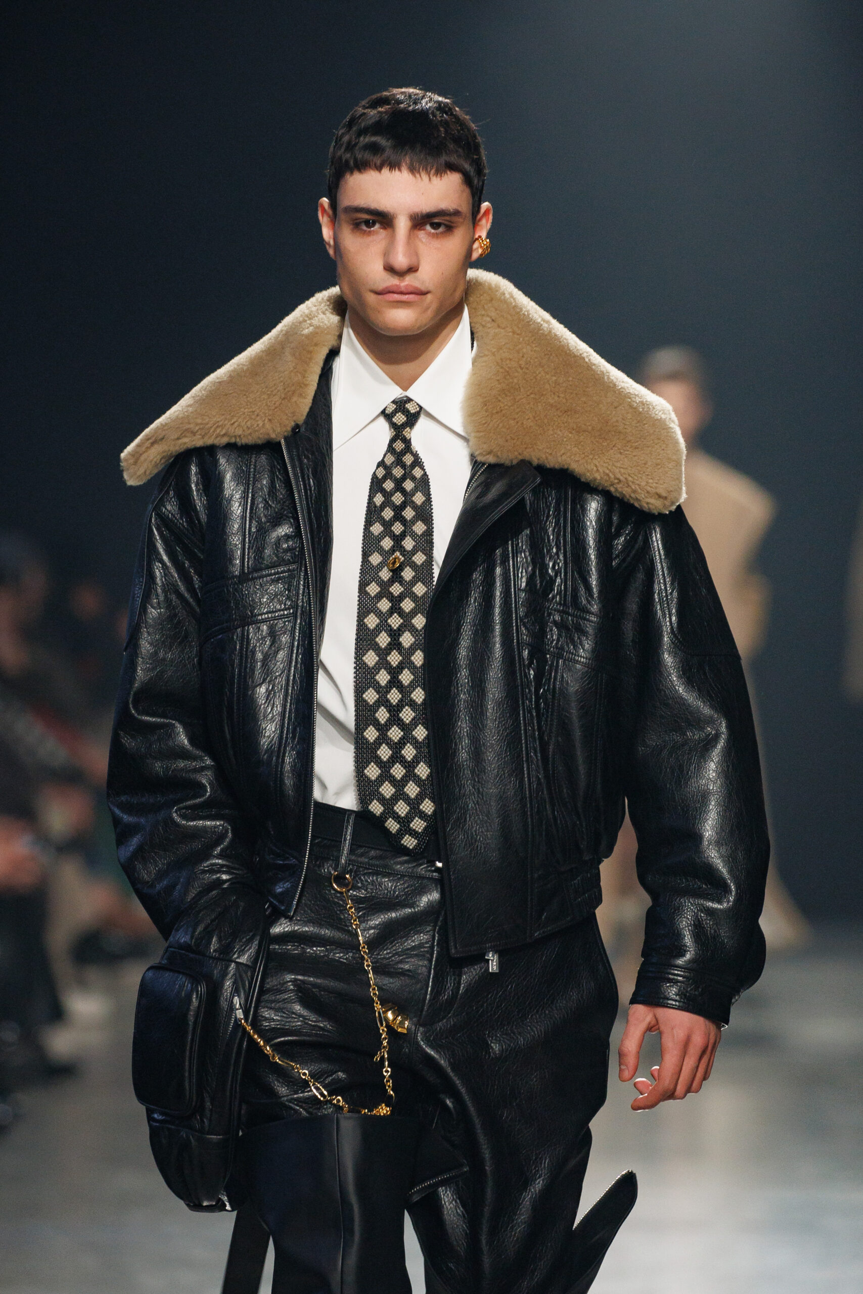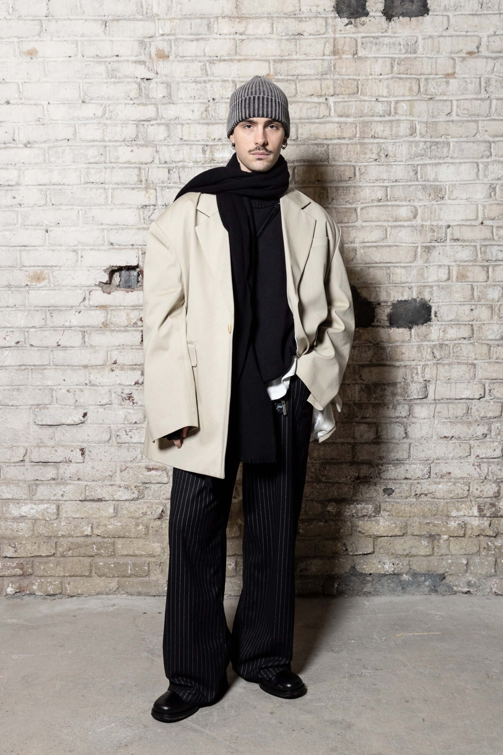 La collection est également marquée par la déconstruction et la juxtaposition des structures de la mode, créant un effet dynamique et provocateur. Ces éléments reflètent l’esprit urgent, rebelle et non-conformiste de cette génération.