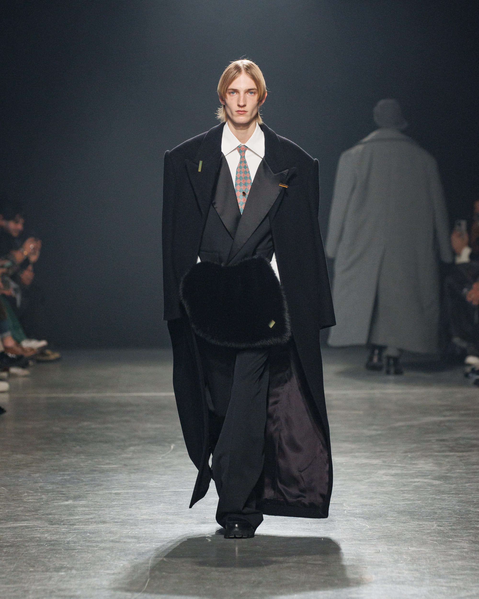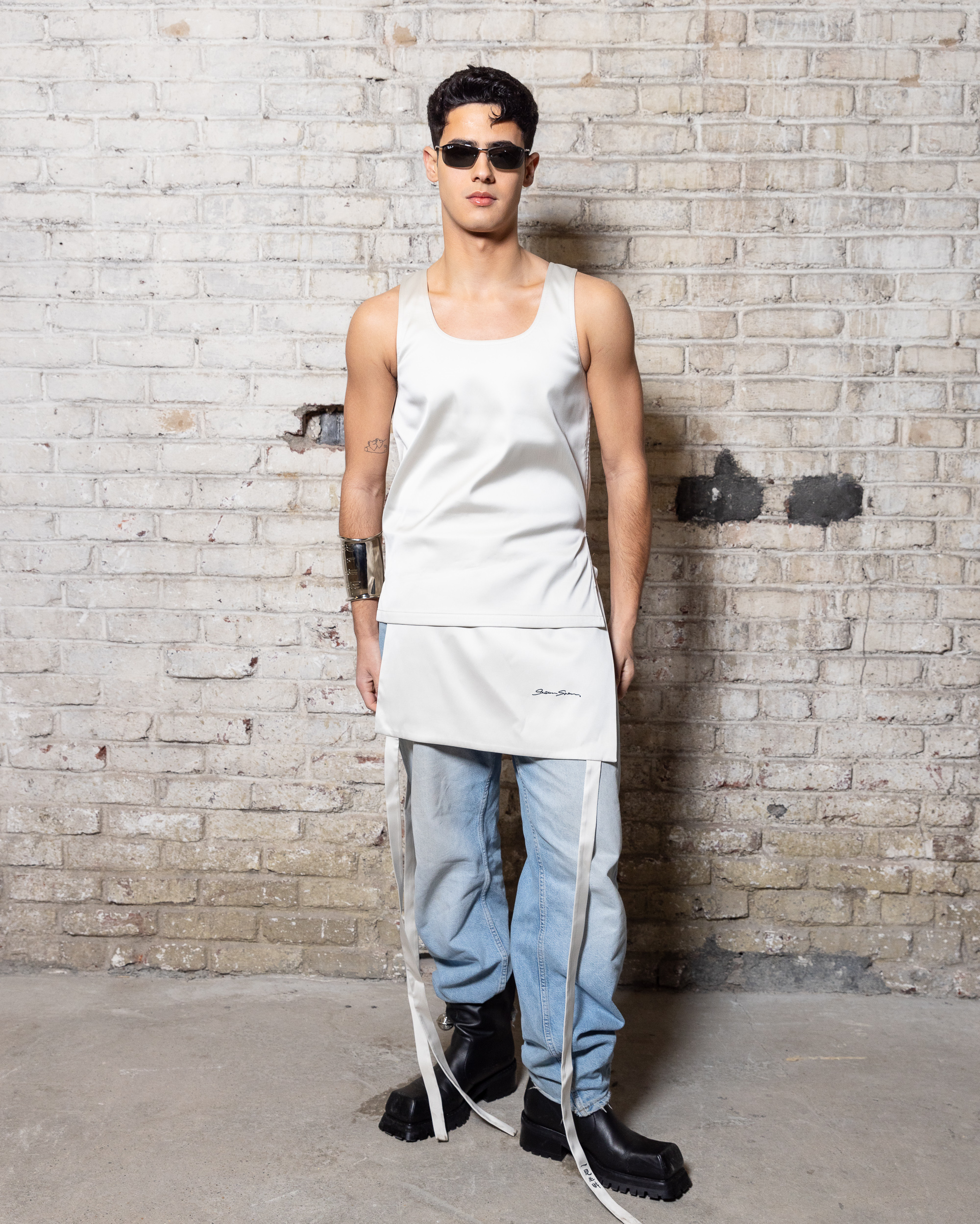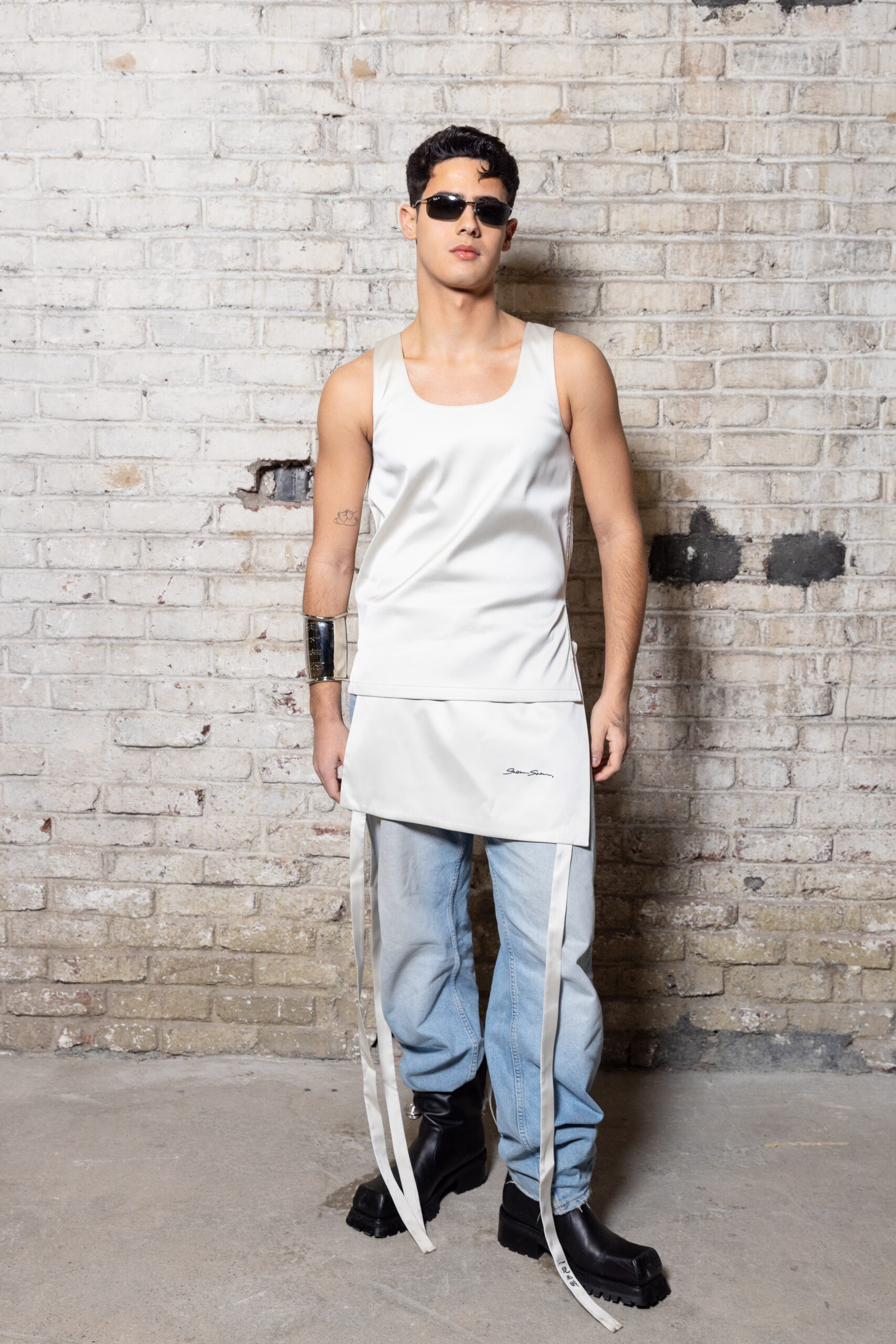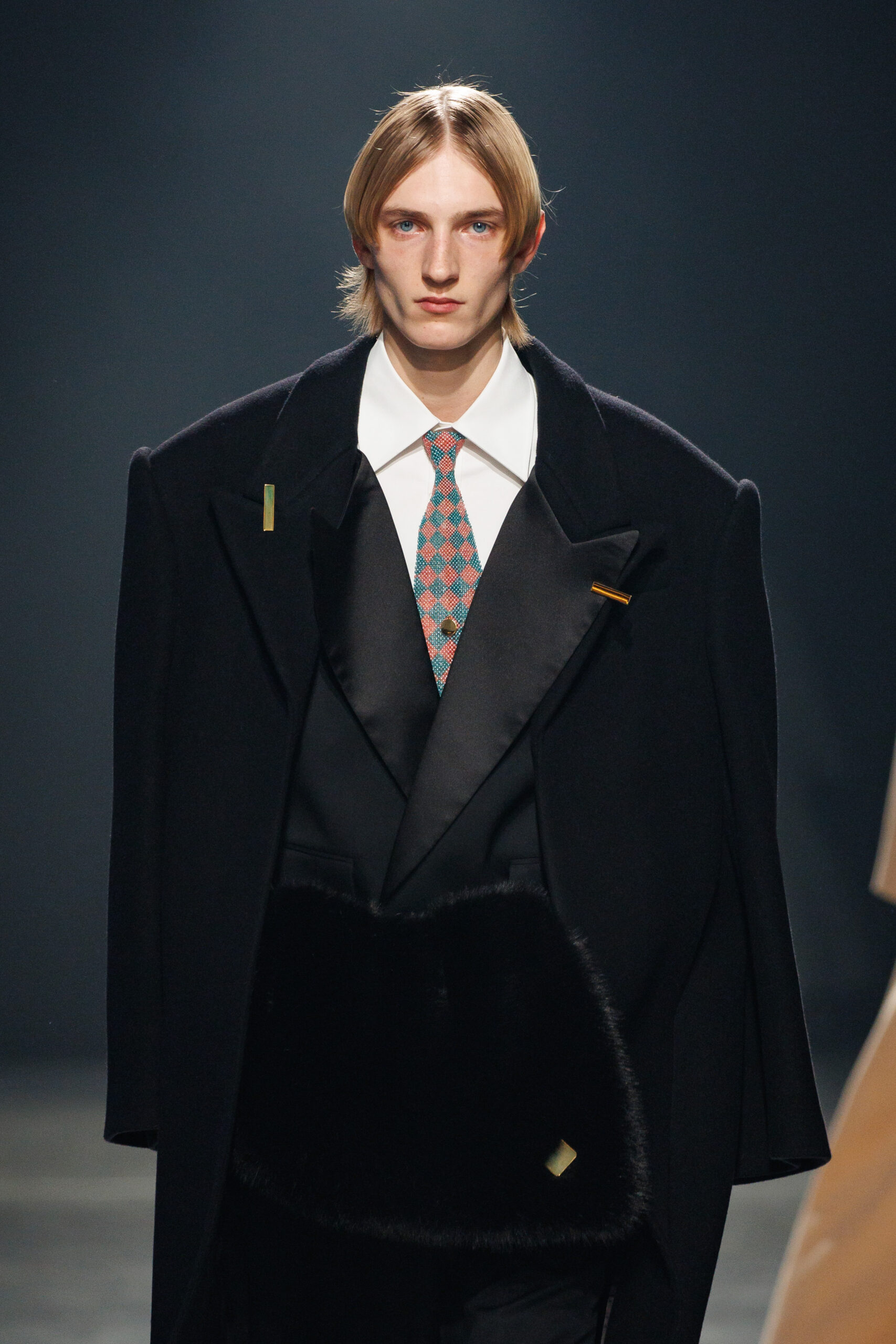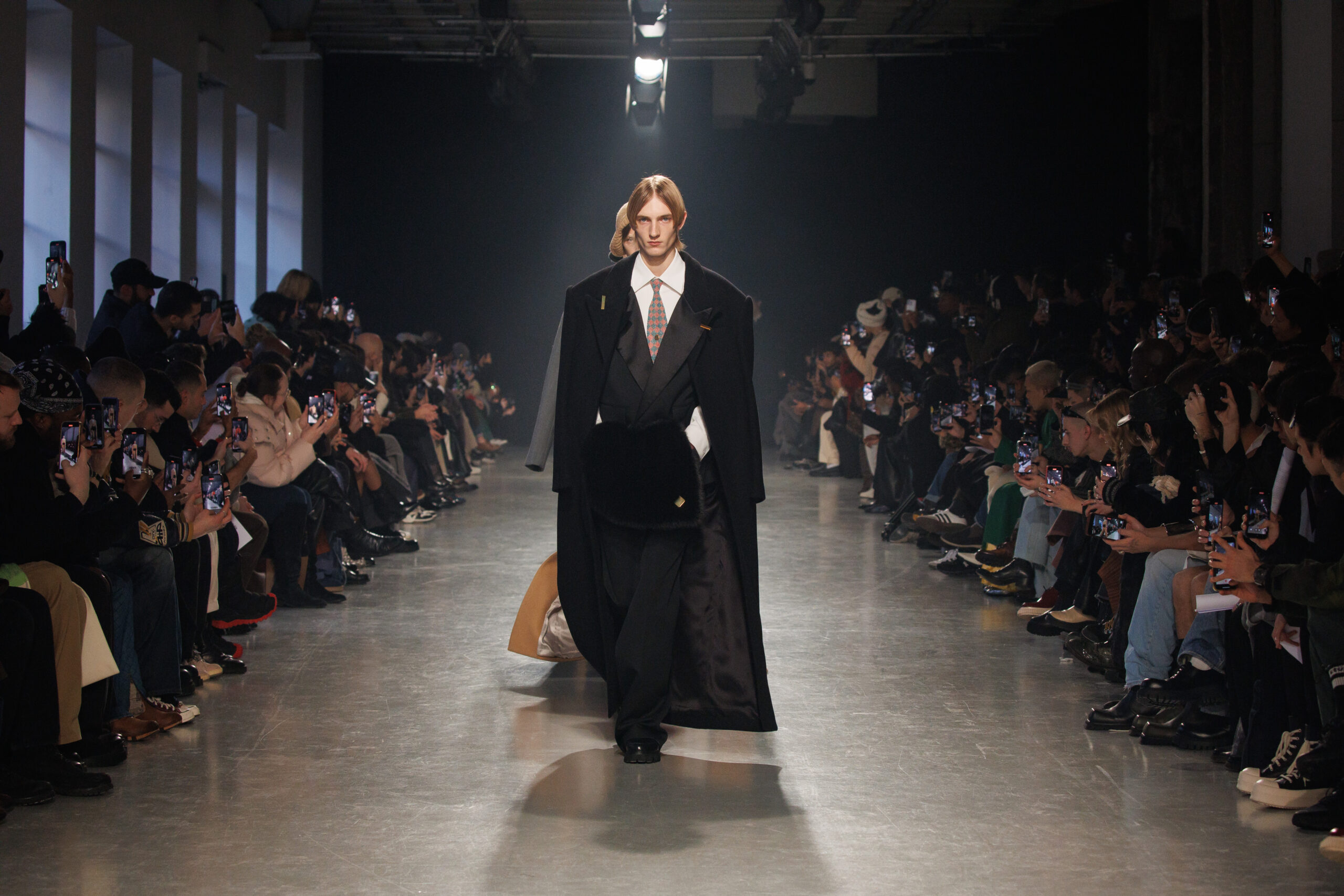 La collection est également marquée par la déconstruction et la juxtaposition des structures de la mode, créant un effet dynamique et provocateur. Ces éléments reflètent l’esprit urgent, rebelle et non-conformiste de cette génération.