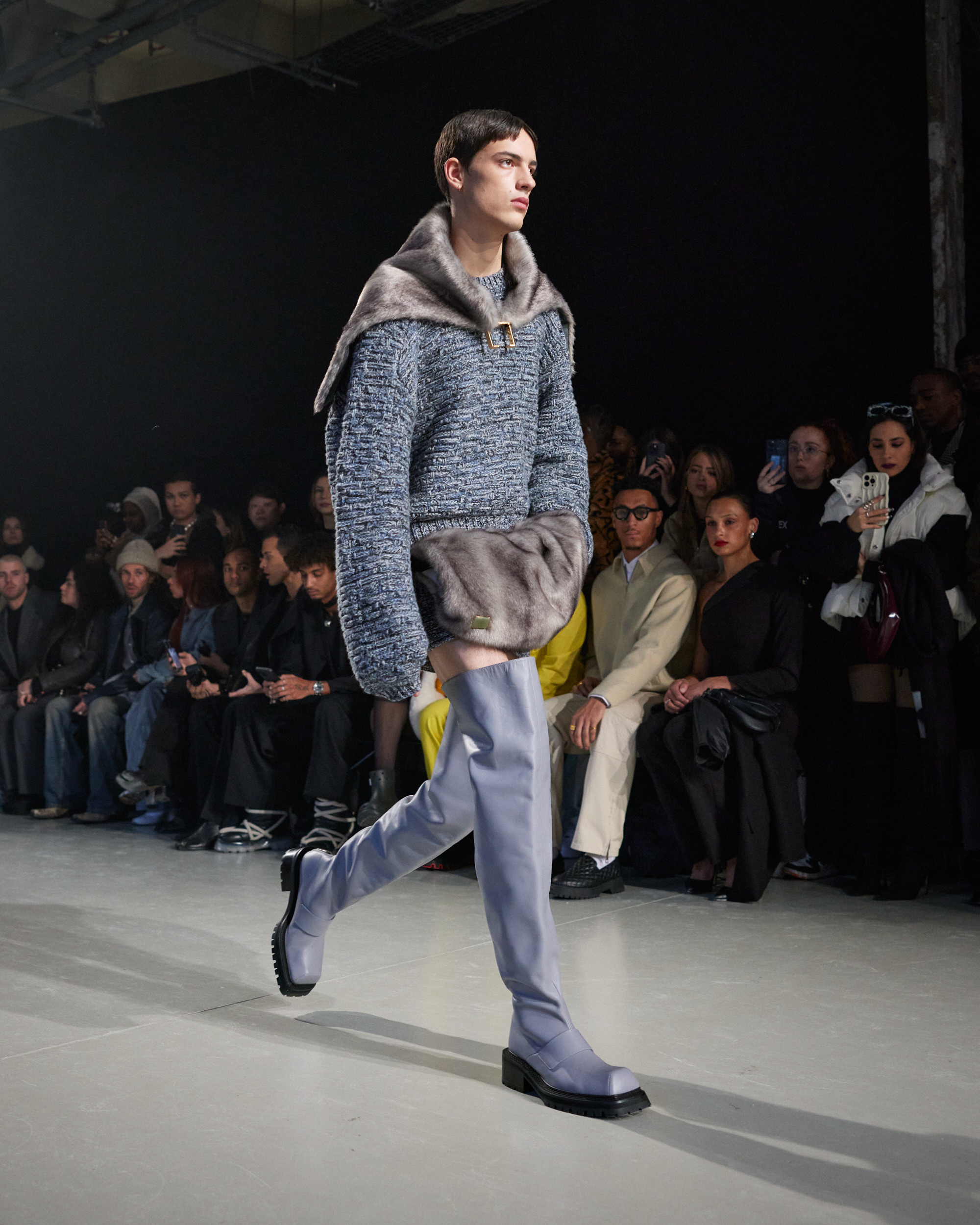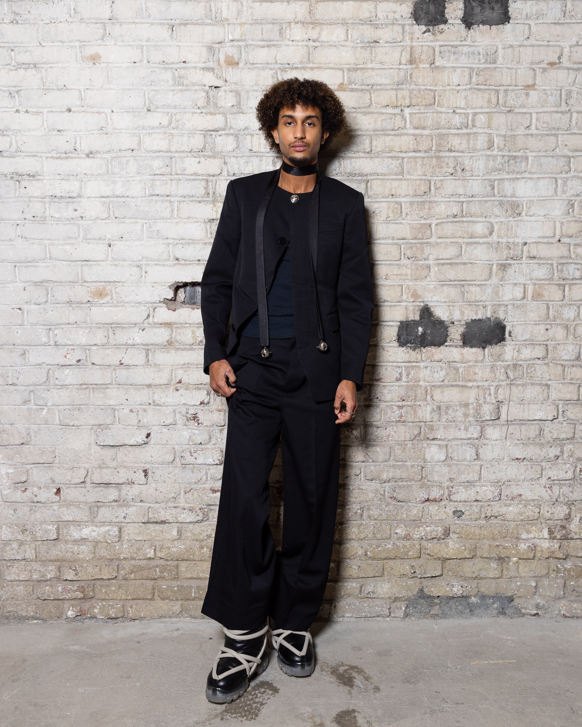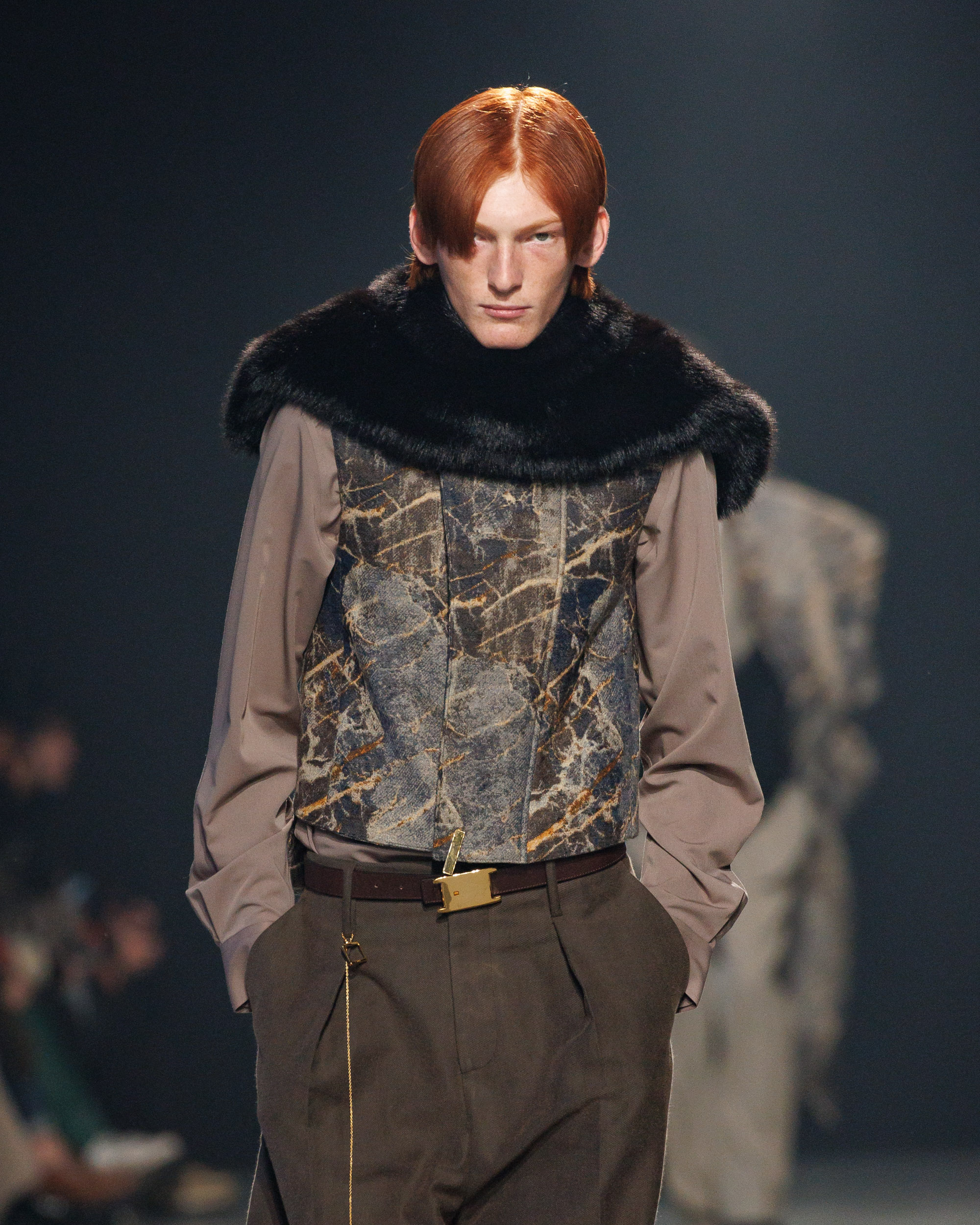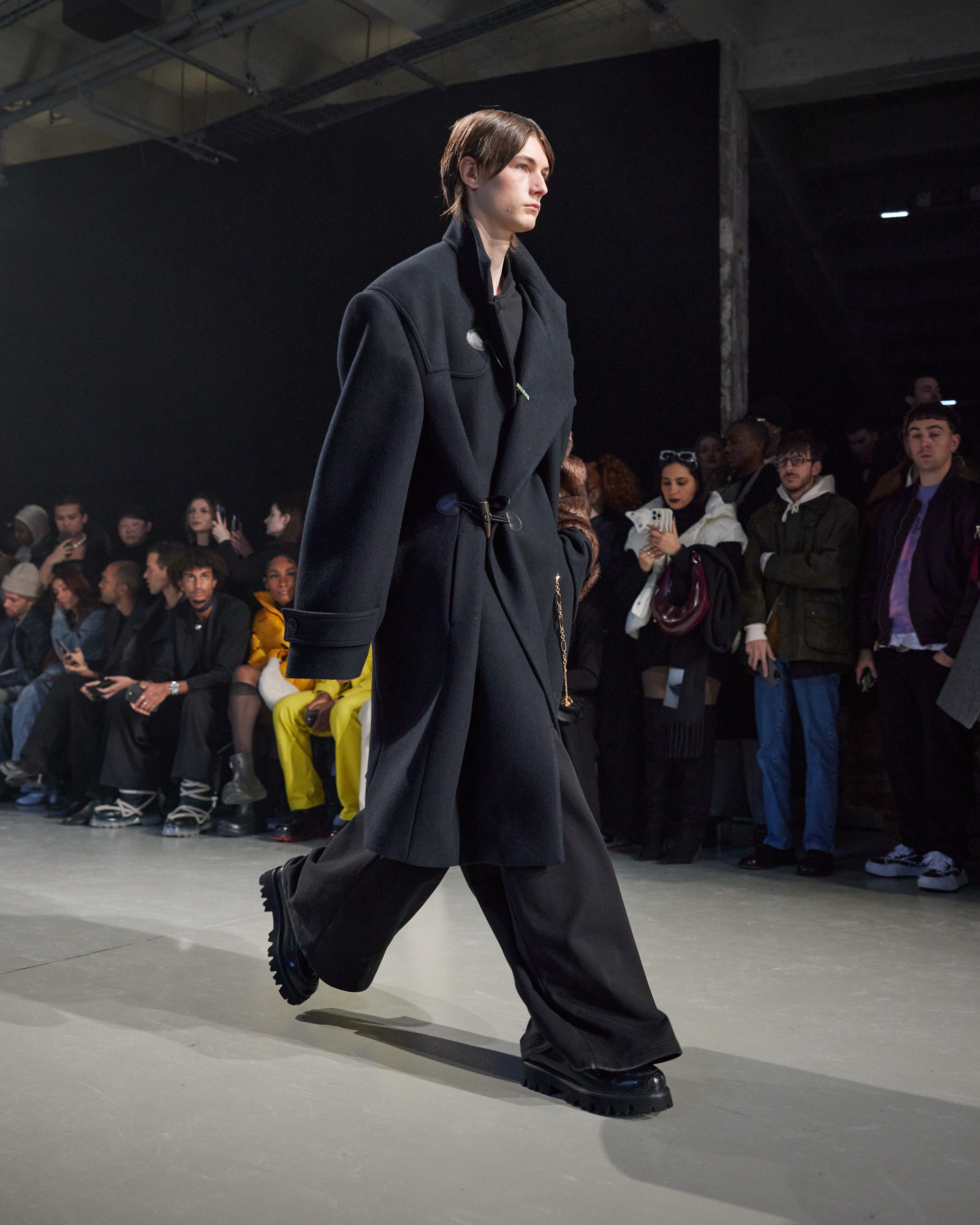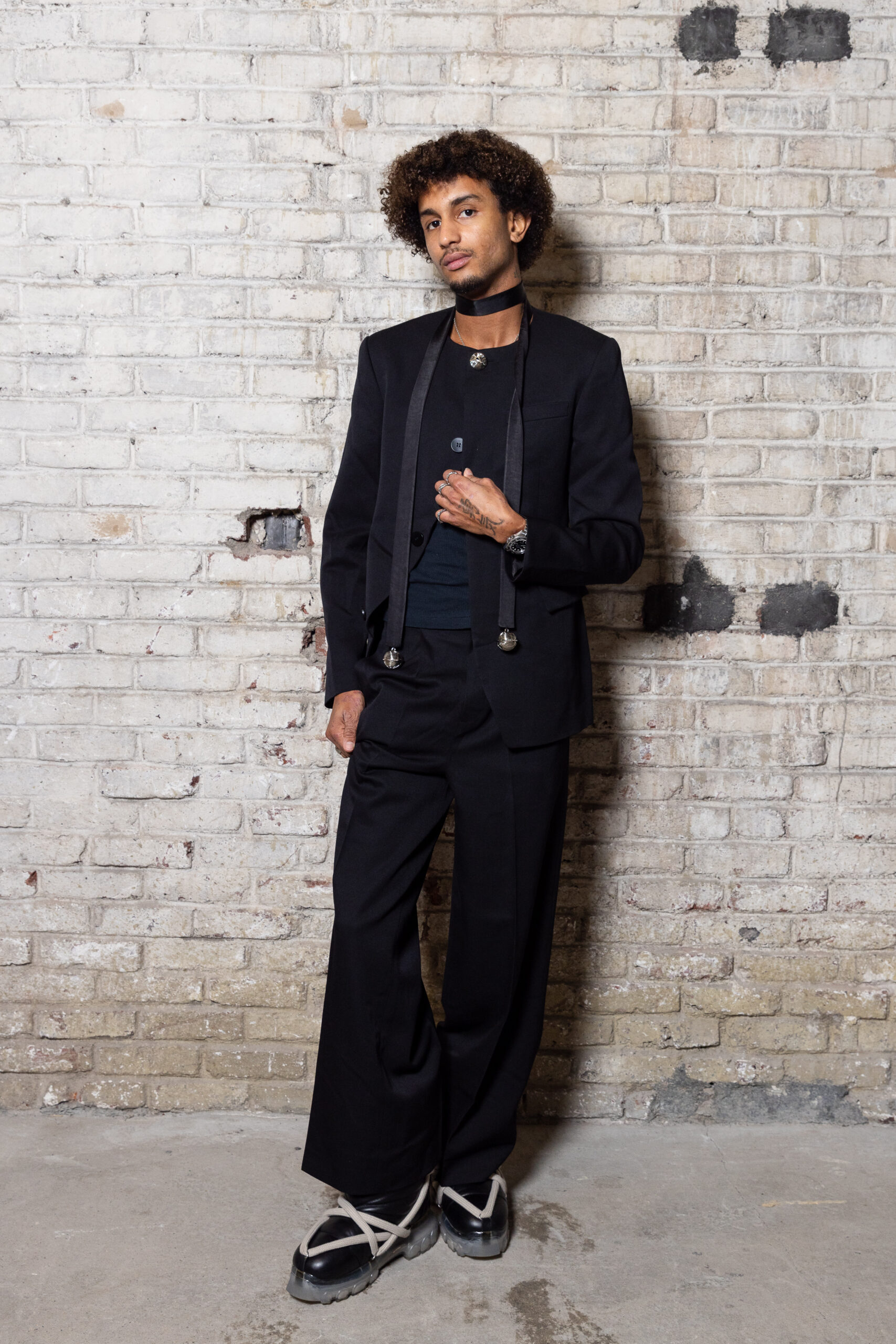 La collection est également marquée par la déconstruction et la juxtaposition des structures de la mode, créant un effet dynamique et provocateur. Ces éléments reflètent l’esprit urgent, rebelle et non-conformiste de cette génération.