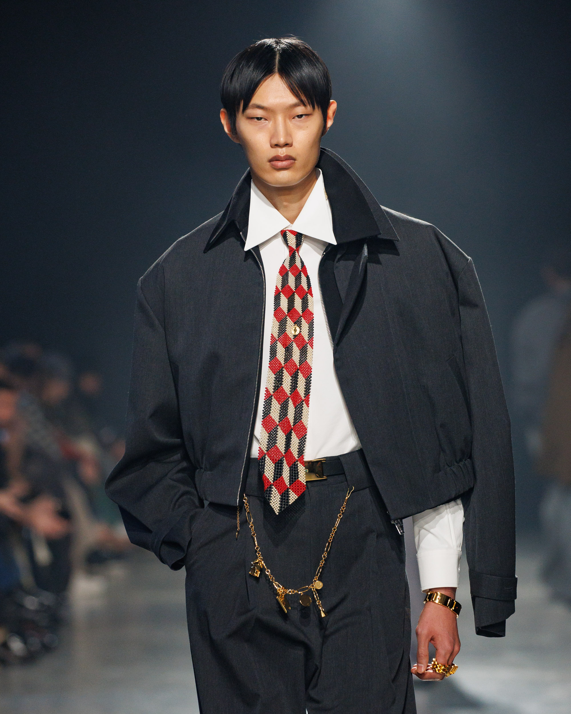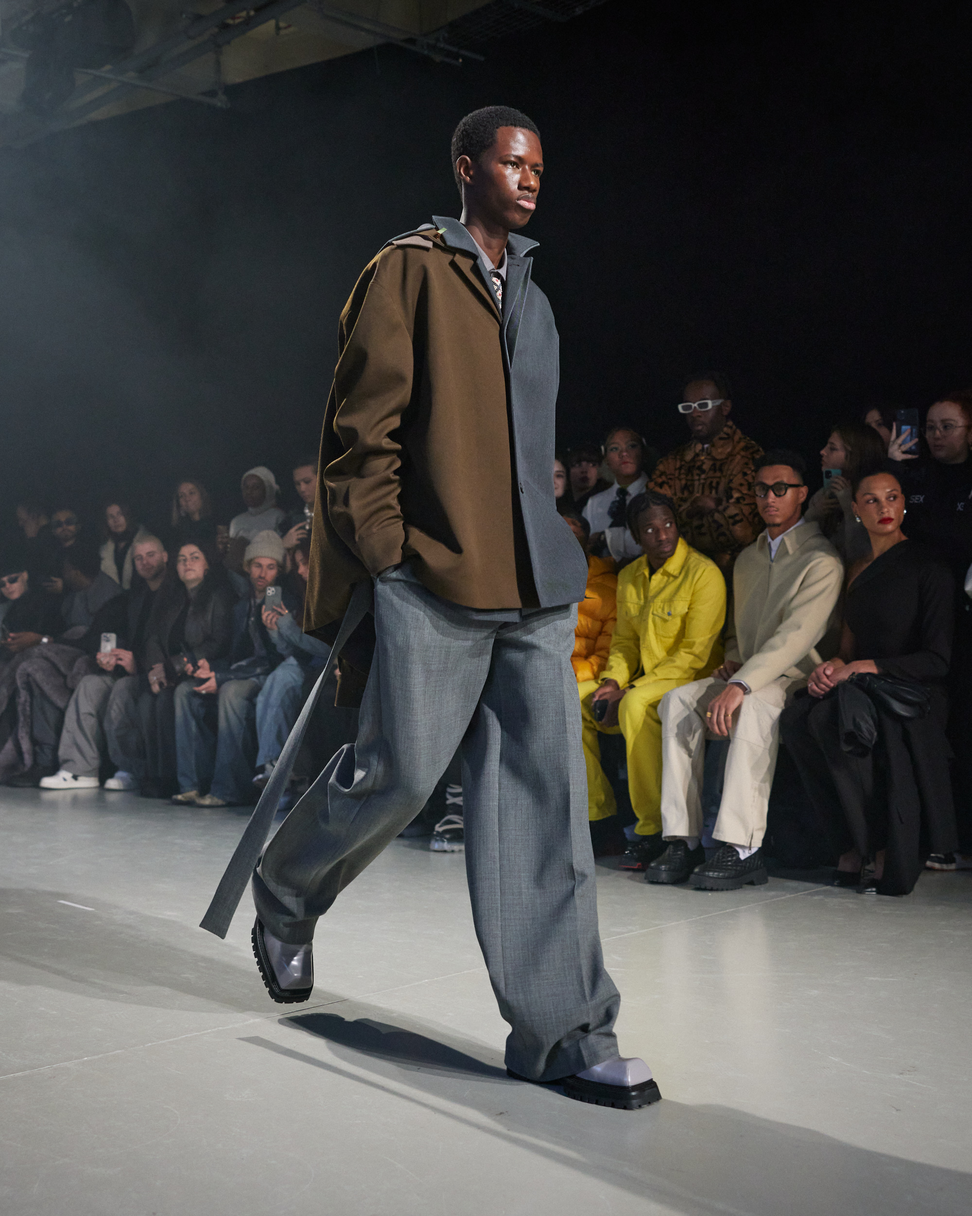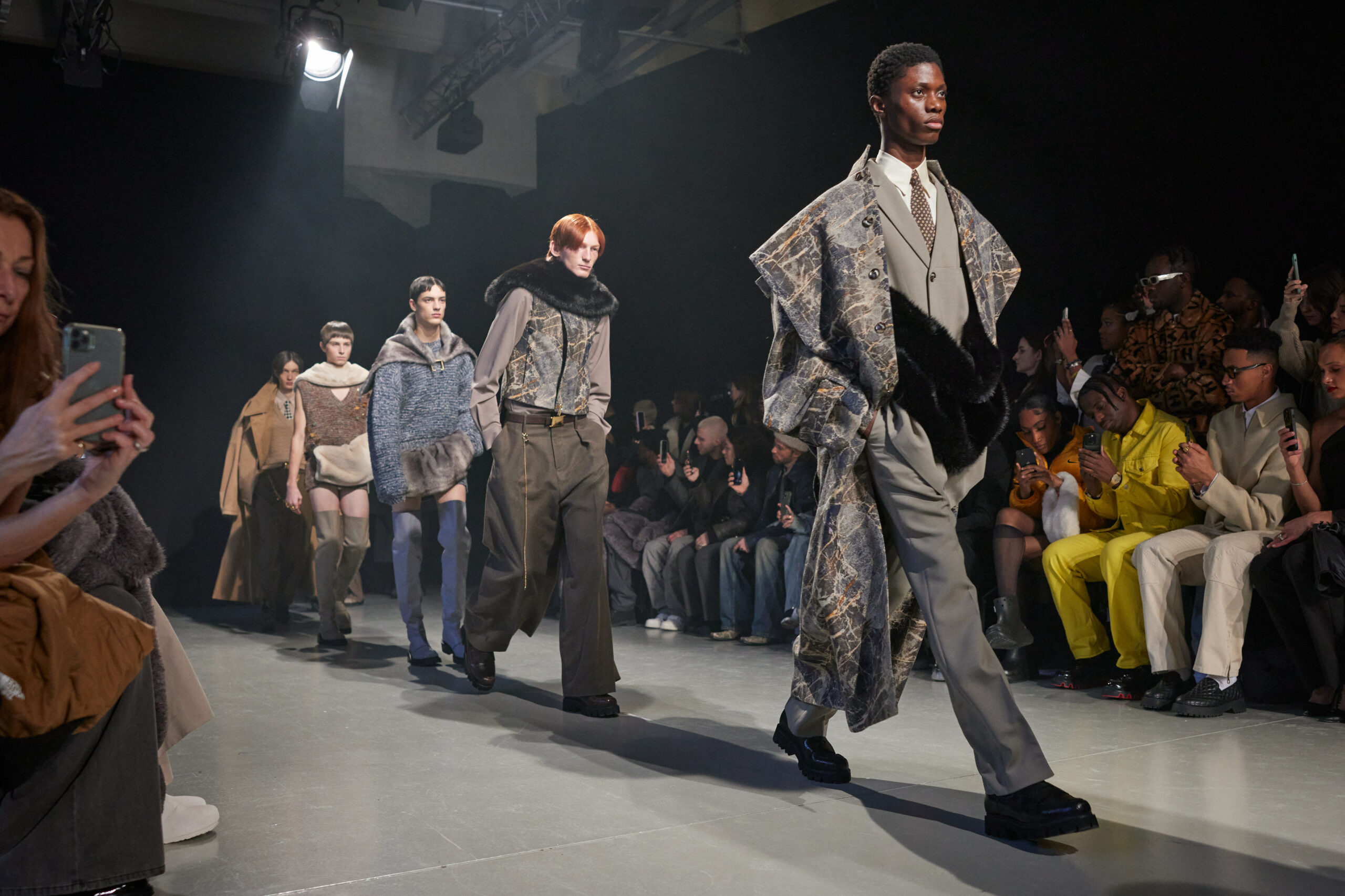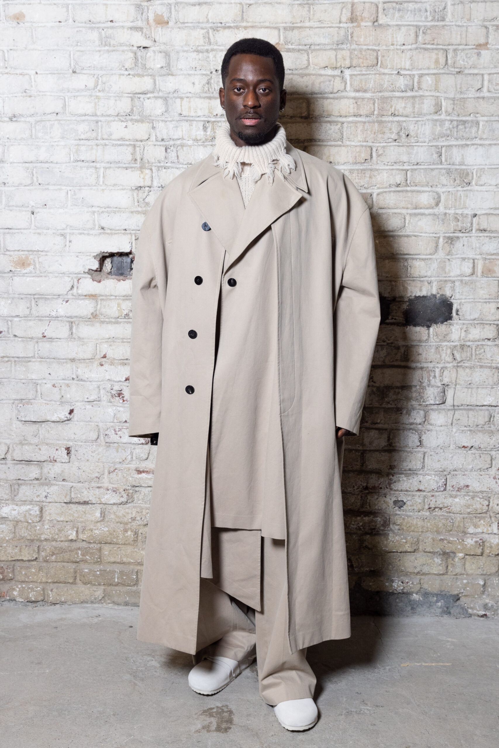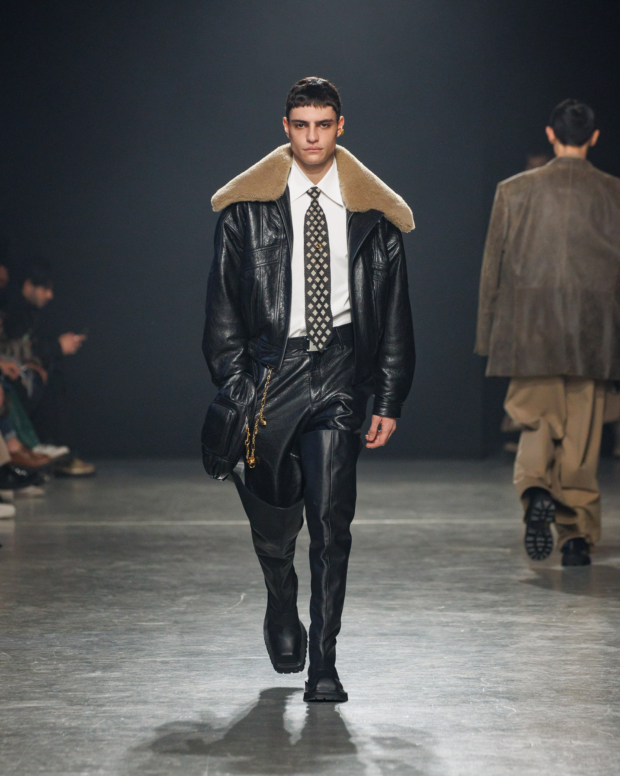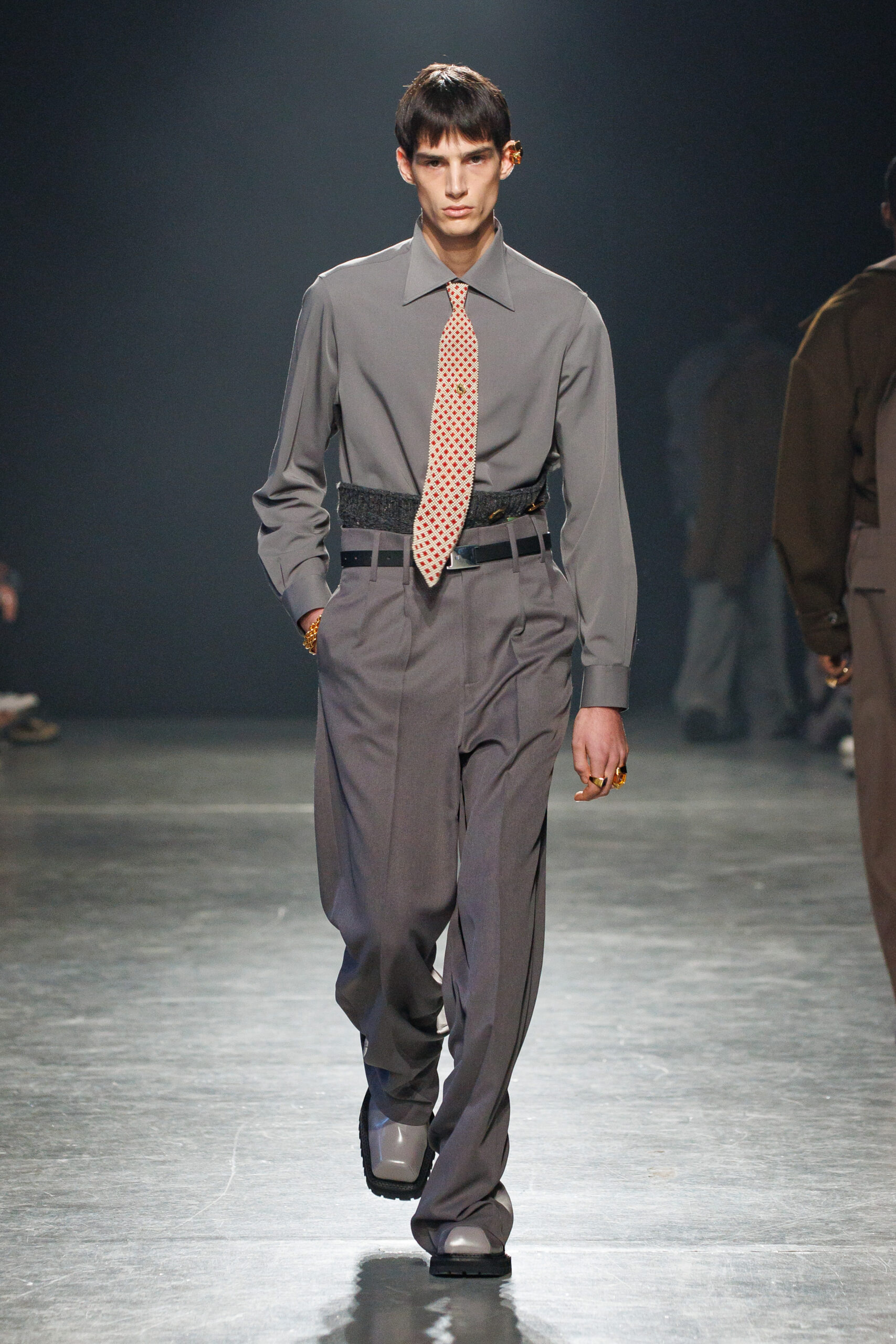 La collection est également marquée par la déconstruction et la juxtaposition des structures de la mode, créant un effet dynamique et provocateur. Ces éléments reflètent l’esprit urgent, rebelle et non-conformiste de cette génération.