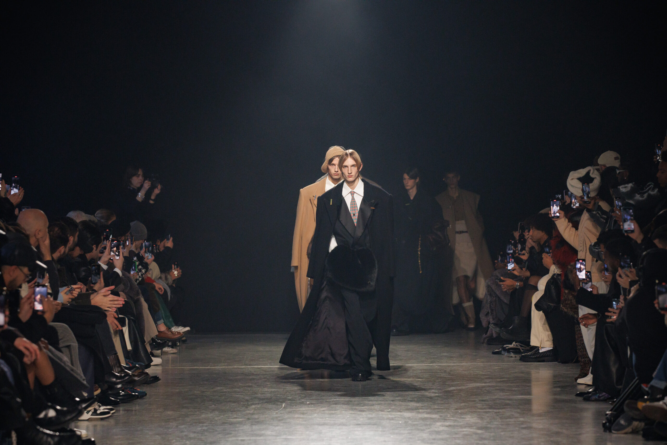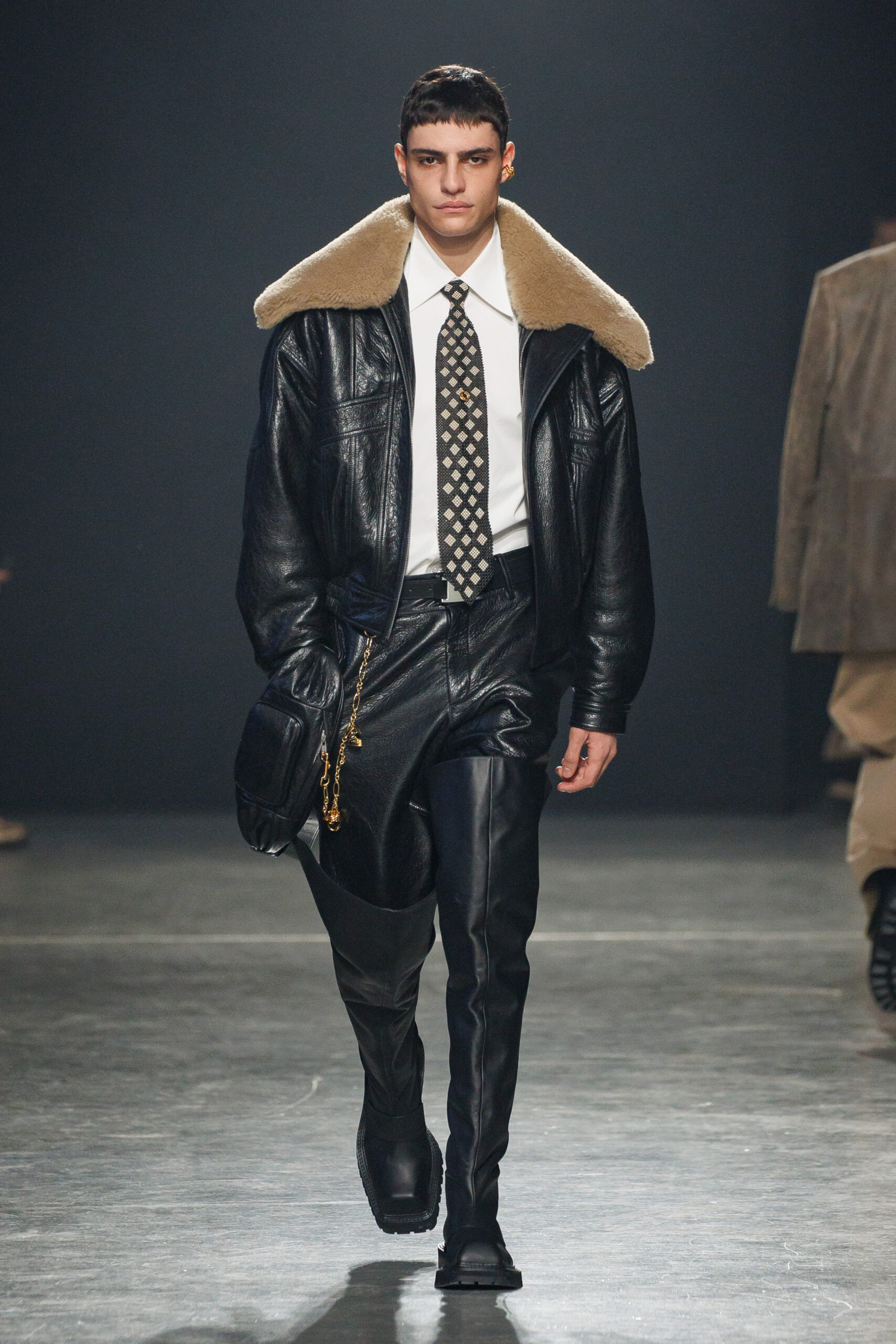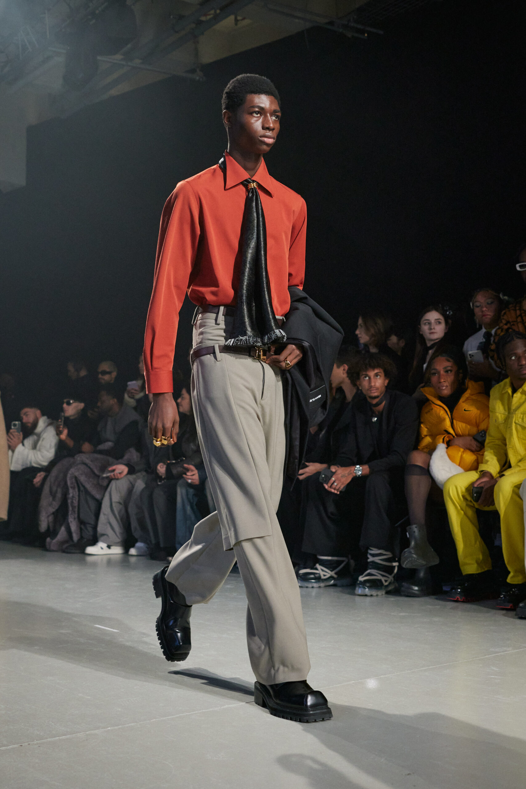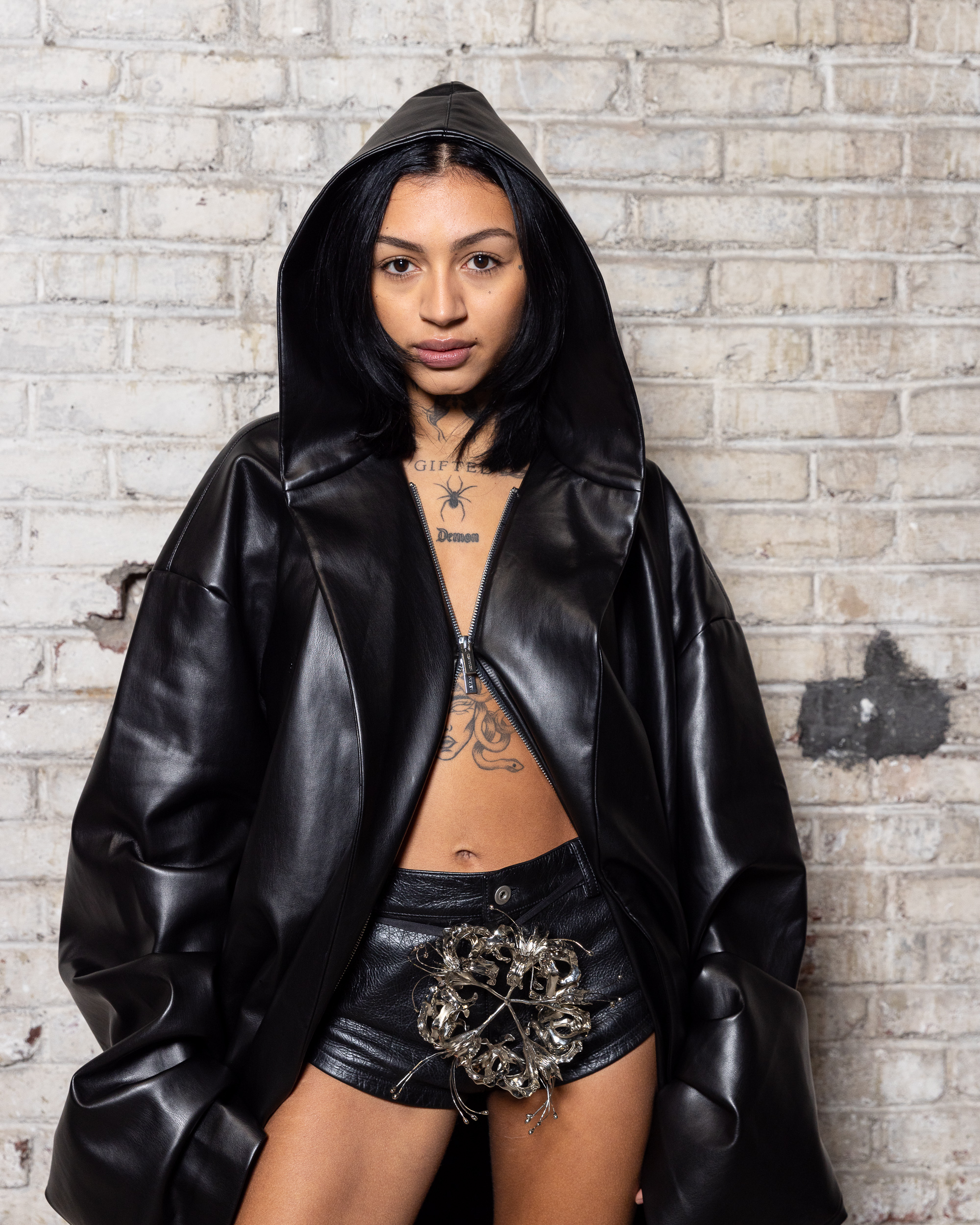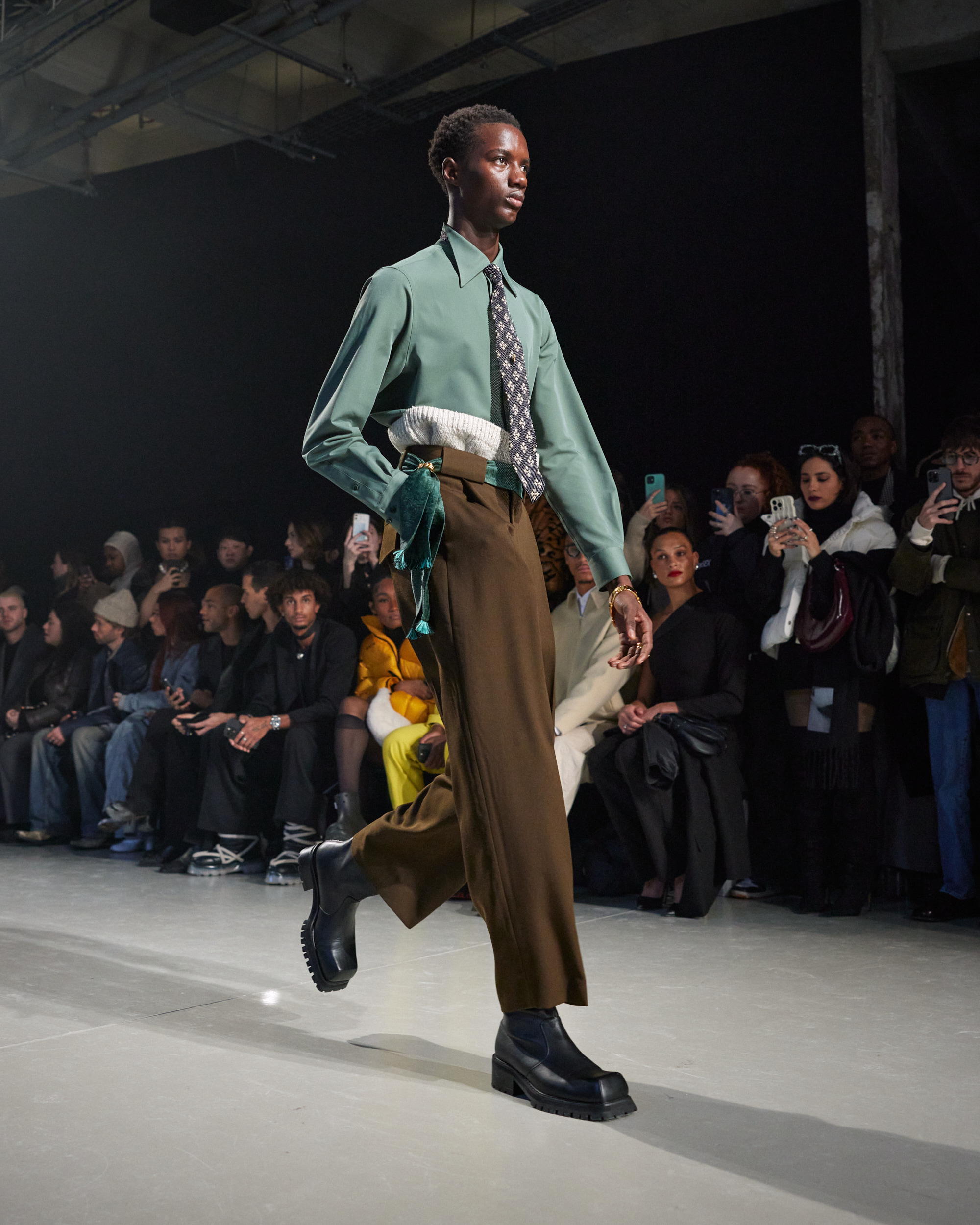 La collection est également marquée par la déconstruction et la juxtaposition des structures de la mode, créant un effet dynamique et provocateur. Ces éléments reflètent l’esprit urgent, rebelle et non-conformiste de cette génération.