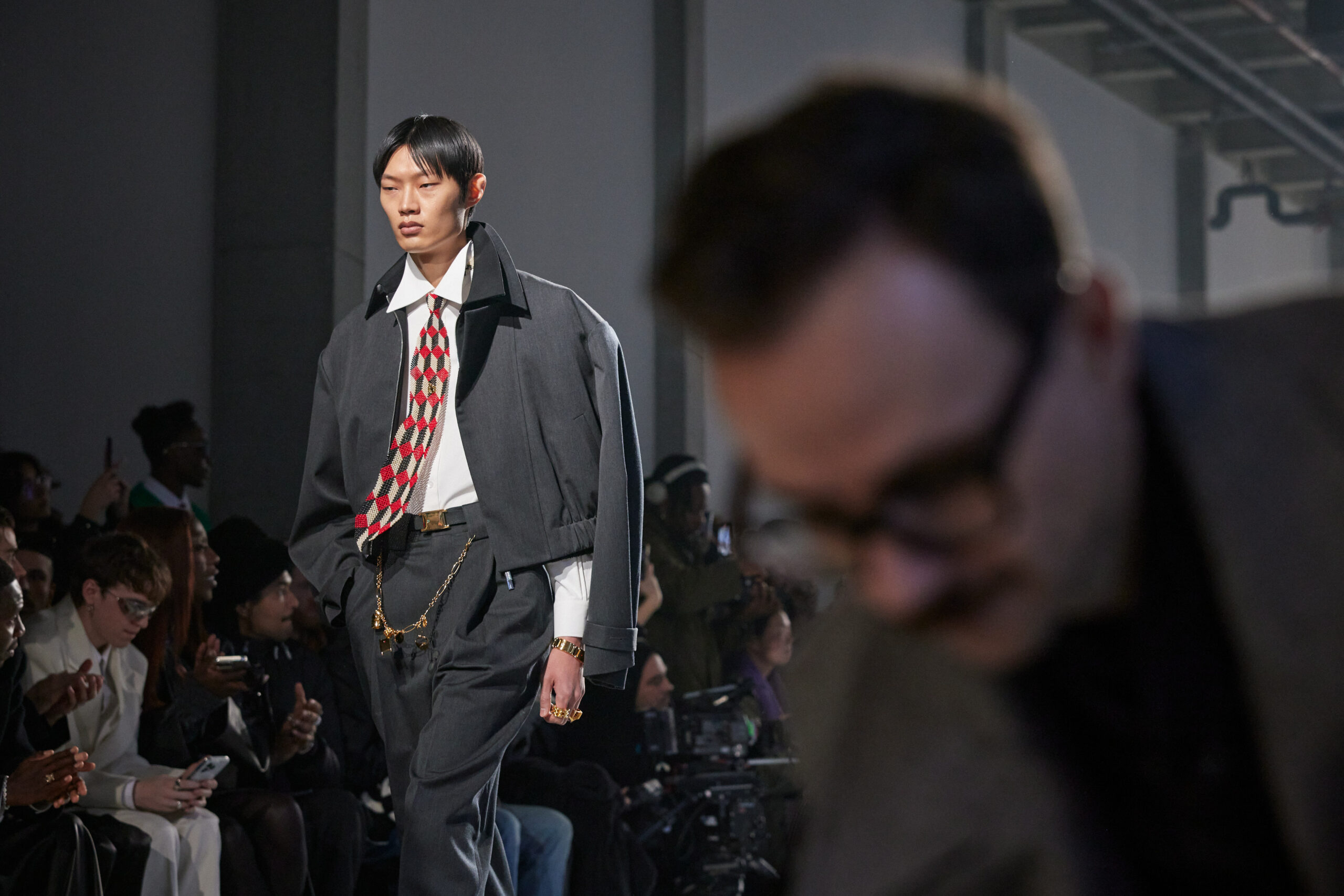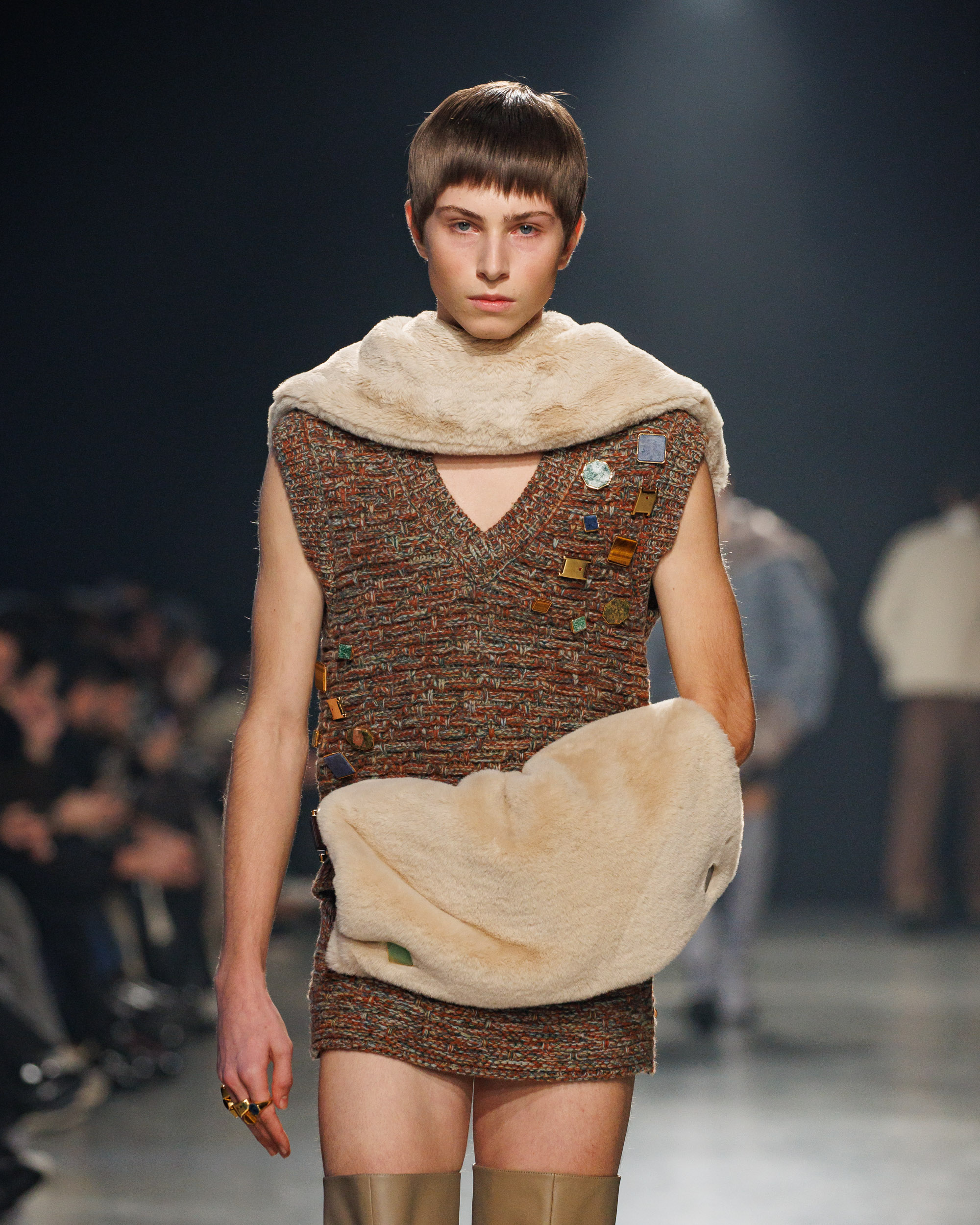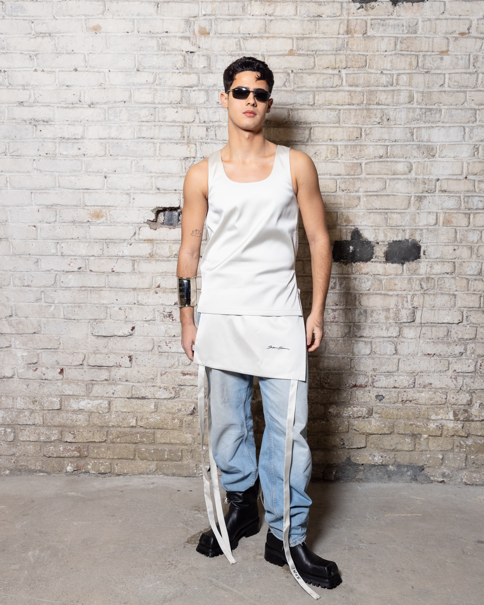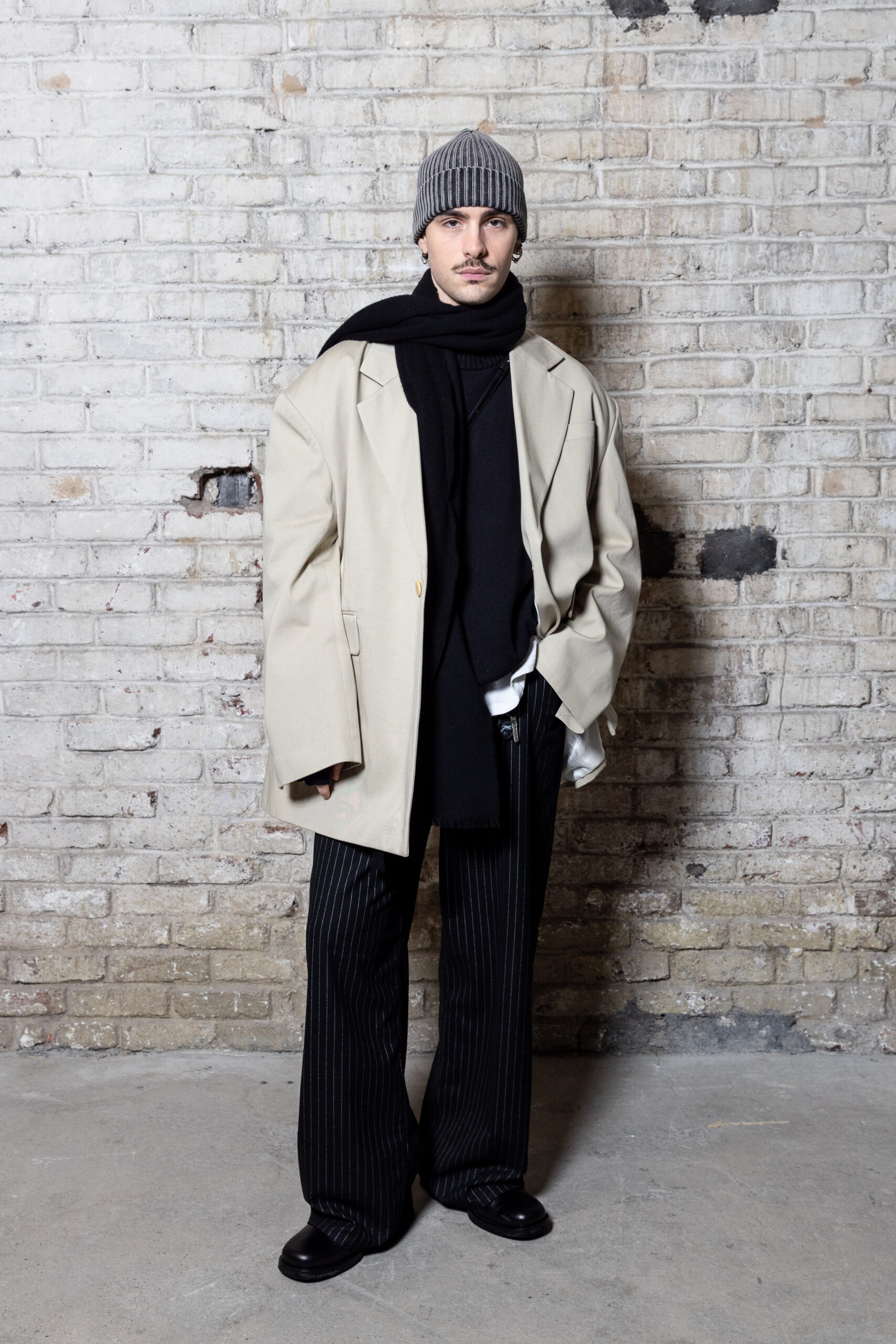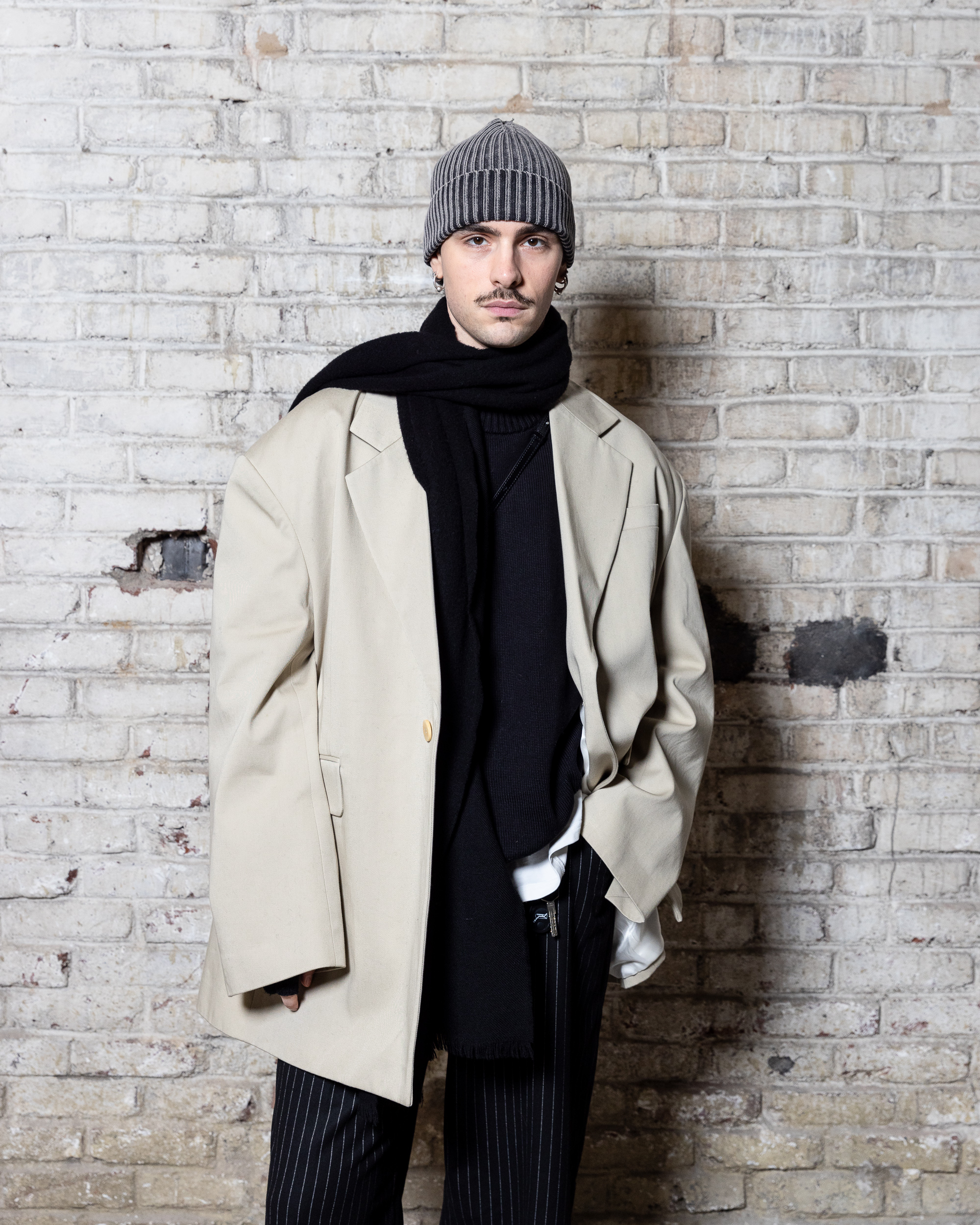 La collection est également marquée par la déconstruction et la juxtaposition des structures de la mode, créant un effet dynamique et provocateur. Ces éléments reflètent l’esprit urgent, rebelle et non-conformiste de cette génération.