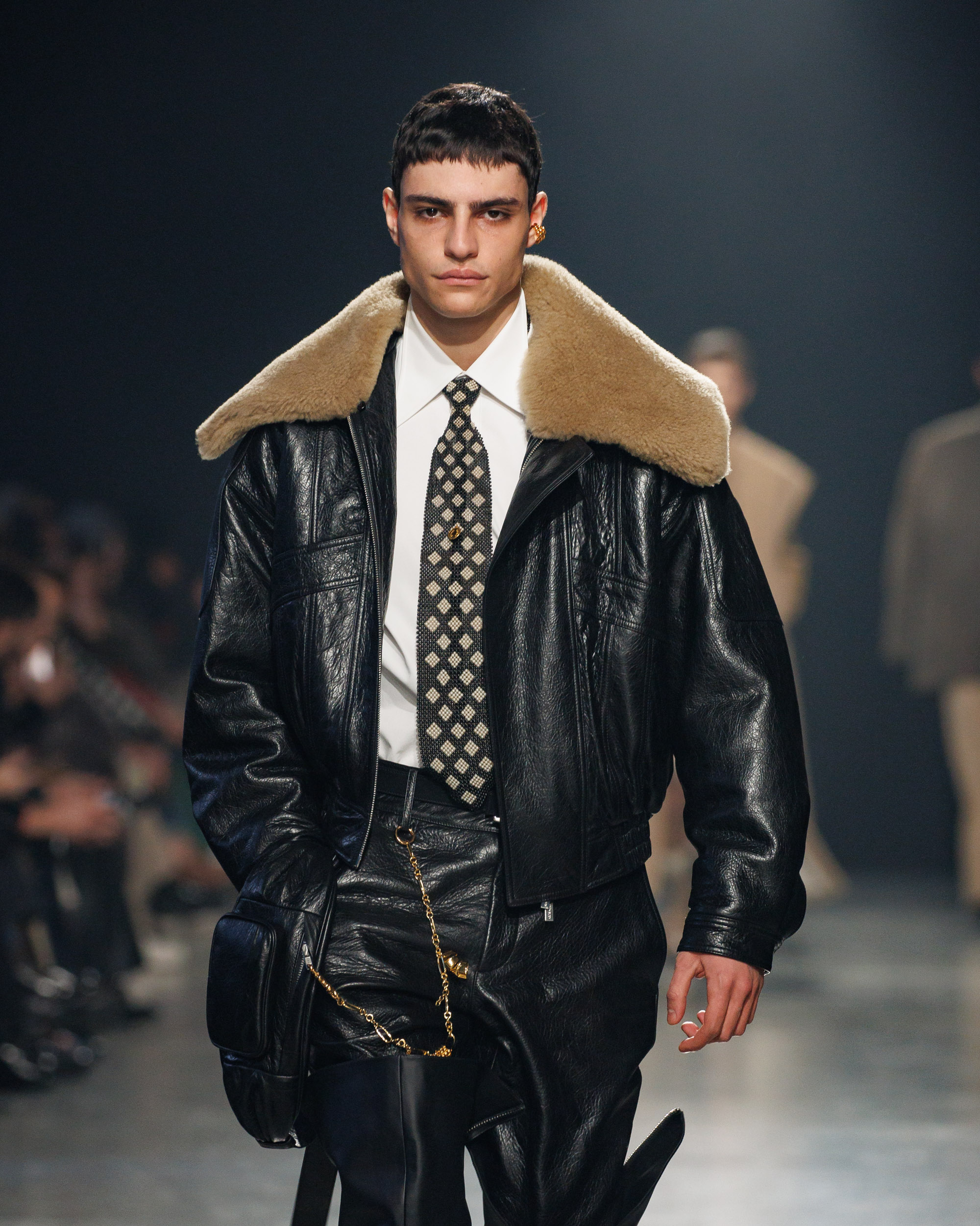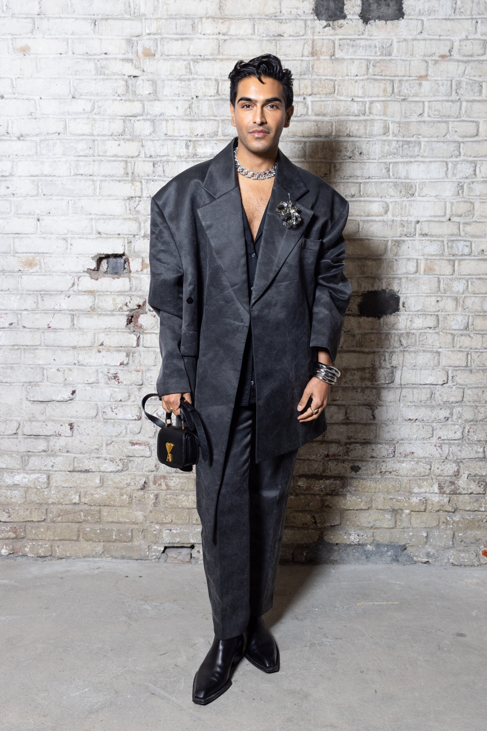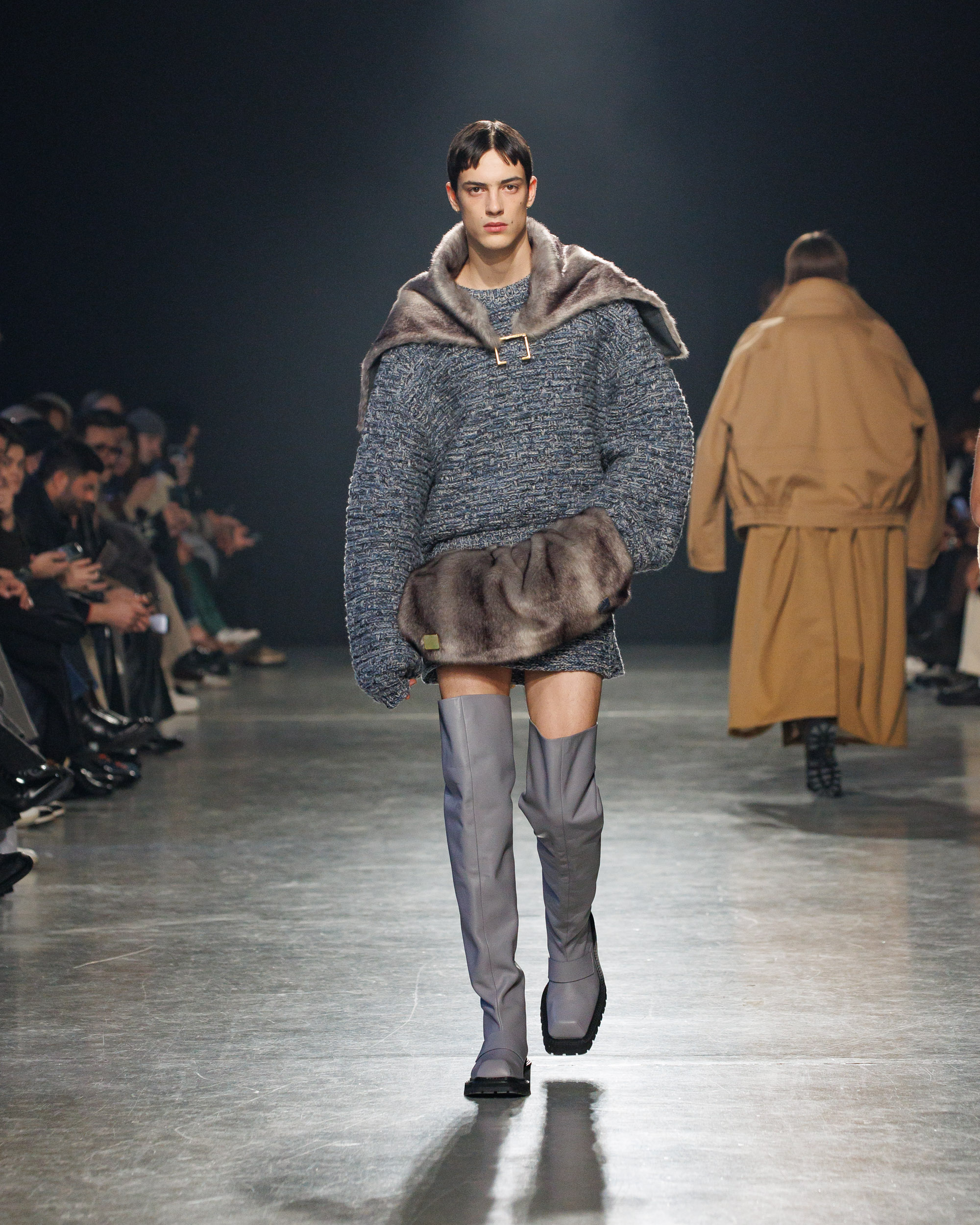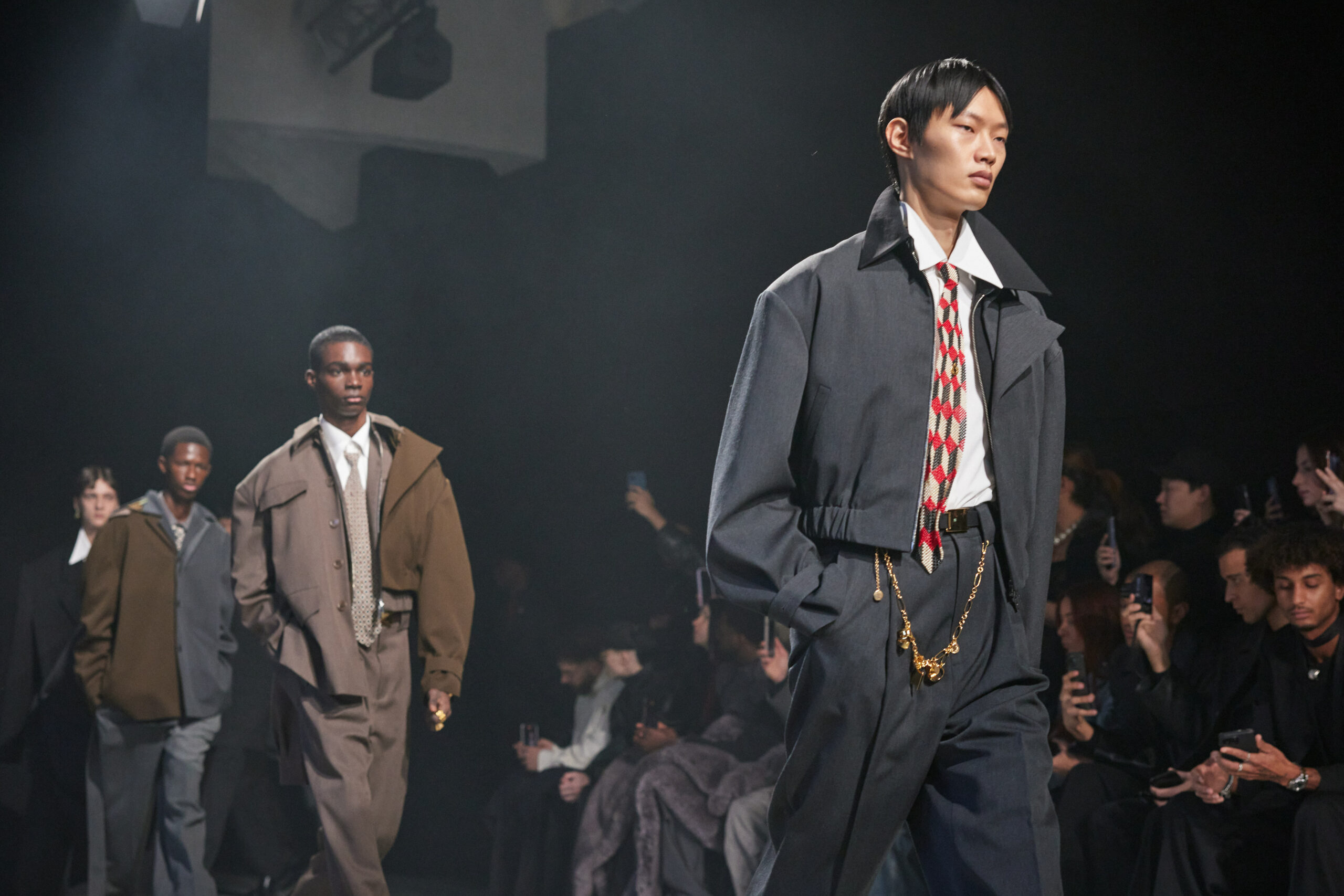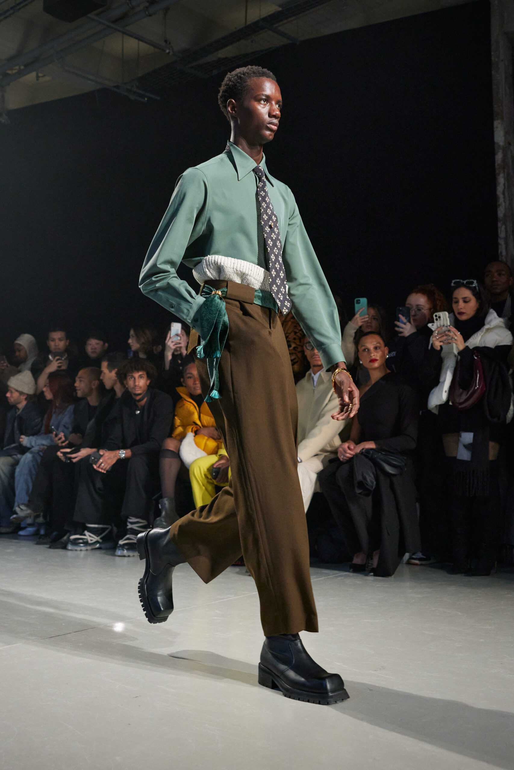 La collection est également marquée par la déconstruction et la juxtaposition des structures de la mode, créant un effet dynamique et provocateur. Ces éléments reflètent l’esprit urgent, rebelle et non-conformiste de cette génération.