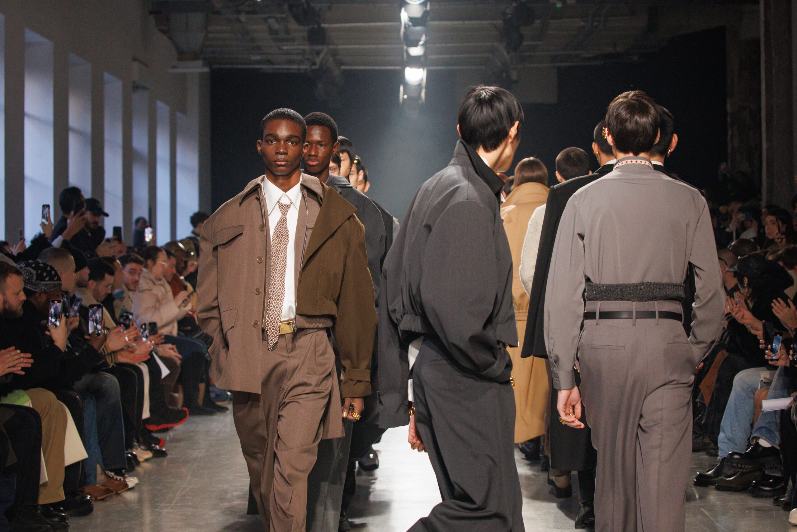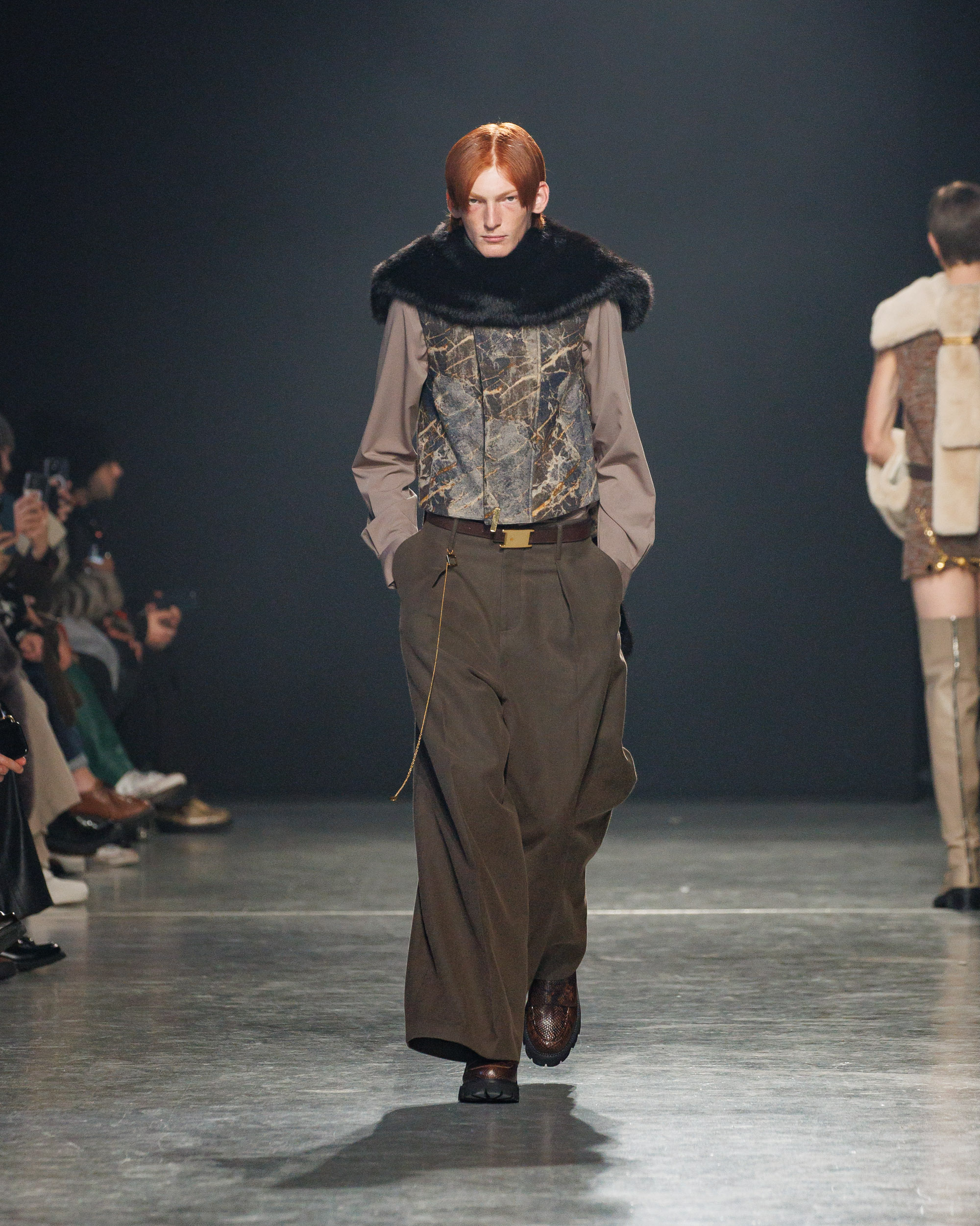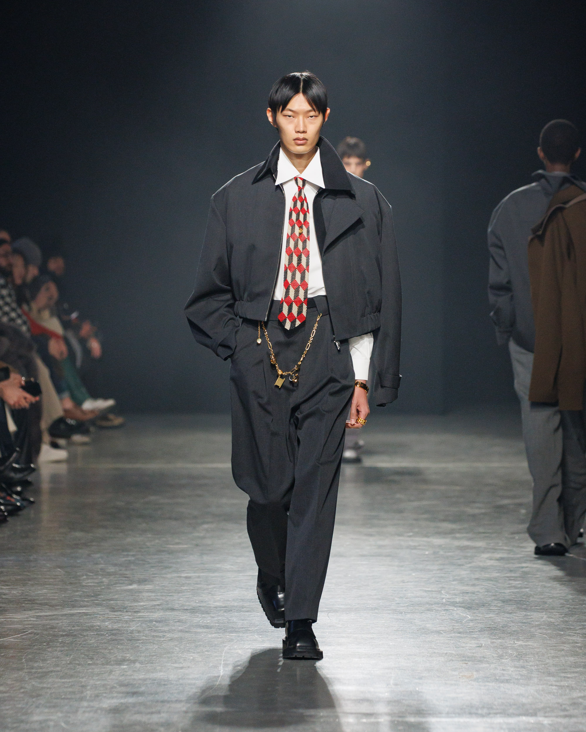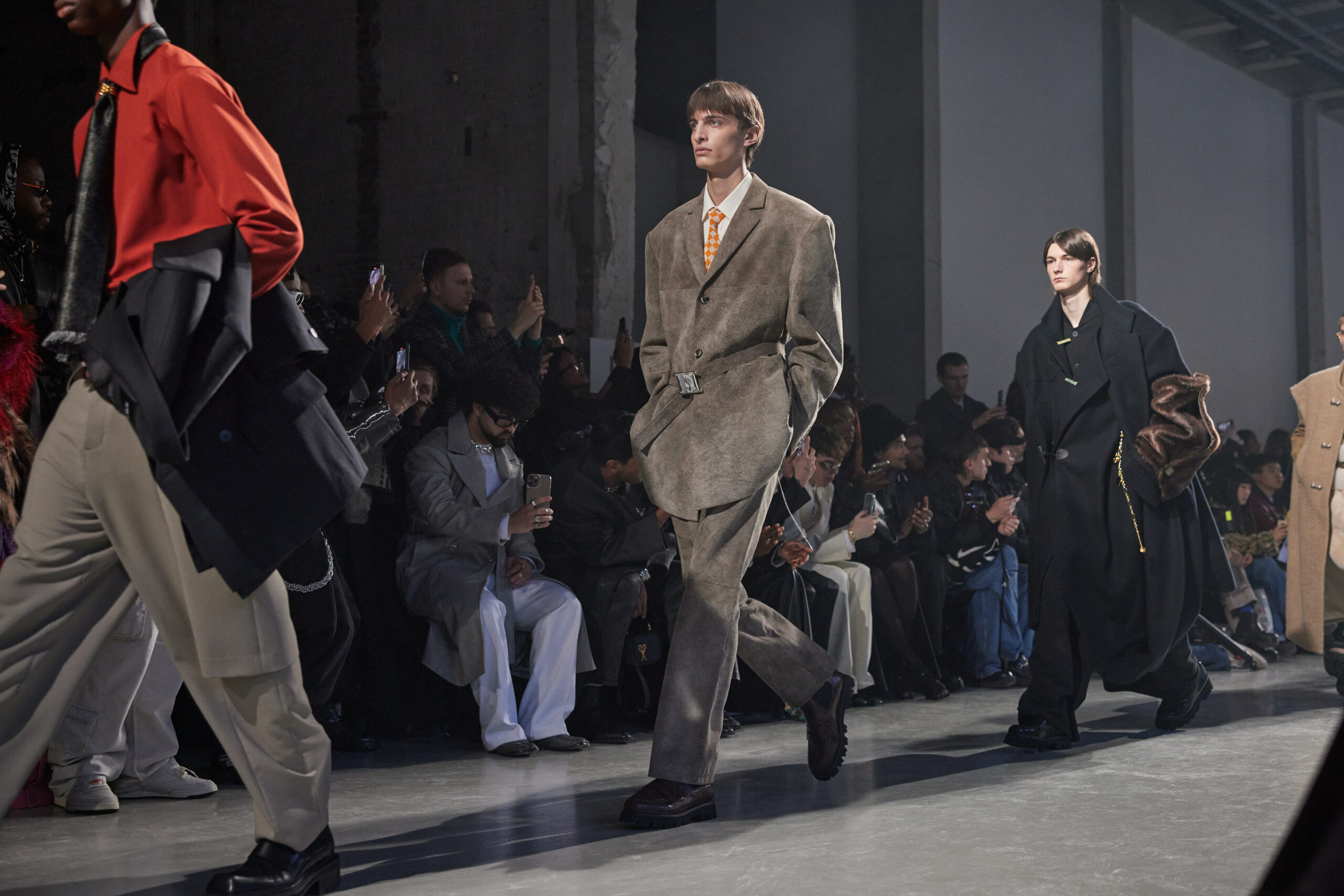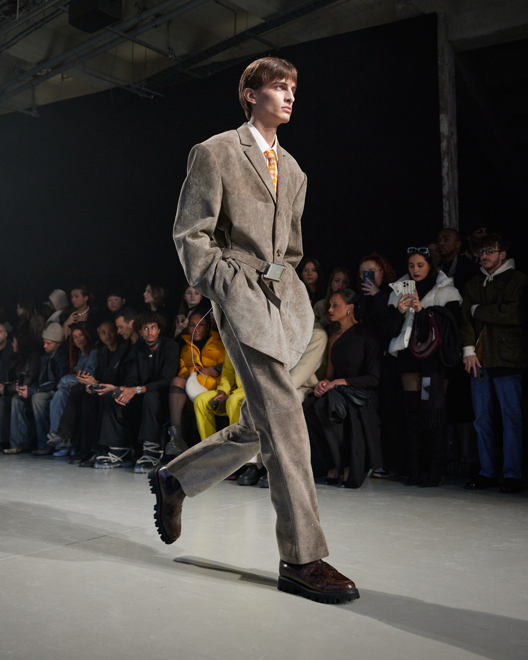 La collection est également marquée par la déconstruction et la juxtaposition des structures de la mode, créant un effet dynamique et provocateur. Ces éléments reflètent l’esprit urgent, rebelle et non-conformiste de cette génération.