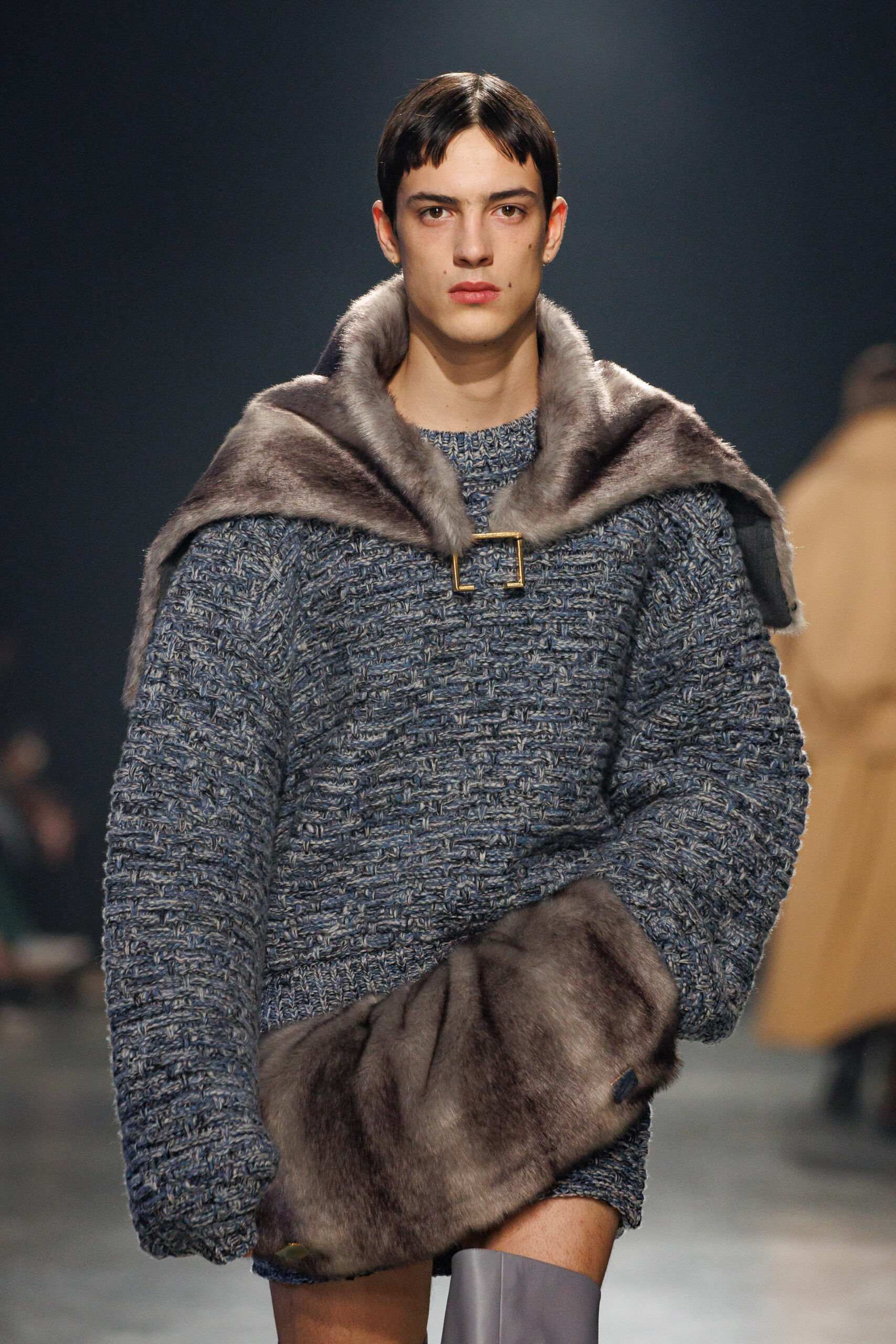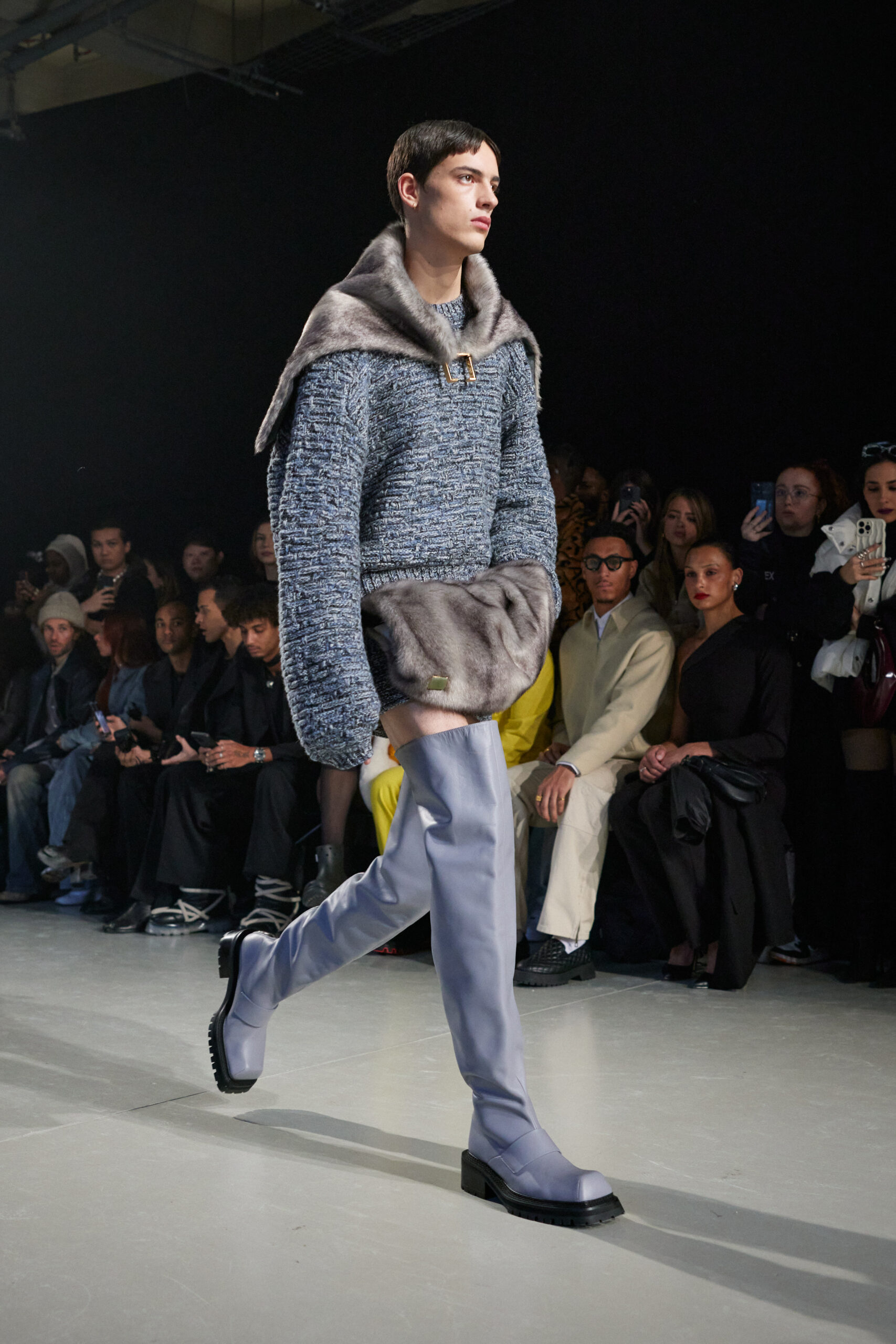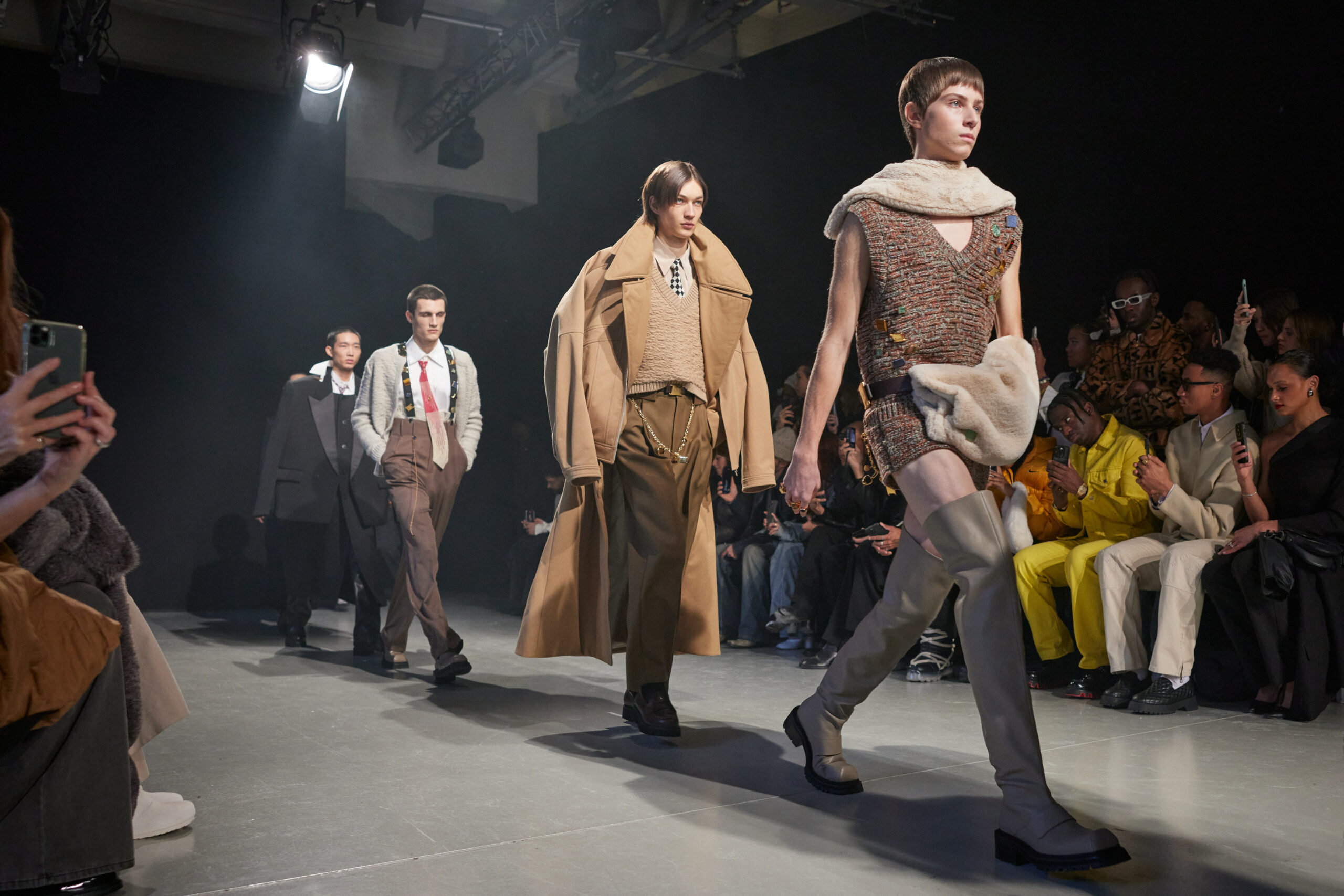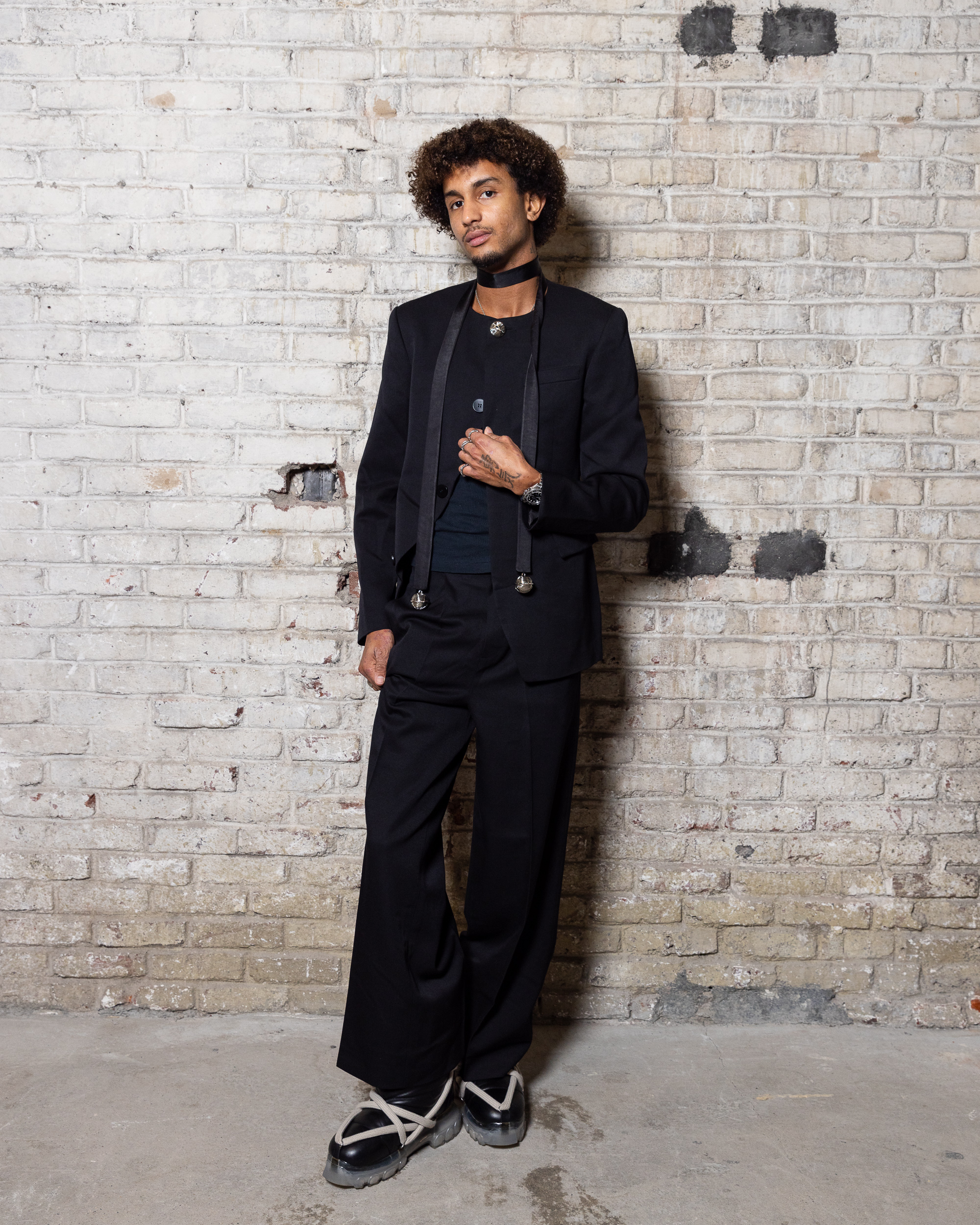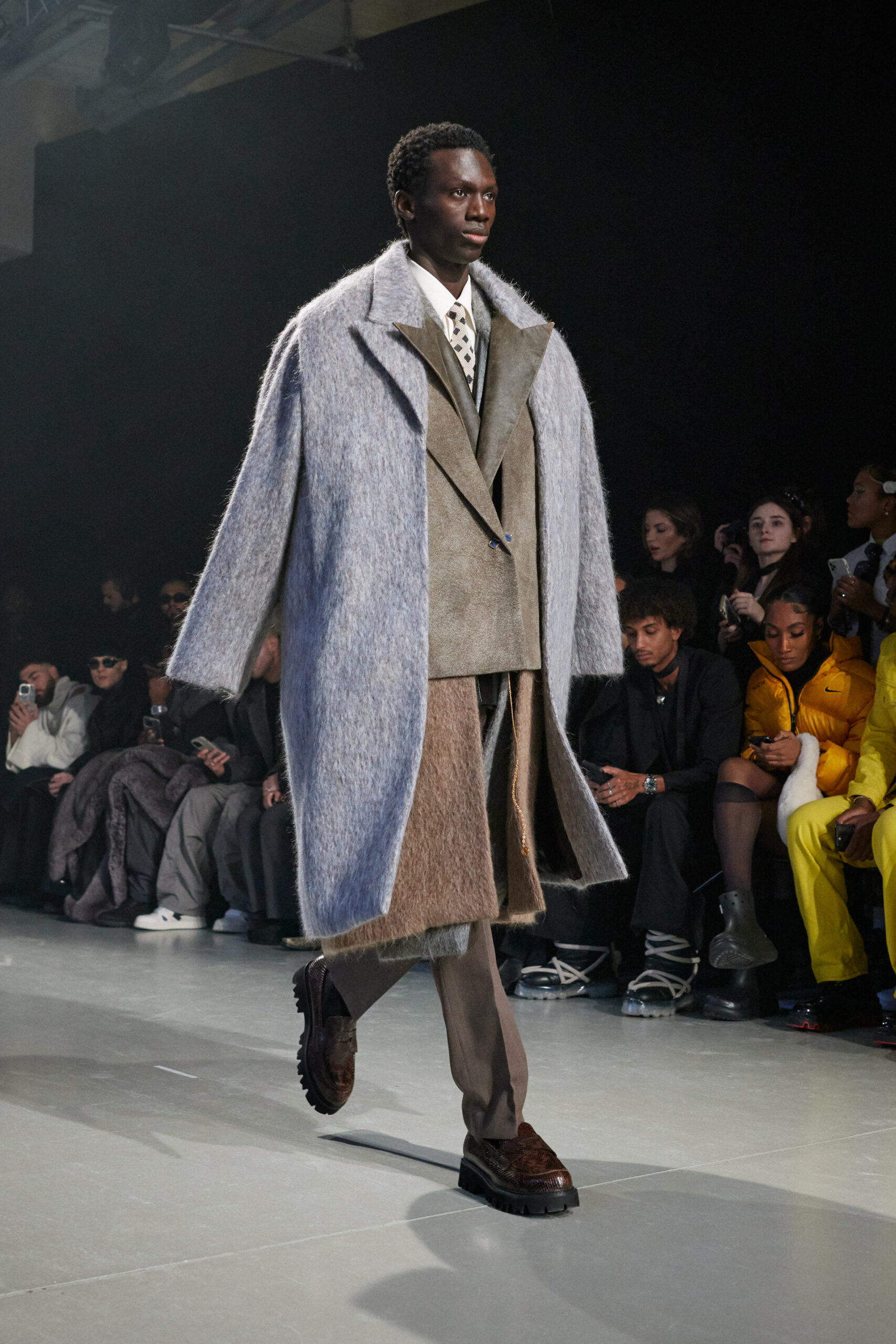 La collection est également marquée par la déconstruction et la juxtaposition des structures de la mode, créant un effet dynamique et provocateur. Ces éléments reflètent l’esprit urgent, rebelle et non-conformiste de cette génération.