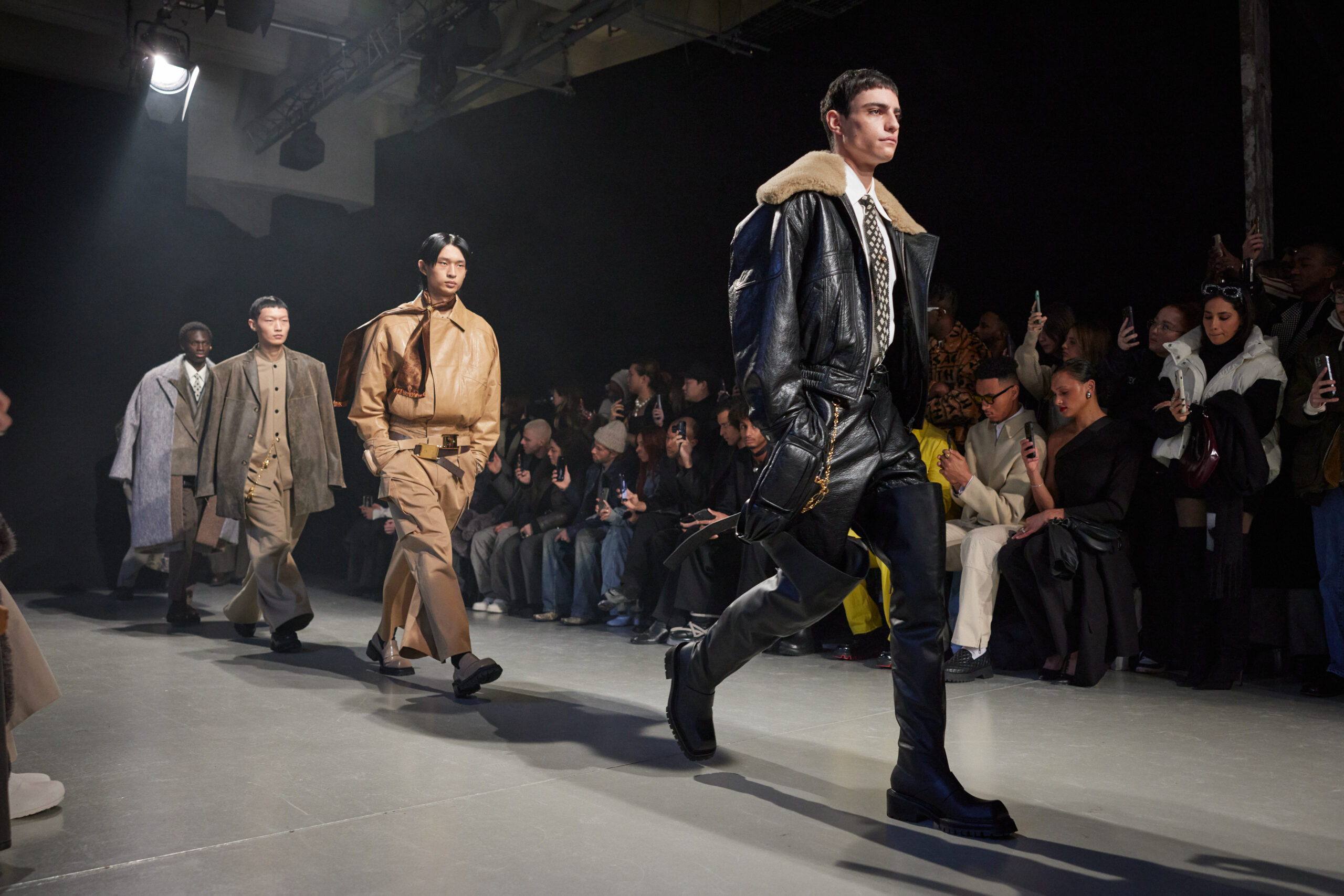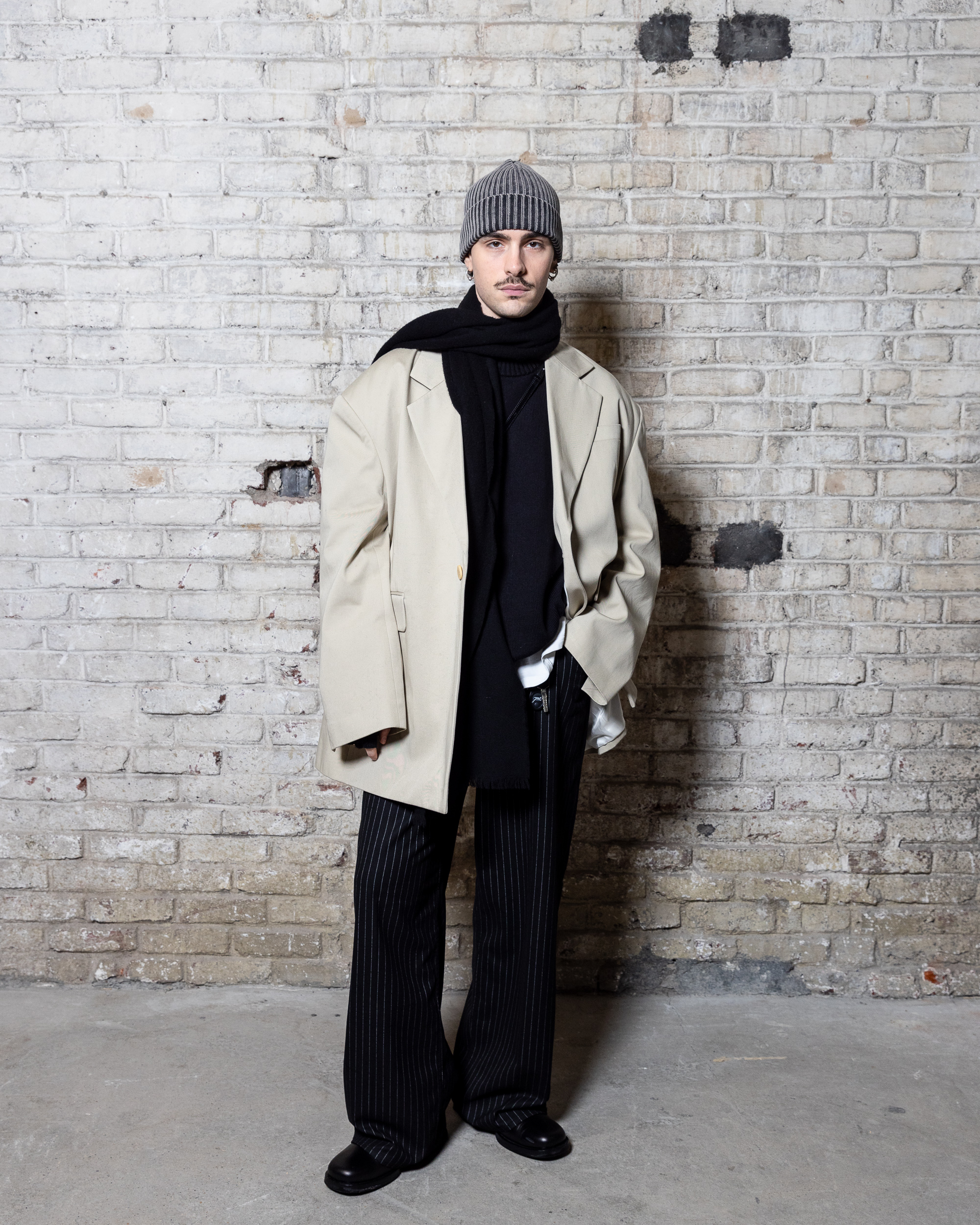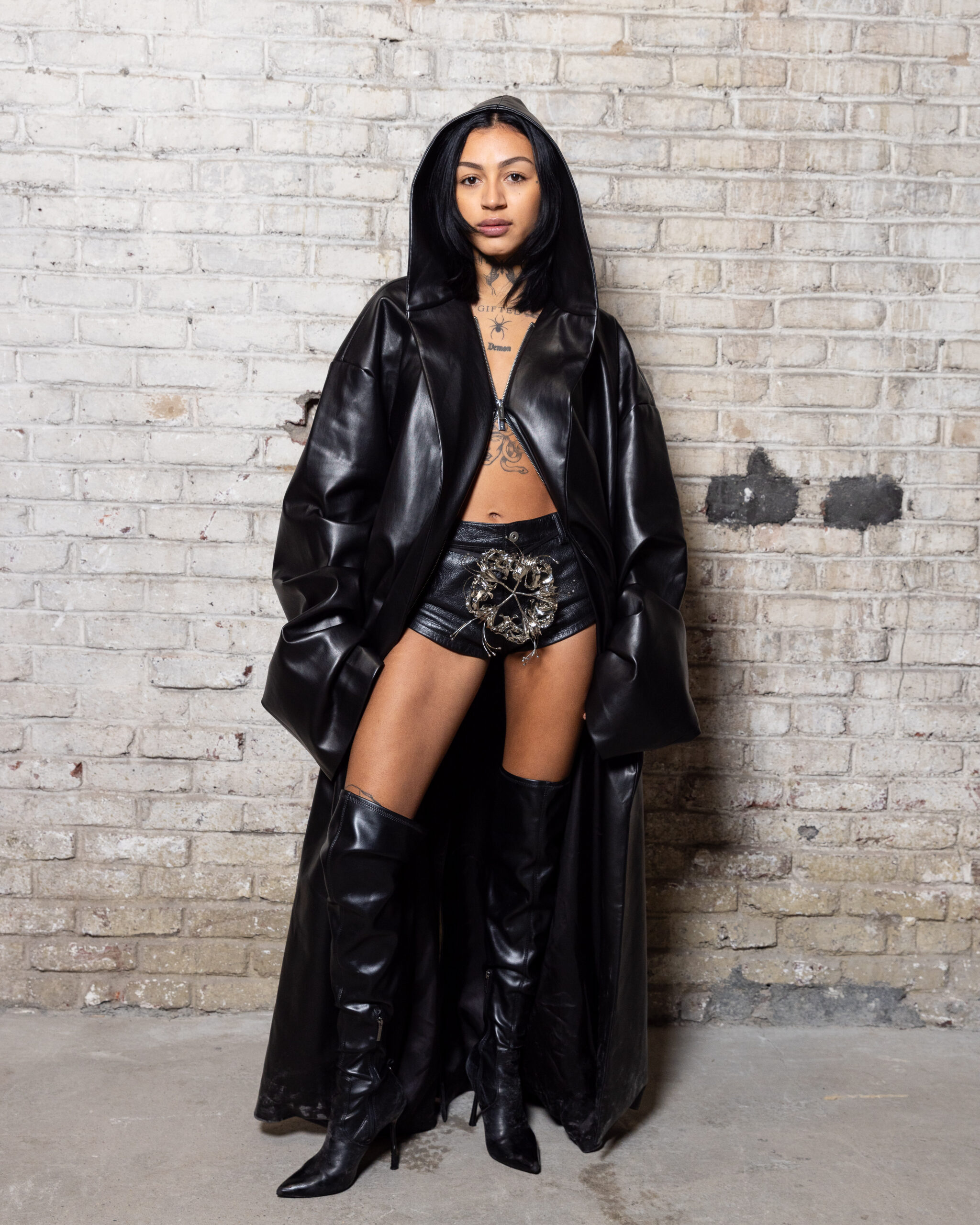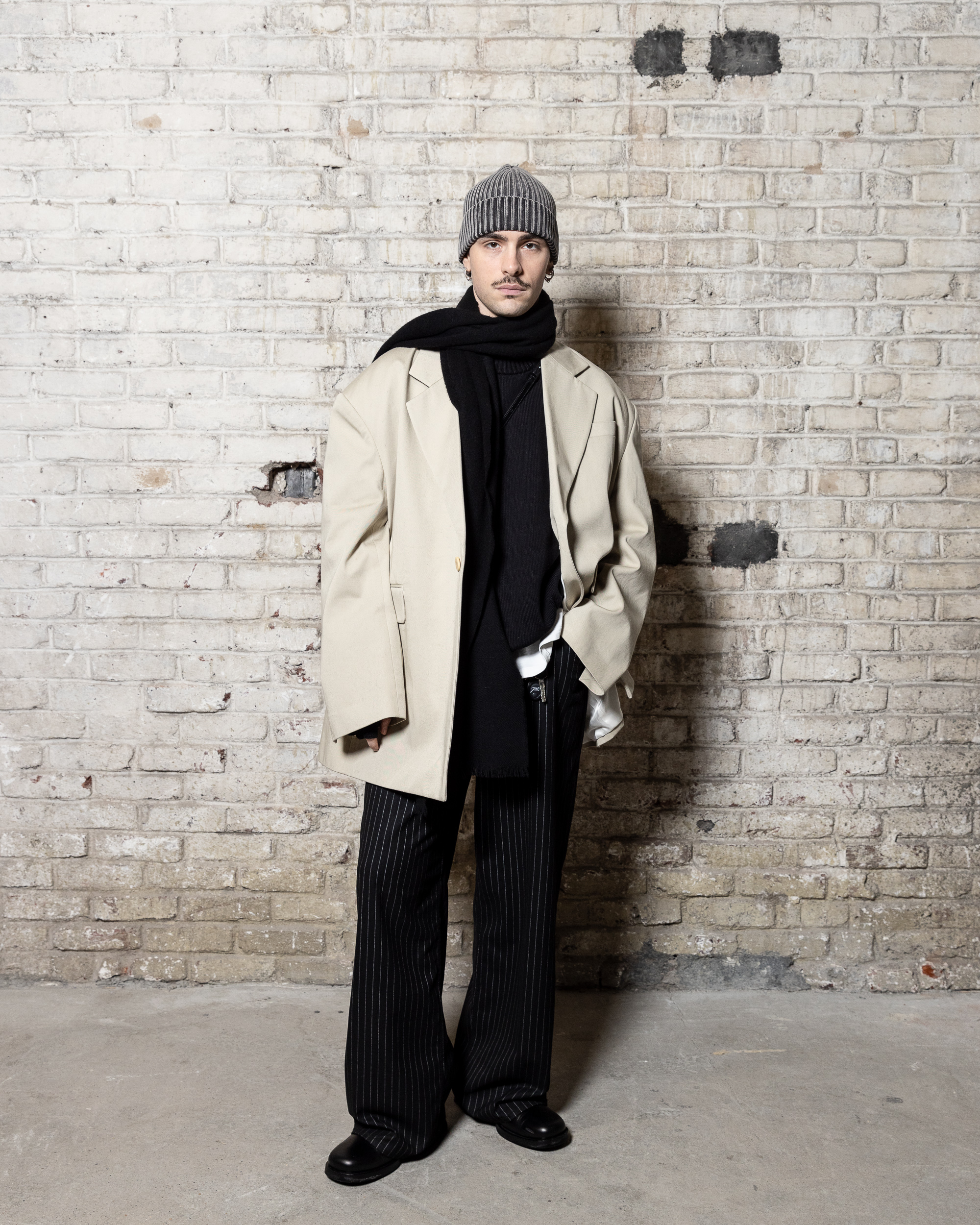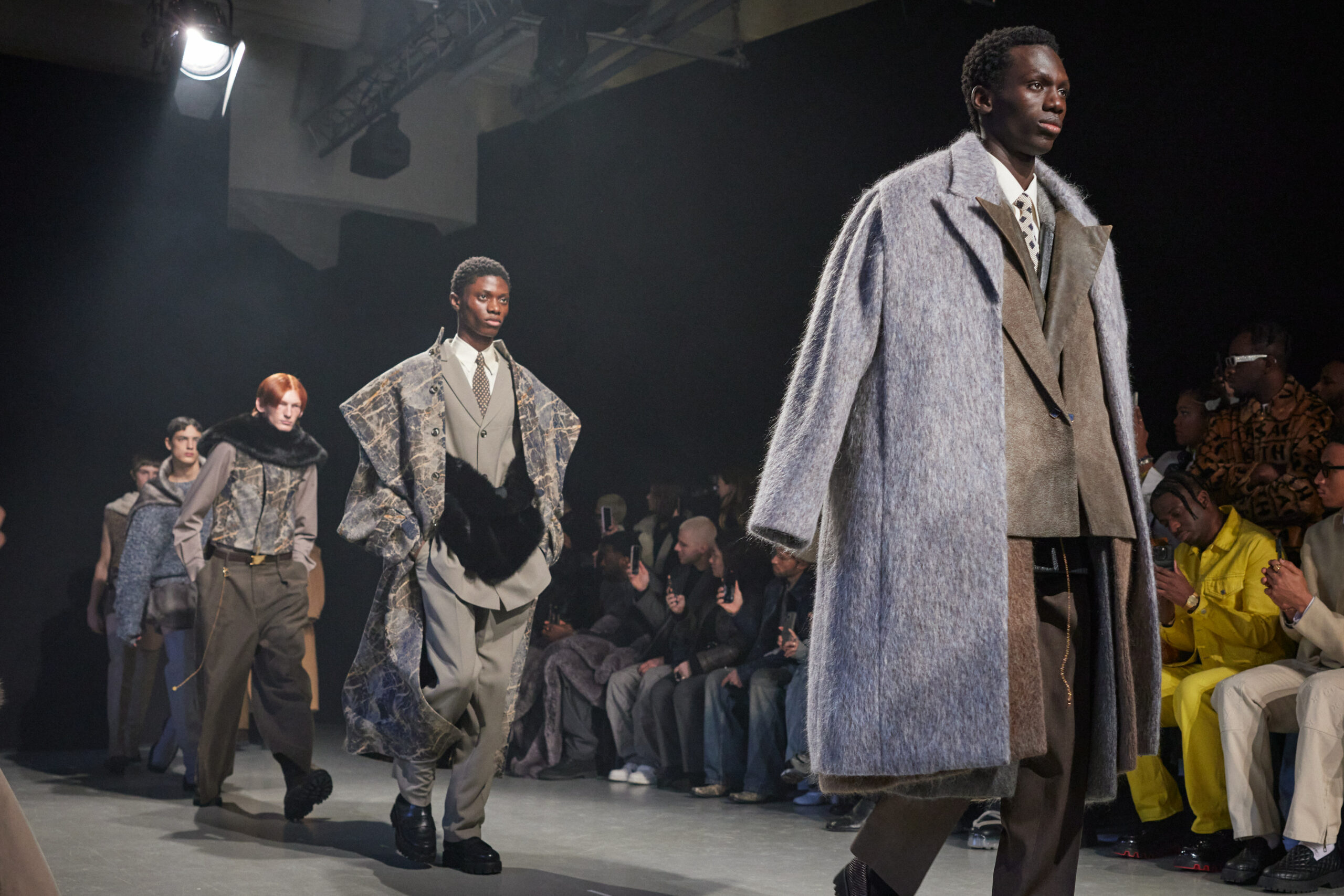 La collection est également marquée par la déconstruction et la juxtaposition des structures de la mode, créant un effet dynamique et provocateur. Ces éléments reflètent l’esprit urgent, rebelle et non-conformiste de cette génération.