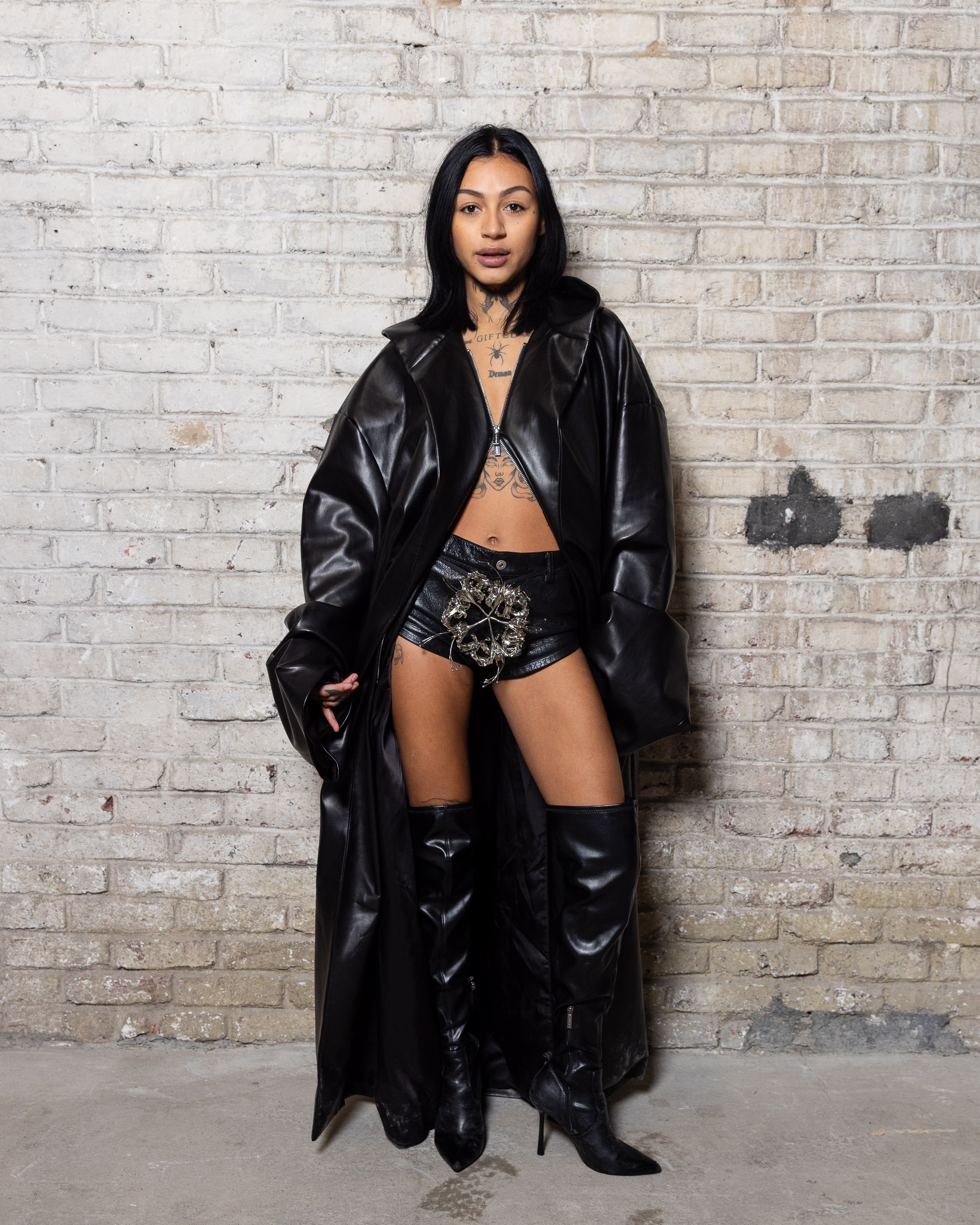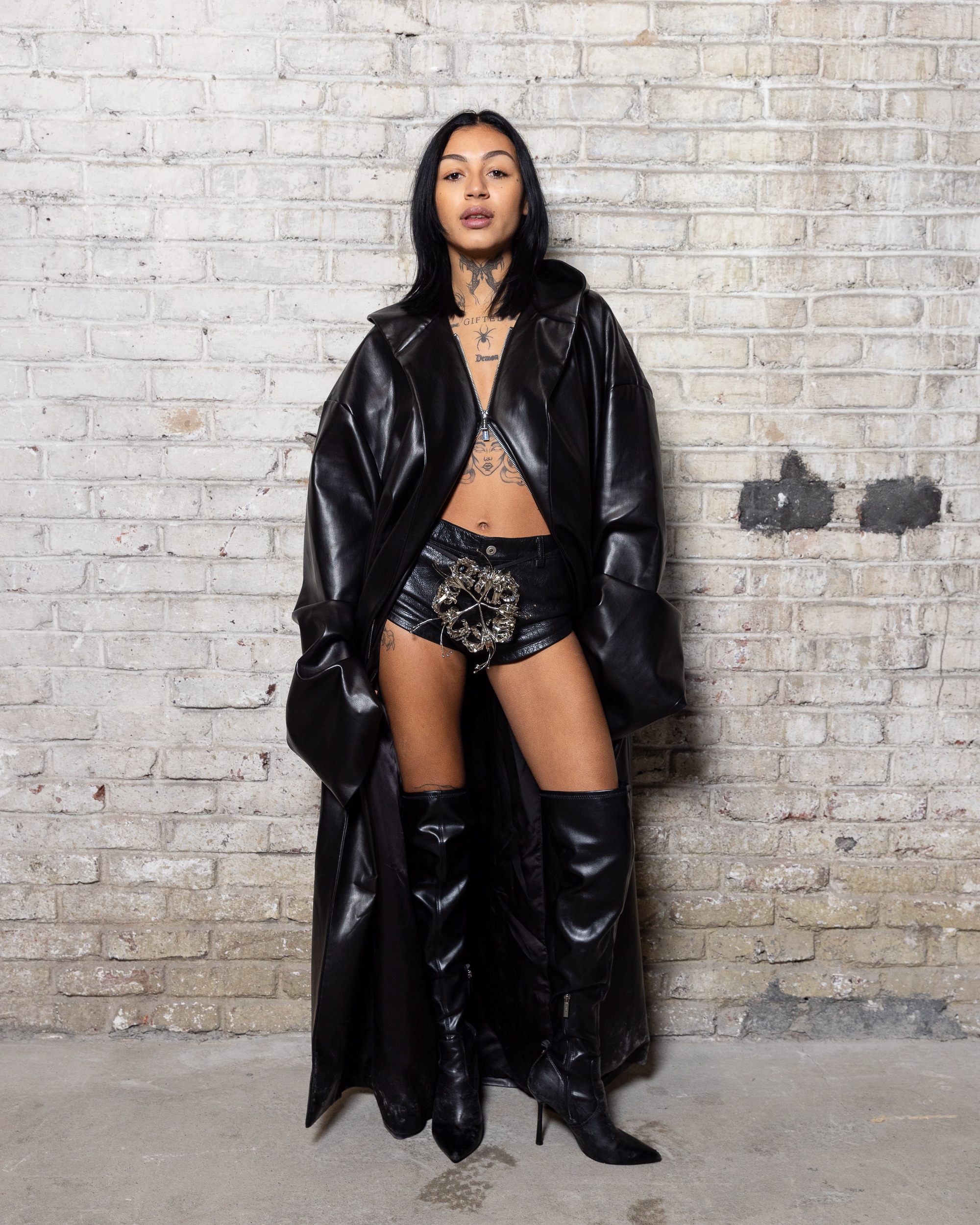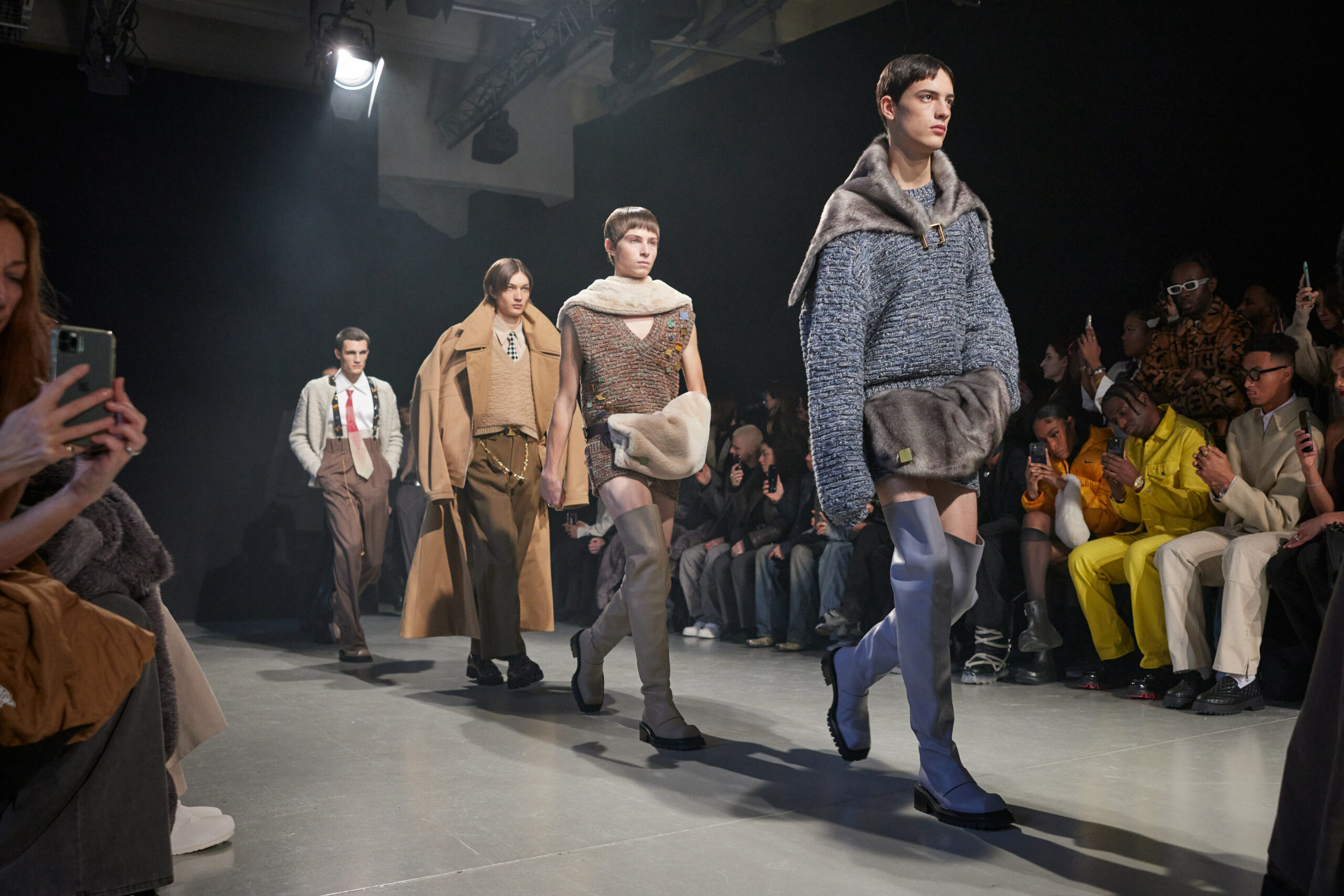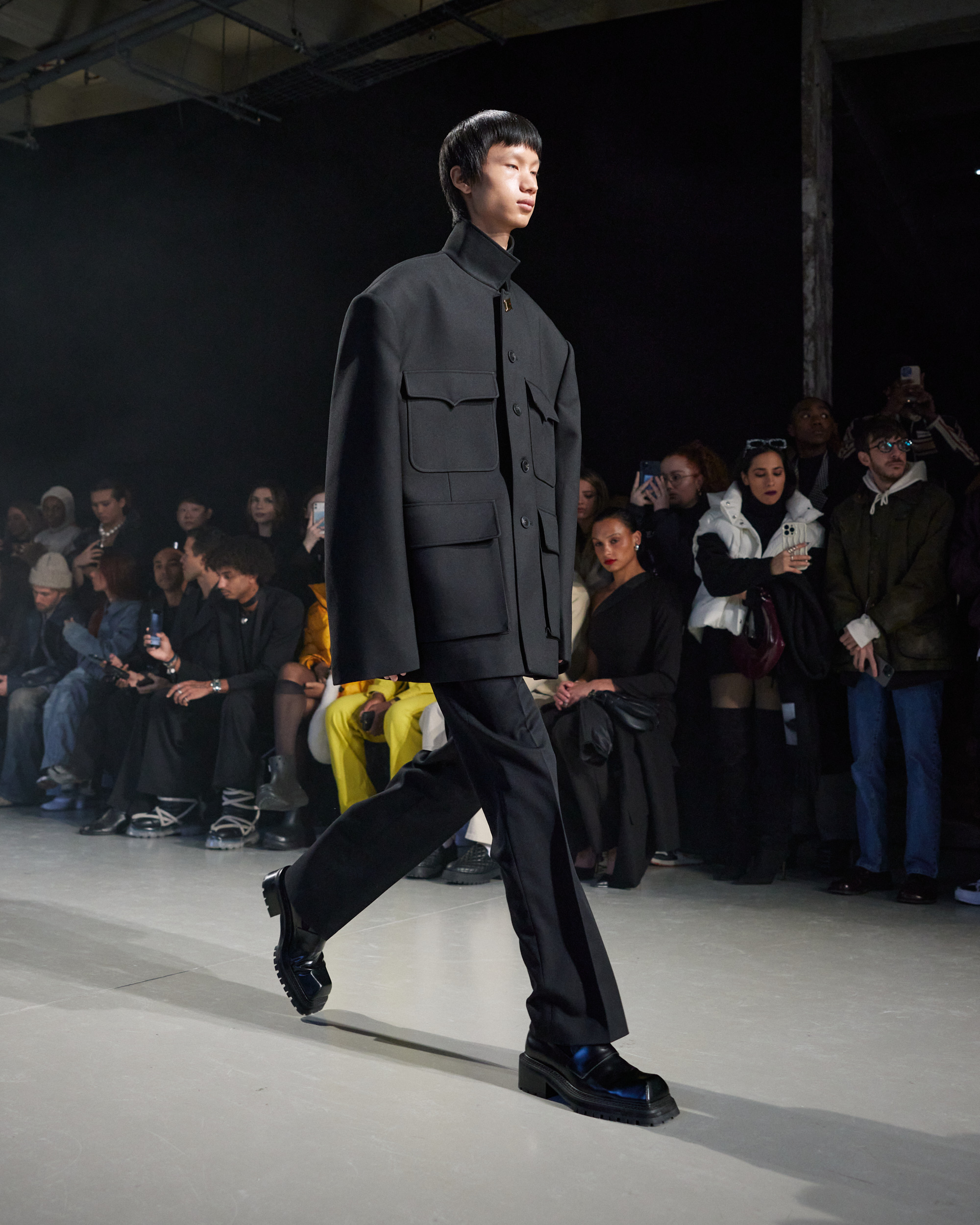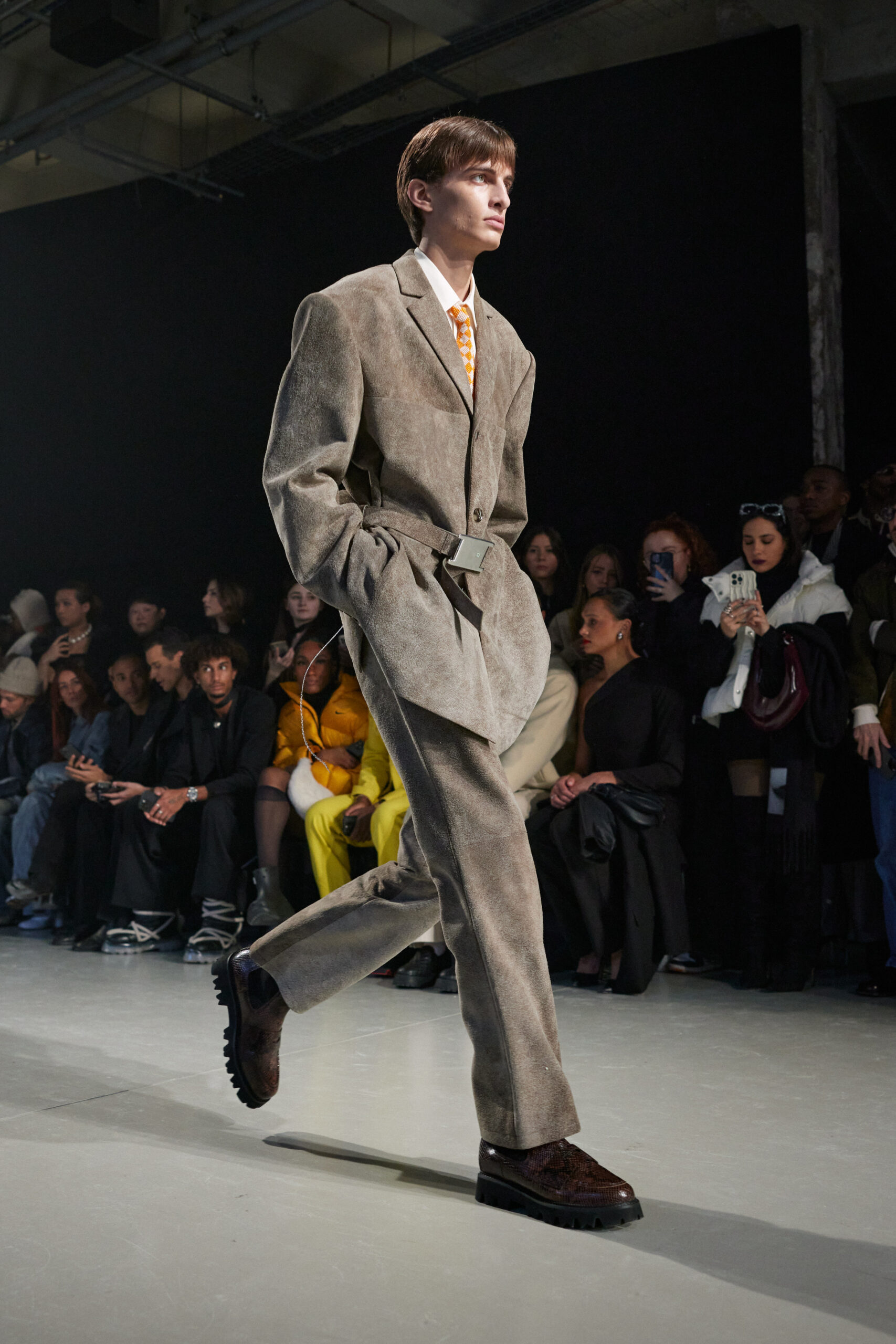 La collection est également marquée par la déconstruction et la juxtaposition des structures de la mode, créant un effet dynamique et provocateur. Ces éléments reflètent l’esprit urgent, rebelle et non-conformiste de cette génération.