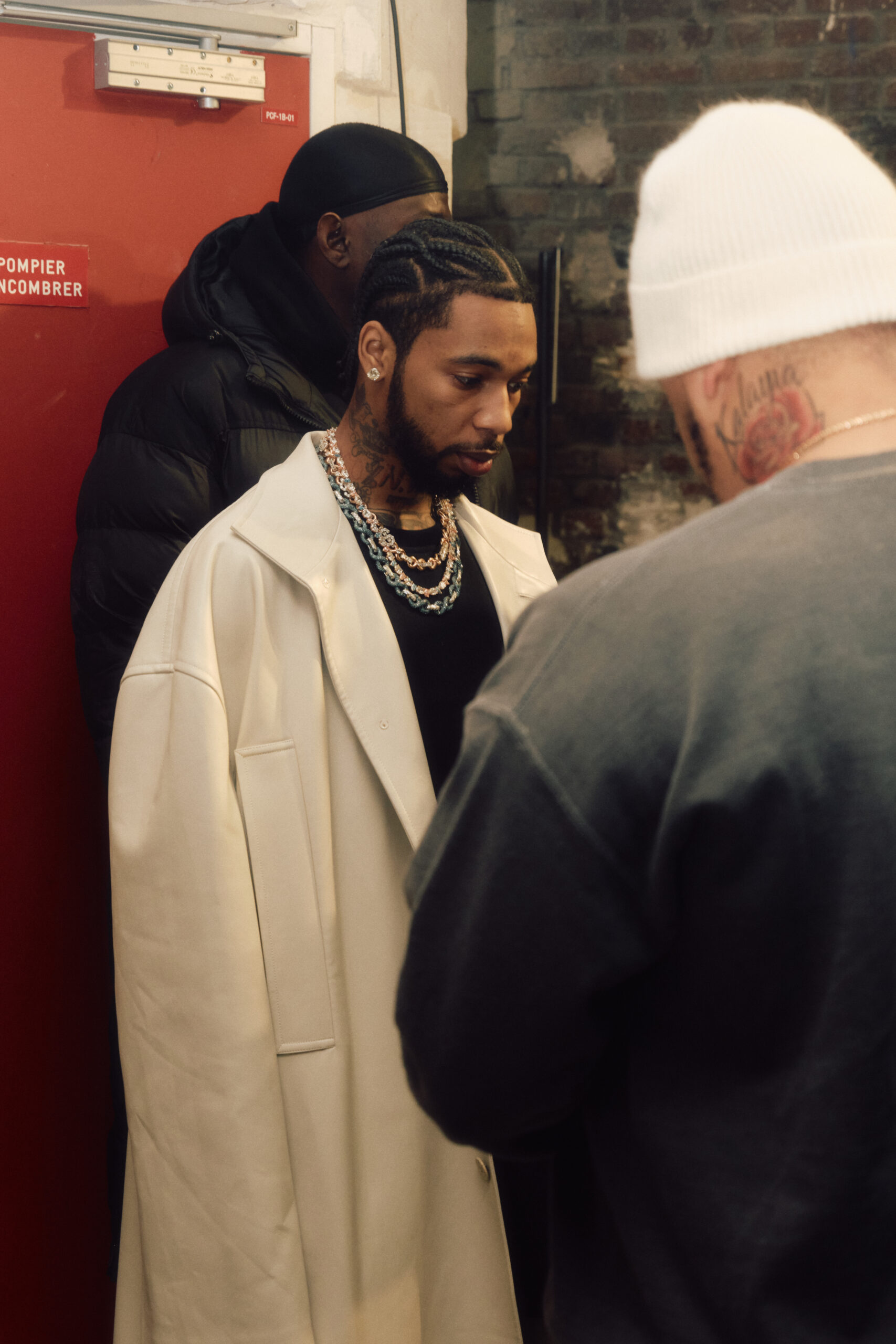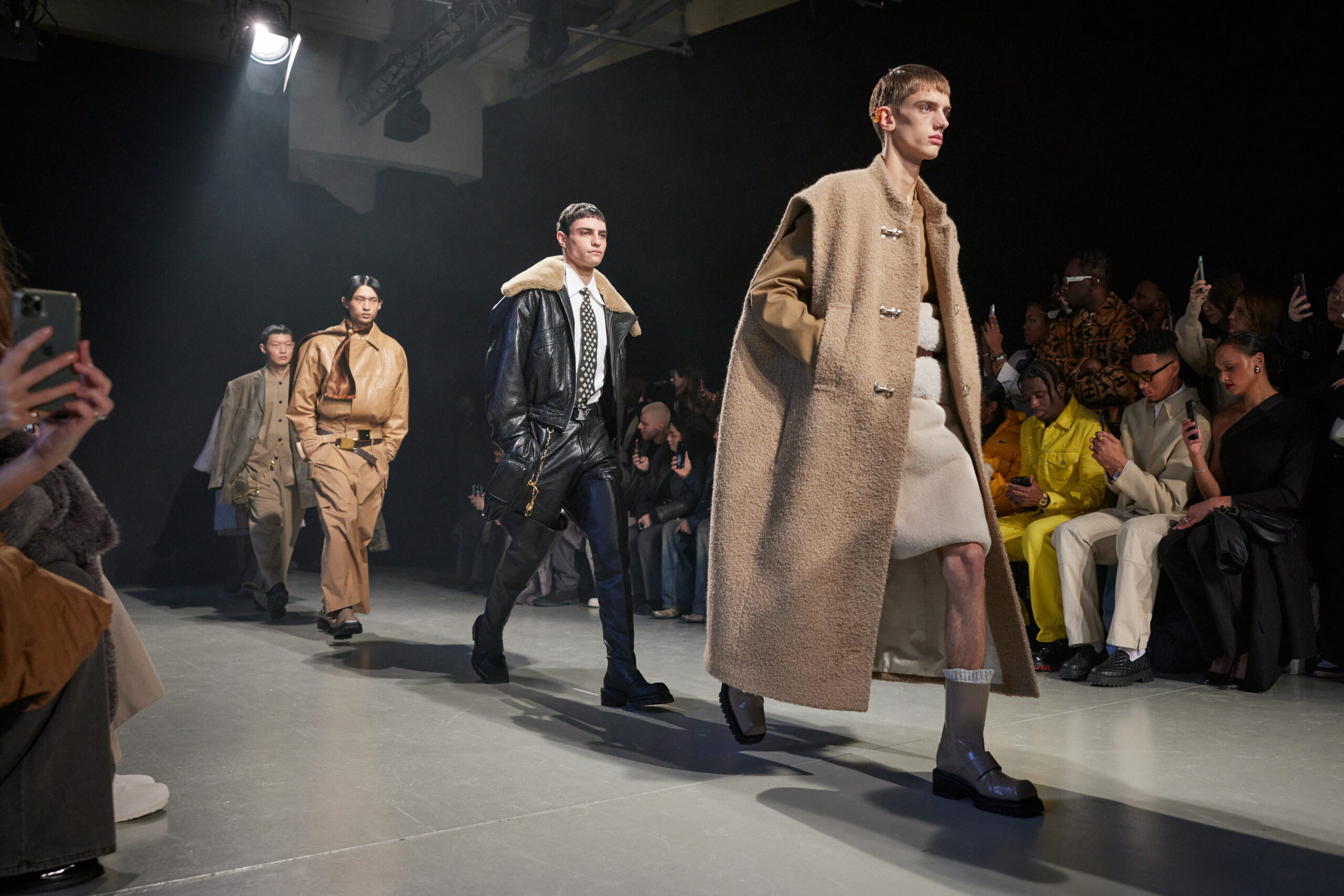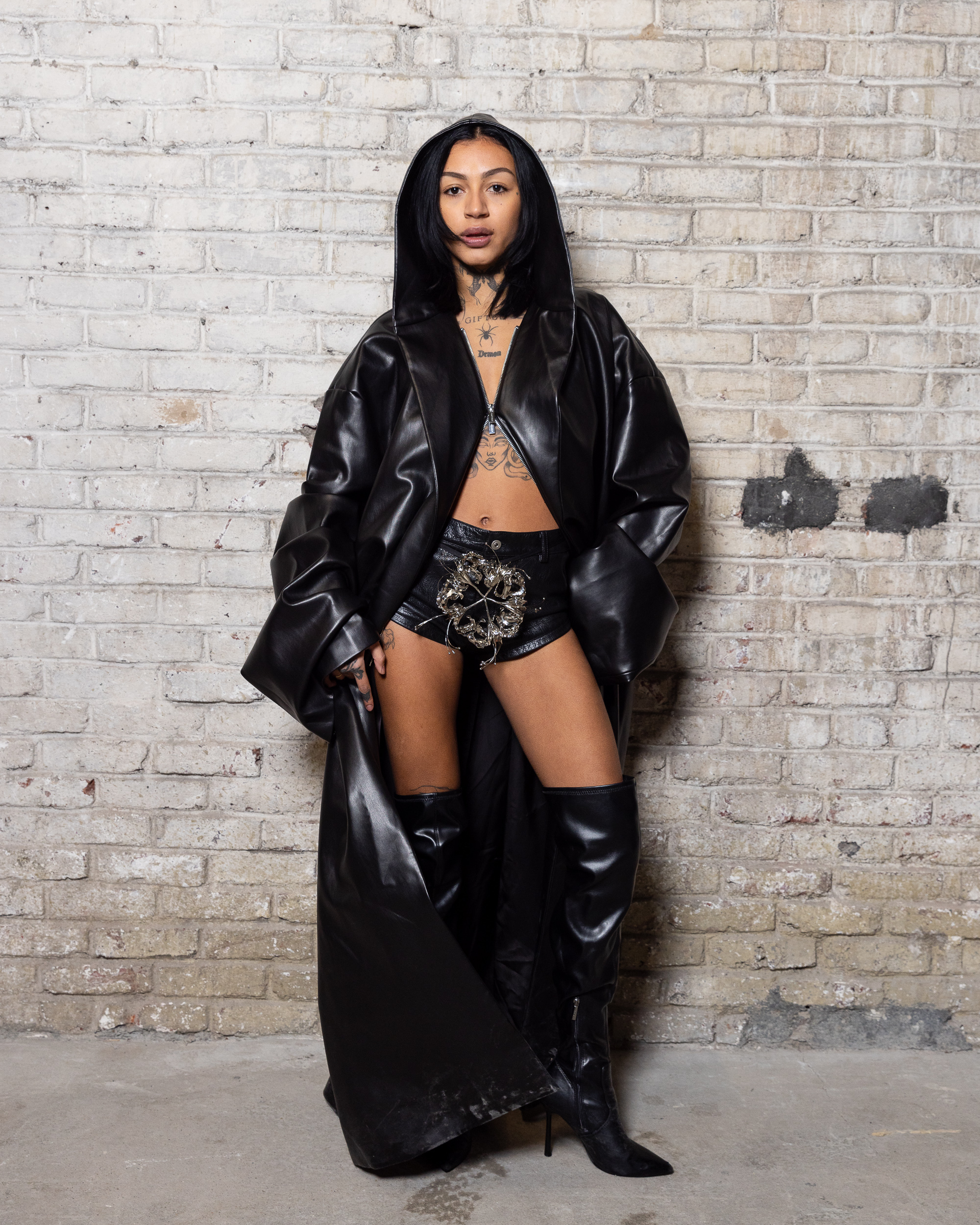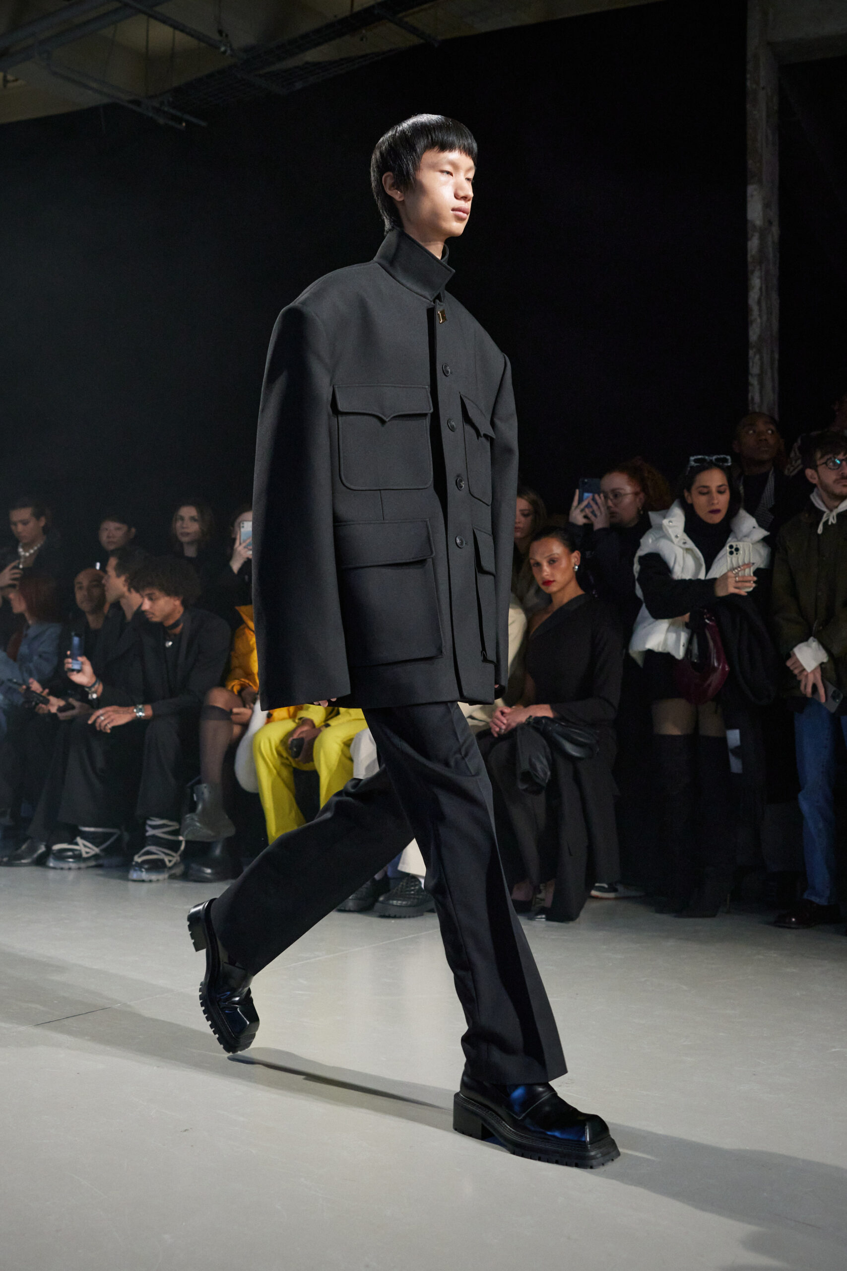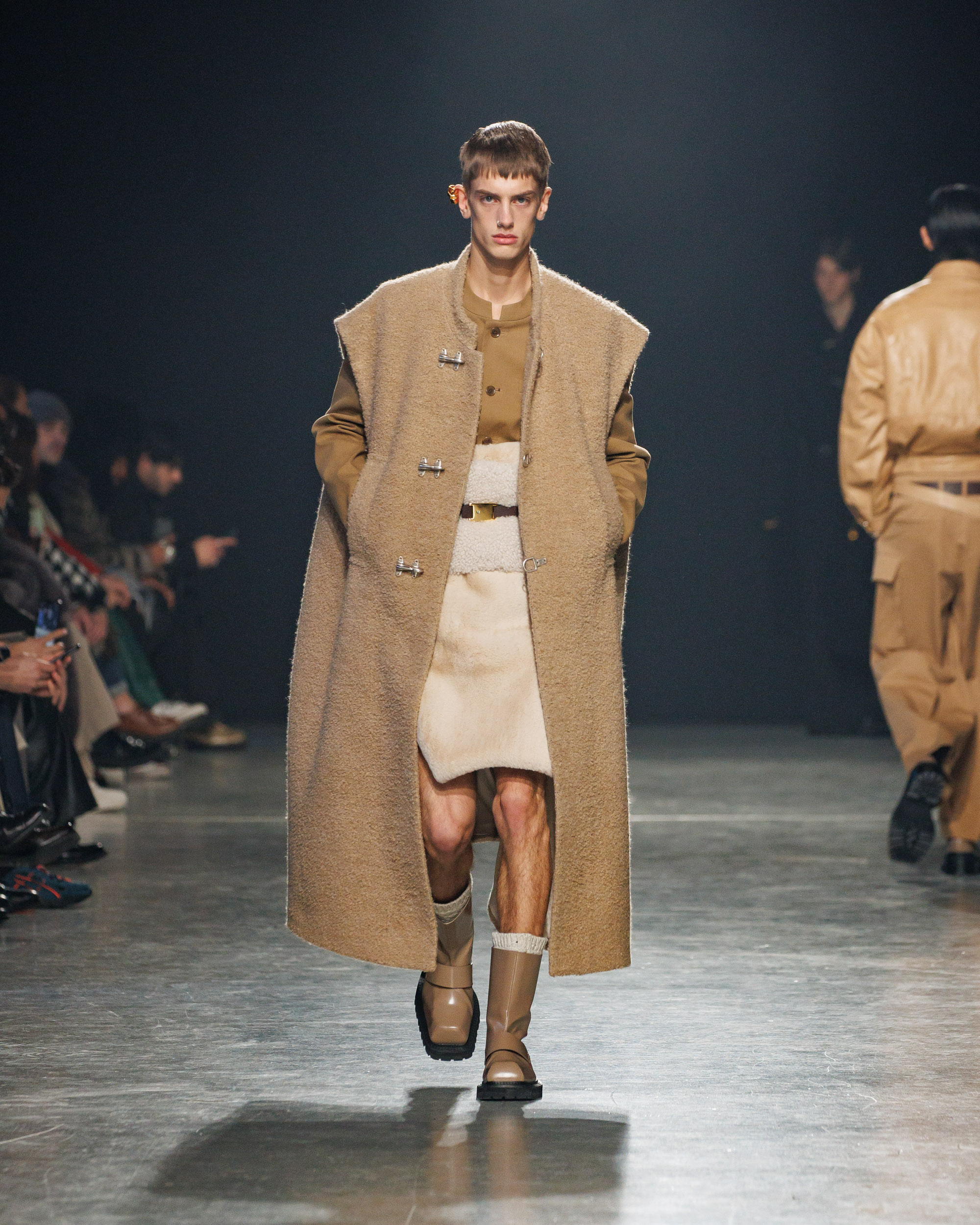La collection est également marquée par la déconstruction et la juxtaposition des structures de la mode, créant un effet dynamique et provocateur. Ces éléments reflètent l’esprit urgent, rebelle et non-conformiste de cette génération.