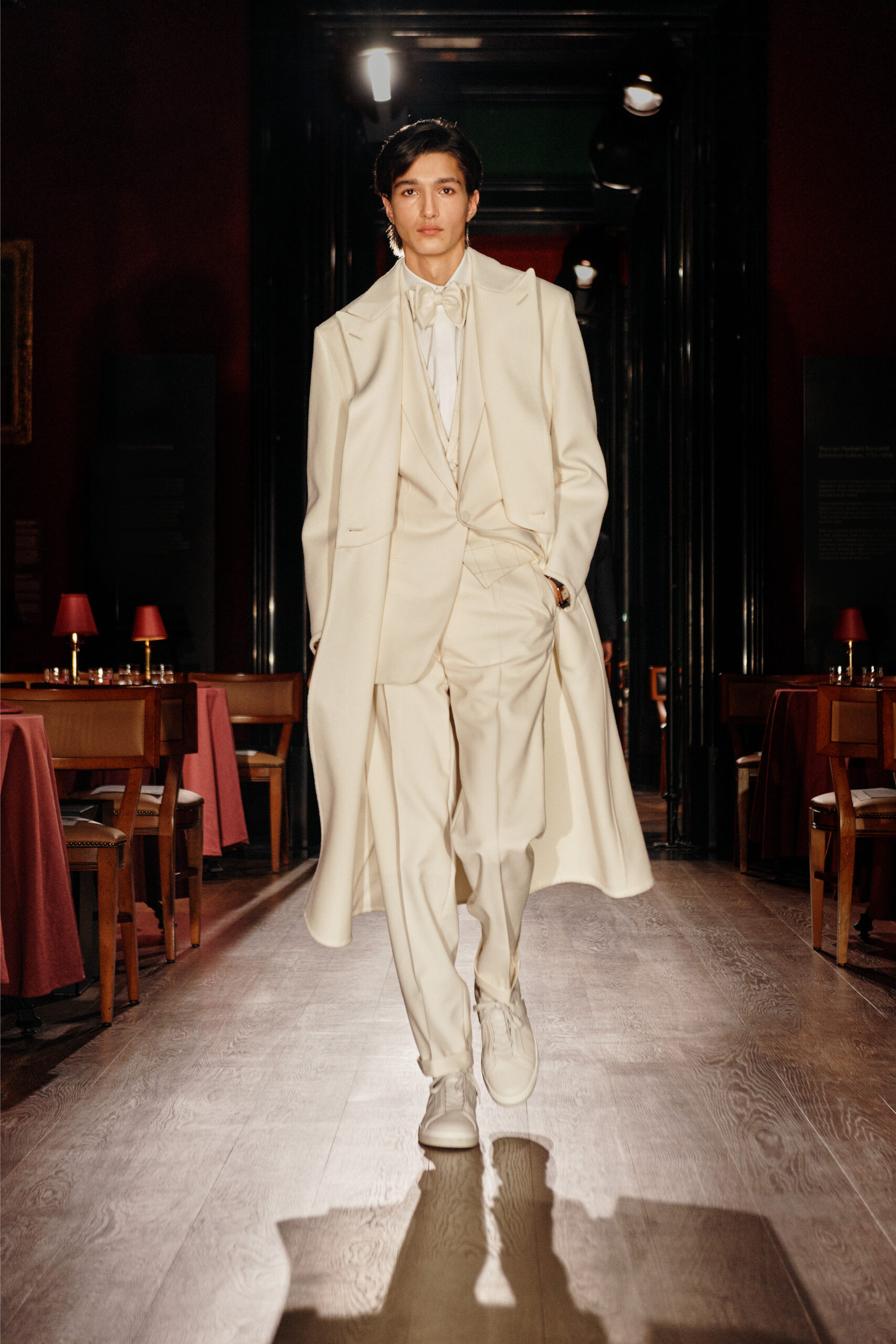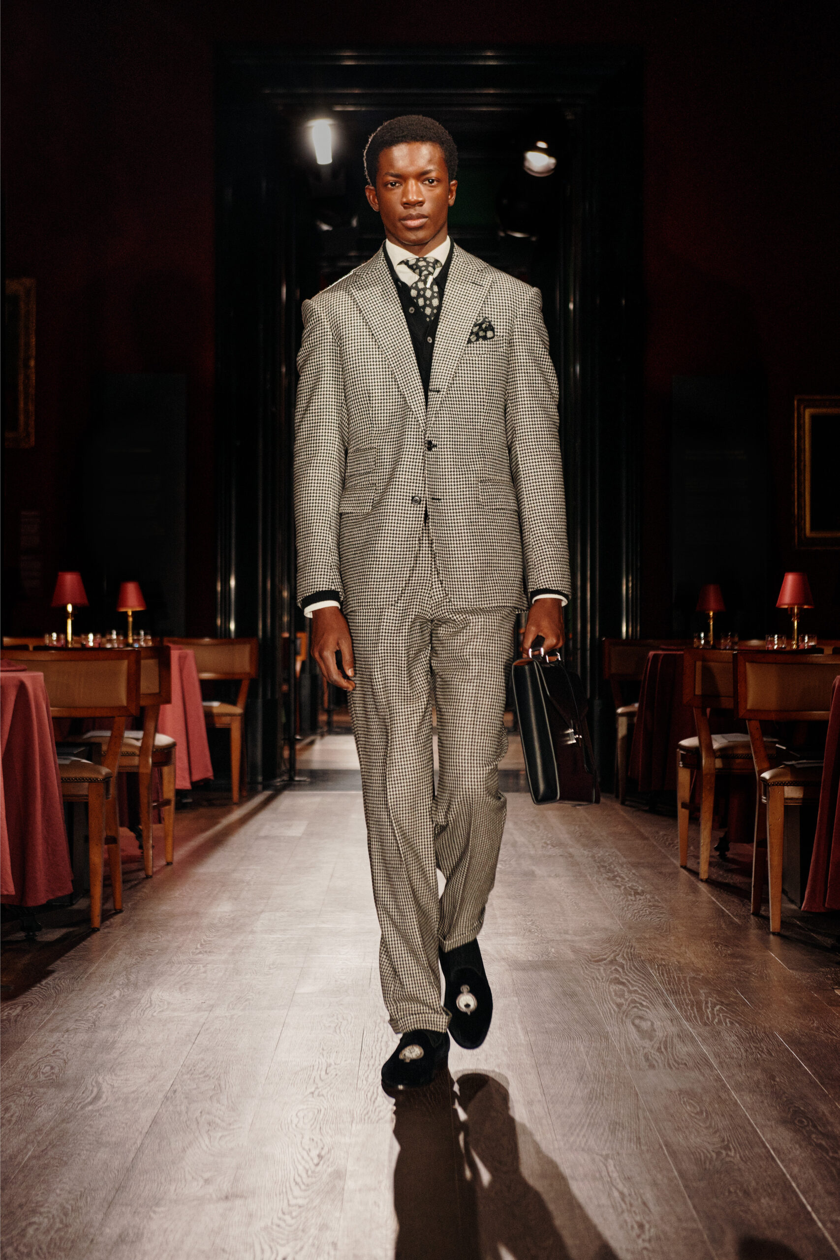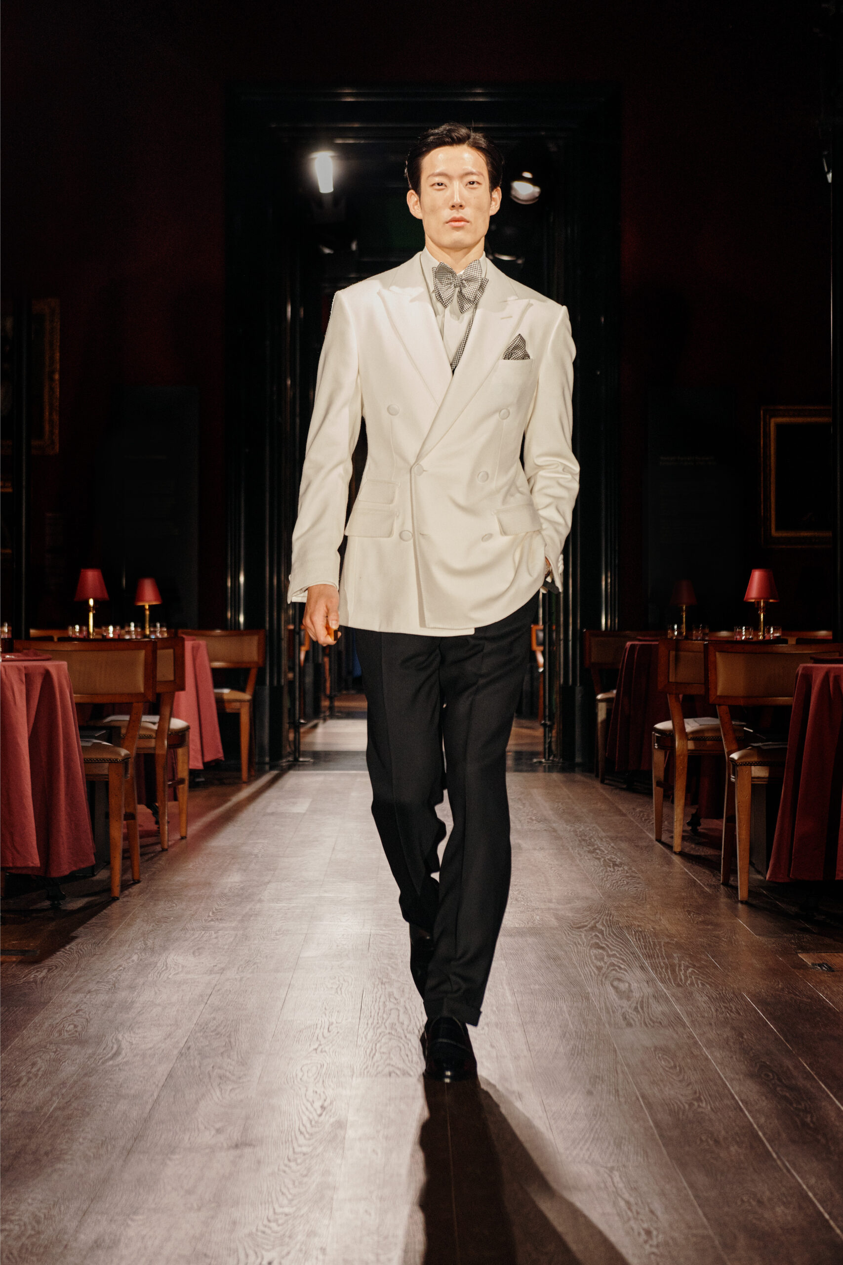 En puisant dans les archives historiques de la maison, Holloway a su retracer l’expertise tailleur et le lien privilégié de dunhill avec des figures culturelles emblématiques telles que Truman Capote et Frank Sinatra. Ces inspirations ont donné naissance à une collection qui, tout en s’inspirant de l’âge d’or du style hollywoodien, redéfinit les codes du vestiaire masculin britannique, les actualisant pour répondre aux exigences du connaisseur moderne.