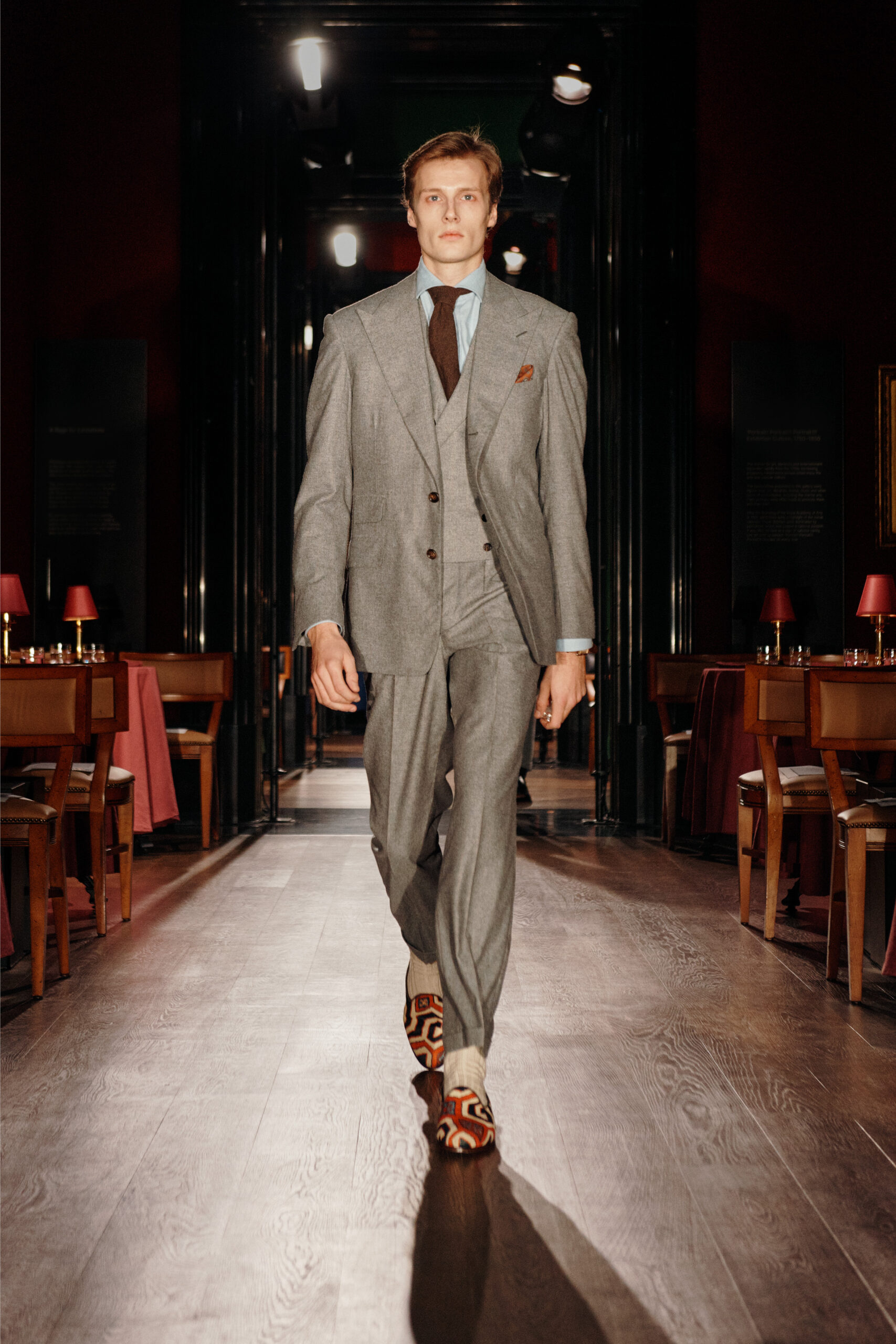 Simon Holloway nous confie : « Cette collection est une célébration de nos origines et de notre évolution en une maison de luxe britannique unique. dunhill s’adresse aux hommes qui apprécient les belles choses de la vie, qu’il s’agisse de sports mécaniques, d’événements culturels ou de moments élégants en smoking. C’est notre spécialité depuis toujours. J’espère avoir su recapturer cet esprit, à la fois raffiné et international. »