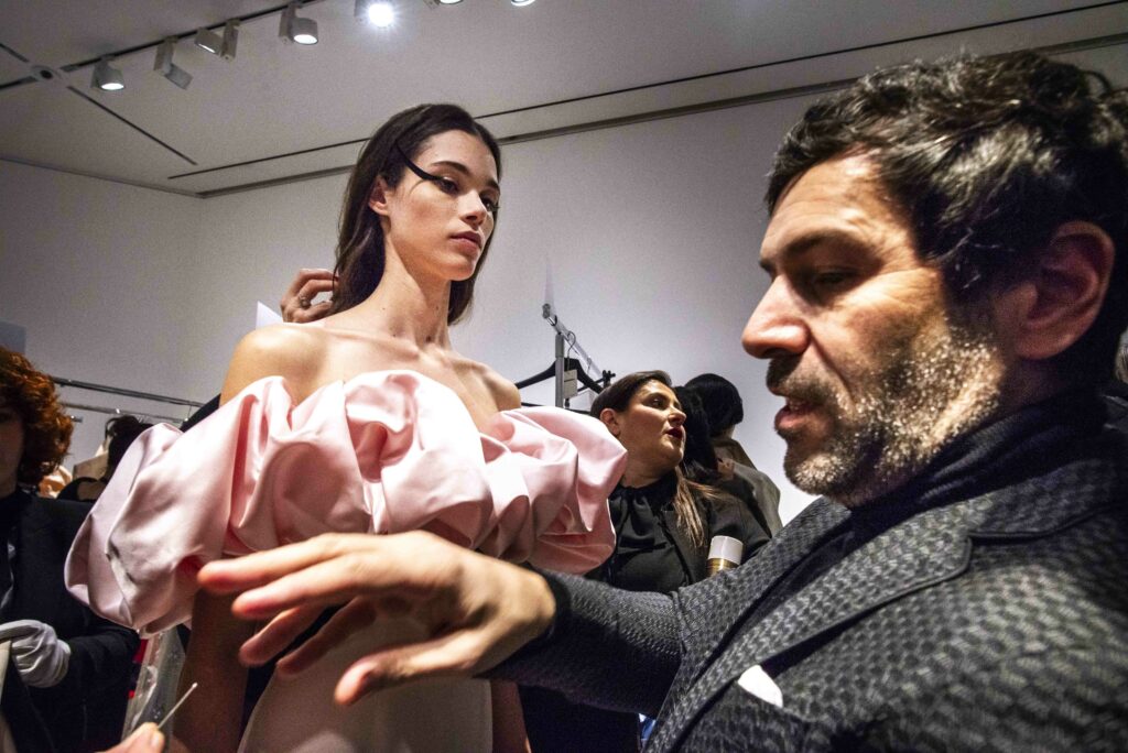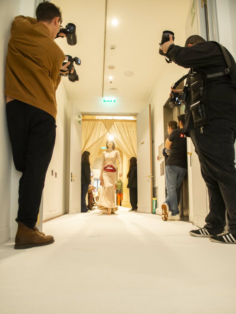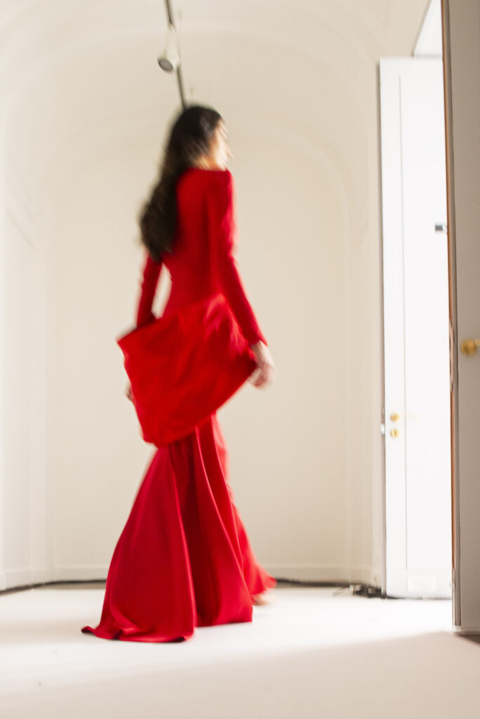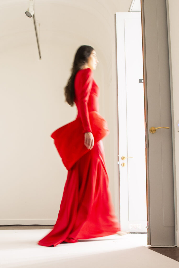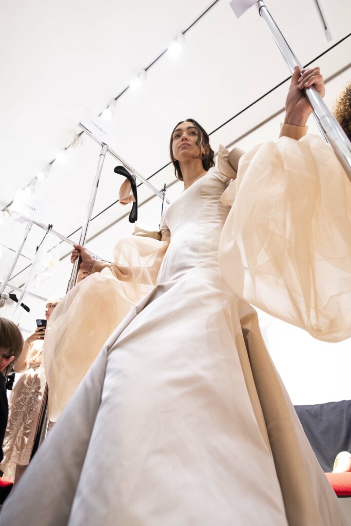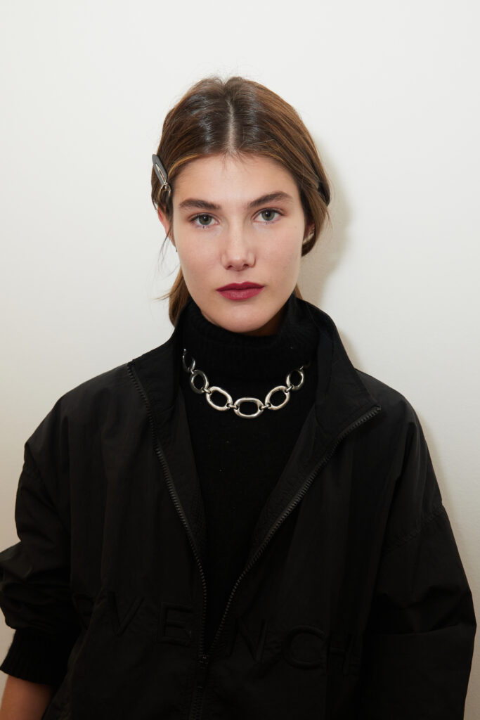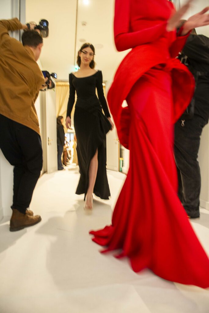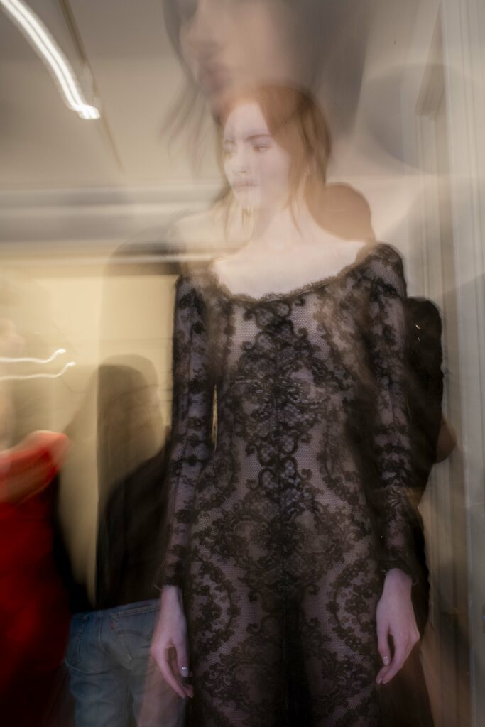 La collaboration avec des artistes de renom tels que Lloyd Simmonds pour le maquillage et Beppe D’Elia pour la coiffure souligne l’importance de chaque détail dans l’élaboration de cette collection. Le son d’Emmanuel Caurel et le casting par Coco Liscia ajoutent une autre dimension à l’expérience, en harmonisant parfaitement l’audiovisuel avec le visuel.
