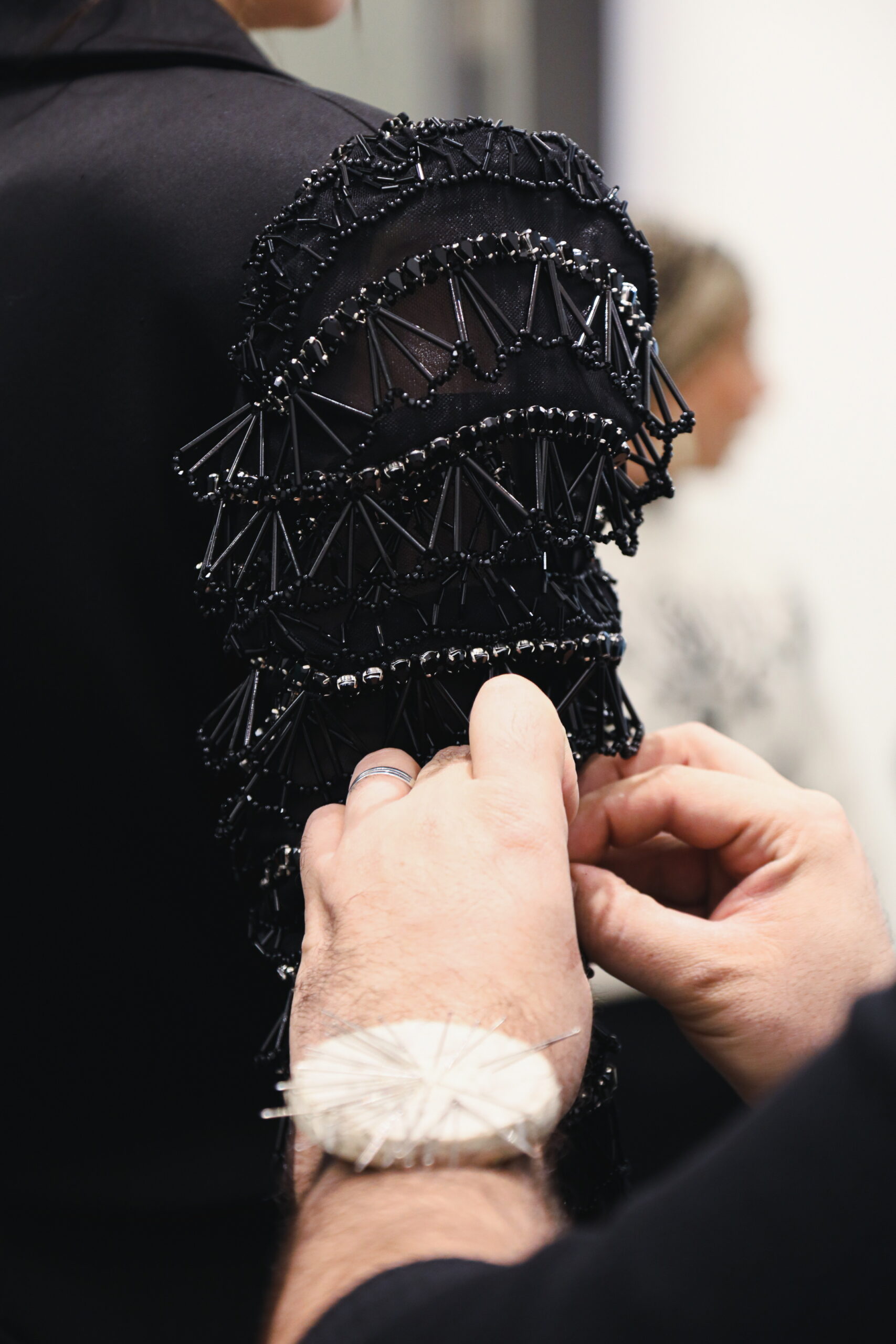 Avec « Nombre d’Or », Tony Ward transcende la traditionnelle présentation de vêtements pour offrir une expérience où la mode devient une forme d’art à part entière. Les motifs géométriques, méticuleusement traduits en broderies complexes, et les fils dansants qui reproduisent l’harmonie humaine, sont autant de témoignages de cette recherche d’équilibre entre harmonie et chaos.