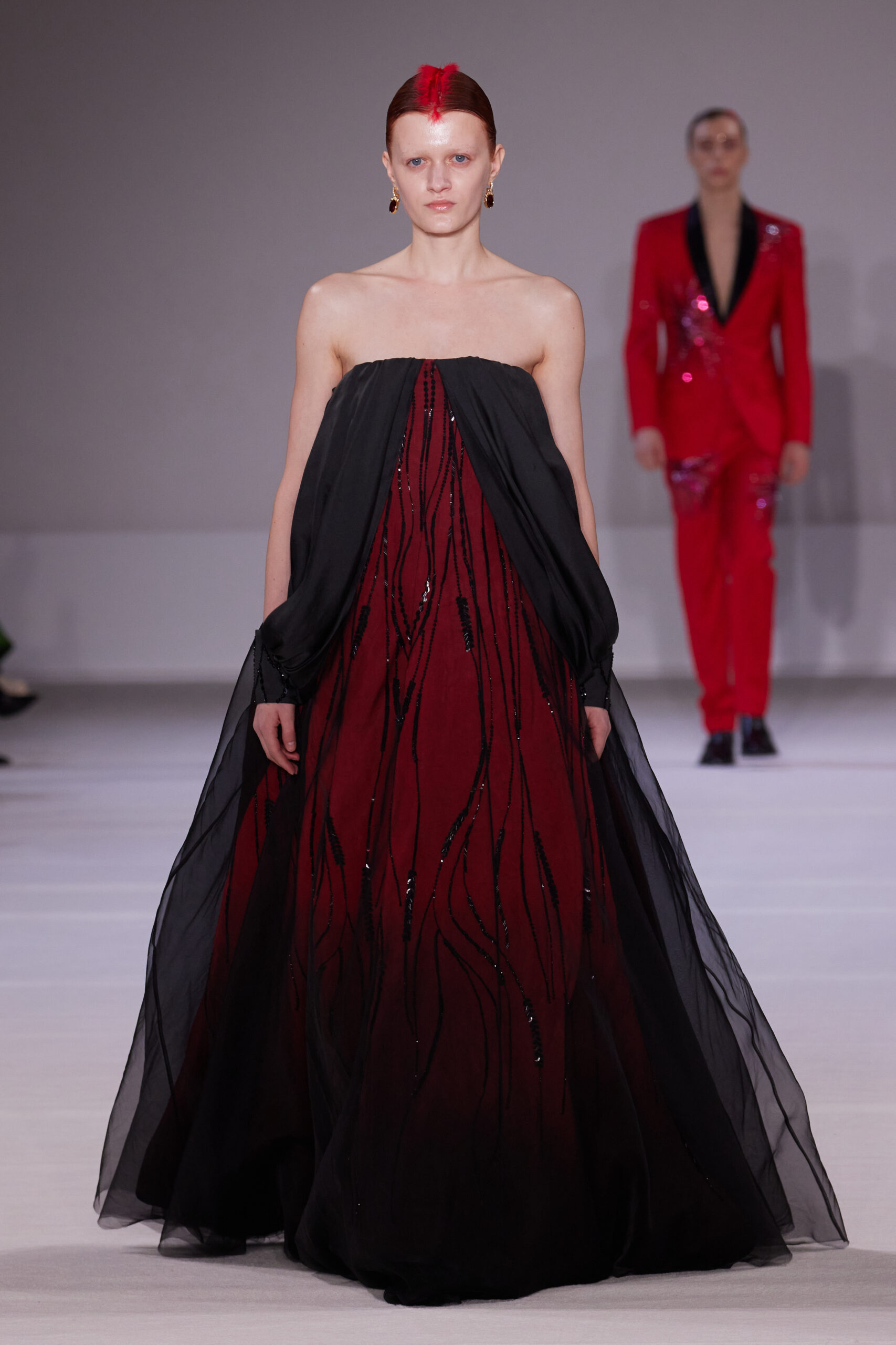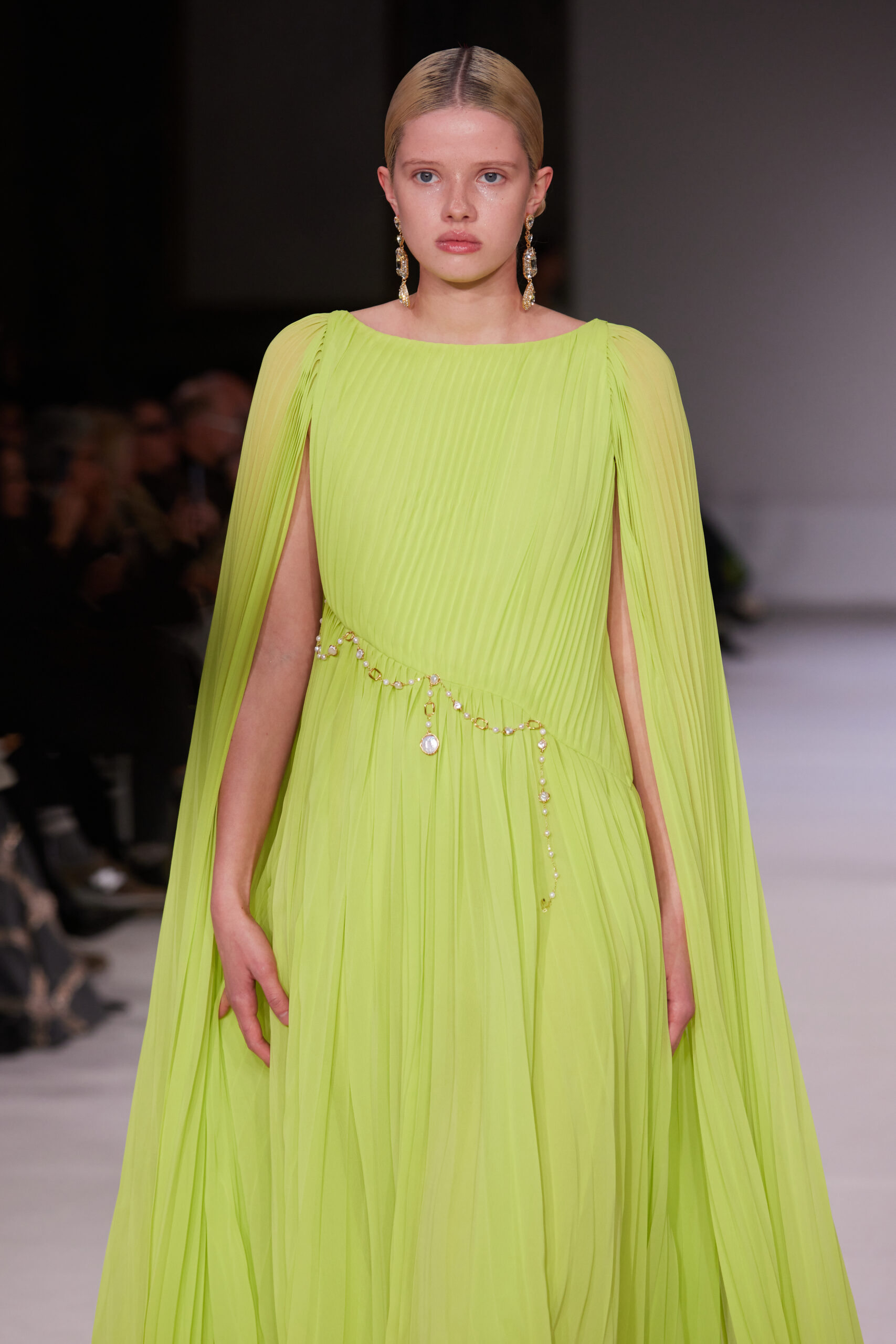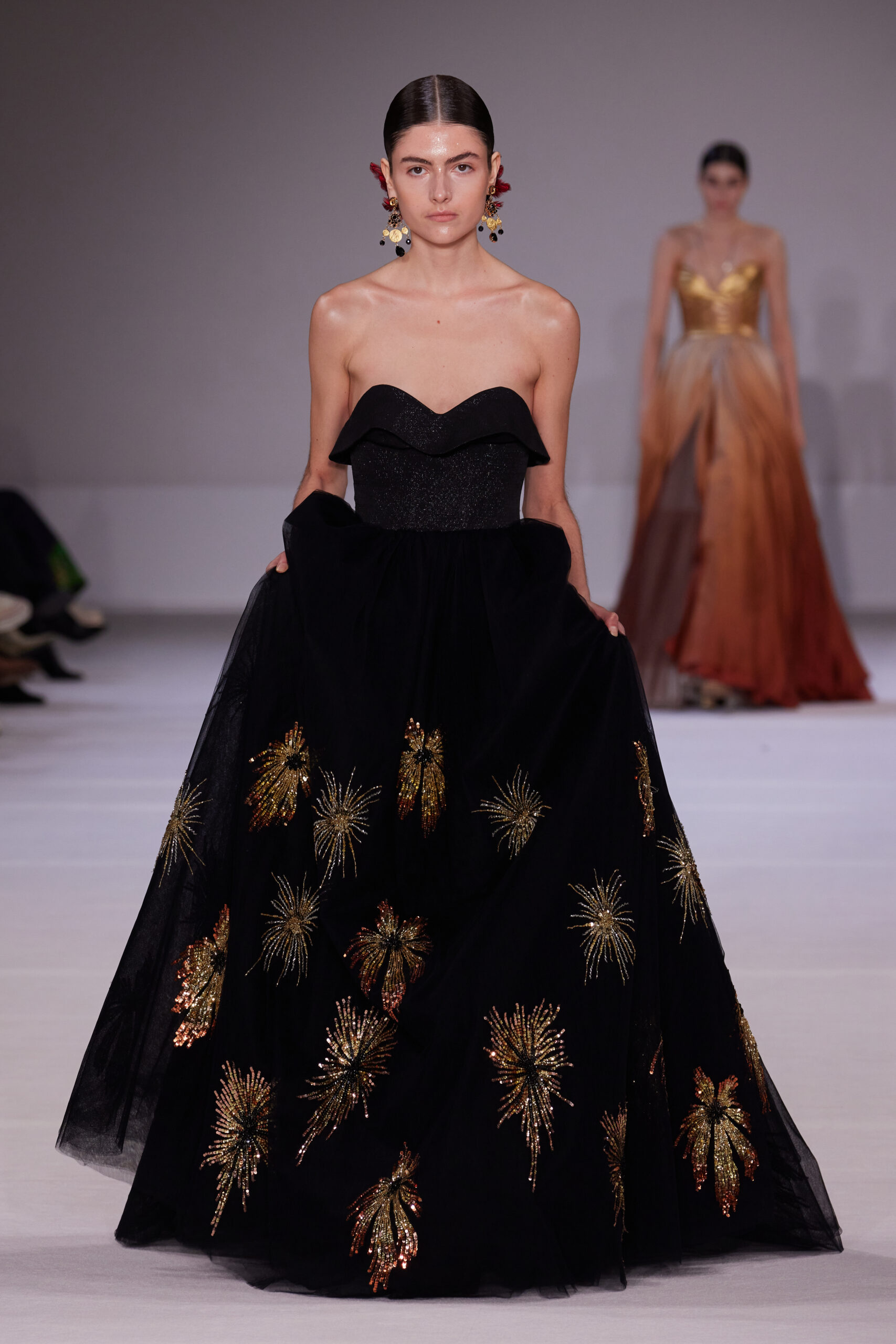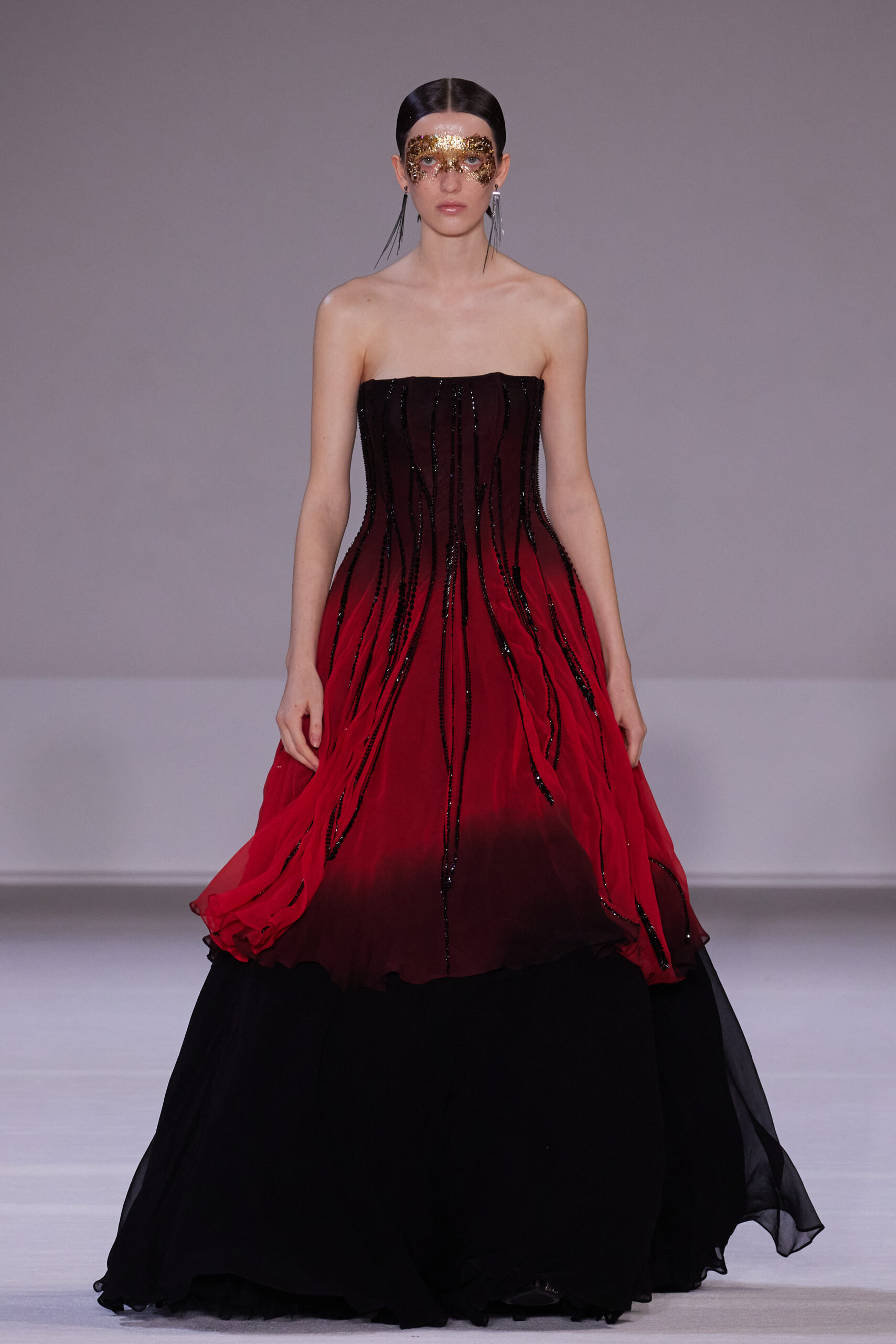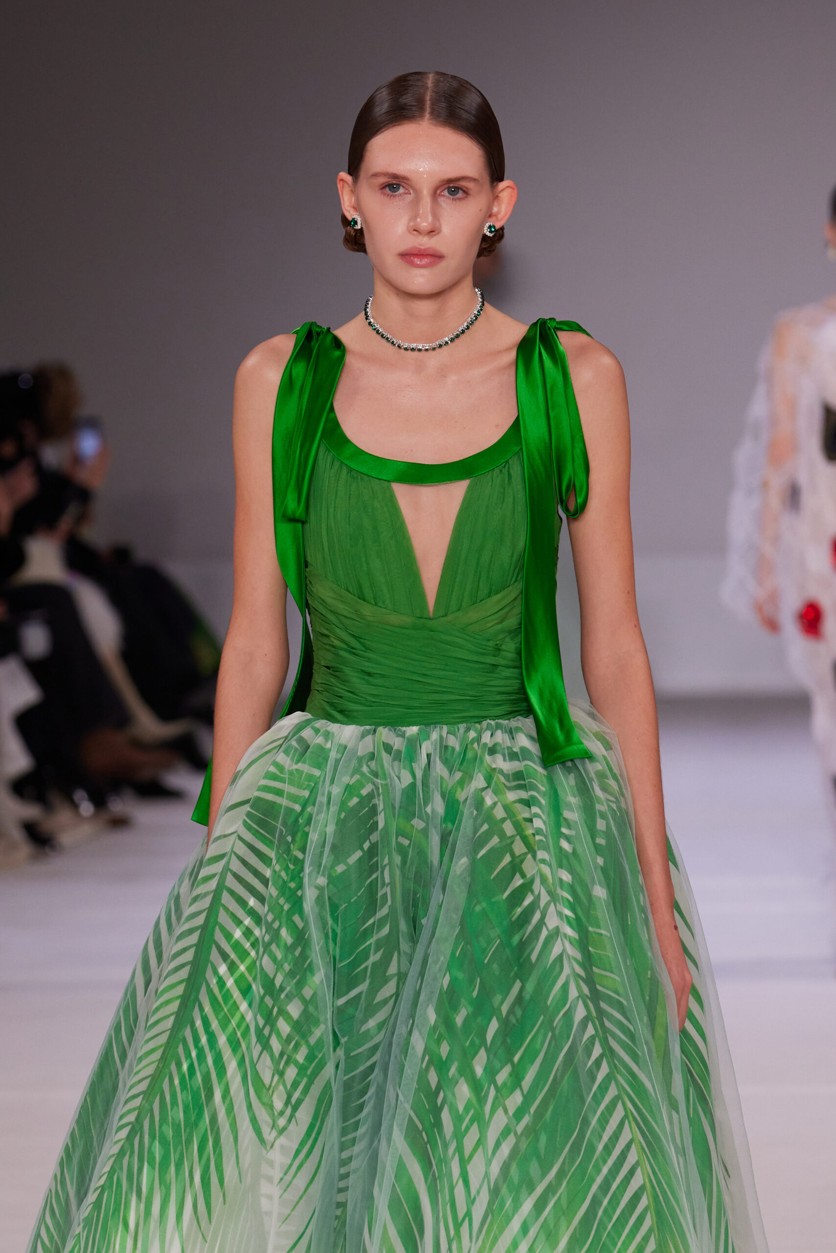 Emily Cheong et son équipe ont plongé dans l’étude des totems et des récits des dieux du feu, capturant leur caractère magique pour les transformer en motifs imprimés vibrants. Grâce à une coupe experte et un savoir-faire COUTURE, les robes s’ajustent parfaitement, soulignant le contrôle et la maîtrise de la silhouette.
