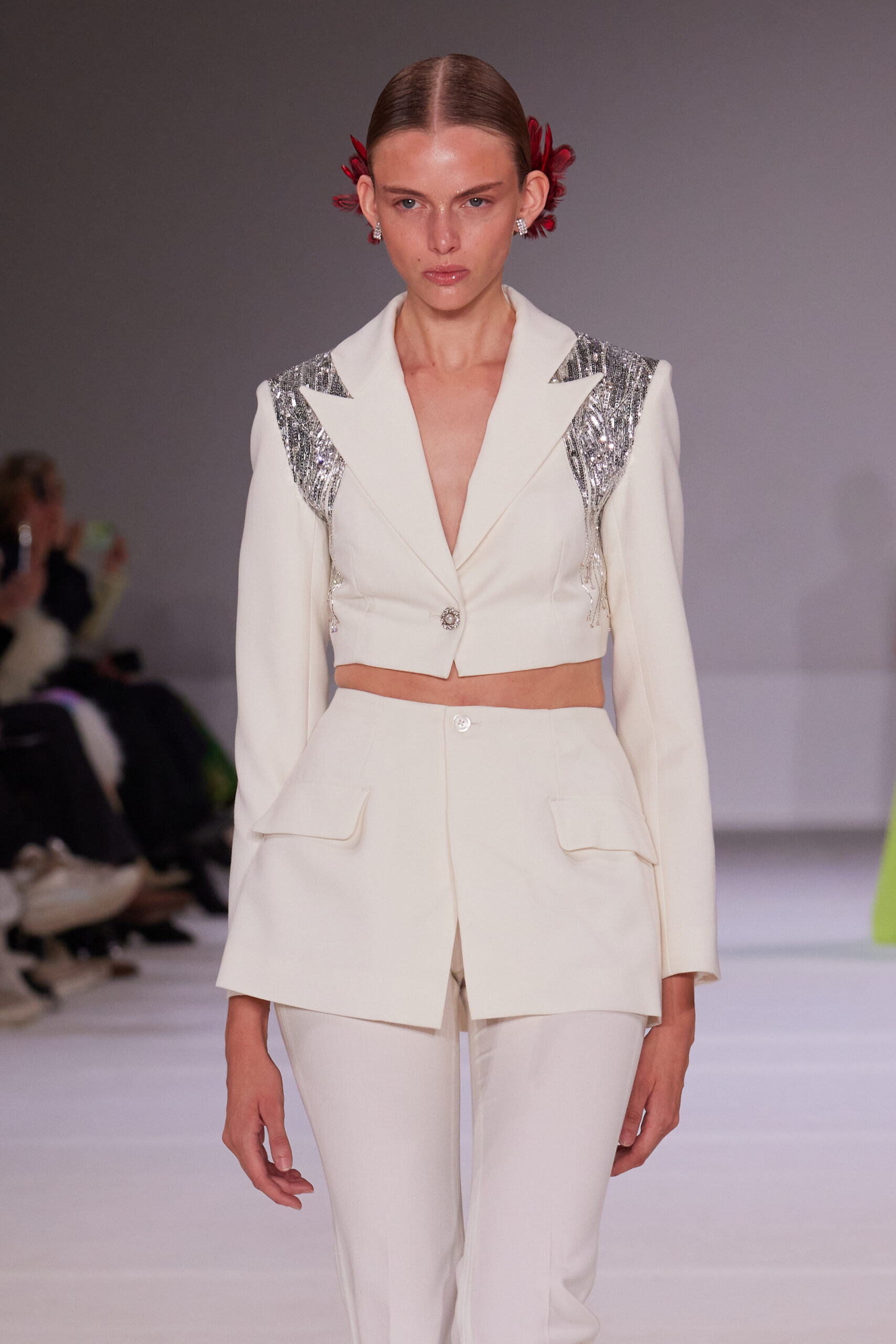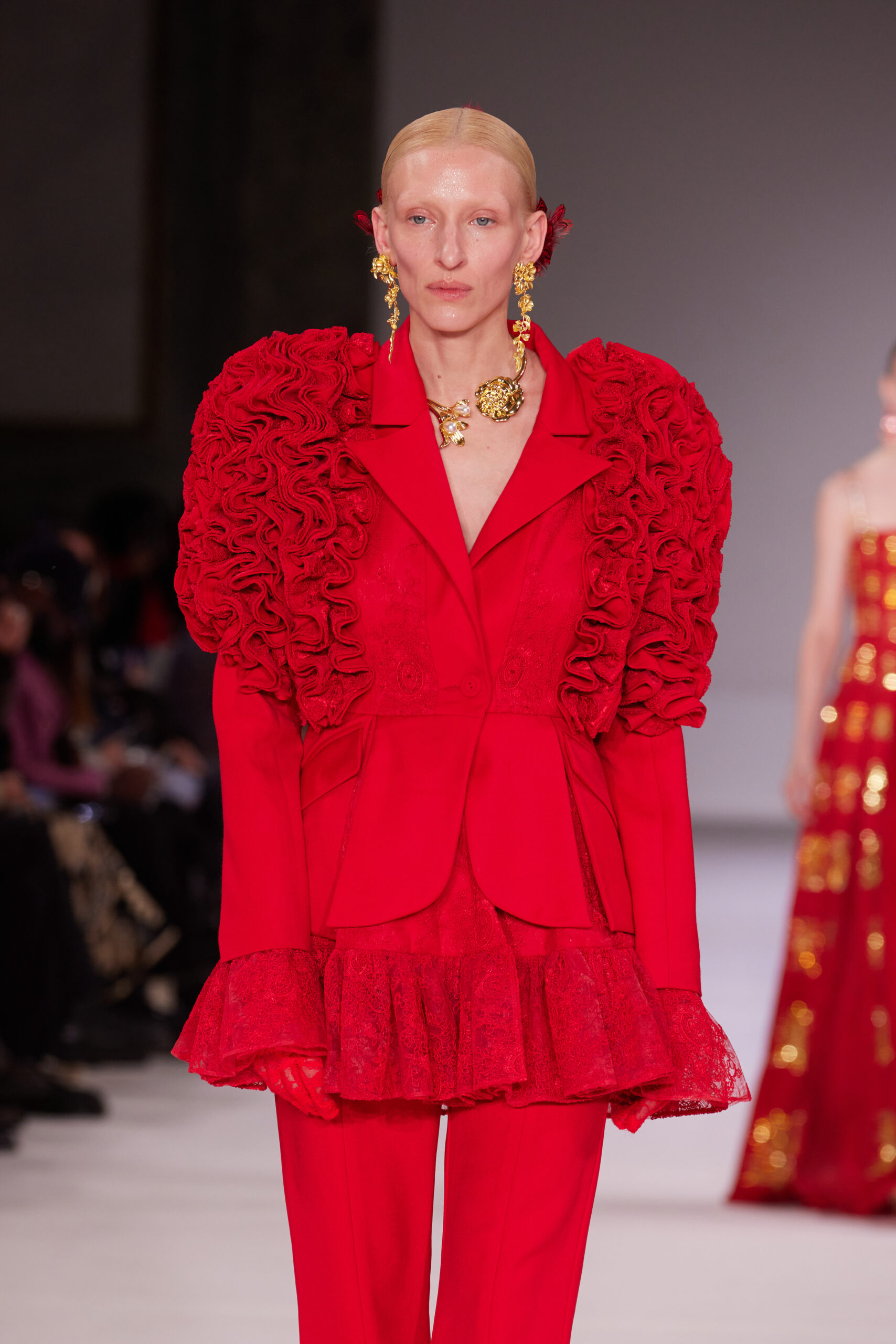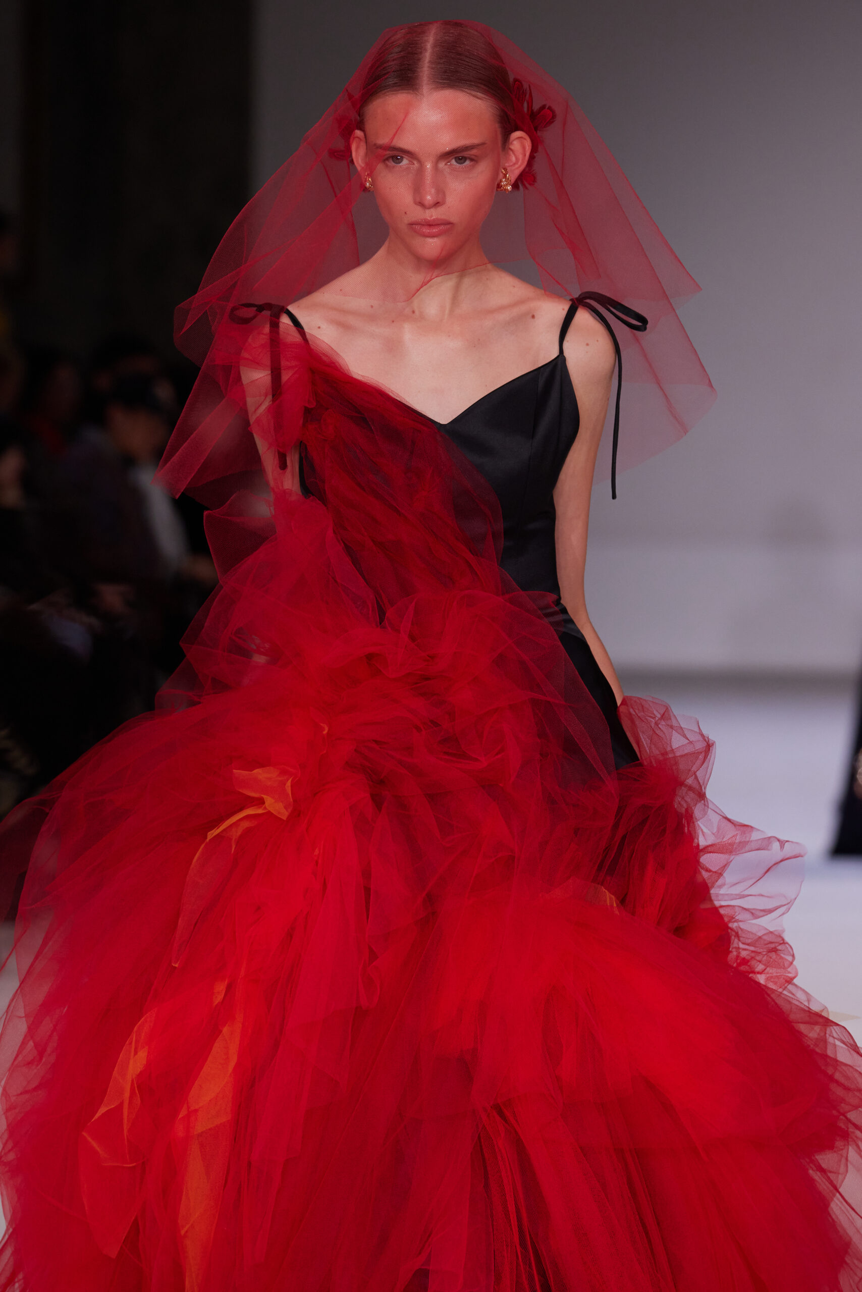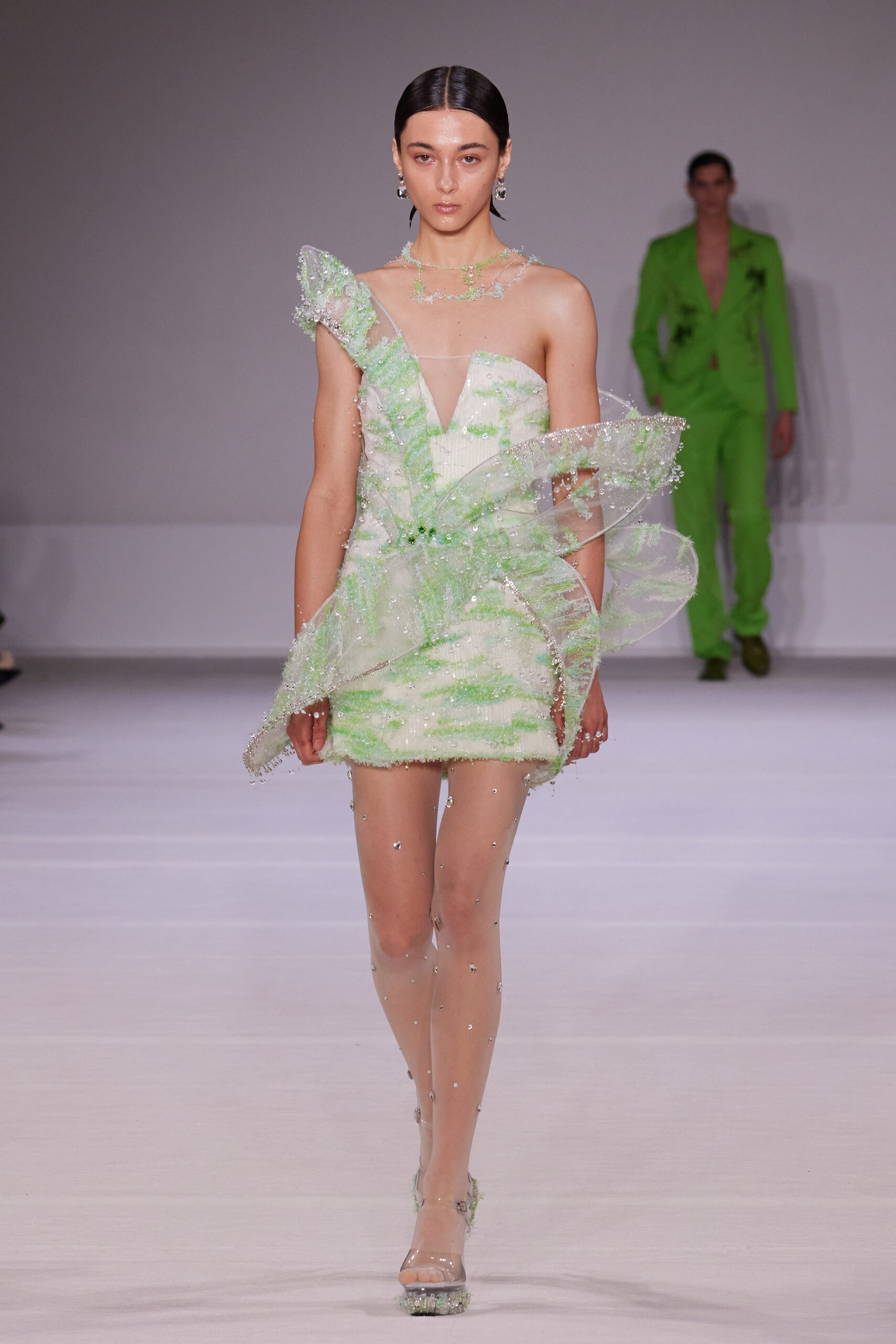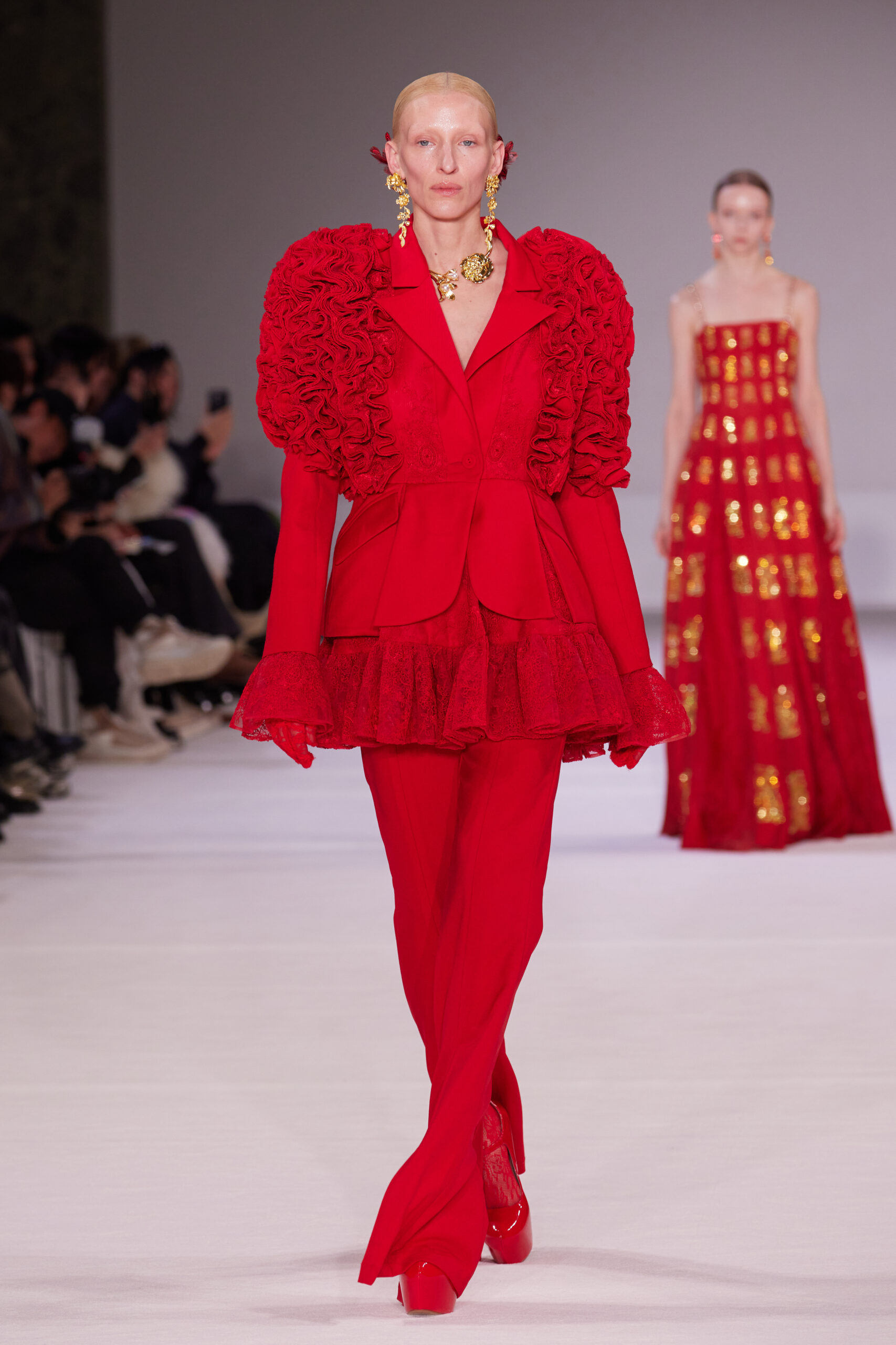 Emily Cheong et son équipe ont plongé dans l’étude des totems et des récits des dieux du feu, capturant leur caractère magique pour les transformer en motifs imprimés vibrants. Grâce à une coupe experte et un savoir-faire COUTURE, les robes s’ajustent parfaitement, soulignant le contrôle et la maîtrise de la silhouette.