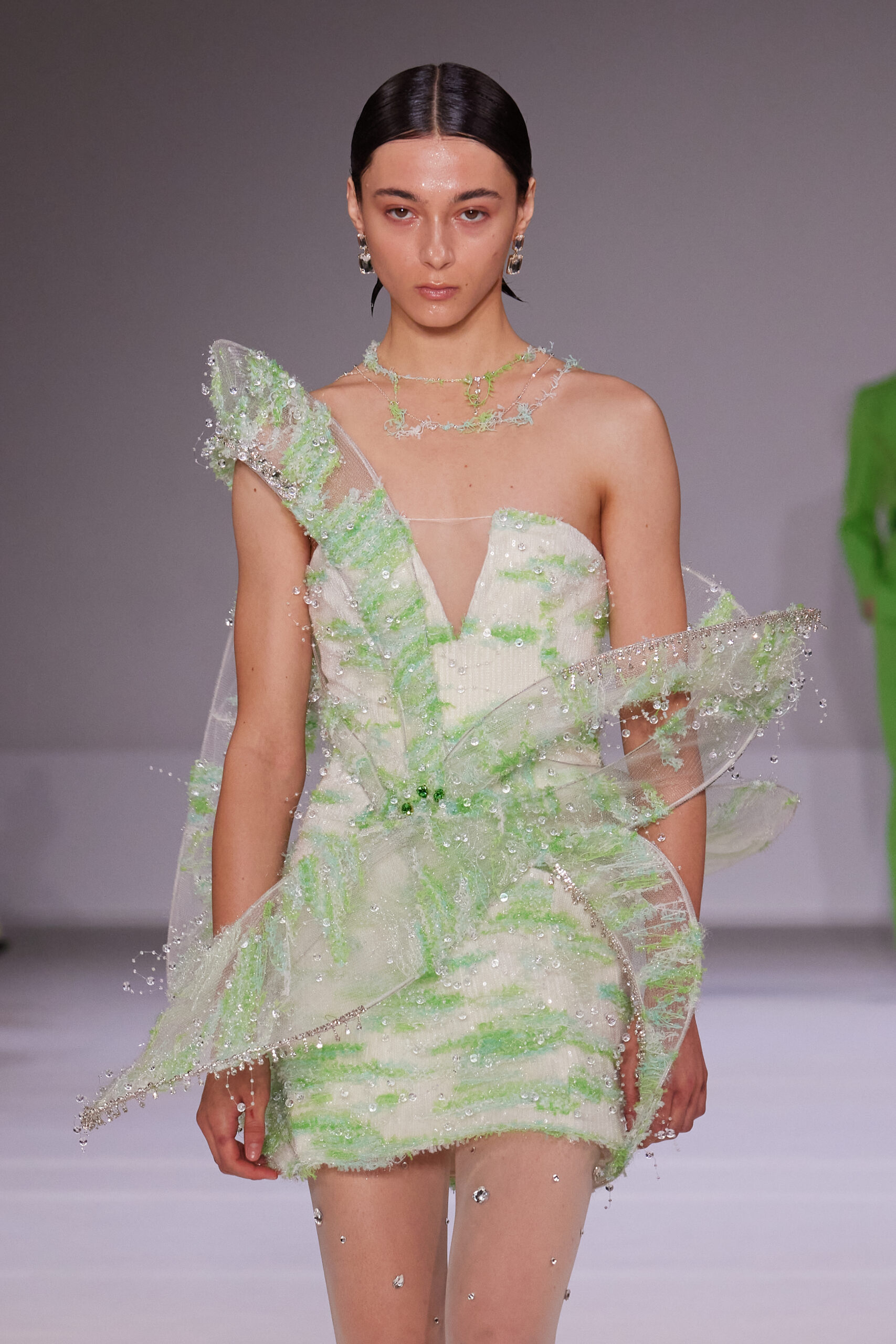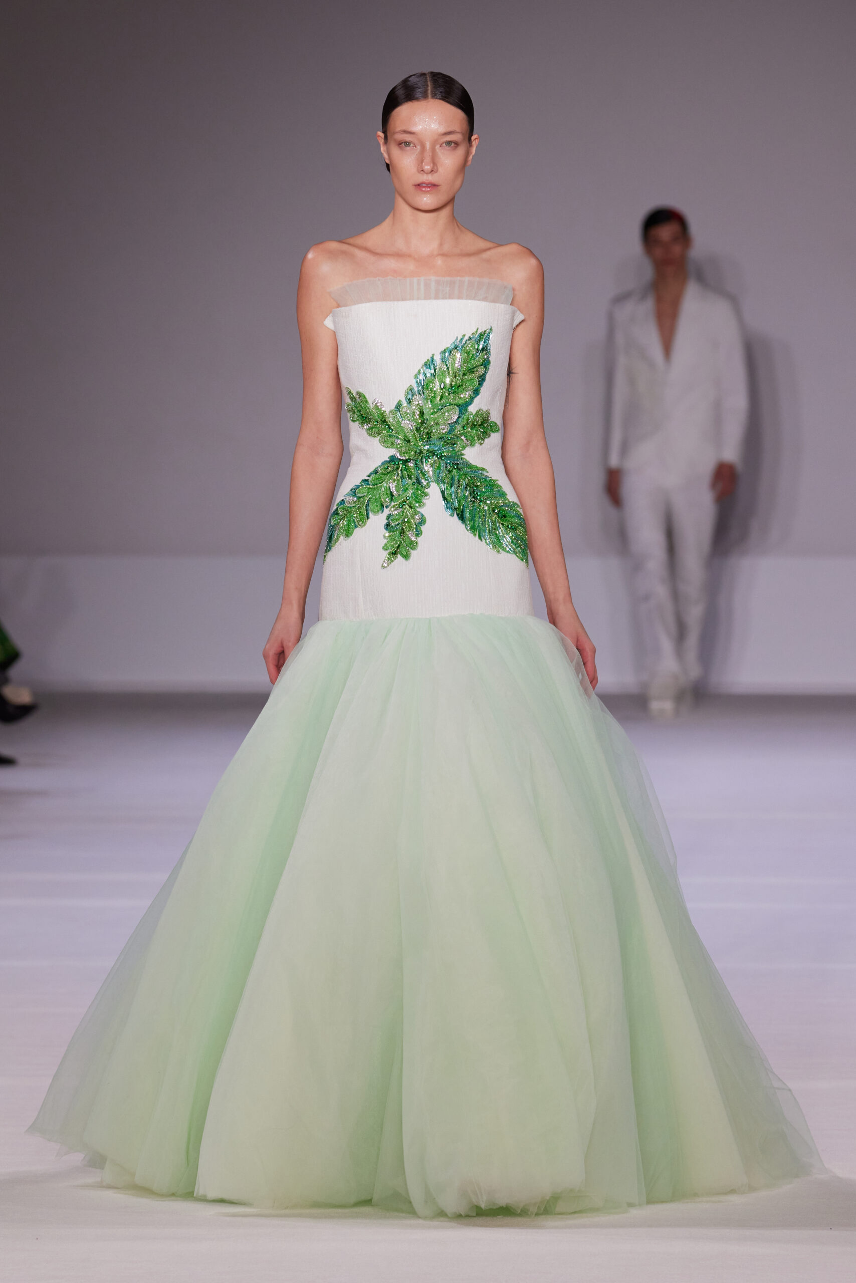 Au cœur de Paris, le Pavilion Cambon Capucines, avec son toit magnifique et ses colonnes en marbre vert émeraude, a offert un cadre incomparable à la démonstration de la collection Printemps-Été 2024 de HOMOLOG Couture. Sous la direction créative de la Dr. Emily Cheong, la marque a continué d’incarner l’essence artisanale de son atelier, fusionnant idées créatives et savoir-faire exceptionnel pour concevoir des tenues somptueuses, confortables et éblouissantes.