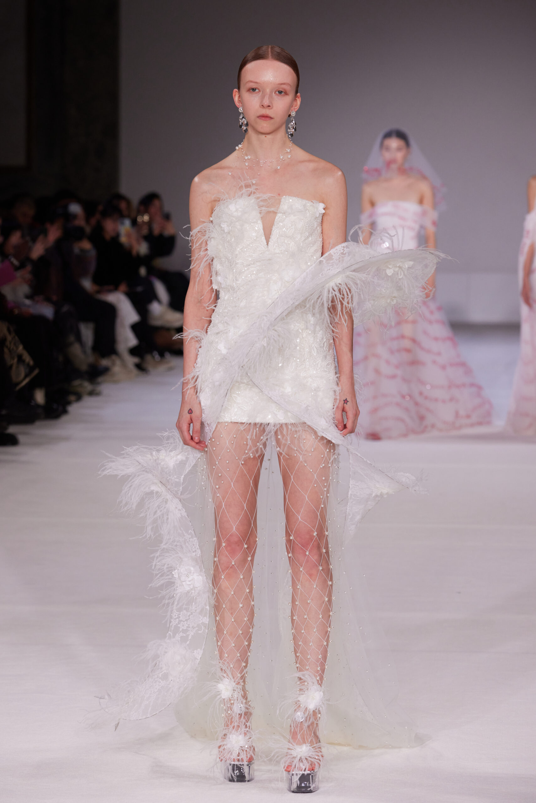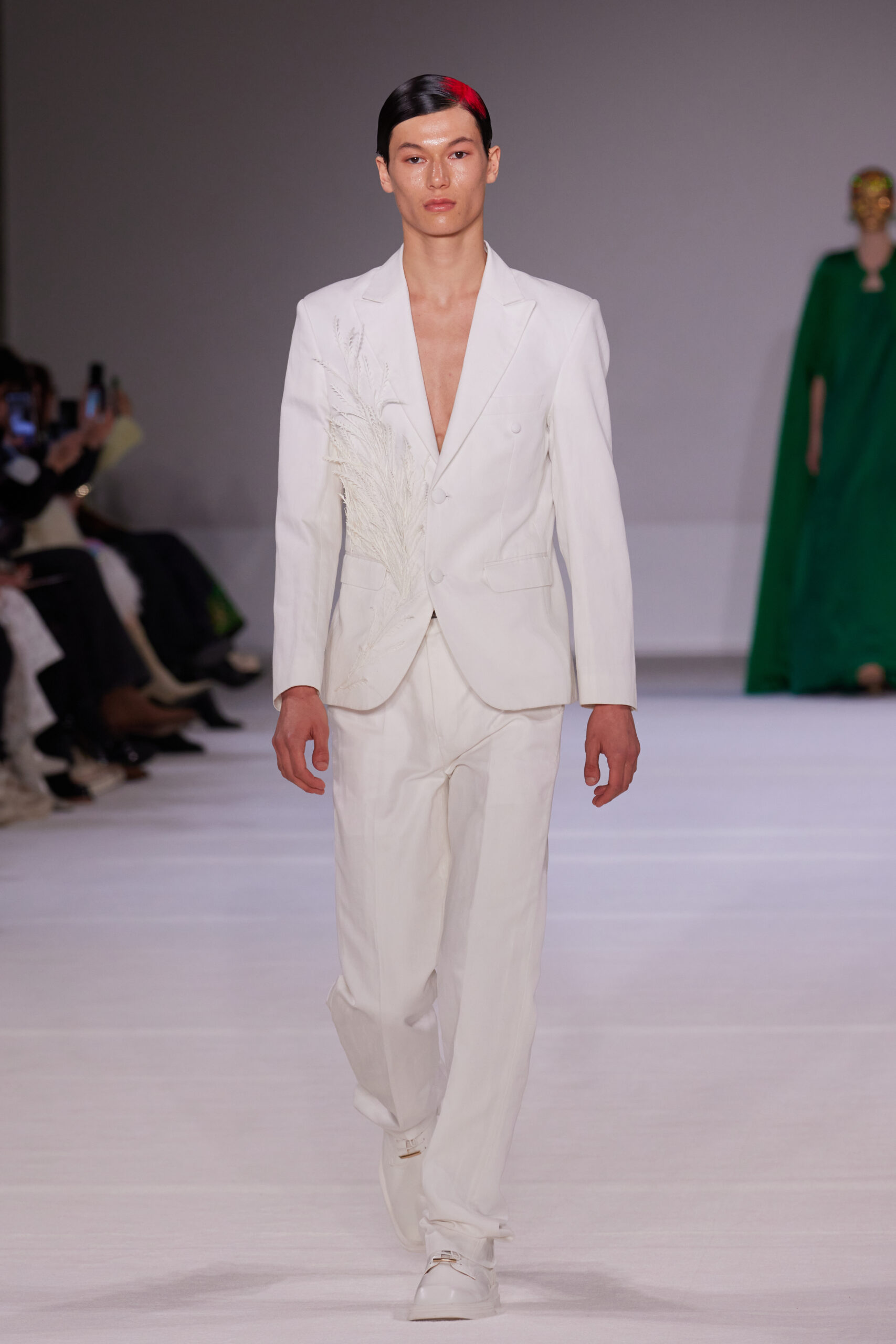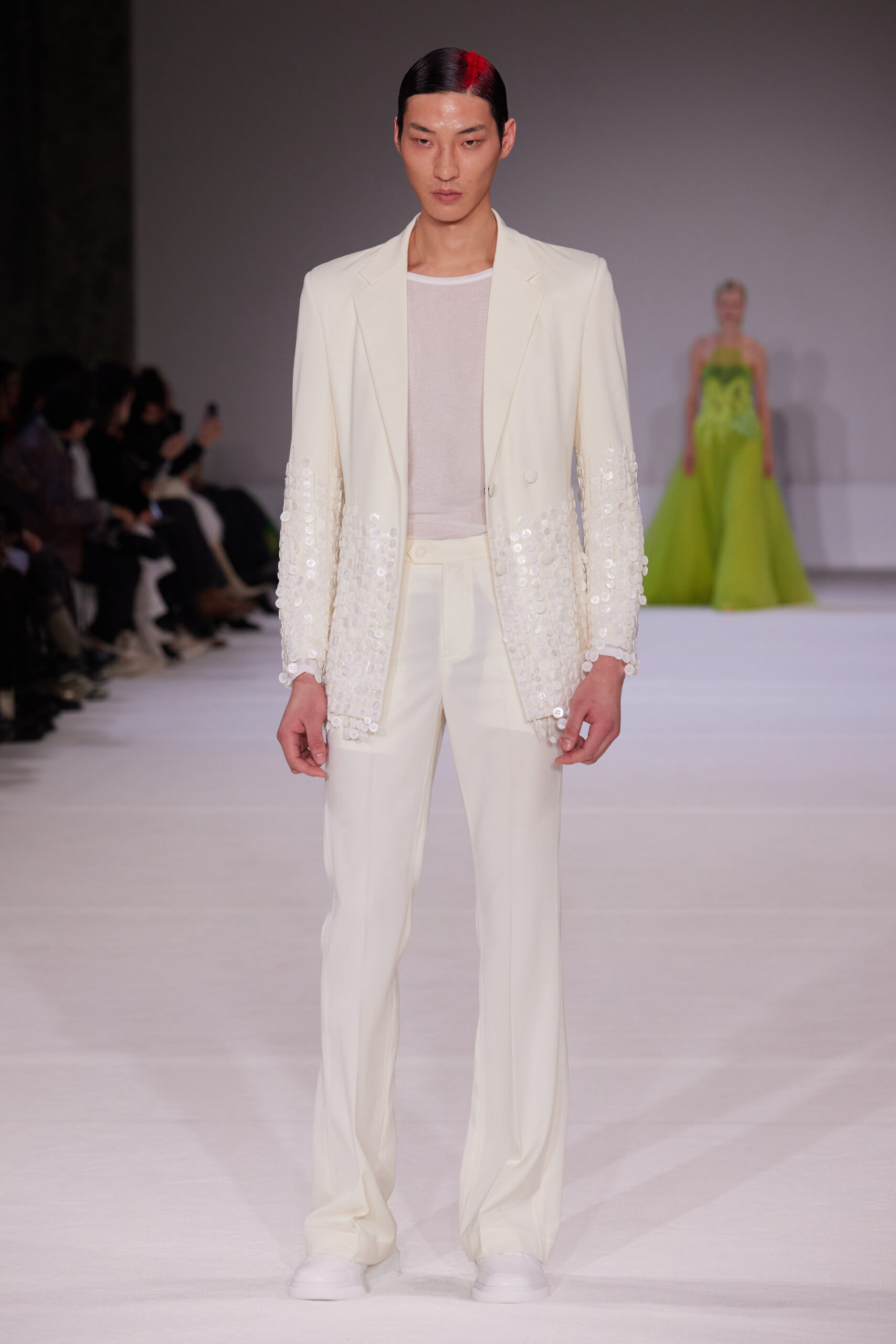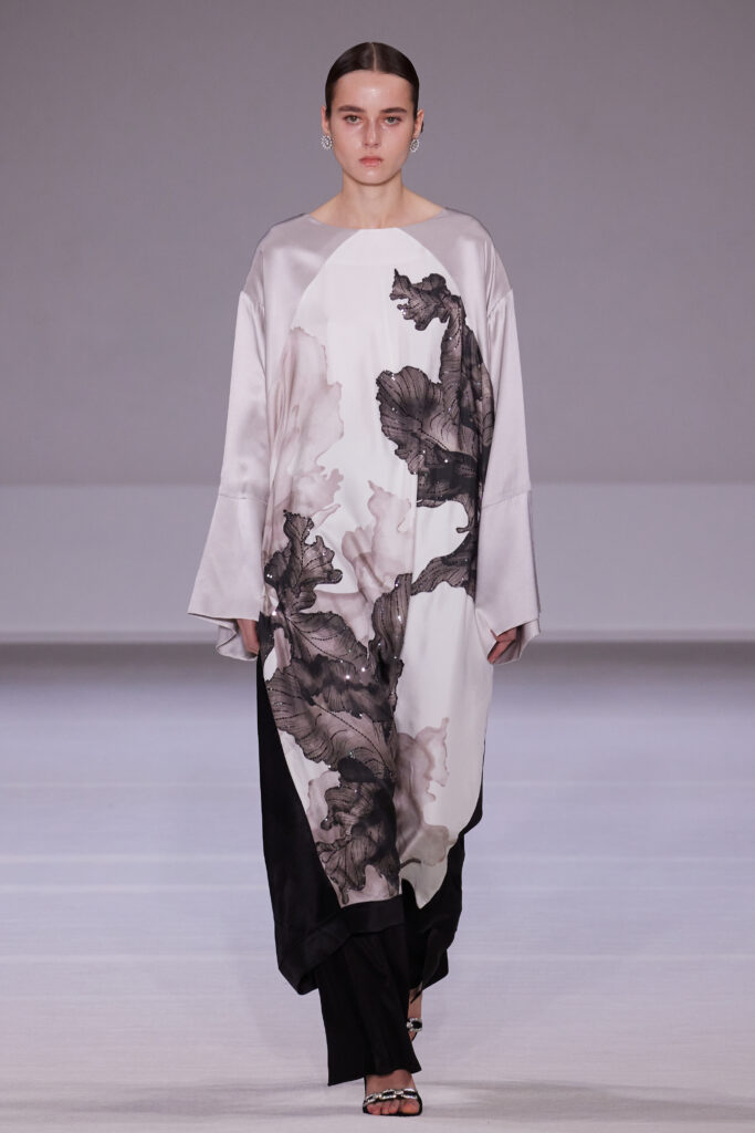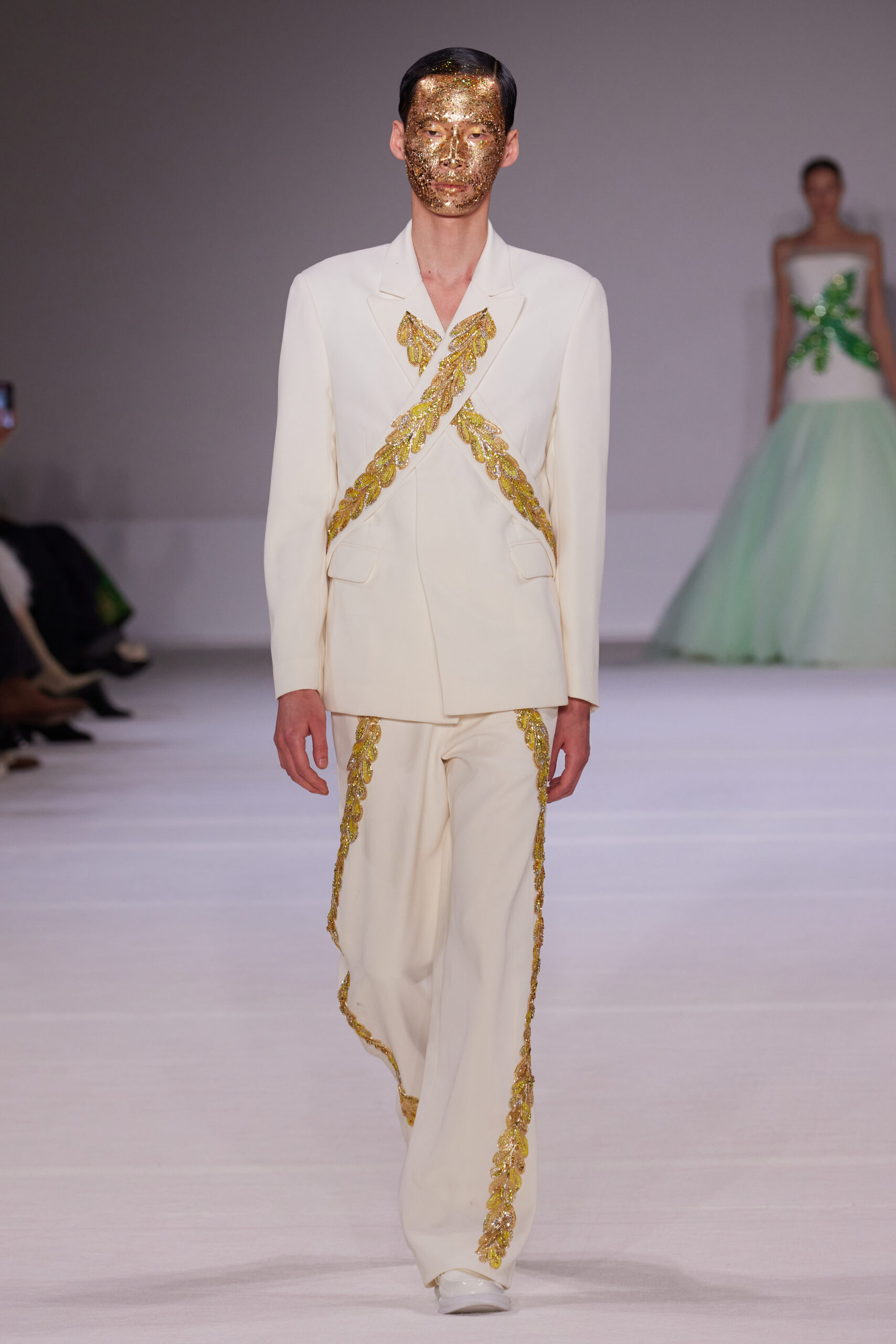 La collection Couture Printemps-Été 2024 reste fidèle à l’essence de HOMOLOG, avec une attention particulière portée à la broderie d’exception, notamment sur les robes de cérémonie. En intégrant des perles blanches de haute qualité d’Australie et en fusionnant les techniques de broderie française et chinoise, les créations dégagent une noblesse et une élégance sans pareilles. Les couleurs et la structure évoquent l’atmosphère unique de la Sagrada Familia de Barcelone, créant une ambiance onirique.
