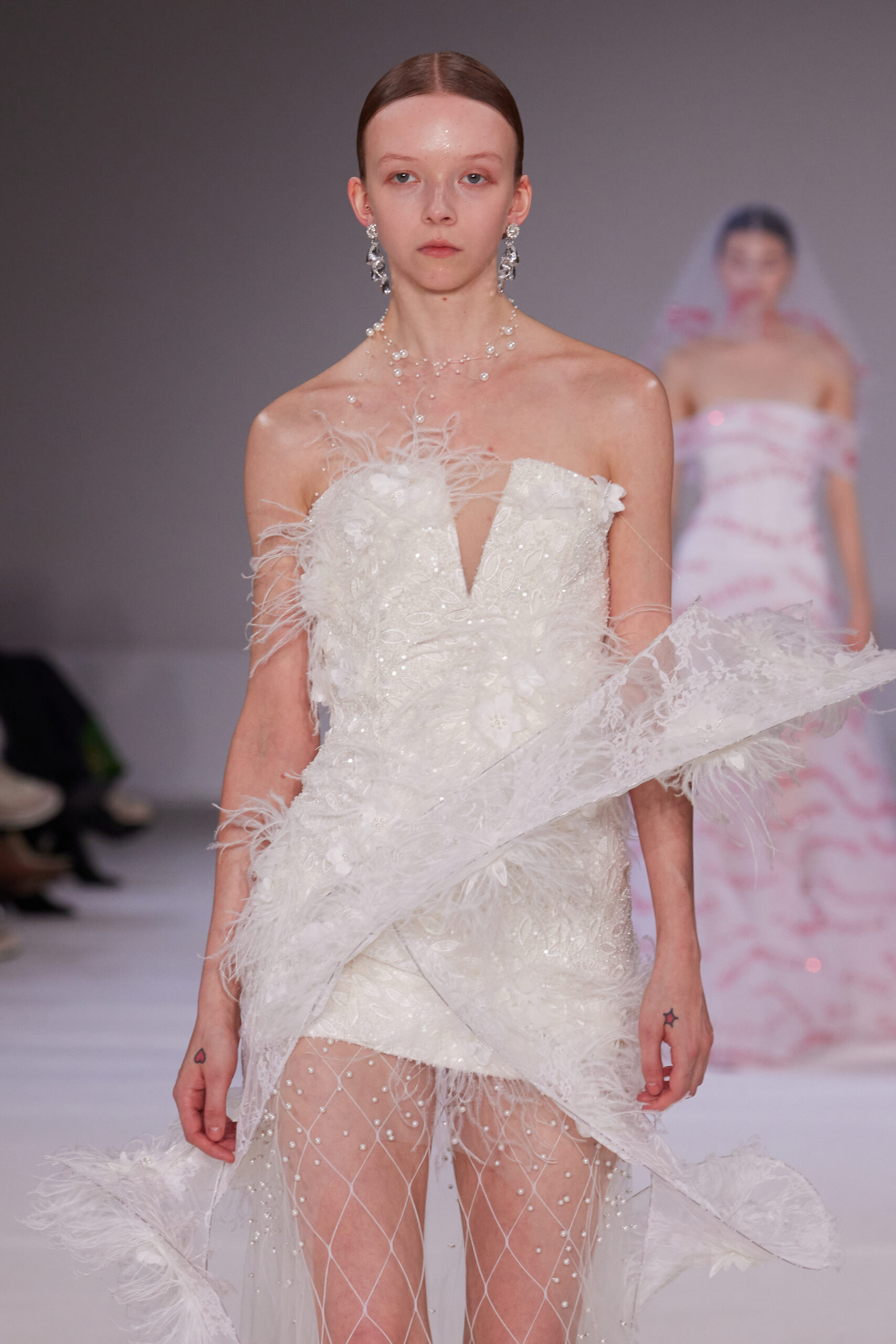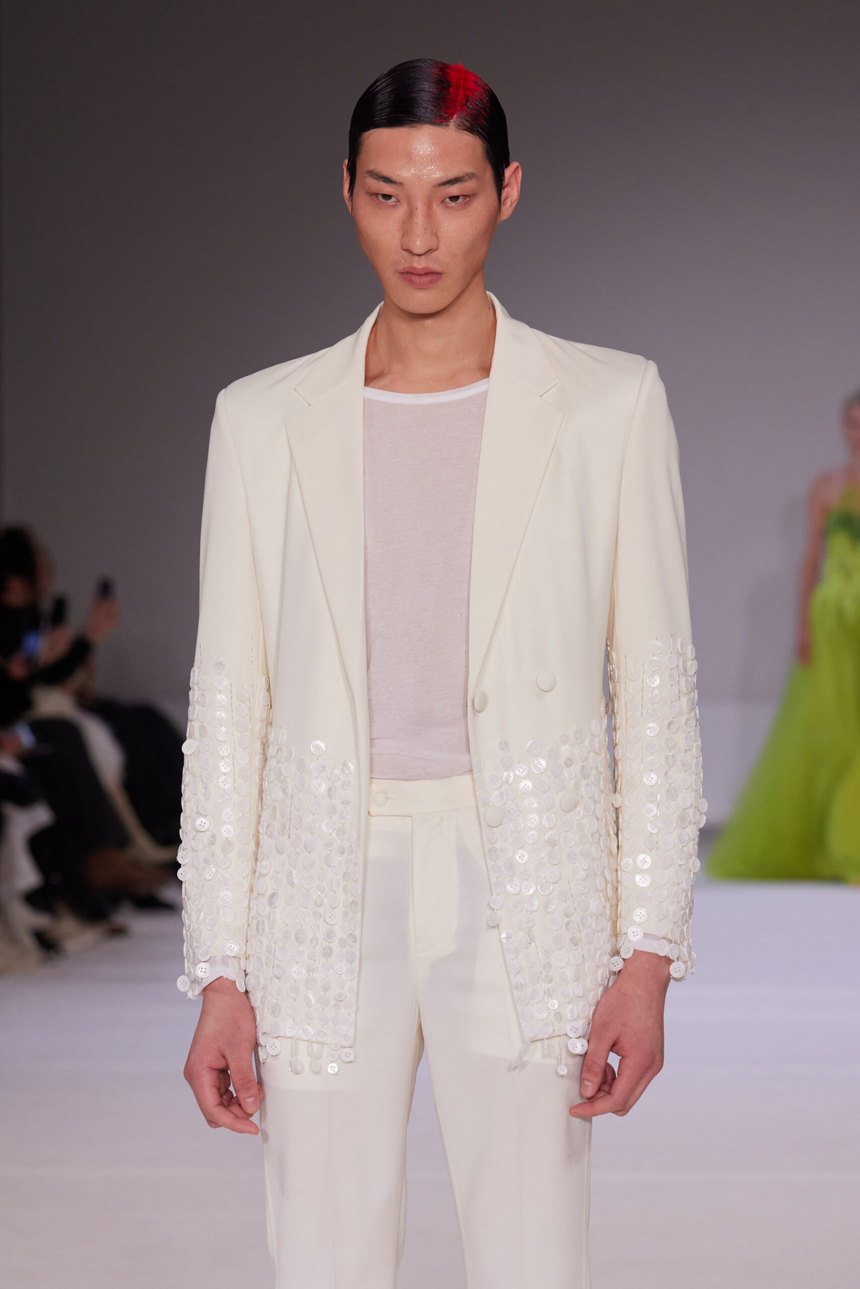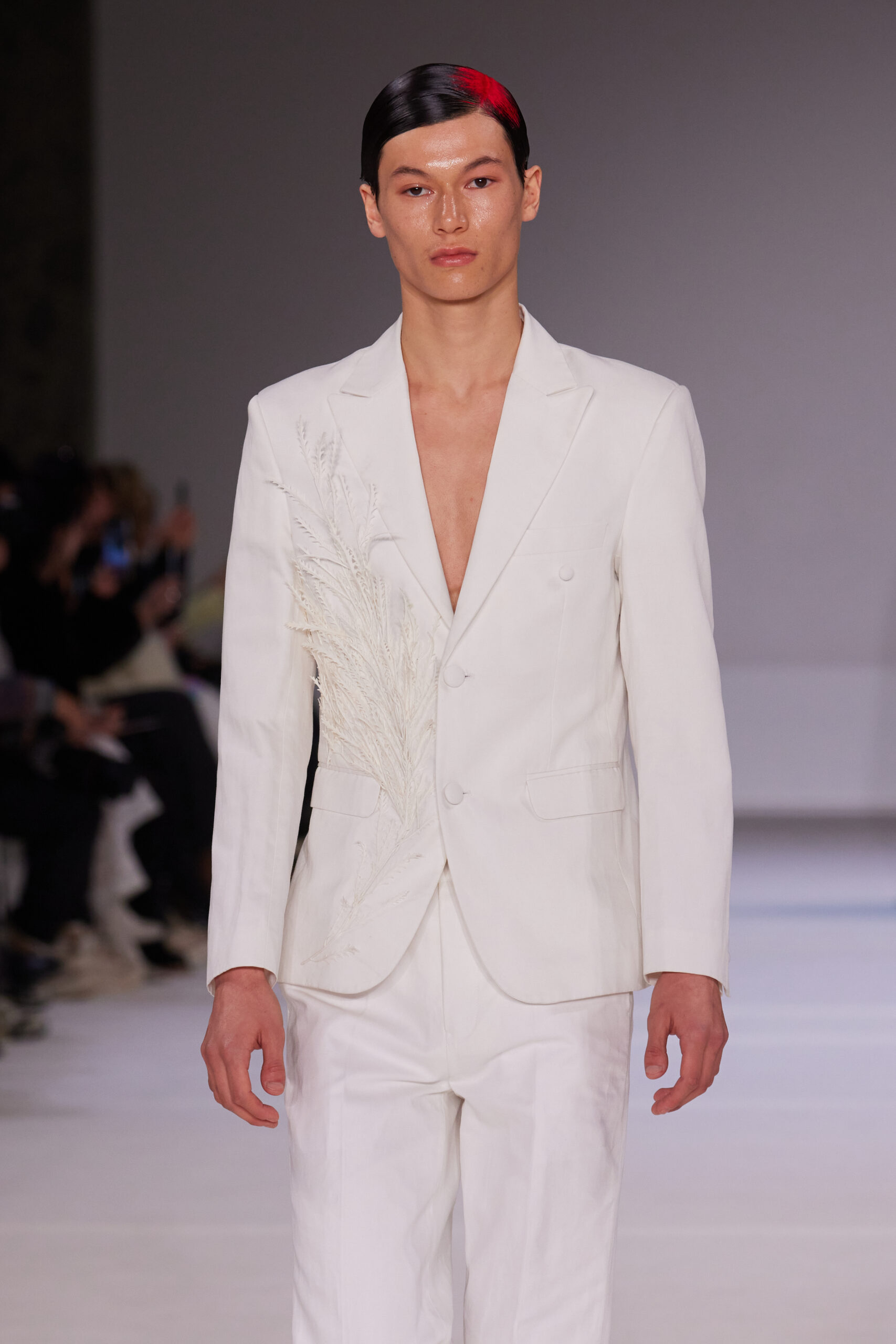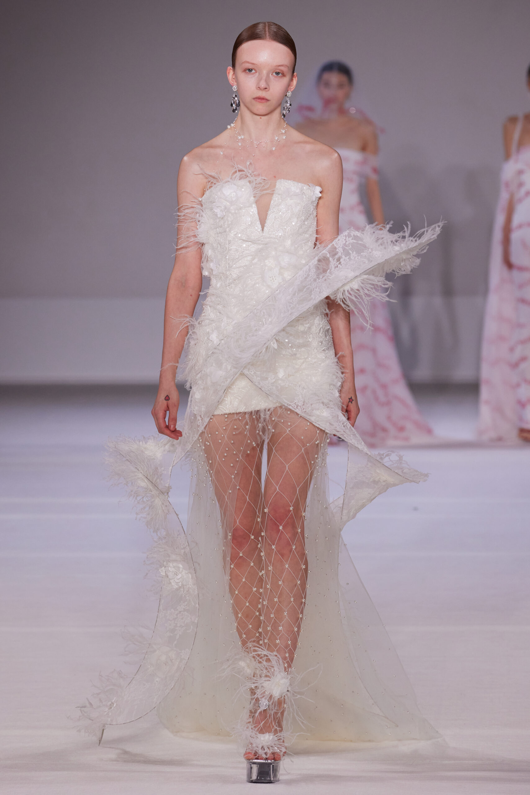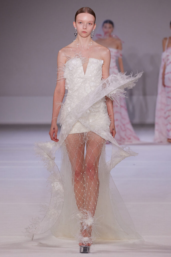 La collection Couture Printemps-Été 2024 reste fidèle à l’essence de HOMOLOG, avec une attention particulière portée à la broderie d’exception, notamment sur les robes de cérémonie. En intégrant des perles blanches de haute qualité d’Australie et en fusionnant les techniques de broderie française et chinoise, les créations dégagent une noblesse et une élégance sans pareilles. Les couleurs et la structure évoquent l’atmosphère unique de la Sagrada Familia de Barcelone, créant une ambiance onirique.